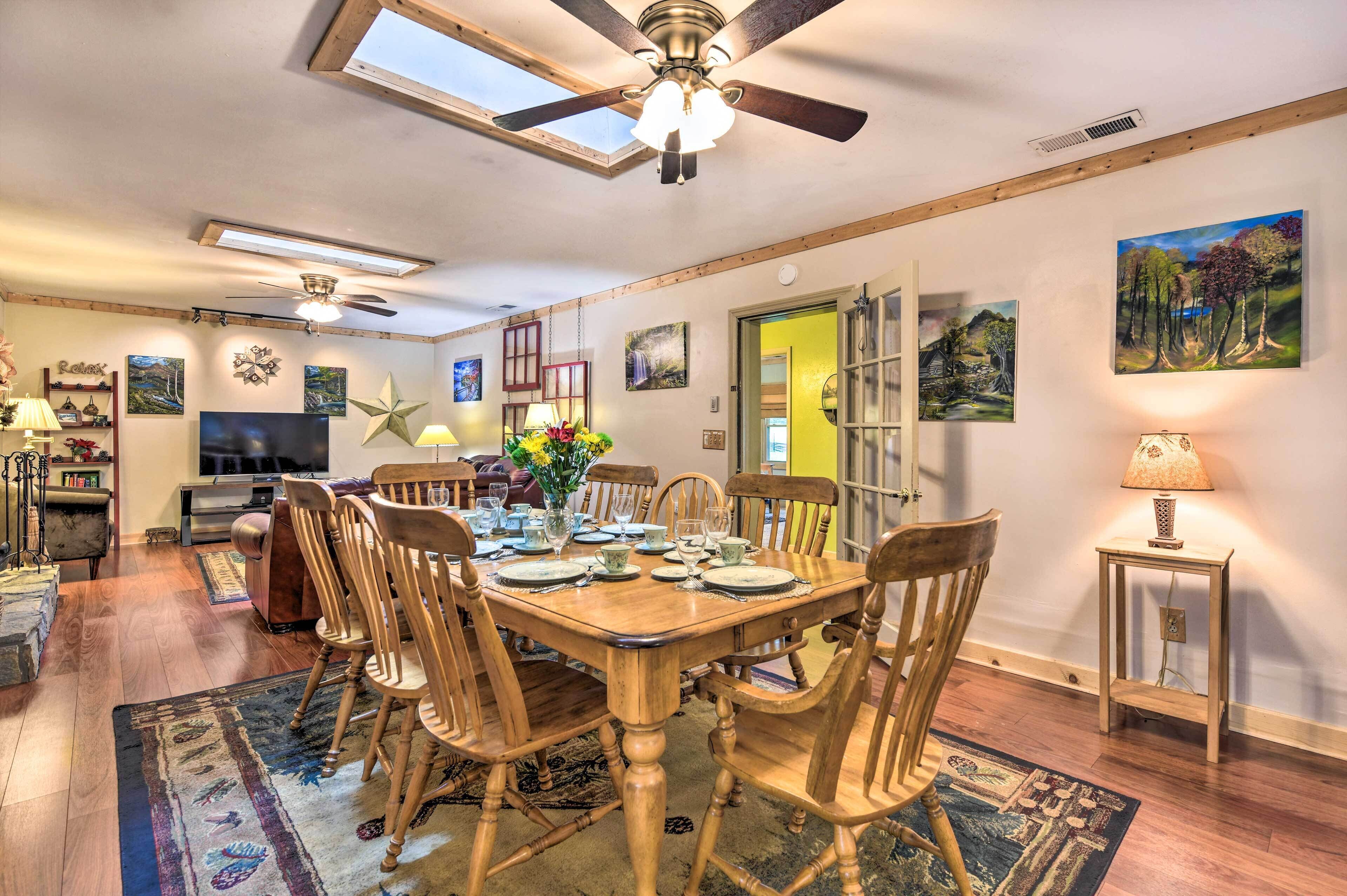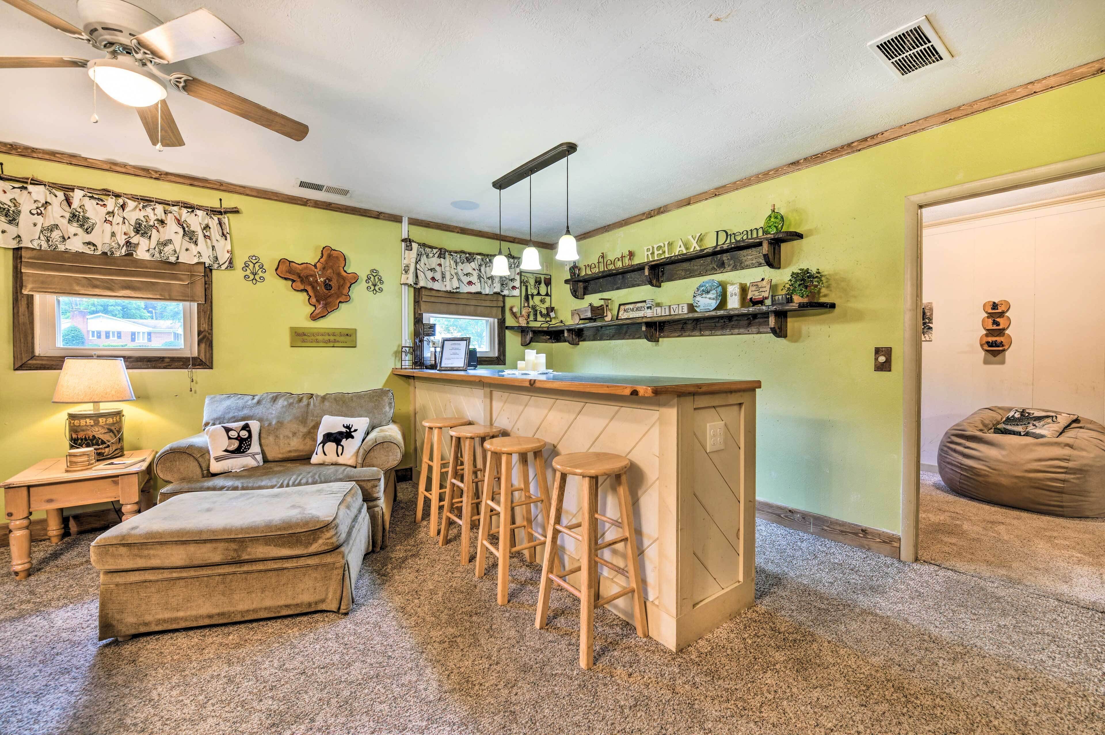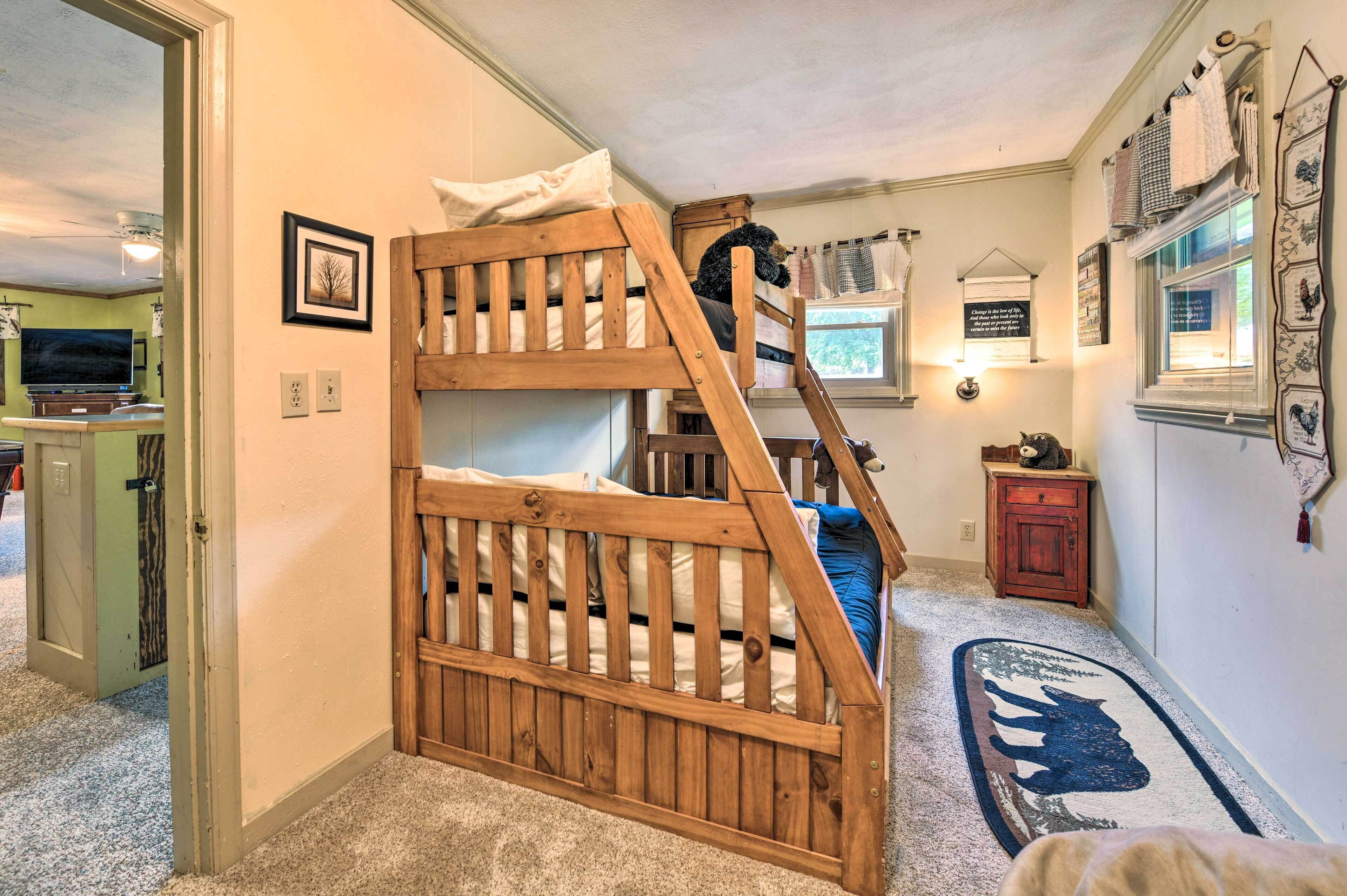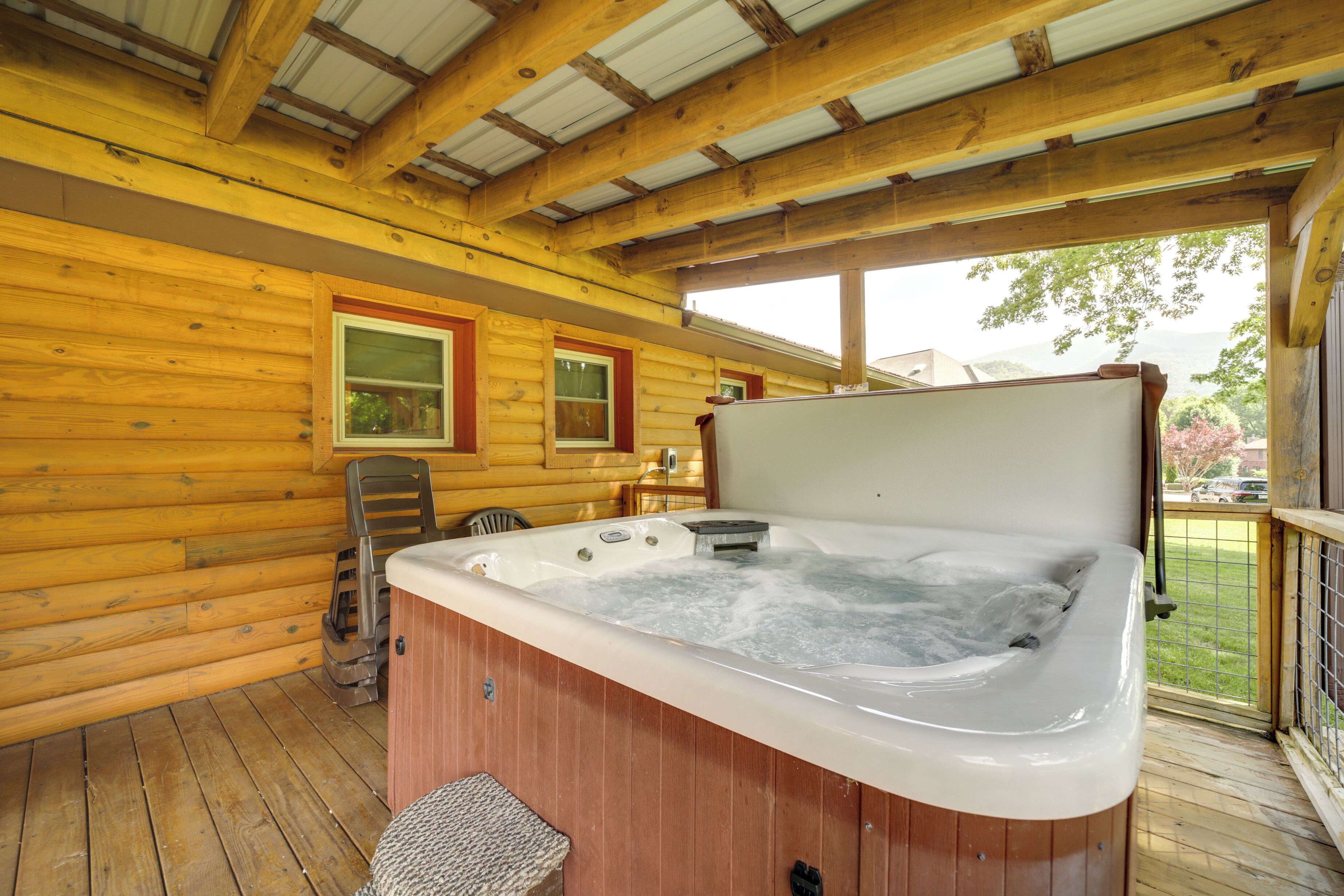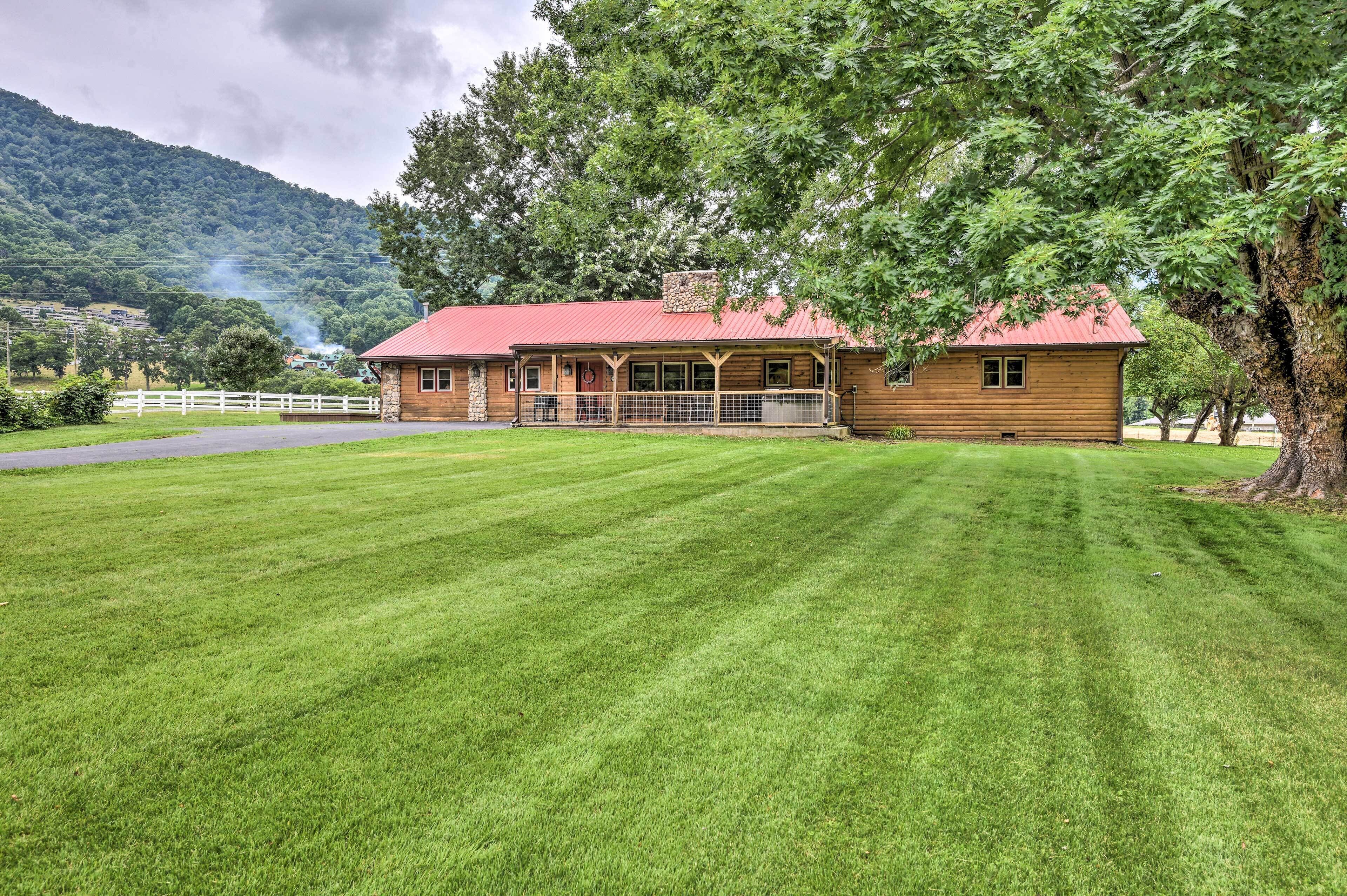 'Campbell Retreat' in Maggie Valley w/ Deck! Welcome to ‘Campbell Retreat’ in Maggie Valley! This spacious 5-bedroom, 3-bathroom vacation rental cabin provides everything you need for your stay, plus a hot tub, a fire pit, a game room, and plenty of outdoor space to enjoy. During your stay, be sure to check out the Wheels Through Time Motorcycle Museum, see Soco Falls, and explore the Great Smoky...
