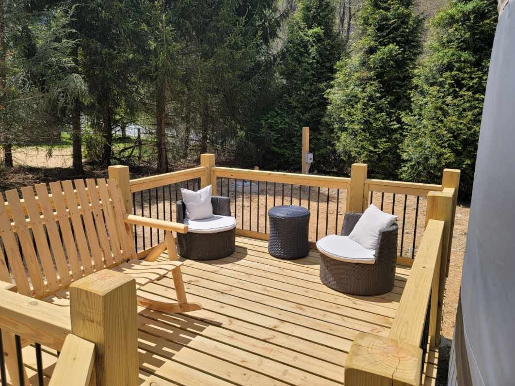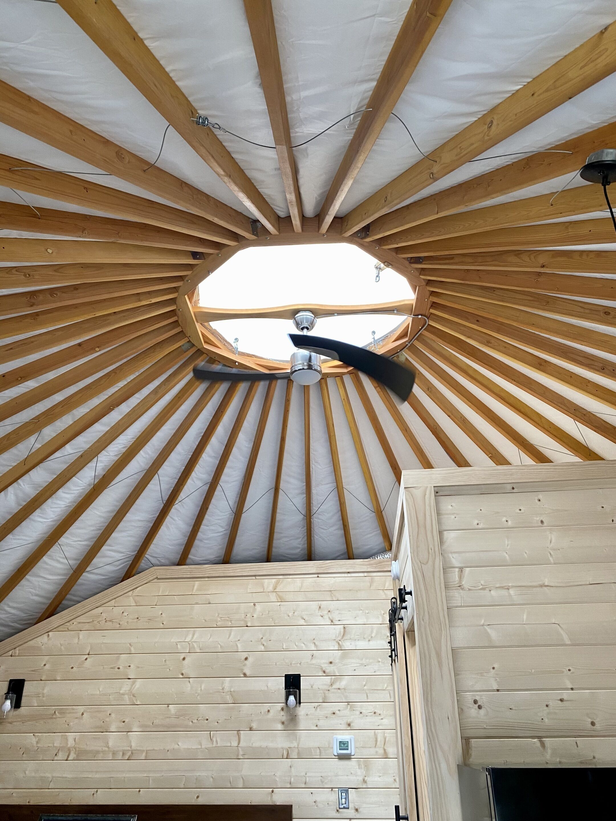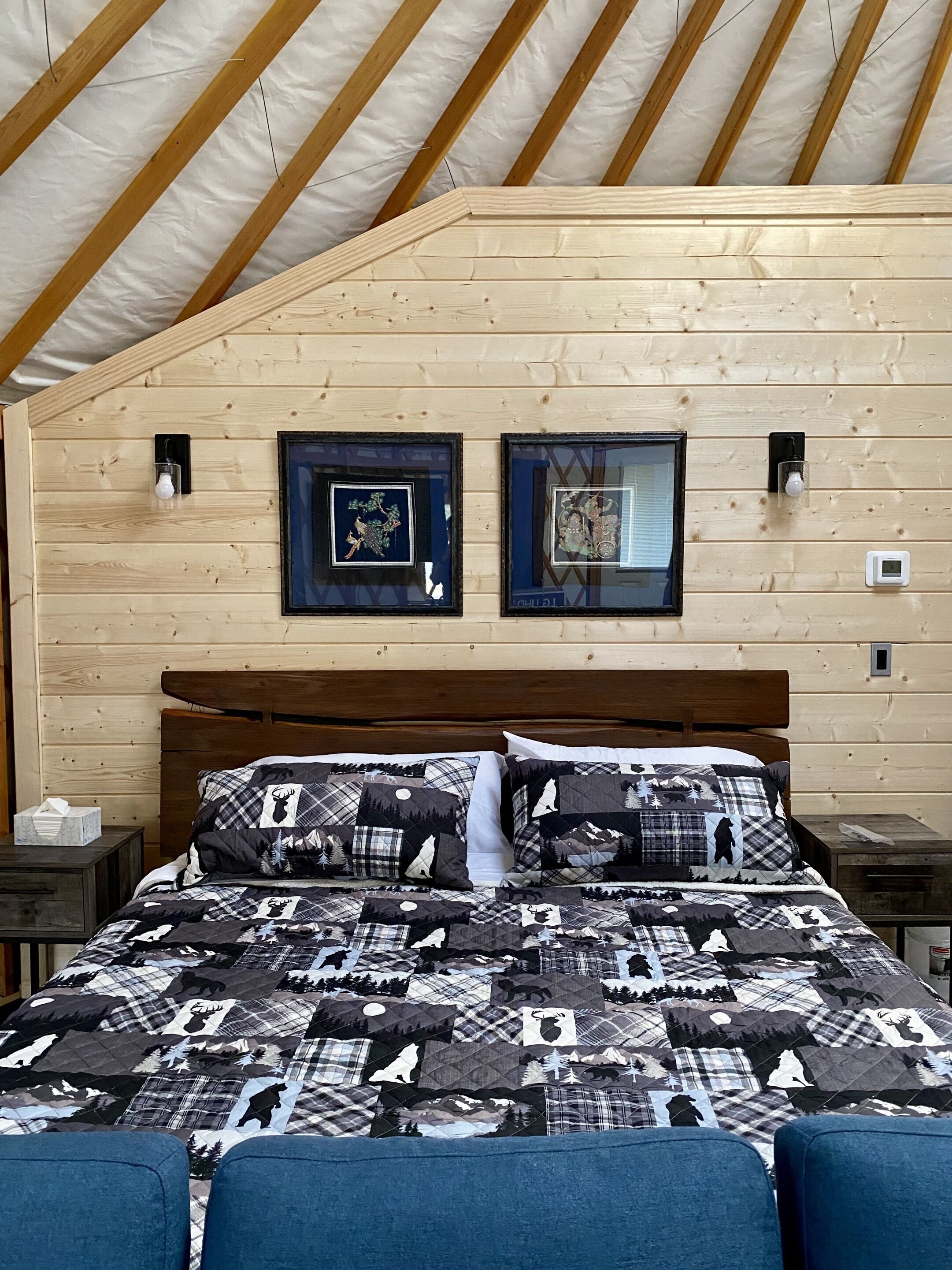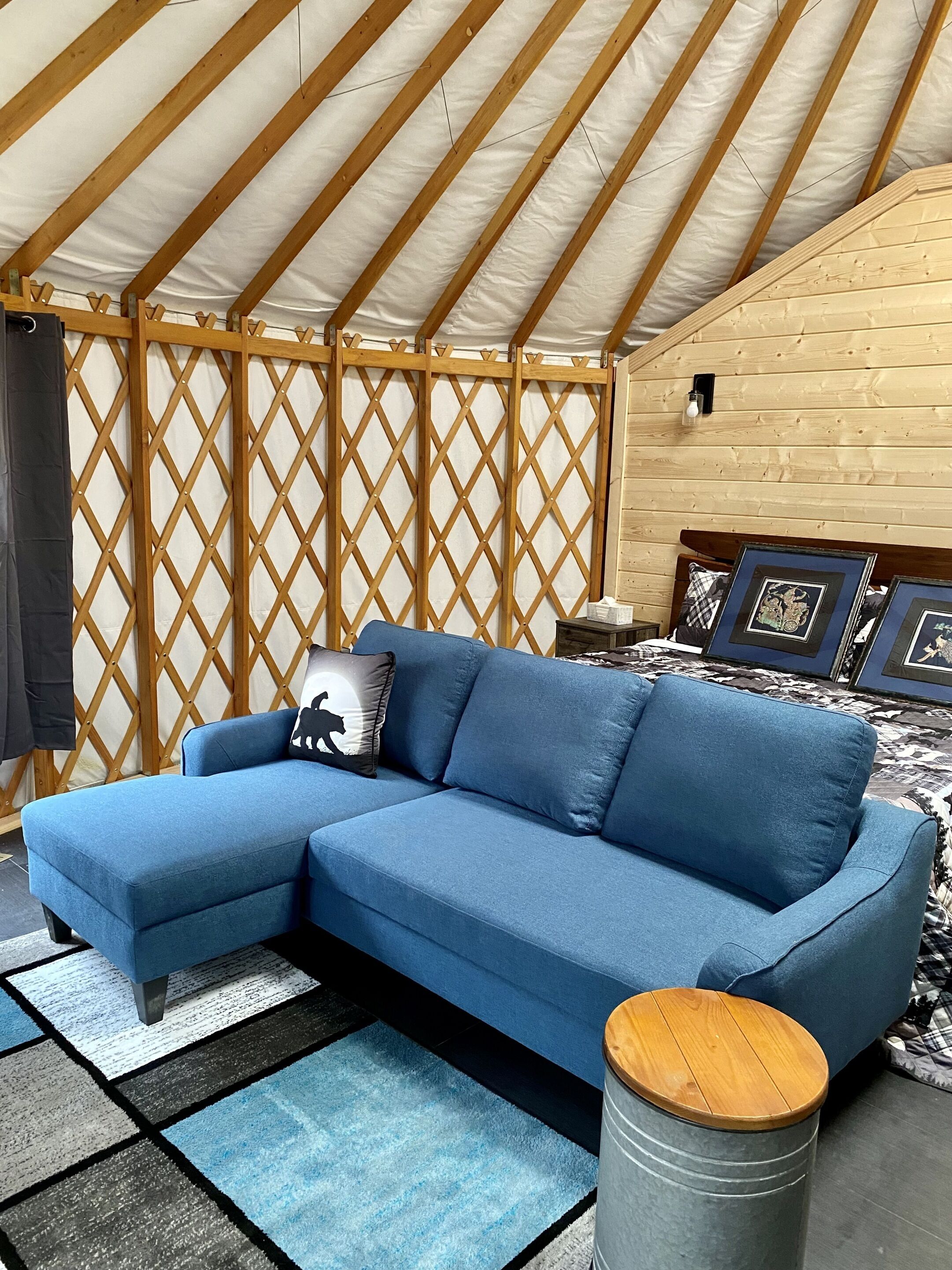 Loblolly Pine, Yurt Village(#14) 1st on your right Maggie Valley Yurts + Tiny Log CabinsStep inside our spacious studio yurt...452 sq/ft of high ceilings and all of the luxurious comforts of home! While it really is for couples with a big king size bed, the couch does convert into a sleeper for a small child, or that friend that just wanted to tag along for the adventure.- full kitchen w/ dishwash...