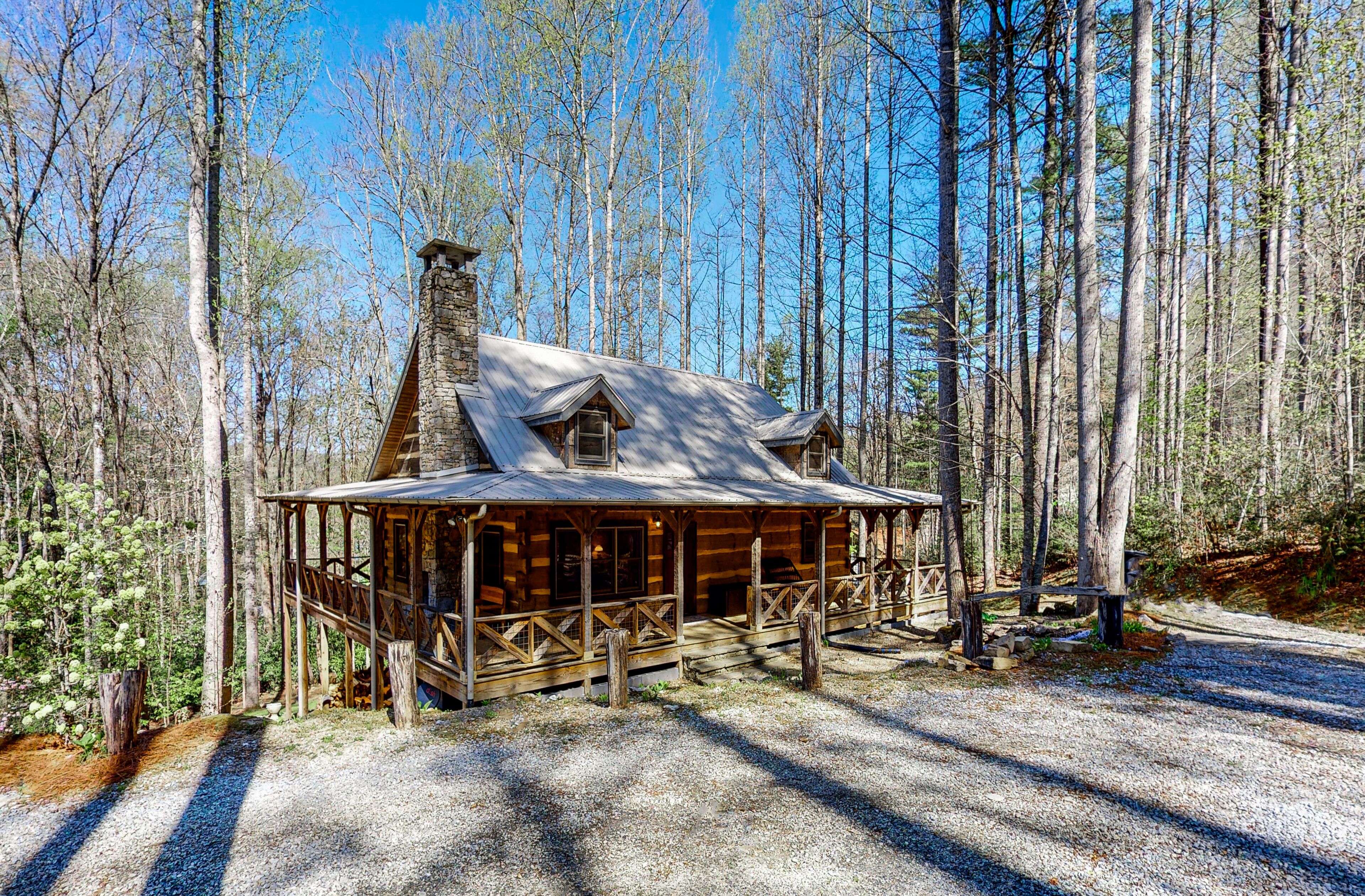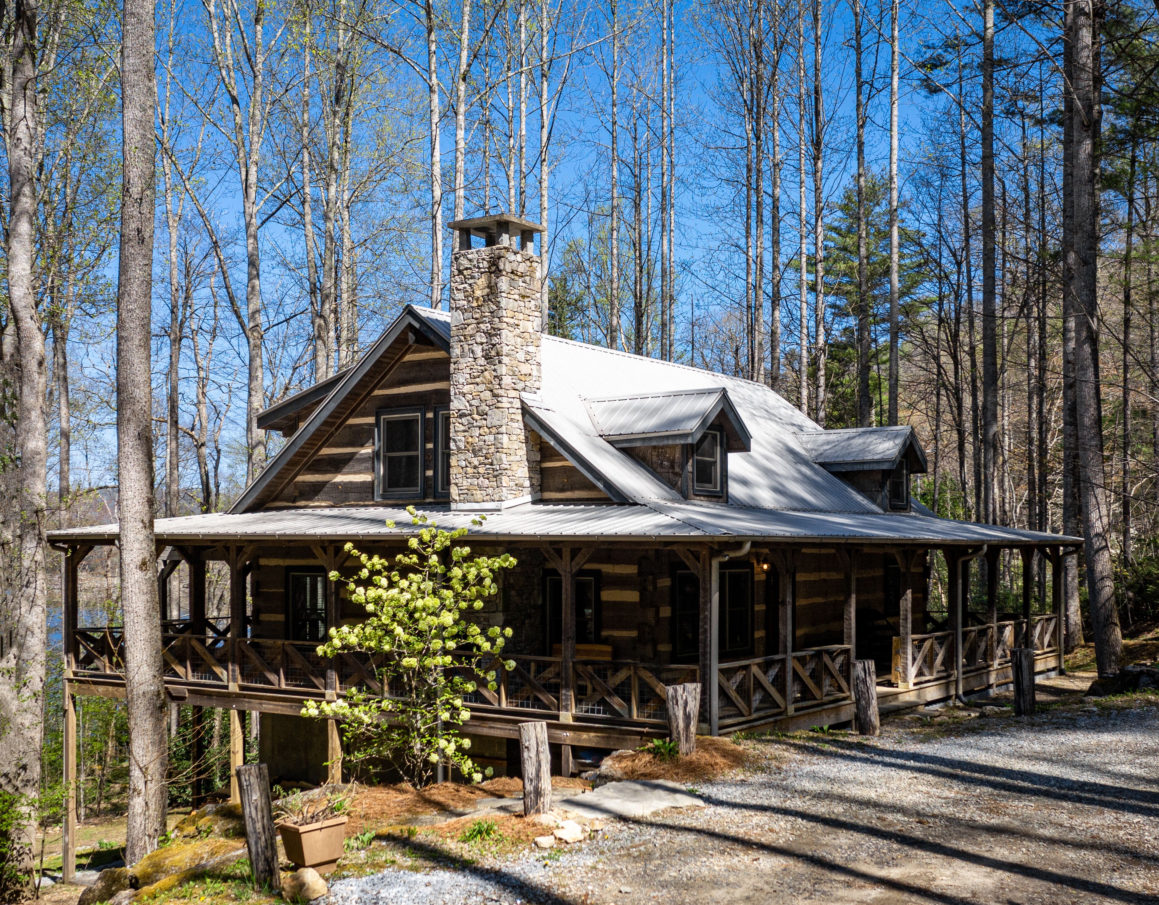 Log Cabin near Lake Glenville This incredible rustic cabin is next to Lake Glenville and is the perfect getaway for families or friends! Nestled on a 3 acre lot with a creek running through, you are a 12 min drive from downtown Cashiers, and 1/4 mile from public boat ramp. There are multiple parks, hiking trails, as well as a public beach recreation area all within 1 mile. Sapphire Valley Ski R...