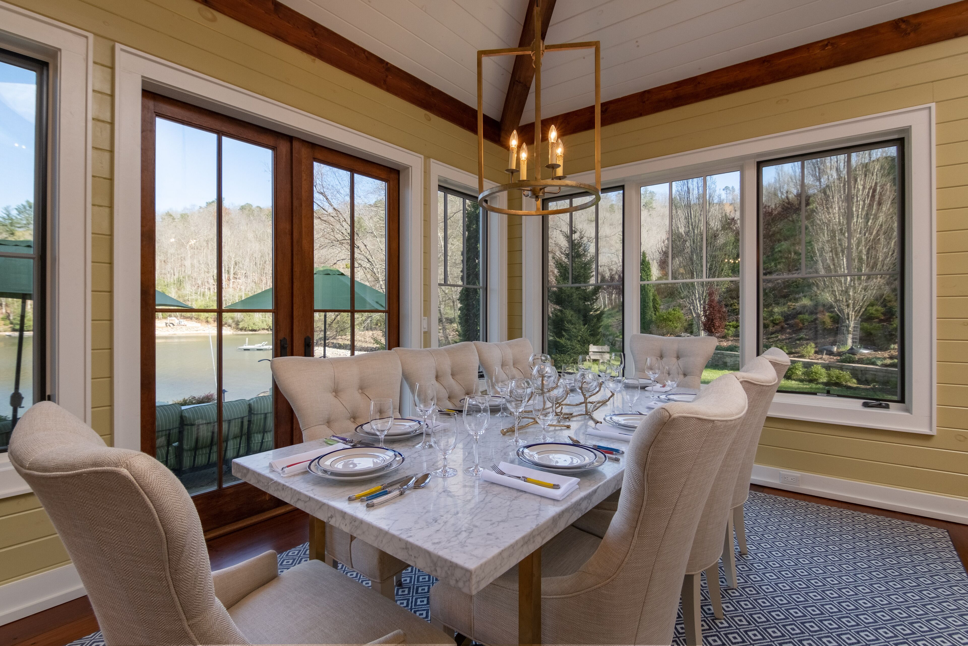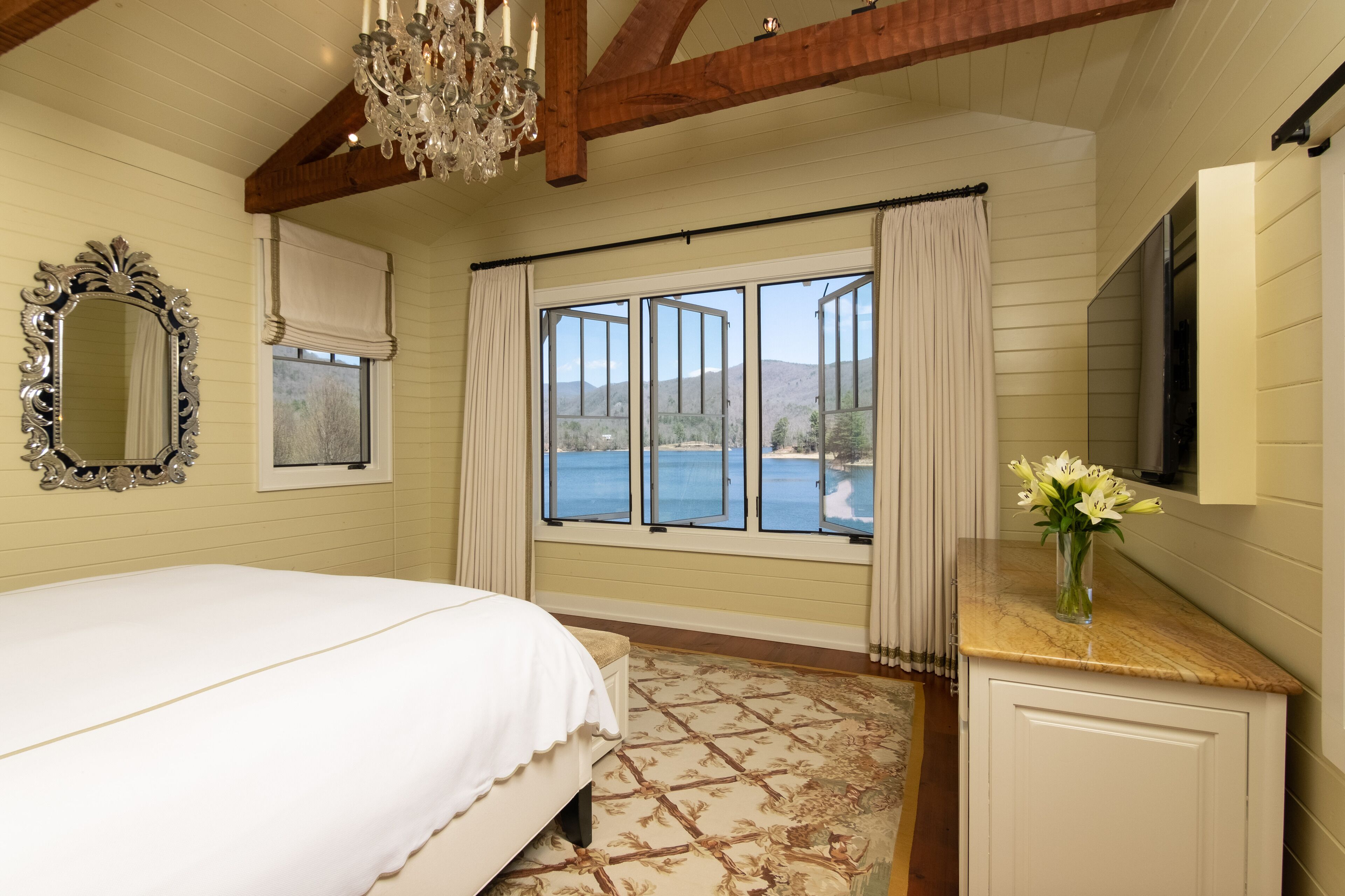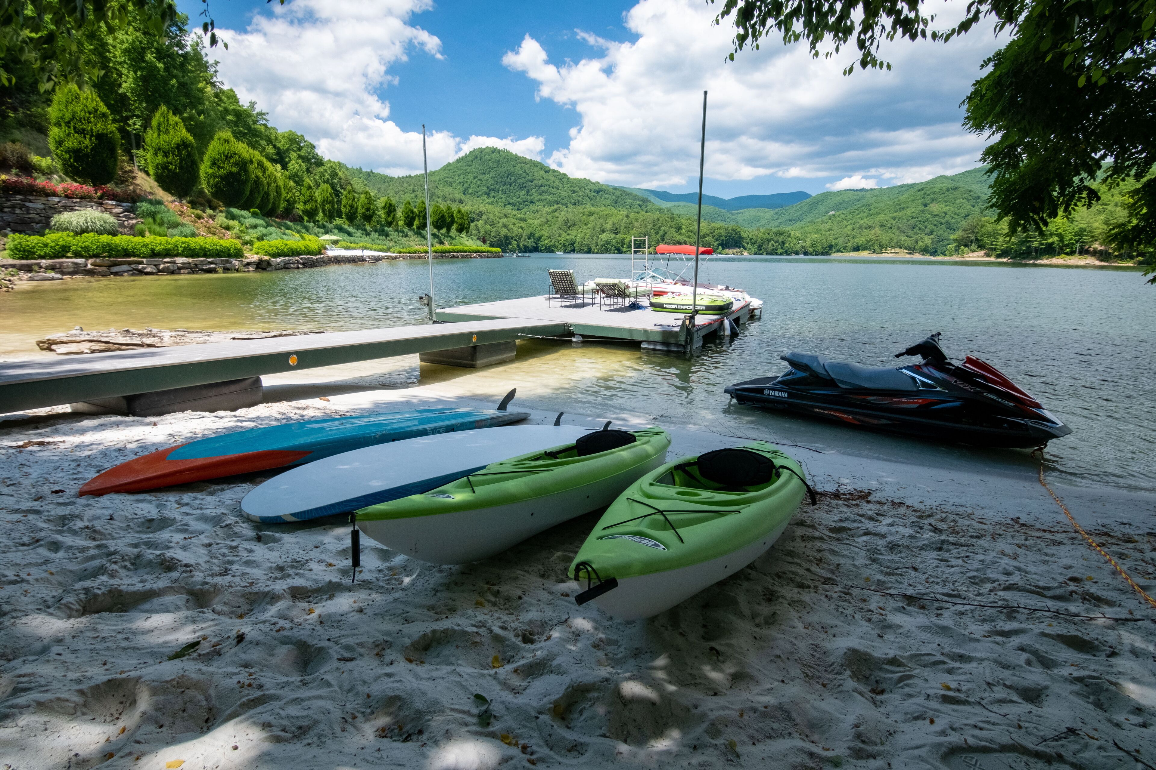 Bear Lake Heaven a private lakefront resort Bear Lake Heaven is an extraordinary 80-acre private resort located on Bear Lake in the mountains of Western North Carolina. Perfect for vacations, family reunions and intimate weddings. Bear Lake is one of the most beautiful lakes in the US and has been compared in beauty to Lake Como in Italy. The property boasts a half-mile of flat beautifully manicured lake-front, five private docks, four white-sand beaches, several miles of mountain trails, and two waterfalls. Kayaks, paddle-boards, and a canoe included.Bear Lake Heaven was designed with guests’ resort needs in mind.The property boasts the following features:- a half-mile of beautifully manicured shoreline- five private docks- four white-sand beaches- two flat manicured playing fields- outdoor workout area- several miles of mountain trails behind the lakefront- two small waterfalls at the end of the mountain trails- one-acre wildflower field- beach volleyball court- workout area with equipment- this luxurious private resort highlights a lodge with fine furnishingsThe owner of this magnificent property has painstakingly curated each room for over a decade to make the space as relaxing and elegant as possible.THE LODGEFeatures an exceptional master suite with an oversize marble steam shower, a beautiful guest room with a king bed, and a large family bedroom with two hand-crafted wooden queen bunk beds. All of the bedrooms overlook the lake and have private bathrooms.The high-end kitchen with marble countertops, La Cornue range, and custom cabinets are well stocked with everything you need during your stay.Enjoy your meals from either the inside or outside dining areas large enough to accommodate your entire group.HOUSE ON THE HILLThe property now features a luxurious custom-built 600 ft. tiny house (400 feet of living space plus 200 feet of low loft bedrooms). Designed to match the main house, this space features a living room, kitchen, spacious marble-tiled shower, primary bedroom, and two loft bedrooms each with king-size beds. High-end finishes throughout including wood floors, and quartz countertops. This opulent space shares the same breathtaking views as the main house.The private resort has all the lakefront toys that one would expect to enjoy the lake: speed boat (use conditional on age, training and any necessary qualifications), tubes, wake and knee boards, six paddle boards, two kayaks, and a canoe.In addition to all the luxuries and amenities the home offers, it is located adjacent to Bear Lake Reserve — a high-end resort community. The owner is a member so guests have access (for a small fee) to all the private amenities offered by the resort including a 9-hole Jack Nicklaus-designed golf course with a 40-mile panoramic view of the Smokies, tennis, and pickleball courts, and a clubhouse for dining.Bear Lake is the perfect backdrop for an intimate wedding experience. We can accommodate wedding sizes of up to 40 individuals and work with local wedding planners to make your experience wonderful. Only up to 12 are permitted to stay overnight at the property. The rest of the wedding guests can stay in Bear Lake Reserve or find their own accommodations. We are accepting weddings on a case-by-case basis. Send us a message for any inquiries.Concierge services are available as an upgrade. Our concierge will do all errands including grocery shopping and can attend to any and all guest requests.Our team at Bear Lake Heaven will do everything in our power to make your stay as enjoyable as possible. Let us know if you have any special requests and we will see to it so that we make your dreams possible at Bear Lake!