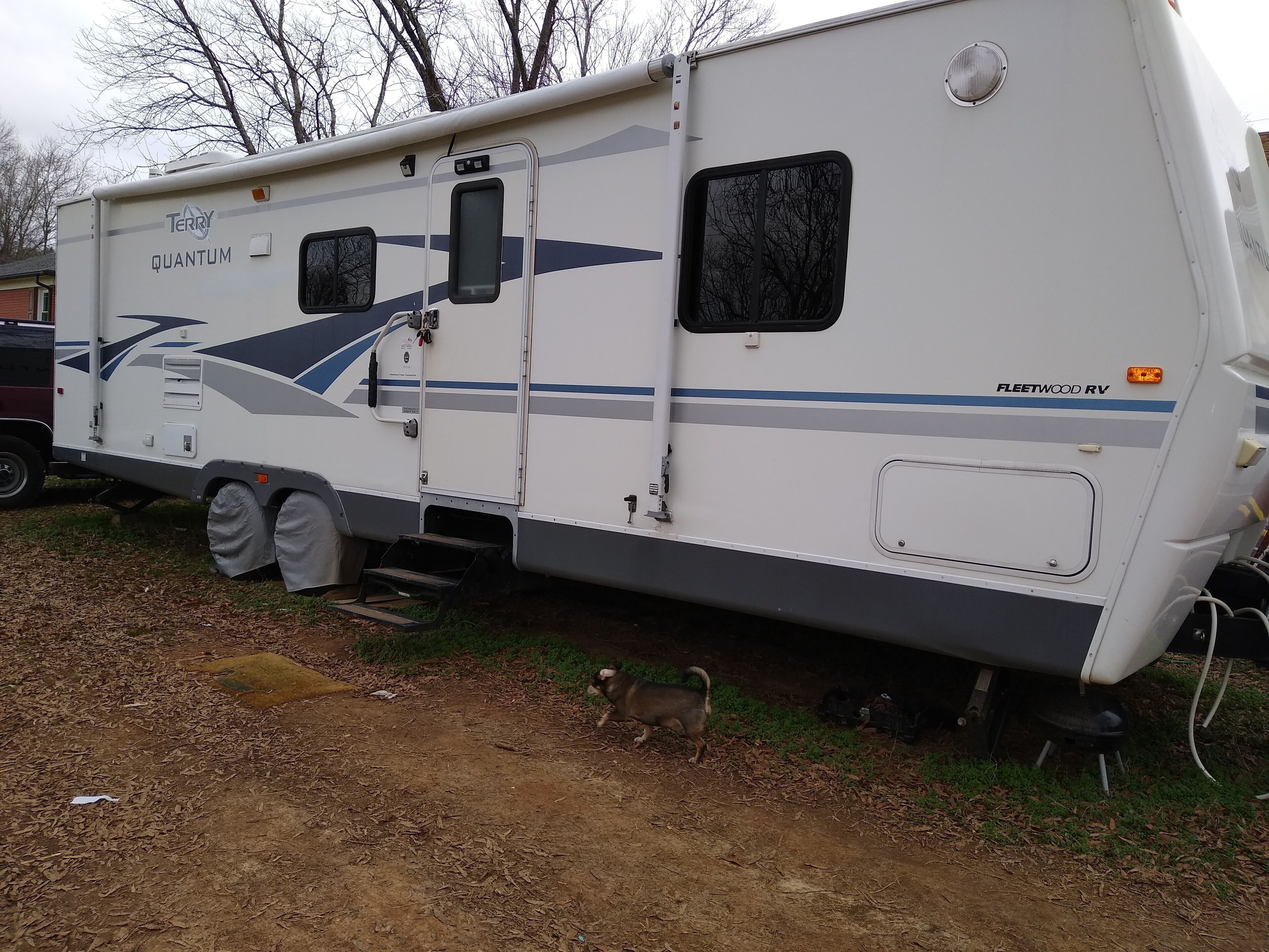 Is this is a very spacious RV that sits under 2 large trees pet-friendly?