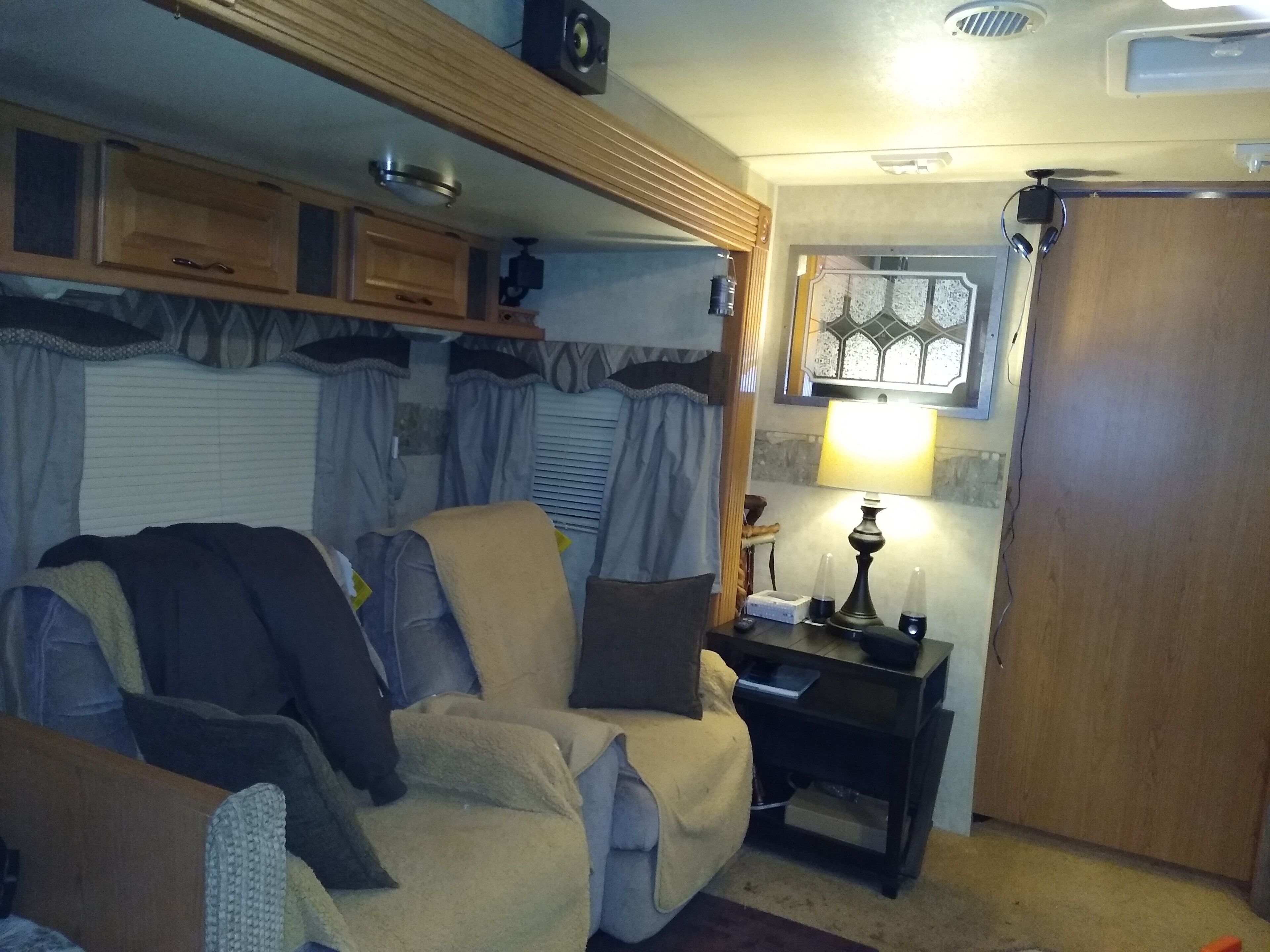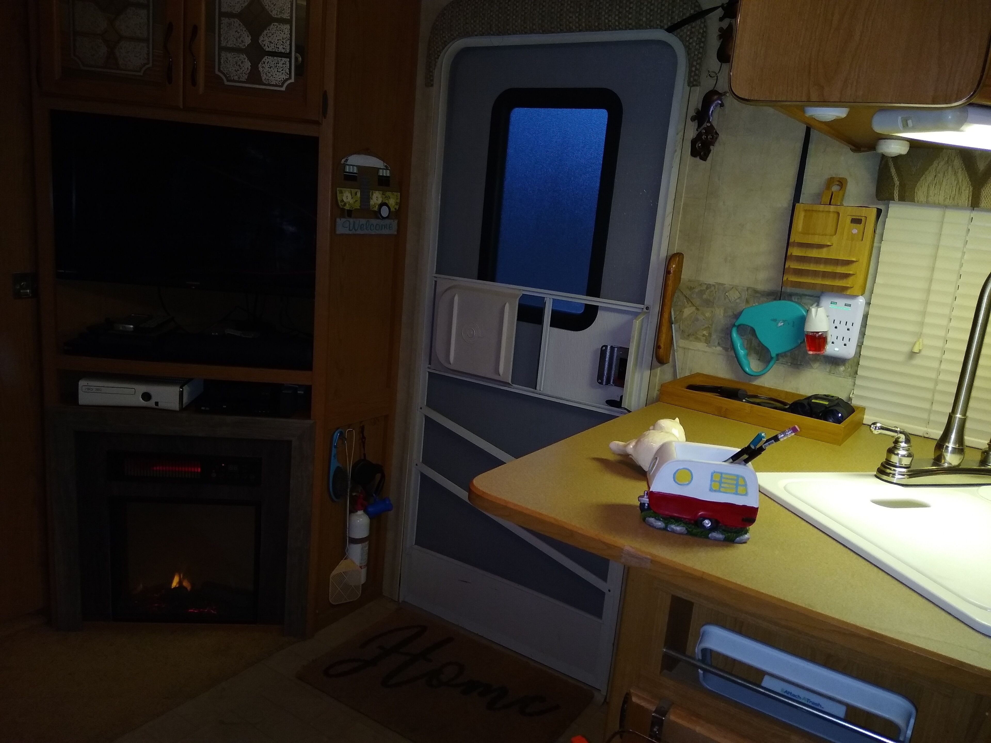 this is a very spacious RV that sits under 2 large trees we have a beautiful 31 foot RV that sits on our property in a country setting but still within minutes of shopping & restaurant's.it has a fireplace,we also provide wifi,Netflix prime and Hulu included in price of rental we also welcome your pets .our property is a wildlife refuge so you watch the birds and rabbits play. the RV is stocked with everything you will need to feel at home pots,pans,dishes,iron & ironing board DVD player, a specialty coffee maker that makes almost any kind of coffee you want, we loan out grills & outside furniture free of charge, we even have a place to build a bon fire with a few hours notice with an adult over 21 present