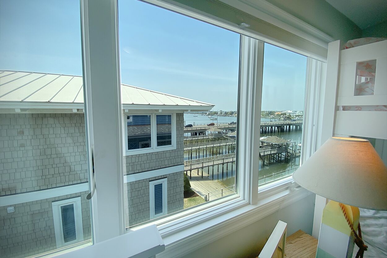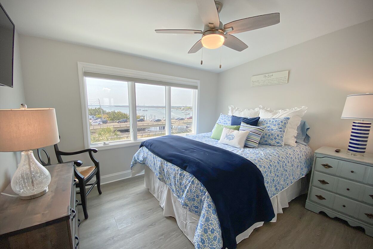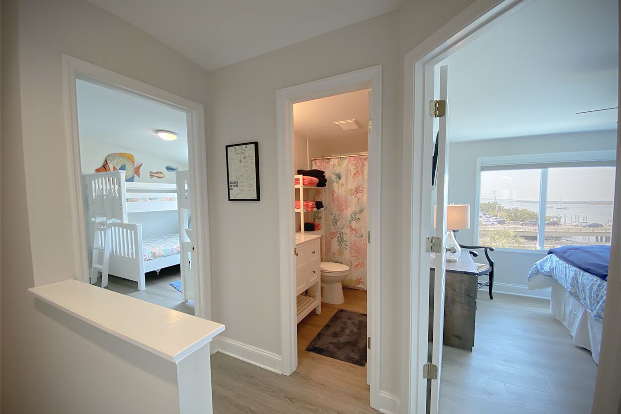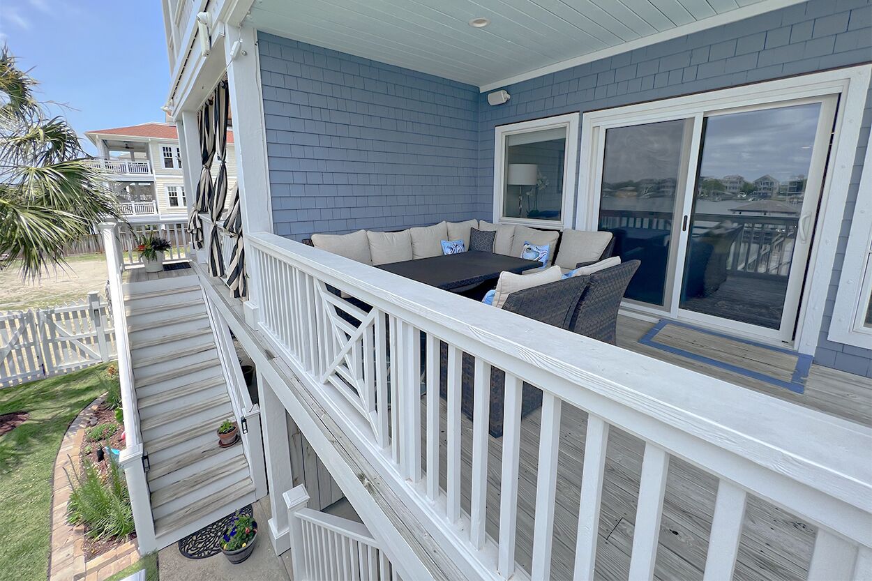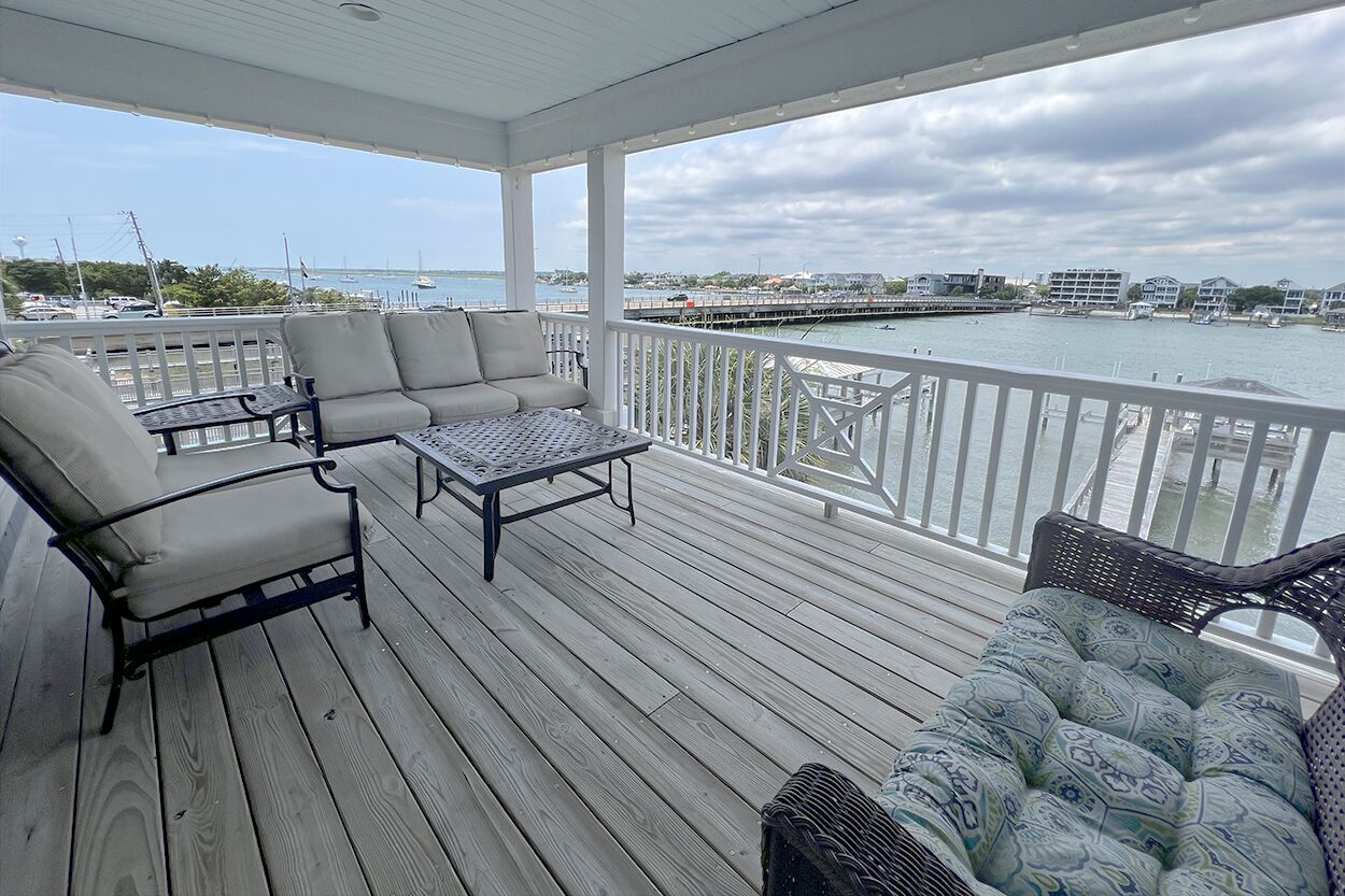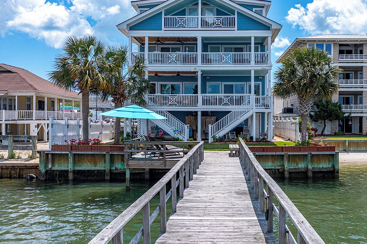 Experience the island lifestyle, live like a local! 4Br/3.5ba waterfront duplex. Relaxing 4br/3.5ba waterfront duplex with amazing sunset views, dock access, boat slip and private elevator. Located in the heart of Wrightsville Beach, just park the car, put your flip flops on, and have everything you need within walking distance: public beach access, Roberts Grocery store, local shops, several local restaurant options and more!Experience the island lifestyle at this incredible waterfront property located in the heart of Wrightsville Beach. Recently updated with a private elevator and only steps to the beach, local shops, and several dining options, The Blue Pearl offers everything you need to live like a local. Catch a sunset or cast a line from the dock. Bring your boat as the 23 ft. boat slip is included for guest use. **Slip is located between the bridges, so the tides can prevent T top boats from fitting due to bridge clearance heights** **Construction on the South Banks Channel Bridge may affect access to the dock. Please contact our office directly if planning to bring your boat.** The main level provides a welcoming front porch plus the bright and open concept living, dining, and kitchen areas, all with amazing views of Banks Channel. A fully stocked kitchen and wet bar include all the comforts of home. A powder bath and elevator access complete the main level. Make sure to shoot the island breezes from the rocking chairs on the waterfront deck after a long day out on the beach or out on the waterways. Enjoy well deserved time with family and friends with a waterfront meal together on the spacious back porch. The fully stocked kitchen and grilling area make preparing the fresh of the day a breeze. On the third floor you'll find the waterfront master suite bedroom with a King bed, private deck, incredible views, Roku smart TV, and an updated, spa-like master bathroom with roll in shower and separate freestanding tub. Truly the perfect spot to unwind after a fun filled day on the beach. The Elevator access and the laundry room complete this floor.The top level offers an additional master bedroom with king bed, private bathroom, smart Roku TV, and private balcony so you can wake up to some of the best views on the island. A queen bedroom includes water views and a Roku smart TV. The last bedroom is a bunk bedroom with a Twin over Twin bunk bed and a Twin over Full bunk bed. A shared hall bathroom completes the top floor **Please note there is NO elevator access to the top level**The ground level includes the dock with gazebo, boat slip, and waterfront deck with sitting area. The covered back patio provides a cool retreat from the sun with outdoor shower and fenced in backyard creating the perfect spot to have that waterfront cookout you've been dreaming about. You'll also have access to kayaks to enjoy exploring the beautiful waters, as well as bikes to cruise around the island. The garage has parking for 2 vehicles, and extra full size refrigerator, and all the beach equipment you'll need. Elevator access is on the ground level, adding convenience for loading your groceries and luggage upstairs. Driveway parking for 2-3 more vehicles (depending on vehicle size). Any additional vehicles that do not fit at the property must park in paid public parking.Parking instructions:Parking is on left side when facing the house. Parking for 4-5 vehicles, depending on vehicle size.INCLUDED: WIFI, fully stocked kitchen, paper goods and ALL linens, including all bedding + bath + beach towels to save you the hassle/cost of renting them separately ($200-300+ value)! When you arrive, beds will be made with crisp, fresh linens and complete sets of fluffy towels will be available. Beach bikes, cooler, beach cart and beach accessories are also provided for your enjoyment.You must be 25 years or older to rent this property.Please notify our office if you’re planning to bring a pet as the following pet policy will apply: A maximum of 2 pets are permitted. The pet fee is $200 per pet plus tax. Pet fee will be added after booking. No dogs allowed without prior approval and payment of a non-refundable pet fee, per pet. Undisclosed dogs will incur a minimum $300 fine plus tax. Violation of our 2 pet maximum policy will incur a minimum of $300 plus tax charge, per pet, plus the tenant will be in material breach of the lease and grounds for eviction will apply. The pet must be removed from the premises immediately, and your reservation may be canceled with no refund given.**Please note: All service animals & emotional support animals must be disclosed at the time of booking to allow the agent to collect records and documentation to support the request in accordance with all state and federal laws. A pet fee will NOT be charged for true Service Animals.**No pets are allowed on the beach strand from April 1 through September 30. Pets must be on a leash if on the beach strand from October 1 through March 31.Sea Scape requires that all reservations have a signed rental agreement on file that will be emailed to you after booking. Once you've booked your stay, you will have 48 hrs. to complete the rental agreement to confirm your stay. Sea Scape reserves the right to cancel your booking if the rental agreement is not completed within 48hrs.Booking a vacation rental can be stressful! Our goal is to make the process as easy as possible for our guests and to provide excellent customer service every time. Please contact us with specific requests, and we'll do our best to help!