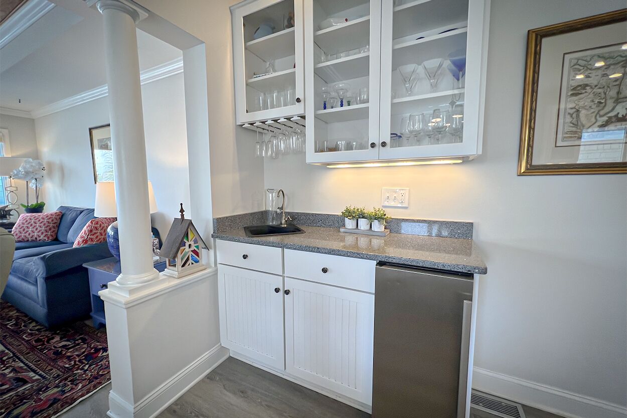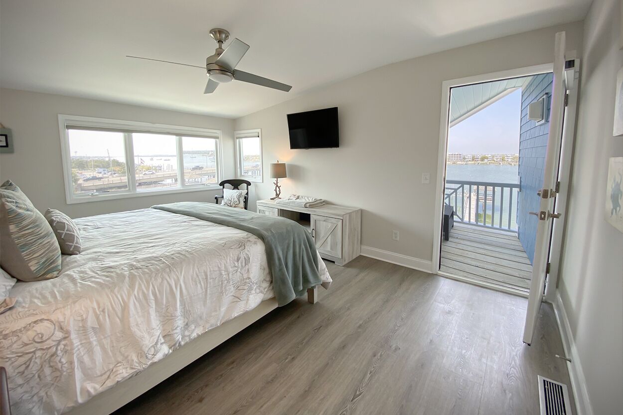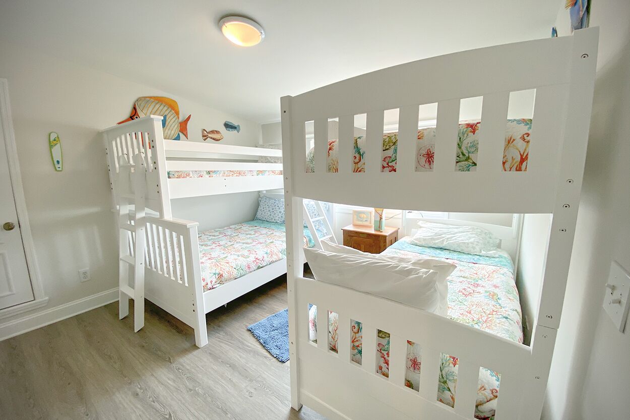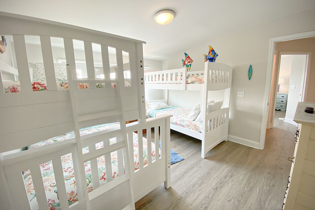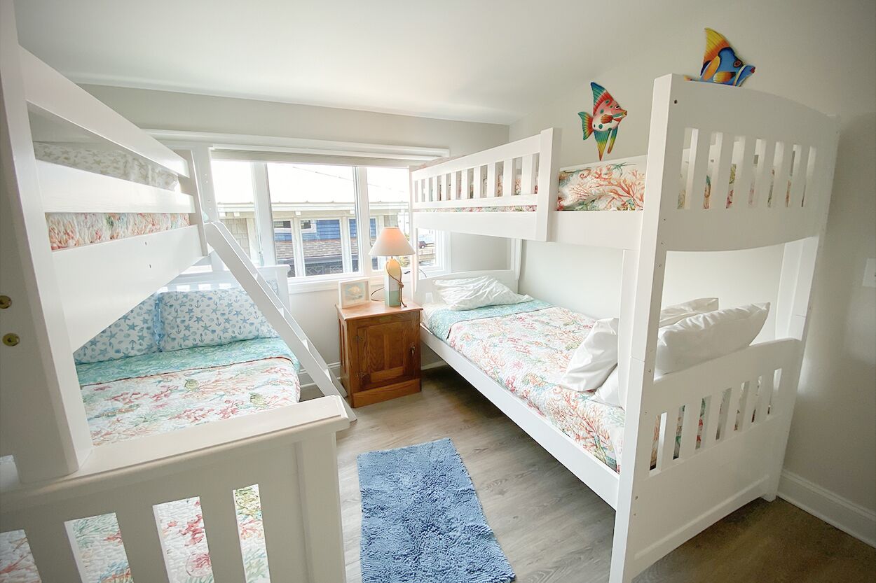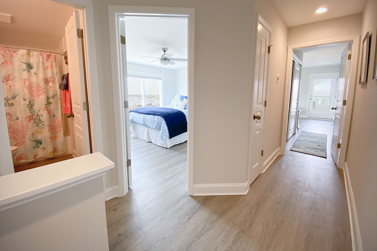 Experience the island lifestyle, live like a local! 4Br/3.5ba waterfront duplex. Relaxing 4br/3.5ba waterfront duplex with amazing sunset views, dock access, boat slip and private elevator. Located in the heart of Wrightsville Beach, just park the car, put your flip flops on, and have everything you need within walking distance: public beach access, Roberts Grocery store, local shops, several local restaurant options and more!Experience the island lifestyle at this incredible waterfront property located in the heart of Wrightsville Beach. Recently updated with a private elevator and only steps to the beach, local shops, and several dining options, The Blue Pearl offers everything you need to live like a local. Catch a sunset or cast a line from the dock. Bring your boat as the 23 ft. boat slip is included for guest use. **Slip is located between the bridges, so the tides can prevent T top boats from fitting due to bridge clearance heights** **Construction on the South Banks Channel Bridge may affect access to the dock. Please contact our office directly if planning to bring your boat.** The main level provides a welcoming front porch plus the bright and open concept living, dining, and kitchen areas, all with amazing views of Banks Channel. A fully stocked kitchen and wet bar include all the comforts of home. A powder bath and elevator access complete the main level. Make sure to shoot the island breezes from the rocking chairs on the waterfront deck after a long day out on the beach or out on the waterways. Enjoy well deserved time with family and friends with a waterfront meal together on the spacious back porch. The fully stocked kitchen and grilling area make preparing the fresh of the day a breeze. On the third floor you'll find the waterfront master suite bedroom with a King bed, private deck, incredible views, Roku smart TV, and an updated, spa-like master bathroom with roll in shower and separate freestanding tub. Truly the perfect spot to unwind after a fun filled day on the beach. The Elevator access and the laundry room complete this floor.The top level offers an additional master bedroom with king bed, private bathroom, smart Roku TV, and private balcony so you can wake up to some of the best views on the island. A queen bedroom includes water views and a Roku smart TV. The last bedroom is a bunk bedroom with a Twin over Twin bunk bed and a Twin over Full bunk bed. A shared hall bathroom completes the top floor **Please note there is NO elevator access to the top level**The ground level includes the dock with gazebo, boat slip, and waterfront deck with sitting area. The covered back patio provides a cool retreat from the sun with outdoor shower and fenced in backyard creating the perfect spot to have that waterfront cookout you've been dreaming about. You'll also have access to kayaks to enjoy exploring the beautiful waters, as well as bikes to cruise around the island. The garage has parking for 2 vehicles, and extra full size refrigerator, and all the beach equipment you'll need. Elevator access is on the ground level, adding convenience for loading your groceries and luggage upstairs. Driveway parking for 2-3 more vehicles (depending on vehicle size). Any additional vehicles that do not fit at the property must park in paid public parking.Parking instructions:Parking is on left side when facing the house. Parking for 4-5 vehicles, depending on vehicle size.INCLUDED: WIFI, fully stocked kitchen, paper goods and ALL linens, including all bedding + bath + beach towels to save you the hassle/cost of renting them separately ($200-300+ value)! When you arrive, beds will be made with crisp, fresh linens and complete sets of fluffy towels will be available. Beach bikes, cooler, beach cart and beach accessories are also provided for your enjoyment.You must be 25 years or older to rent this property.Please notify our office if you’re planning to bring a pet as the following pet policy will apply: A maximum of 2 pets are permitted. The pet fee is $200 per pet plus tax. Pet fee will be added after booking. No dogs allowed without prior approval and payment of a non-refundable pet fee, per pet. Undisclosed dogs will incur a minimum $300 fine plus tax. Violation of our 2 pet maximum policy will incur a minimum of $300 plus tax charge, per pet, plus the tenant will be in material breach of the lease and grounds for eviction will apply. The pet must be removed from the premises immediately, and your reservation may be canceled with no refund given.**Please note: All service animals & emotional support animals must be disclosed at the time of booking to allow the agent to collect records and documentation to support the request in accordance with all state and federal laws. A pet fee will NOT be charged for true Service Animals.**No pets are allowed on the beach strand from April 1 through September 30. Pets must be on a leash if on the beach strand from October 1 through March 31.Sea Scape requires that all reservations have a signed rental agreement on file that will be emailed to you after booking. Once you've booked your stay, you will have 48 hrs. to complete the rental agreement to confirm your stay. Sea Scape reserves the right to cancel your booking if the rental agreement is not completed within 48hrs.Booking a vacation rental can be stressful! Our goal is to make the process as easy as possible for our guests and to provide excellent customer service every time. Please contact us with specific requests, and we'll do our best to help!