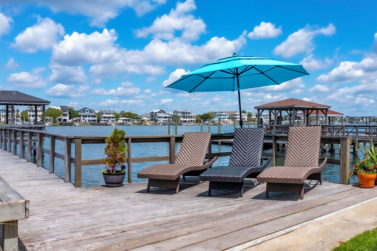 Experience the island lifestyle, live like a local! 4Br/3.5ba waterfront duplex. Relaxing 4br/3.5ba waterfront duplex with amazing sunset views, dock access, boat slip and private elevator. Located in the heart of Wrightsville Beach, just park the car, put your flip flops on, and have everything you need within walking distance: public beach access, Roberts Grocery store, local shops, several loc...
