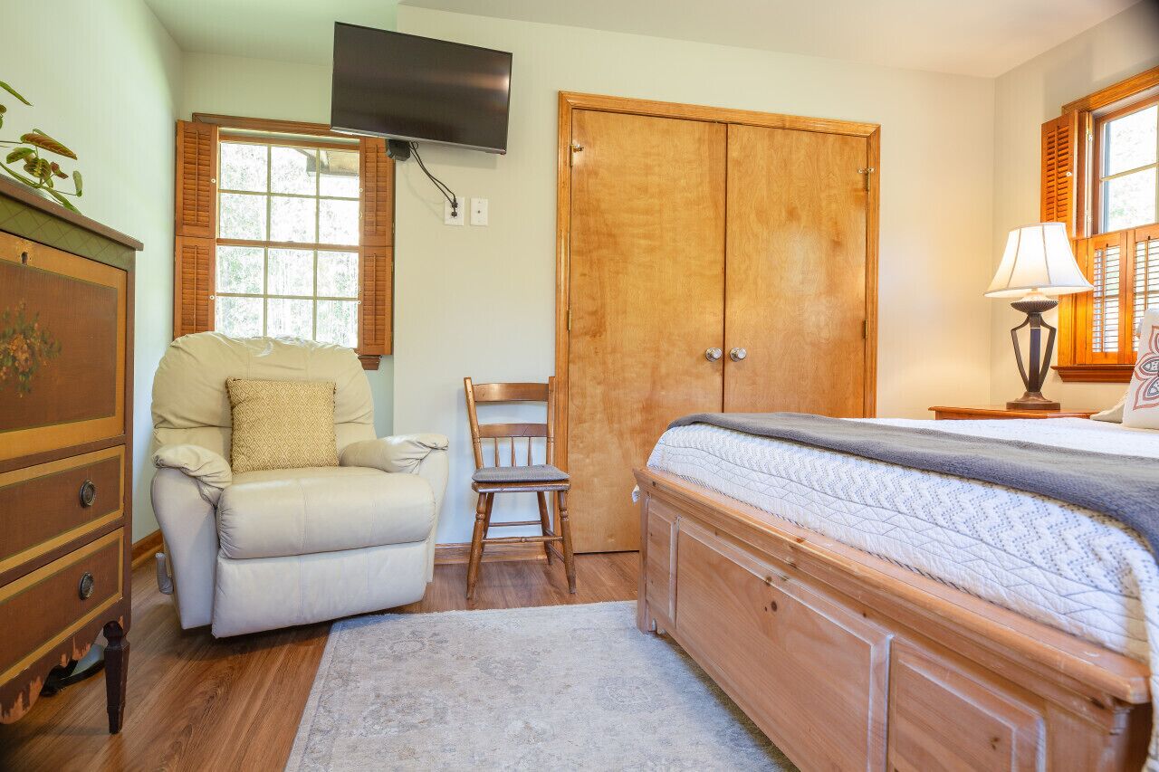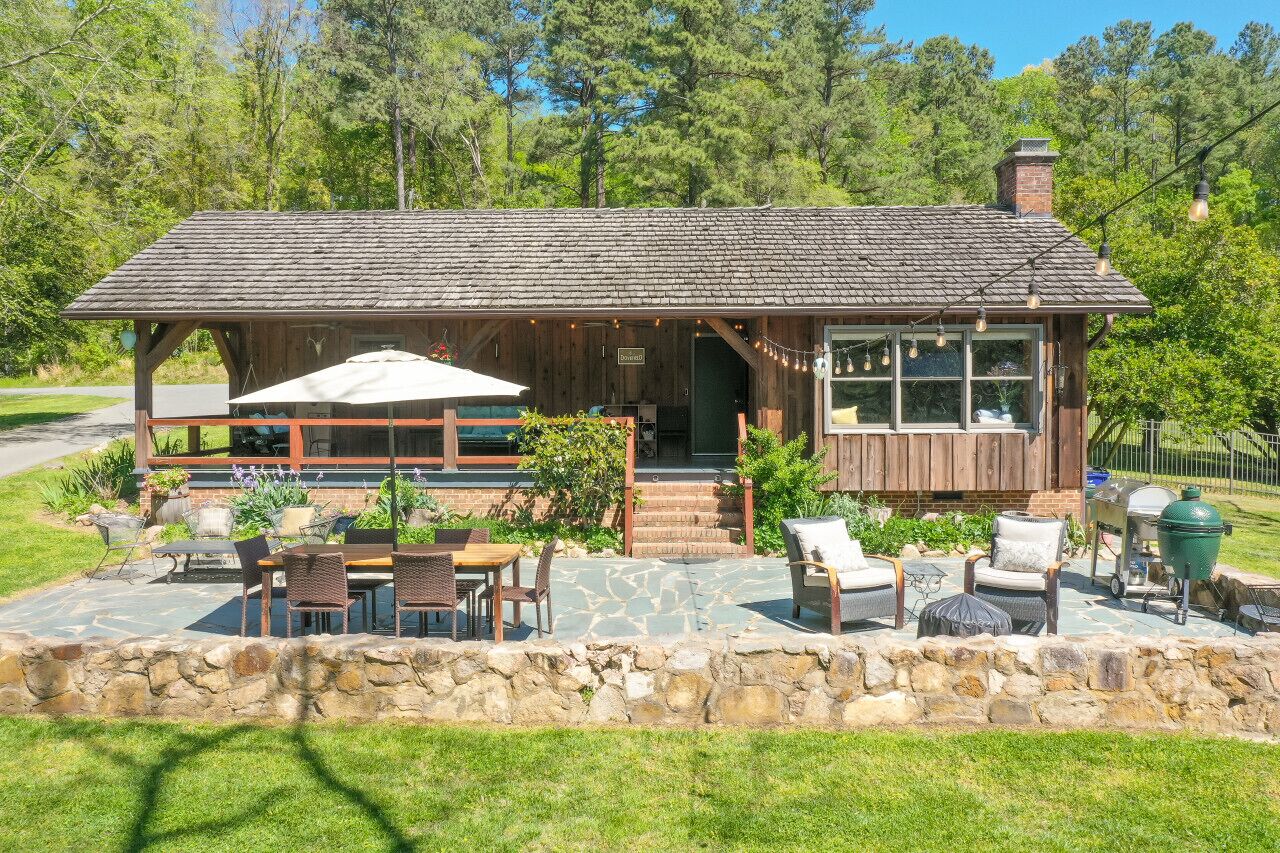 Escape to nature, unwind and relax Unwind among the serenity of this ultra-private natural paradise just 3 miles from the heart of downtown Chapel Hill, 15 minutes from Duke, and 30 minutes from RDU Airport and NCSU--with groceries and restaurants under a mile away!Acres of sprawling meadow, walking trails, swimming pond, fenced backyard, compact chef's kitchen+Big Green Egg & propane grill, wide open skies, seasonal thunderstorms, wildlife sightings & more.All queen beds, primary bedroom with full bath ensuite Dovefield Cottage is picturesque country living meets modern convenience in a premium location to UNC/downtown Chapel Hill, Carrboro and more. Wake up to your own private viewshed over field, pond, and forests as you escape from stresses to find a slower pace. The 1970s home (boasting all-new-everything as of spring '22) is situated in the heart of a carefully-restored historic homestead in the 'rural buffer zone' of the town of Chapel Hill, with full guest access to dozens of acres of open meadow and private forested walking trails-- making this space truly one of a kind. Dogs of course love it here, too!We are situated in the south of Chapel Hill....1.4 miles (3 mins) to Carolina Meadows Retirement Community3.2 miles (6 mins) to UNC13.5 miles (20 mins) to Duke 19.2 miles (23 mins) to RDU International Airport27.8 miles (30 mins) to NCSU53.8 miles (57 mins) to Greensboro ColiseumGuests enjoy full use of the cottage and surrounding property, including porch, front & back patio, propane grill & Big Green Egg, plus fields, .5 mile walking trail loop, pond and dock.** Owners live in separate dwelling on-property not visible from the cottage, so the space is very private. The cottage is on a secluded private drive with any visible traffic or activity limited to occasional yard maintainence and delivery vehicles. (Guest access does not include green-roofed storage barn, or other outbuildings. These are not living spaces). **E-SIGN WAIVER REQUIRED FOR POND USE, contact host for info**Owners reside on site and may be encountered walking or completing yard work and other maintenance, though we value the privacy of our guests and limit interaction unless needed.Just 3 miles from downtown Chapel Hill/UNC campus and ten minutes to I-40, the cottage is tucked into a verdant natural setting that disguises any awareness* of surrounding development and commercial conveniences nearby (*beyond occasional traffic sounds from road 1/2 mi through woods, and helicopter flights headed to/from nearby UNC hospital). There is a shopping center approximately 1 mile away that includes several (excellent!) dining options, groceries and more. Also sited conveniently to Governor's Club, Southern Village, Fearrington Village, Briar Chapel community, and Meadowmont neighborhoods.Rideshare platforms (Uber, Lyft, etc) are a convenient option and used often from the cottage. There are also park-and-ride opportunities within five miles for sporting events at UNC. For scheduled airport pickup/dropoff, we recommend Townie Transportation.Our kitchenette includes compact fridge and freezer drawers, which allows maximized use of countertop space for shorter stays and smaller groups. Please be advised there is no full-sized fridge available when shopping and packing groceries. We are happy to supply an additional drink cooler if needed.Maximum of two dogs (No cats, please). No pets on furniture. Please note our fence is *not* secure for smallest pups.