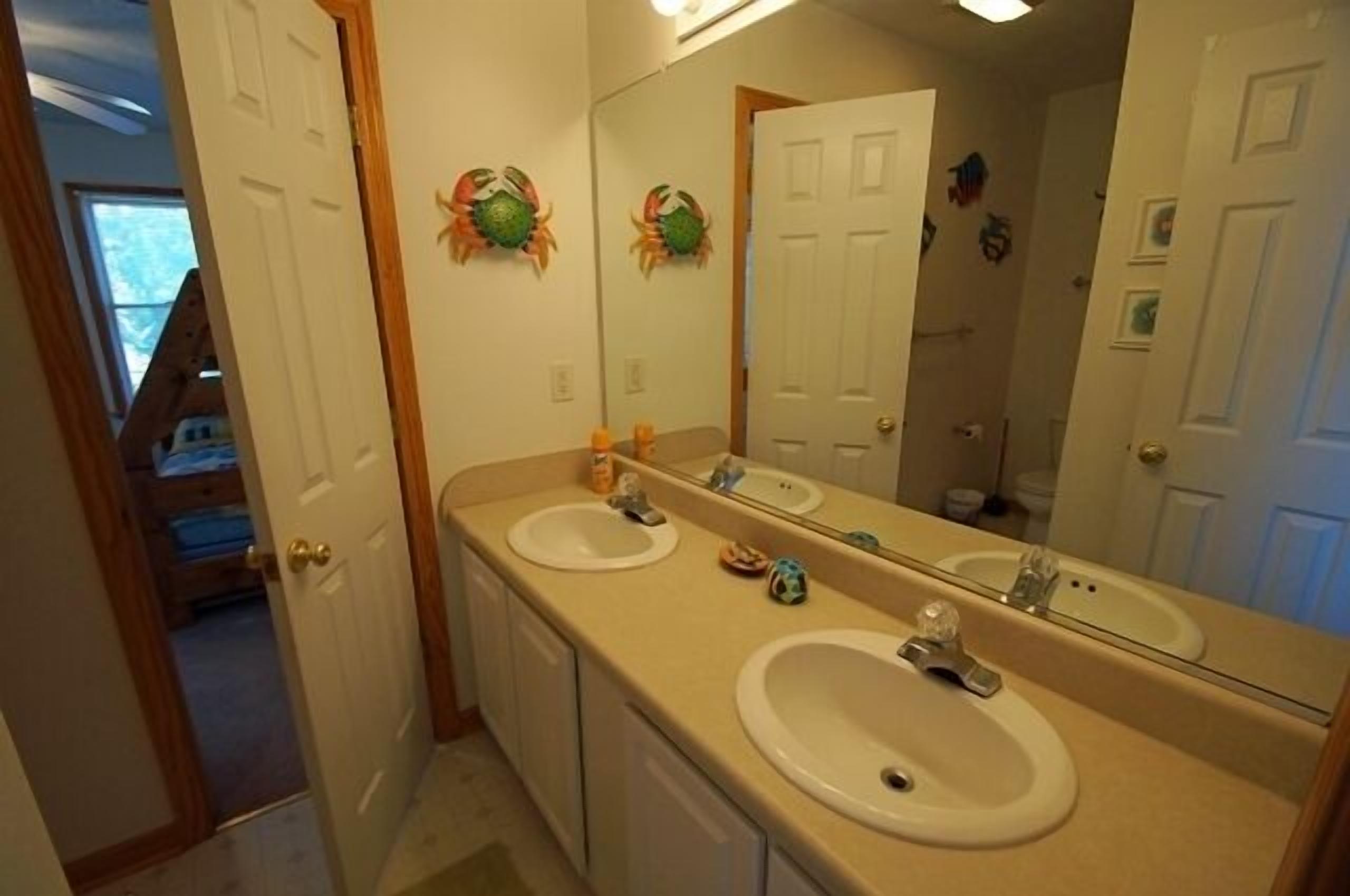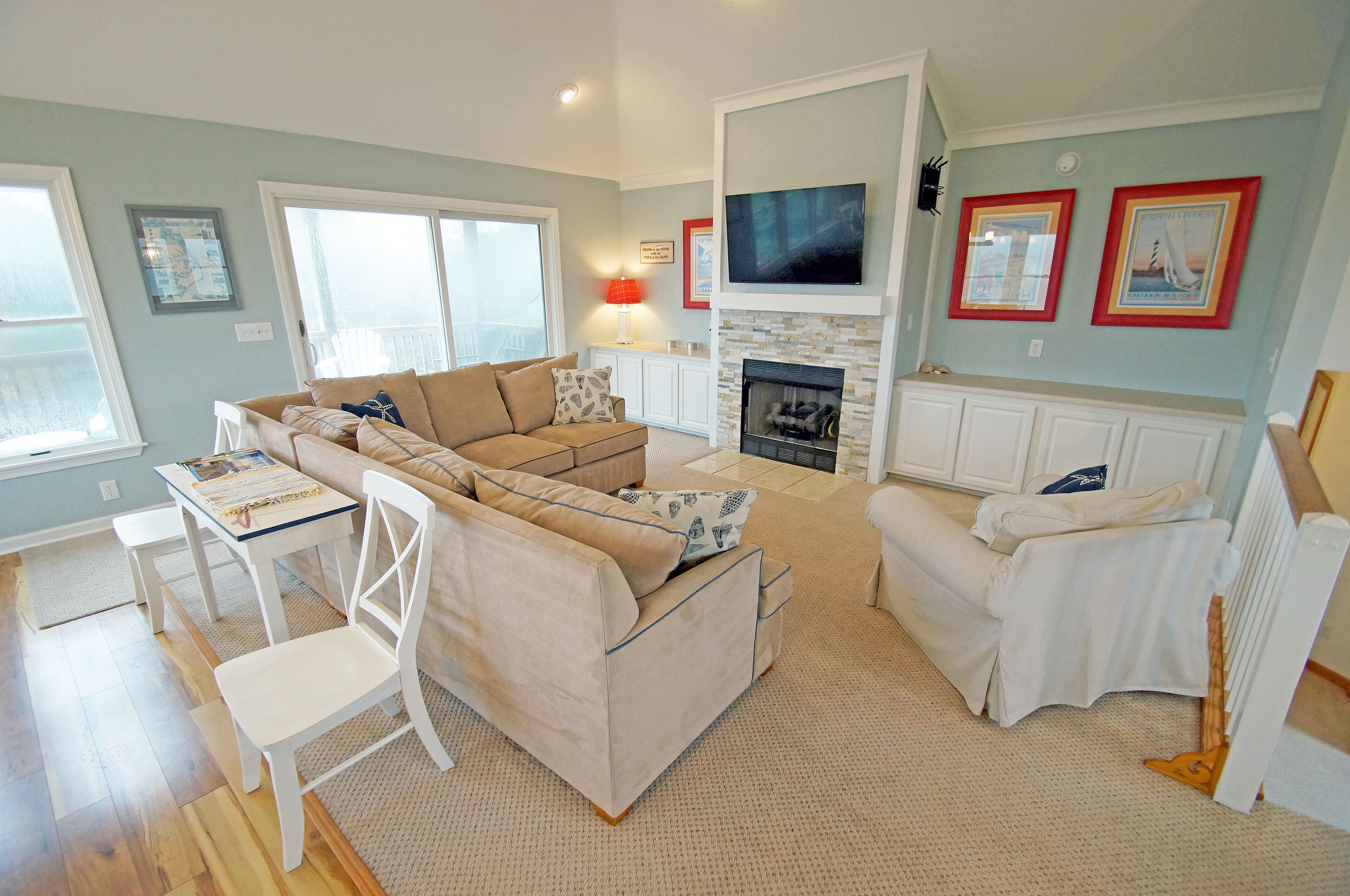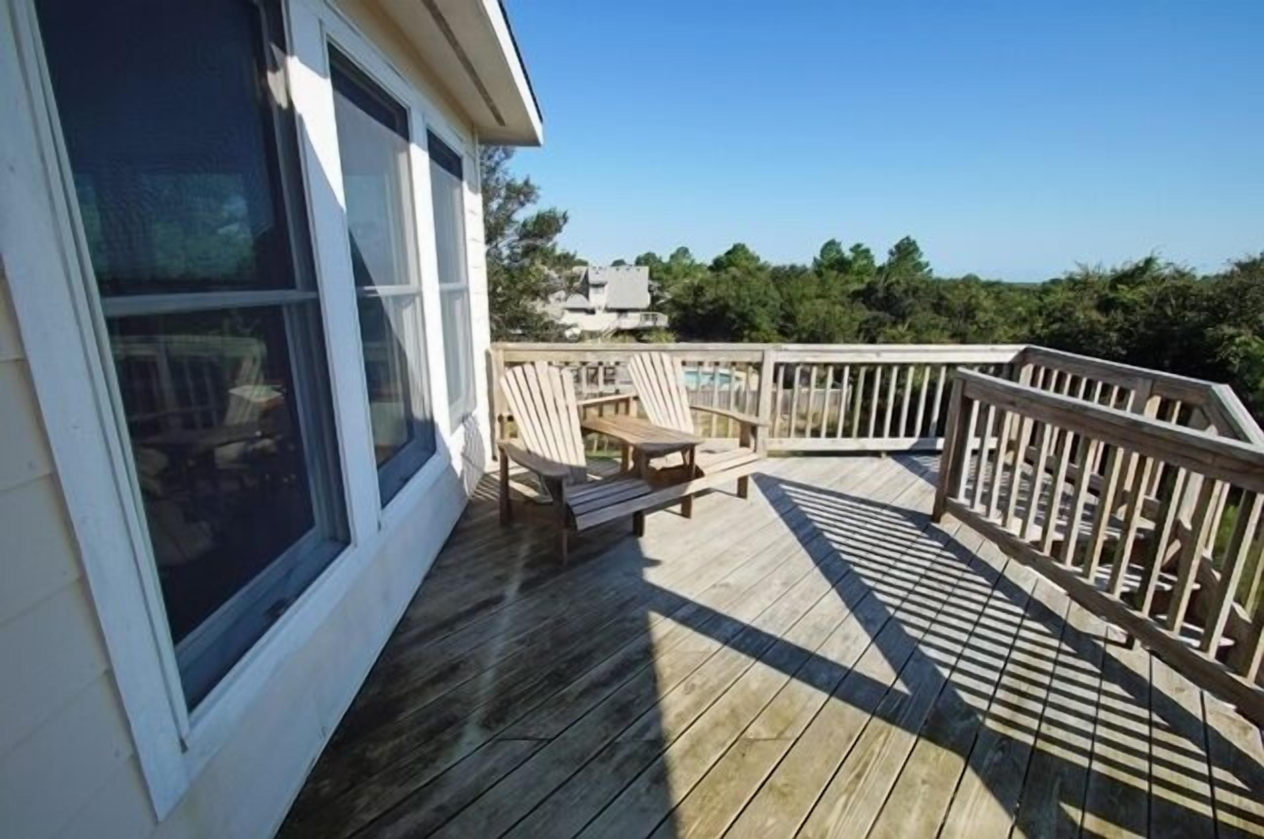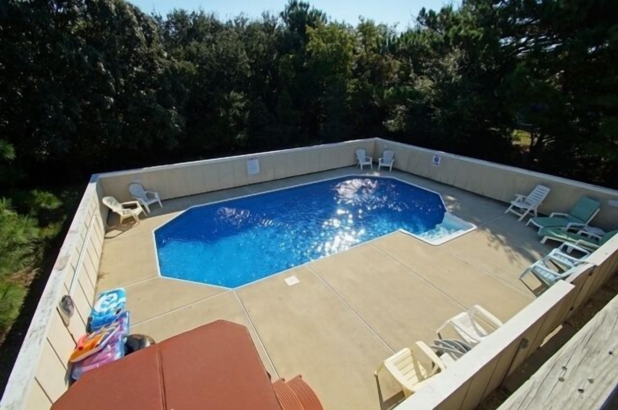 SS272- 5 Bedrooms Private Pool & Hot Tub Community Tennis and Sun Decks!! Homeaway From Home is an exquisite Outer Banks vacation home with a stunning beach decor. Here you'll find two master suites, a 14 x 30-foot private pool, 8 person hot tub and huge sun and covered decks! The interiors are absolutely priceless and modern with your comfort being the most important. The kitchen, dining room and living areas are under a cathedral ceiling with direct deck access over-looking the large private pool and hot tub. On the ground floor is a second living area with an over-stuffed wraparound sofa along with a stereo, DVD and direct access to the pool and hot tub.Your family will find Homeaway From Home to be simply striking, modern and spacious. Property Bedding: 3 Queens, 2 Bunk-Sets, 1 Duo-Bunk with Trundle.Upper Level: Large kitchen with granite counter top, breakfast bar with seating for 4, stainless steel appliances and hardwood floor. The stunning dining room has seating for 10 with views of the private pool and hot tub. The living area features a cathedral ceiling, flat screen TV, DVD, ceiling fan, over-stuffed sofa Direct deck access to a wide open sun deck.Upper Mid-Level: On this level you'll find a half bathroom Queen master suite with private bath. The bedroom has a walk-in closet, direct deck access, flat screen TV, ceiling fan and a full bathroom with tub and shower.Mid-Level: This level provides the main entrance to the home along with 3 bedrooms and the laundry area.The first bedroom provides a duo-bunk with trundle, ceiling fan, flat screen TV and connects to a Jack 'n Jill bathroom with a tub and shower. Connecting to the Jack 'n Jill bathroom is a bedroom with a queen bed, ceiling fan and direct deck access overlooking the private pool and hot tub. A queen master suite greets you featuring direct deck access overlooking the private pool and hot tub, TV, ceiling fan and a full bathroom with tub and shower.Ground Level: Here you'll enjoy the 2nd living area completed with direct access to the huge private pool and hot tub area, a flat screen TV, stereo with CD player and VCR and a wrap-around sofa. There is a full bathroom with a tub and shower along with the 5th bedroom. This bedroom provides two bunk sets!Outside: A beautiful 14 x 30-foot private pool8 person hot tubEnclosed outdoor showerGas grill and charcoal grill.2024 Pool Date April 13 to October 19.