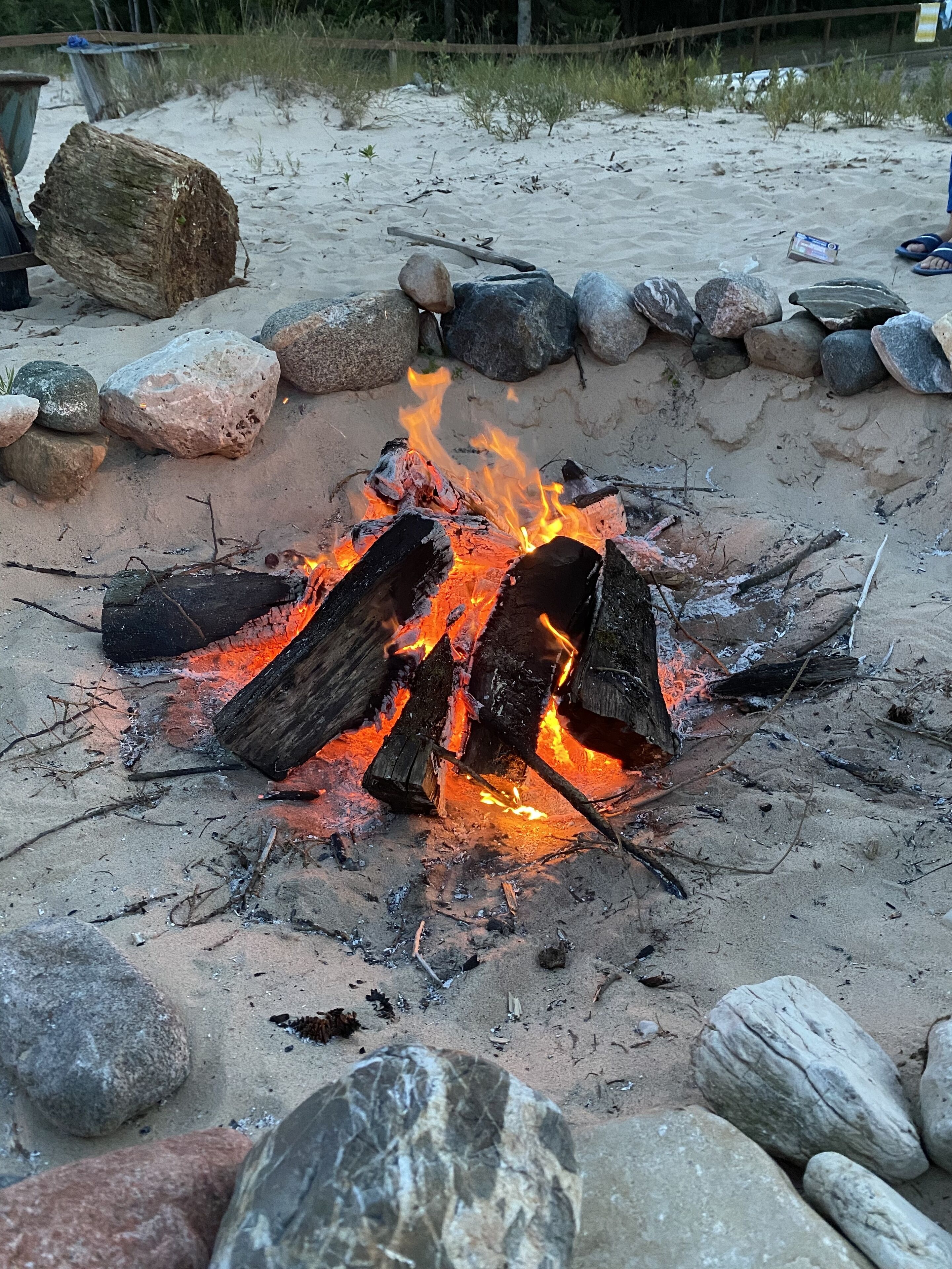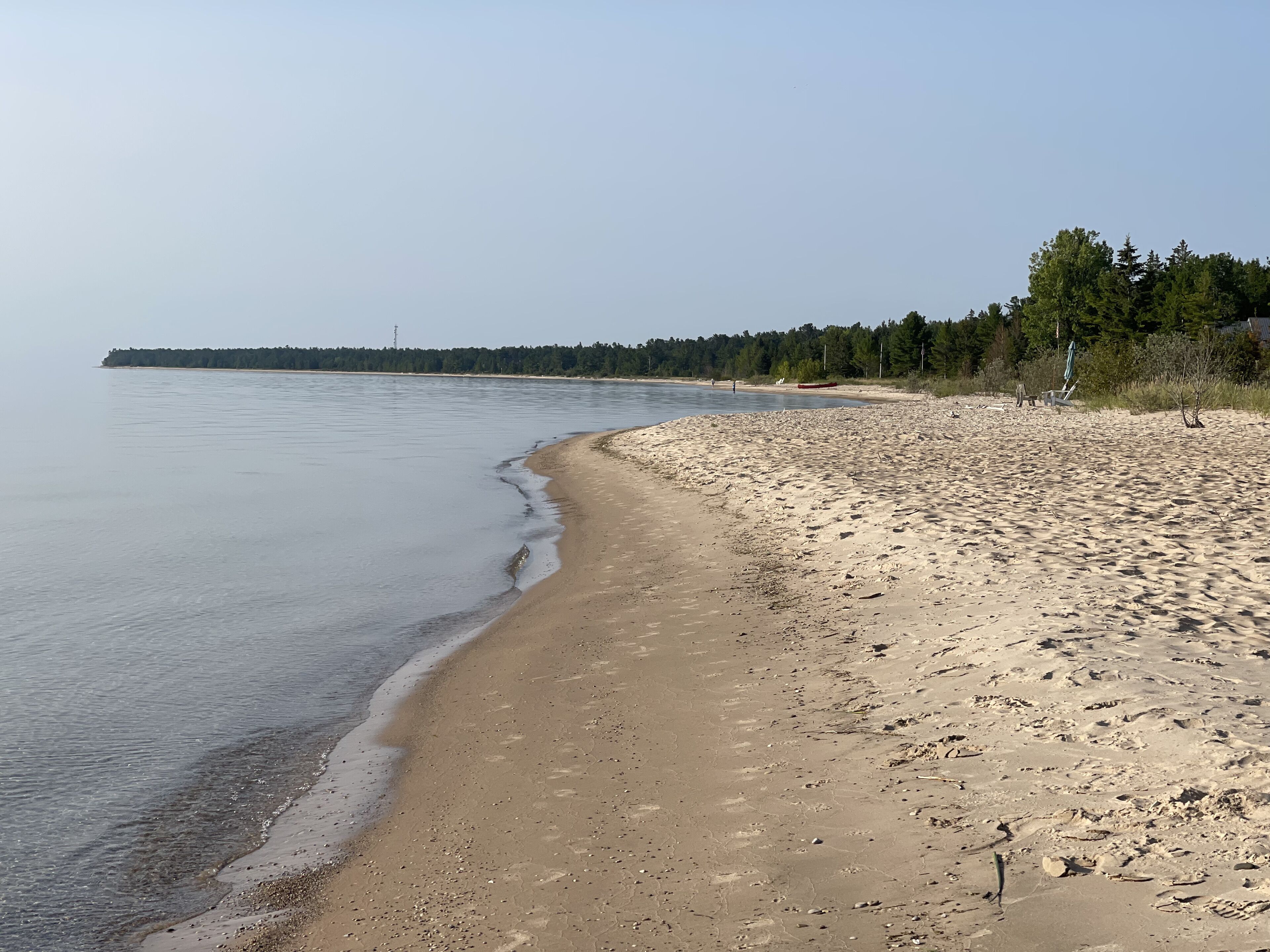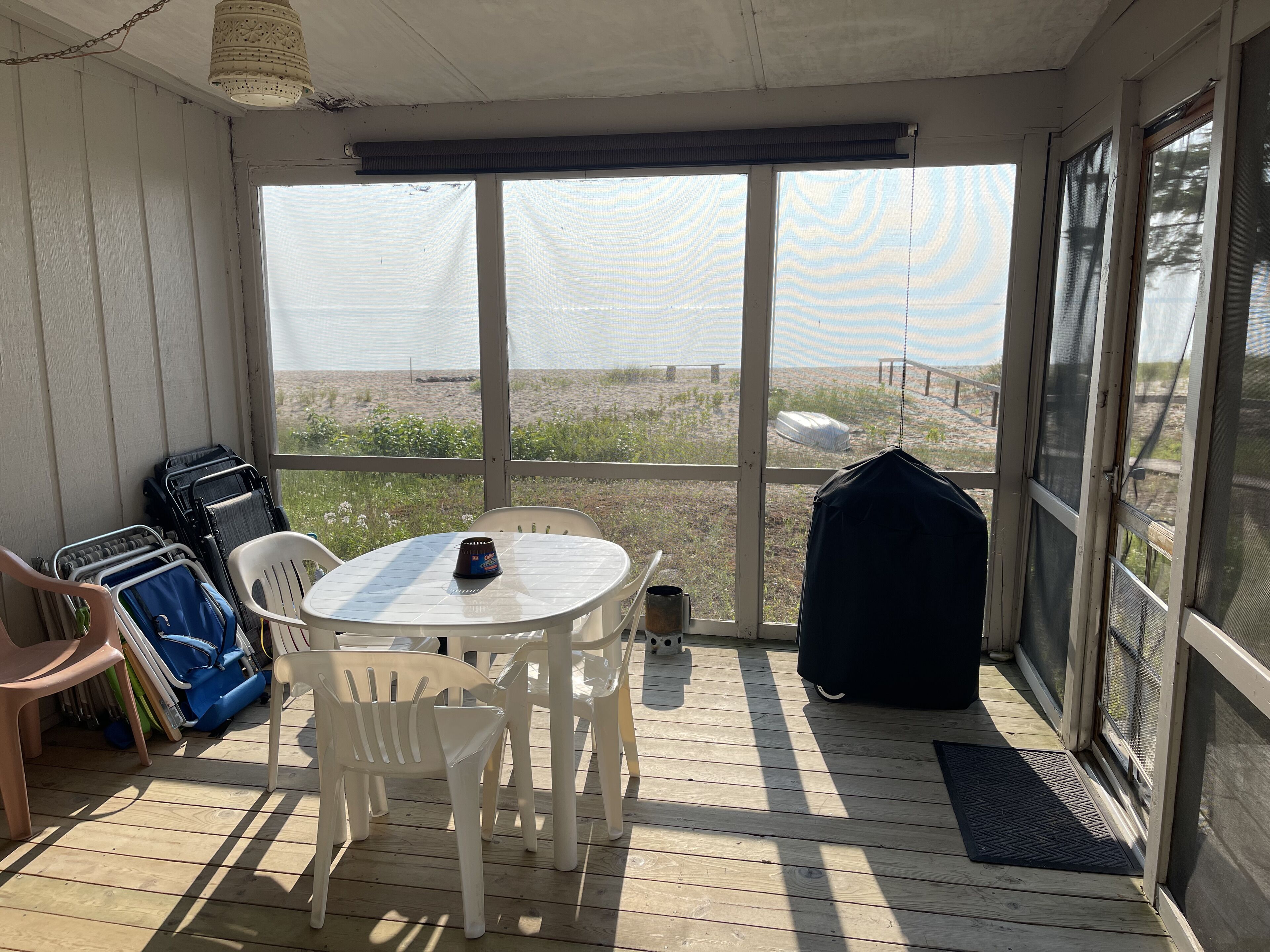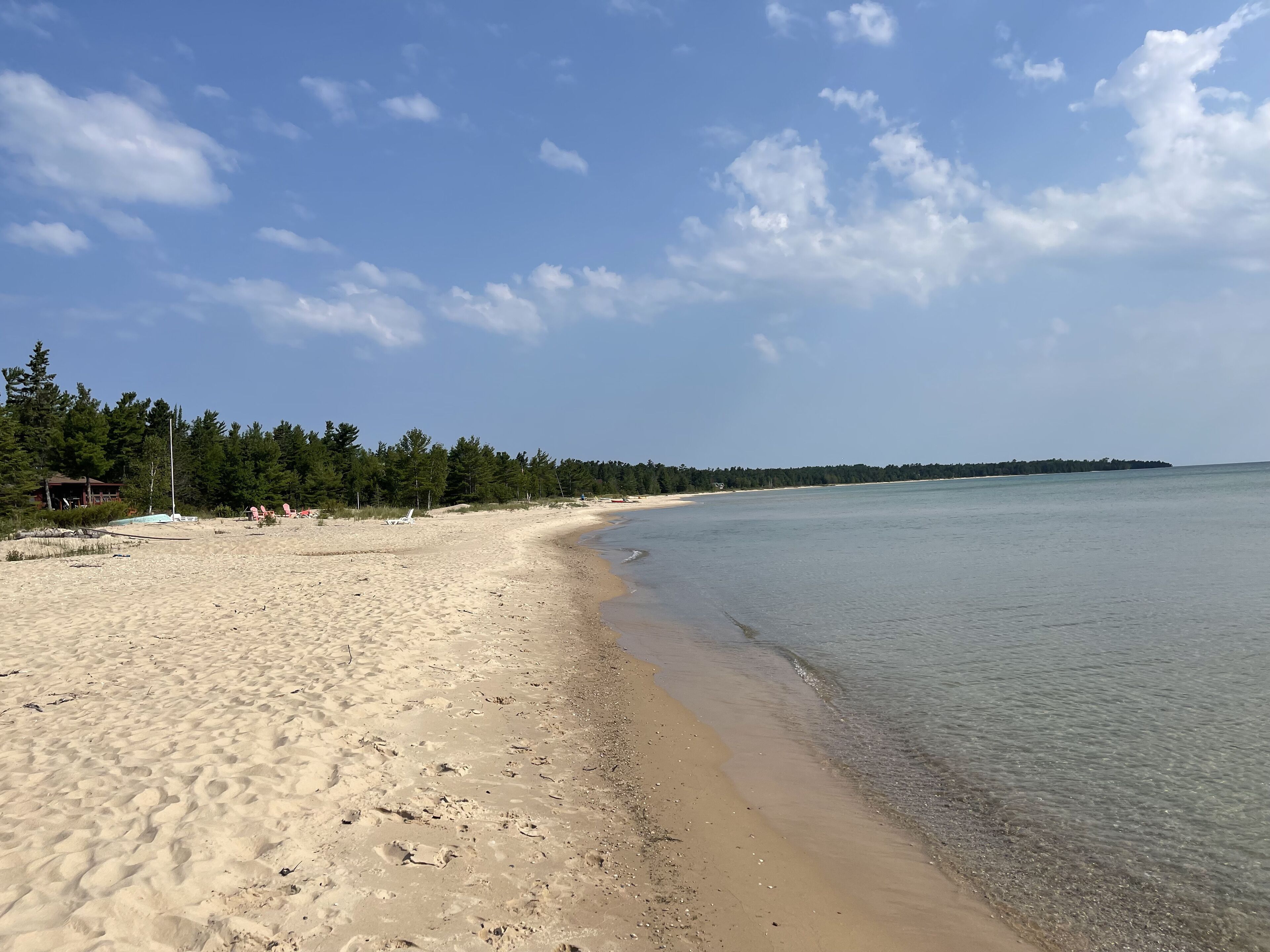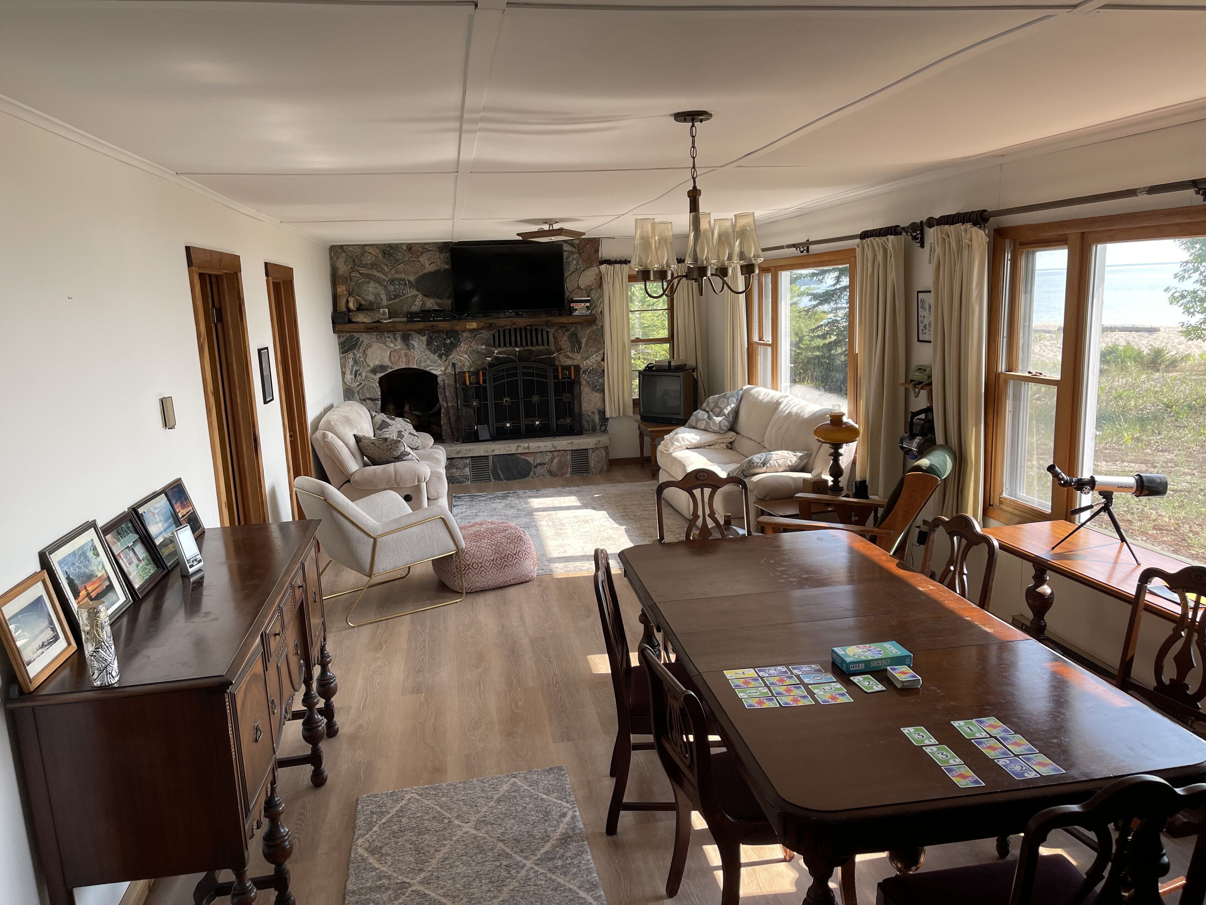Lakefront Cottage on Soft Sand Located in the middle of Sand Bay, 5 miles from down town, 3 miles from the golf course and steps from150 feet of sandy private beach. There is enough room for two families or more in this 1400 square foot cabin with 4 bedrooms and 1 bathroom. The large cabin easily sleeps nine, with the addition of two cots for extra sleeping. You can enjoy preparing for your days adventure as you fashion meals in our newly renovated eat in kitchen with dishwasher and garbage disposal. The kitchen is fully equipped with microwave, toaster, Instant Pot and blender. The evening can be spent enjoying time in the screened in porch, on the outdoor deck or in the living room where you can enjoy a fireplace, Bluetooth TV, DVD/VCR, WIFI and lots of books and board games. For those that like to cook outdoors, we have a charcoal grill. A new washer and dryer is available to keep your clothes clean. We ask that guest bring their own bedsheets, pillow cases and towels. Comforters, blankets and pillows are provided. Linen Service is available for additional charge. Rentals are Saturday - Saturday only