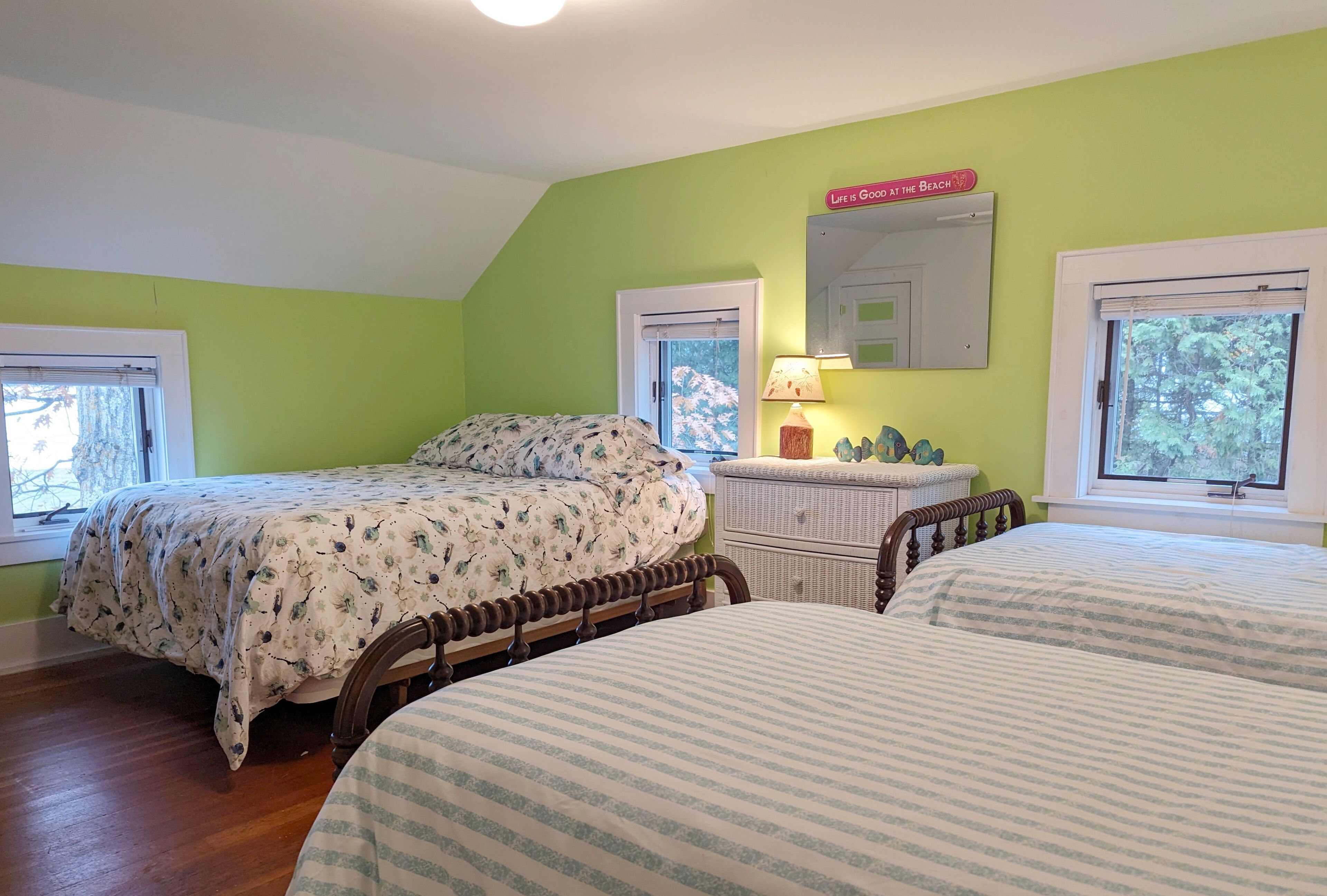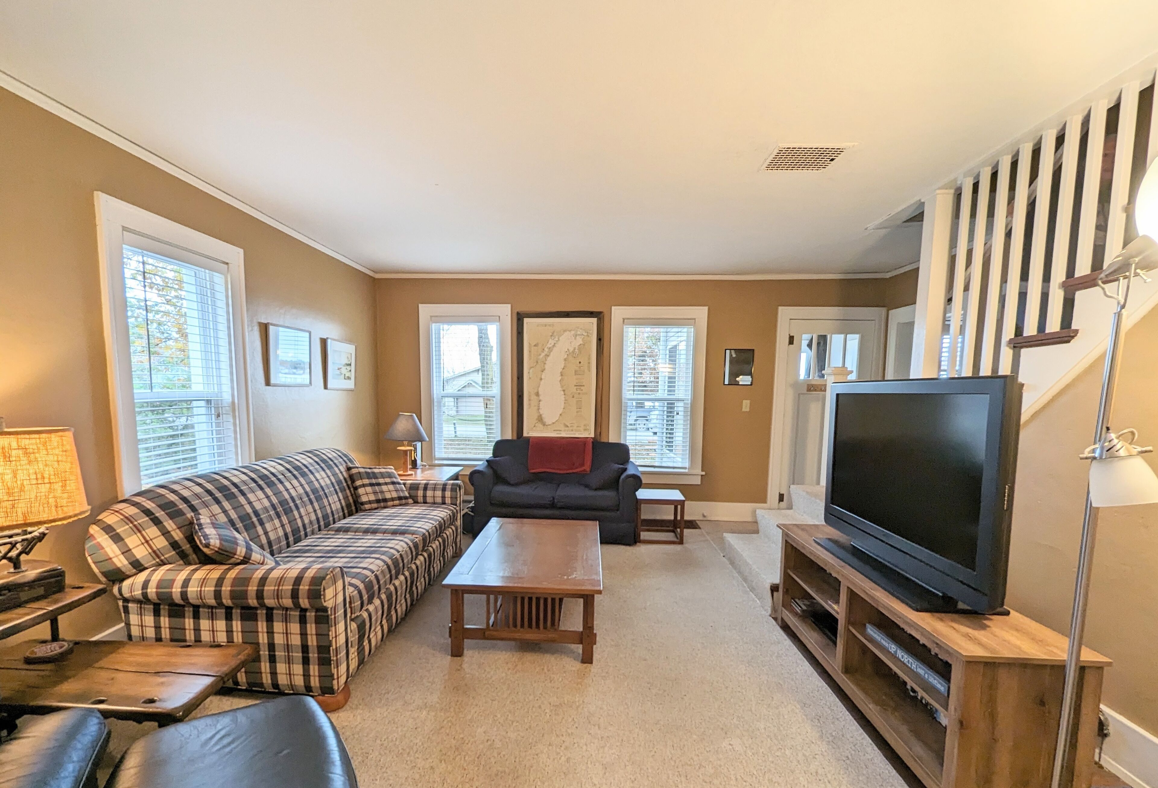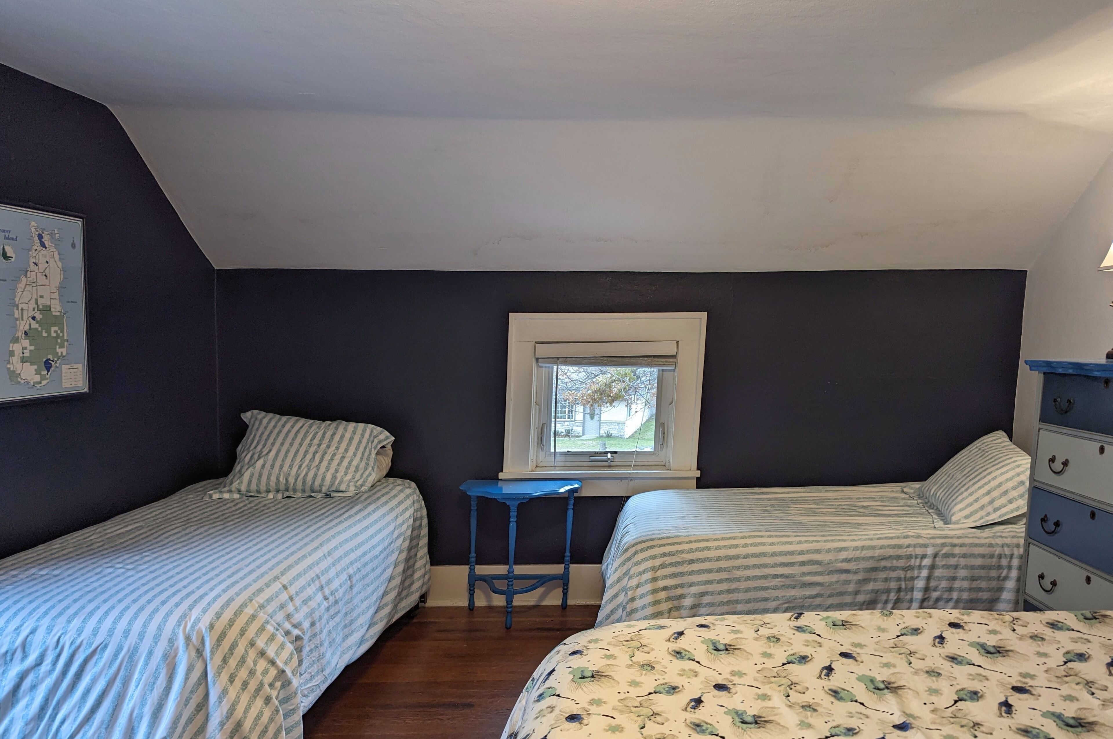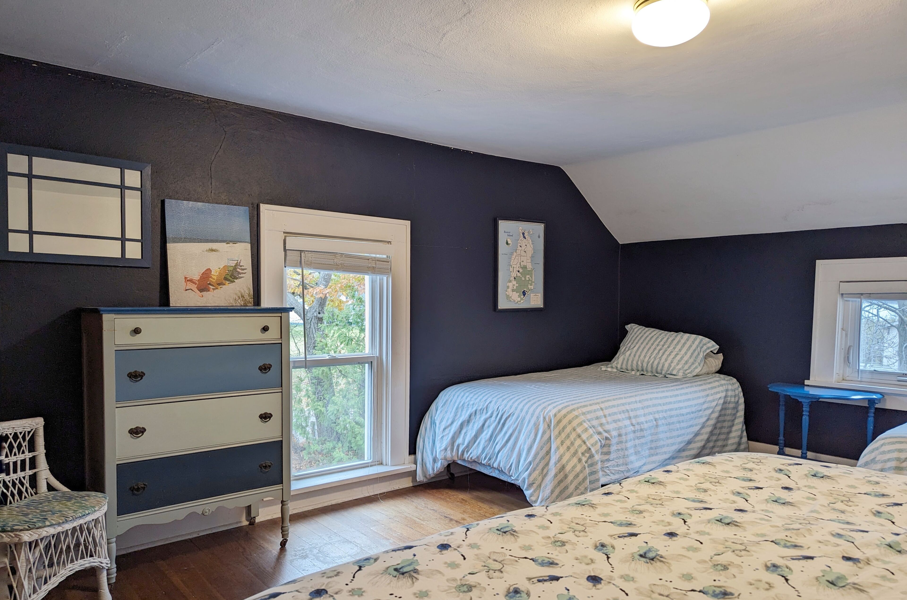 Paradise Bay Retreat Welcome to the amazing Harbor district of Beaver Island, a vibrant location just past the Whiskey Point Brewing Company and McDonough's Market. This charming historical home offers a breathtaking view of the harbor and is encompassed by nature's wonders; stroll through a birding trail right from your doorstep or wander through a 27-acre nature preserve just a short 100 yard walk down the road. You'll have plenty of opportunities to bask in the beauty of the outdoors!Spend a blissful day relaxing in the hammock, or venture out to explore the nearby museum, lighthouse, toy store, brewery and deli. Feeling adventurous? The downtown area is just a leisurely stroll away, providing an array of restaurants, museums, and shops as well as various community events and concerts. Alternatively, you can visit the main public beach with kayaks, paddleboards, and jet-skis available for rent. If you are planning on bringing your boat, this is the perfect house for you, being just steps away from the northern municipal marina.Ideal for a large family or multiple families, this home features cozy and comfortable bedrooms to ensure a restful night's sleep. The first bedroom includes a king bed and 2 twins, while the second bedroom offers a queen bed and 2 twins. The main bedroom indulges you with a luxurious queen bed. What’s more, linens are included, ensuring your stay is hassle-free.Prepare delicious meals in the newly updated, well-equipped kitchen. With a coffee maker, toaster, microwave, oven range, dishwasher, and two full-size refrigerators, you'll have everything you need at your fingertips. For an extra treat, step out onto the bonus deck located right off the dining area. When it's time for a barbecue, you'll find a convenient gas grill ready for all your cookout delights. On cozier days, the snuggly screened-in porch offers the perfect spot to savor your morning coffee while still soaking in the captivating harbor view.Your convenience is a priority, so we've included a washer and dryer in the amenities, making laundry a breeze. Stay connected and share your incredible experiences with Wi-Fi available throughout the house and large yard. Book your stay now and get ready for an unforgettable adventure on Beaver Island!** Note ** There are 2 TVs, but no cable TV service. If you really want to stay inside, feel free to plug in your own Firestick, Roku, or Chromecast.