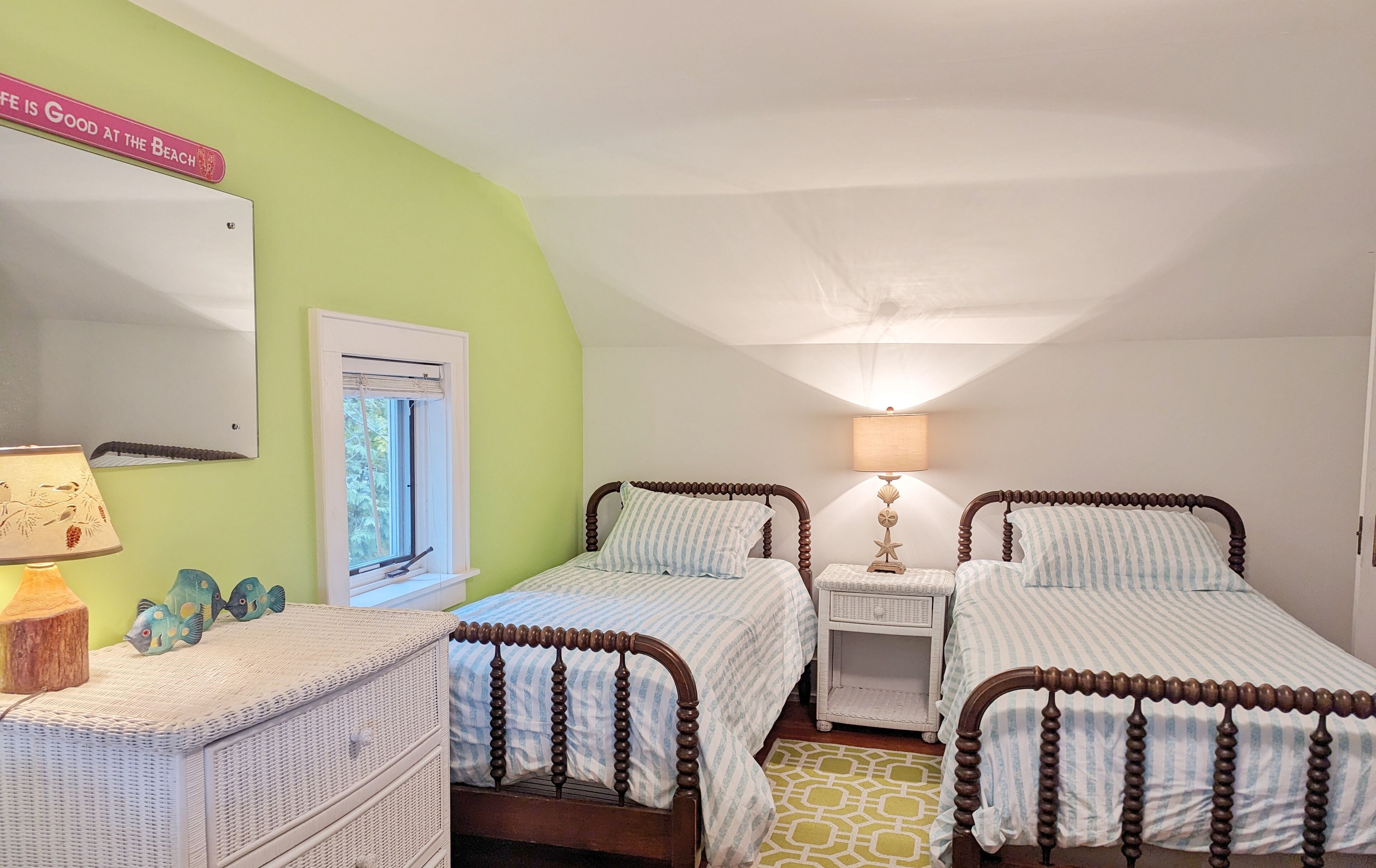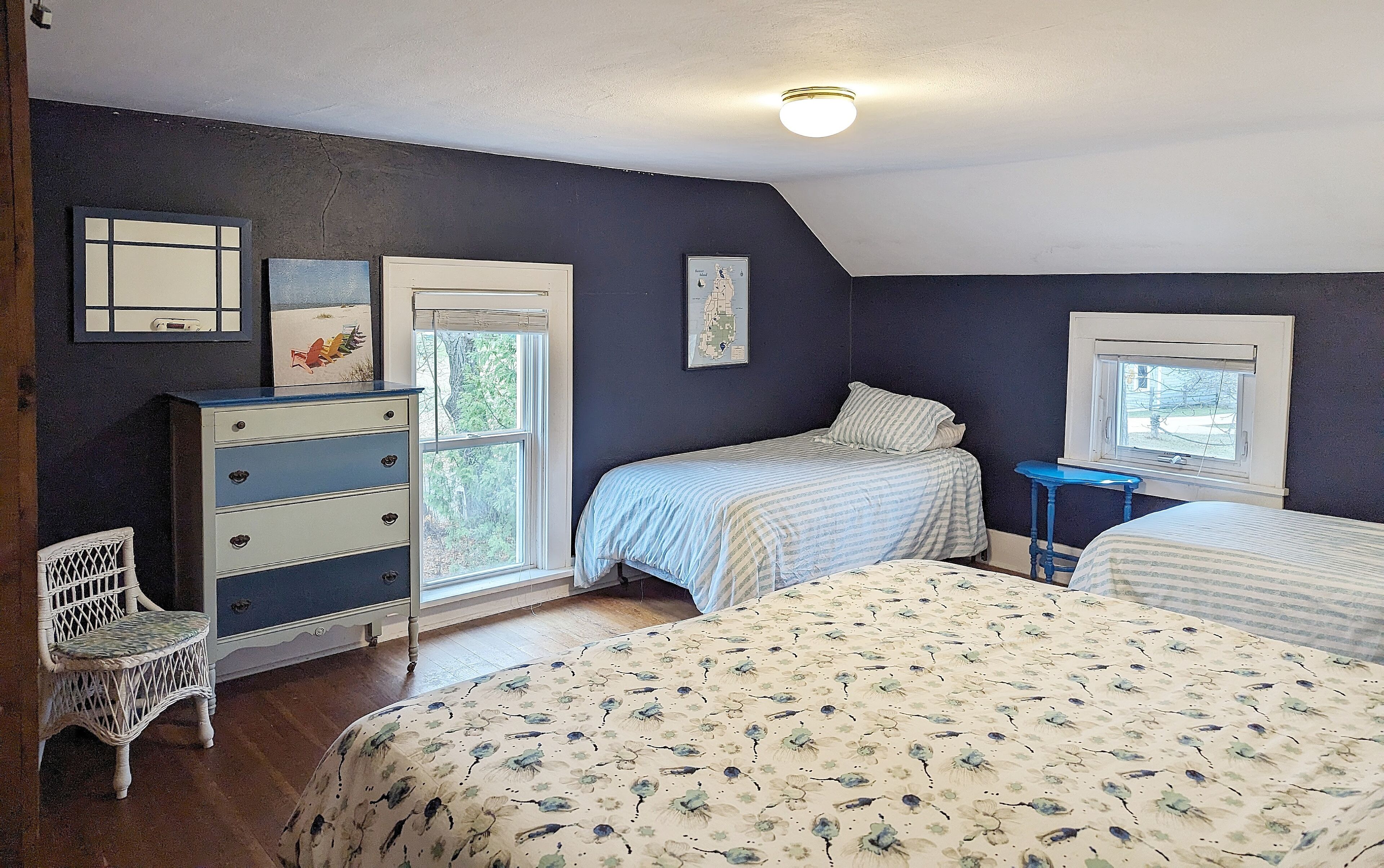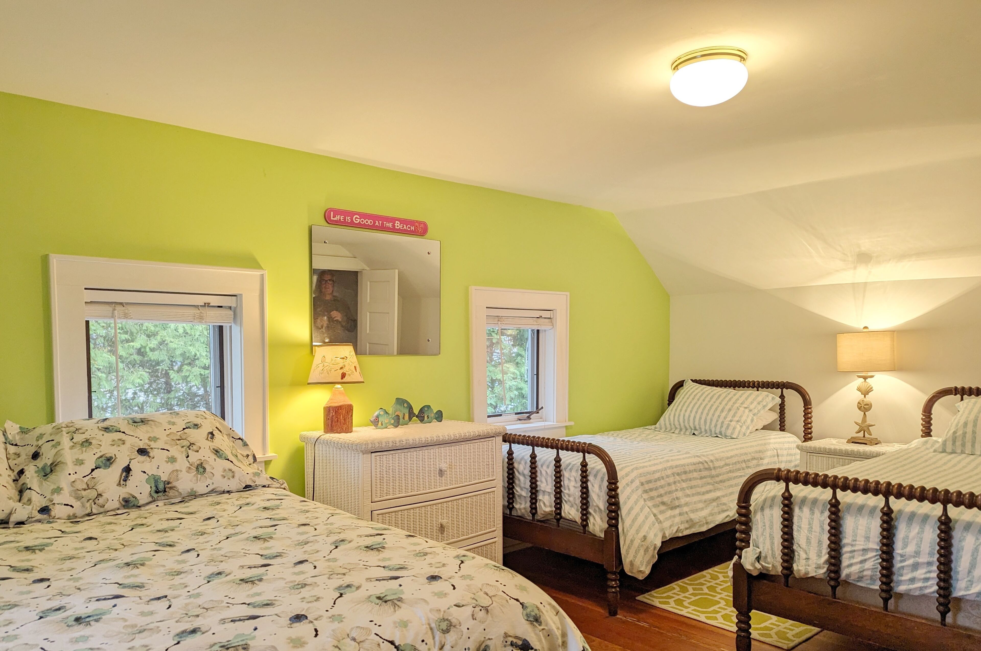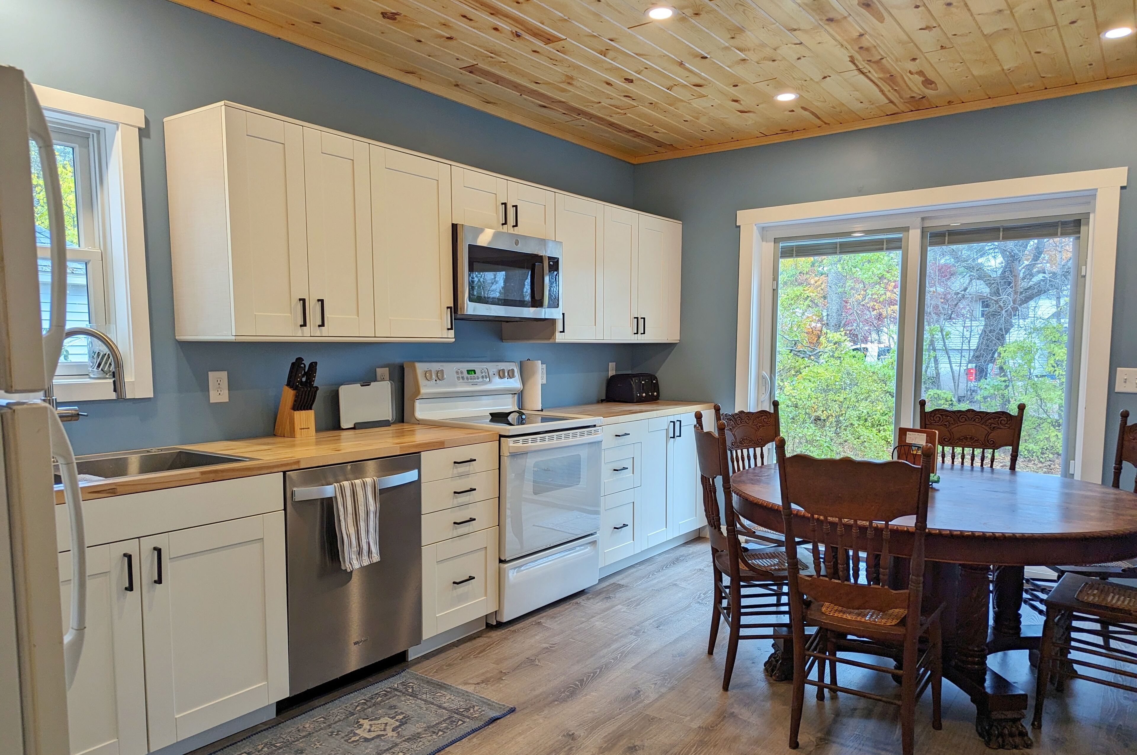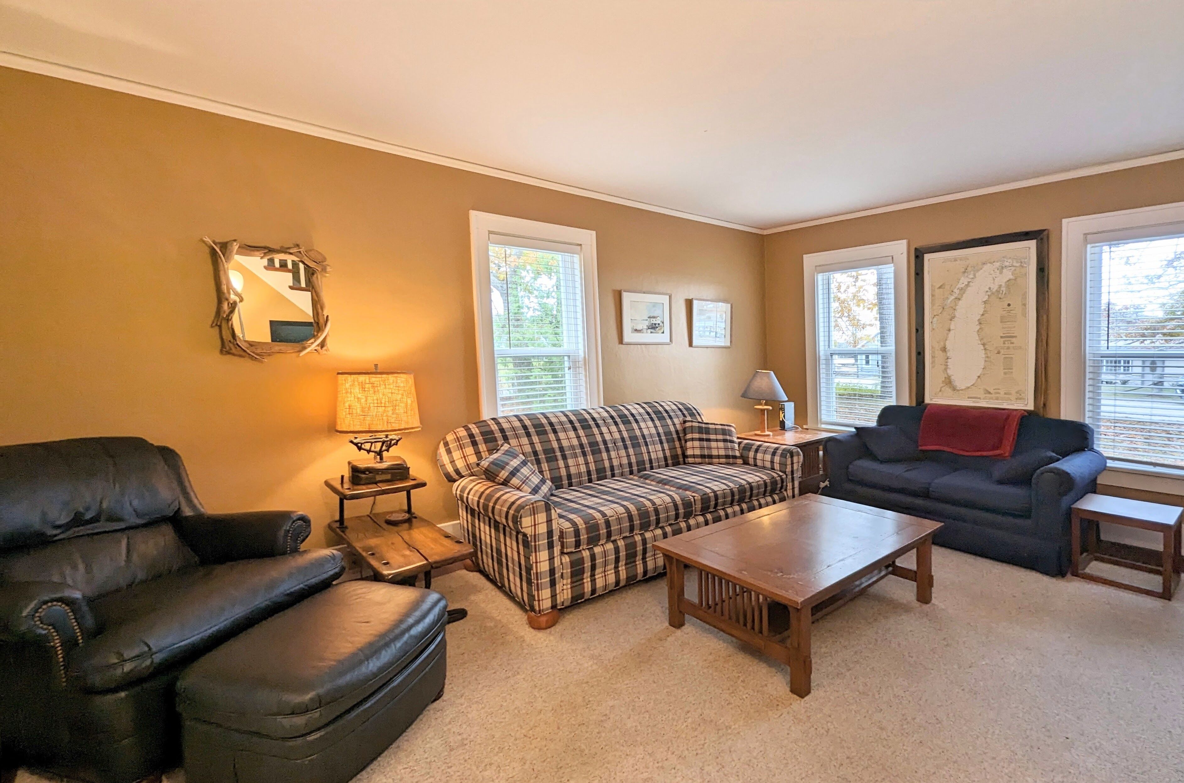 Paradise Bay Retreat Welcome to the amazing Harbor district of Beaver Island, a vibrant location just past the Whiskey Point Brewing Company and McDonough's Market. This charming historical home offers a breathtaking view of the harbor and is encompassed by nature's wonders; stroll through a birding trail right from your doorstep or wander through a 27-acre nature preserve just a short 100 yard walk down the road. You'll have plenty of opportunities to bask in the beauty of the outdoors!Spend a blissful day relaxing in the hammock, or venture out to explore the nearby museum, lighthouse, toy store, brewery and deli. Feeling adventurous? The downtown area is just a leisurely stroll away, providing an array of restaurants, museums, and shops as well as various community events and concerts. Alternatively, you can visit the main public beach with kayaks, paddleboards, and jet-skis available for rent. If you are planning on bringing your boat, this is the perfect house for you, being just steps away from the northern municipal marina.Ideal for a large family or multiple families, this home features cozy and comfortable bedrooms to ensure a restful night's sleep. The first bedroom includes a king bed and 2 twins, while the second bedroom offers a queen bed and 2 twins. The main bedroom indulges you with a luxurious queen bed. What’s more, linens are included, ensuring your stay is hassle-free.Prepare delicious meals in the newly updated, well-equipped kitchen. With a coffee maker, toaster, microwave, oven range, dishwasher, and two full-size refrigerators, you'll have everything you need at your fingertips. For an extra treat, step out onto the bonus deck located right off the dining area. When it's time for a barbecue, you'll find a convenient gas grill ready for all your cookout delights. On cozier days, the snuggly screened-in porch offers the perfect spot to savor your morning coffee while still soaking in the captivating harbor view.Your convenience is a priority, so we've included a washer and dryer in the amenities, making laundry a breeze. Stay connected and share your incredible experiences with Wi-Fi available throughout the house and large yard. Book your stay now and get ready for an unforgettable adventure on Beaver Island!** Note ** There are 2 TVs, but no cable TV service. If you really want to stay inside, feel free to plug in your own Firestick, Roku, or Chromecast.