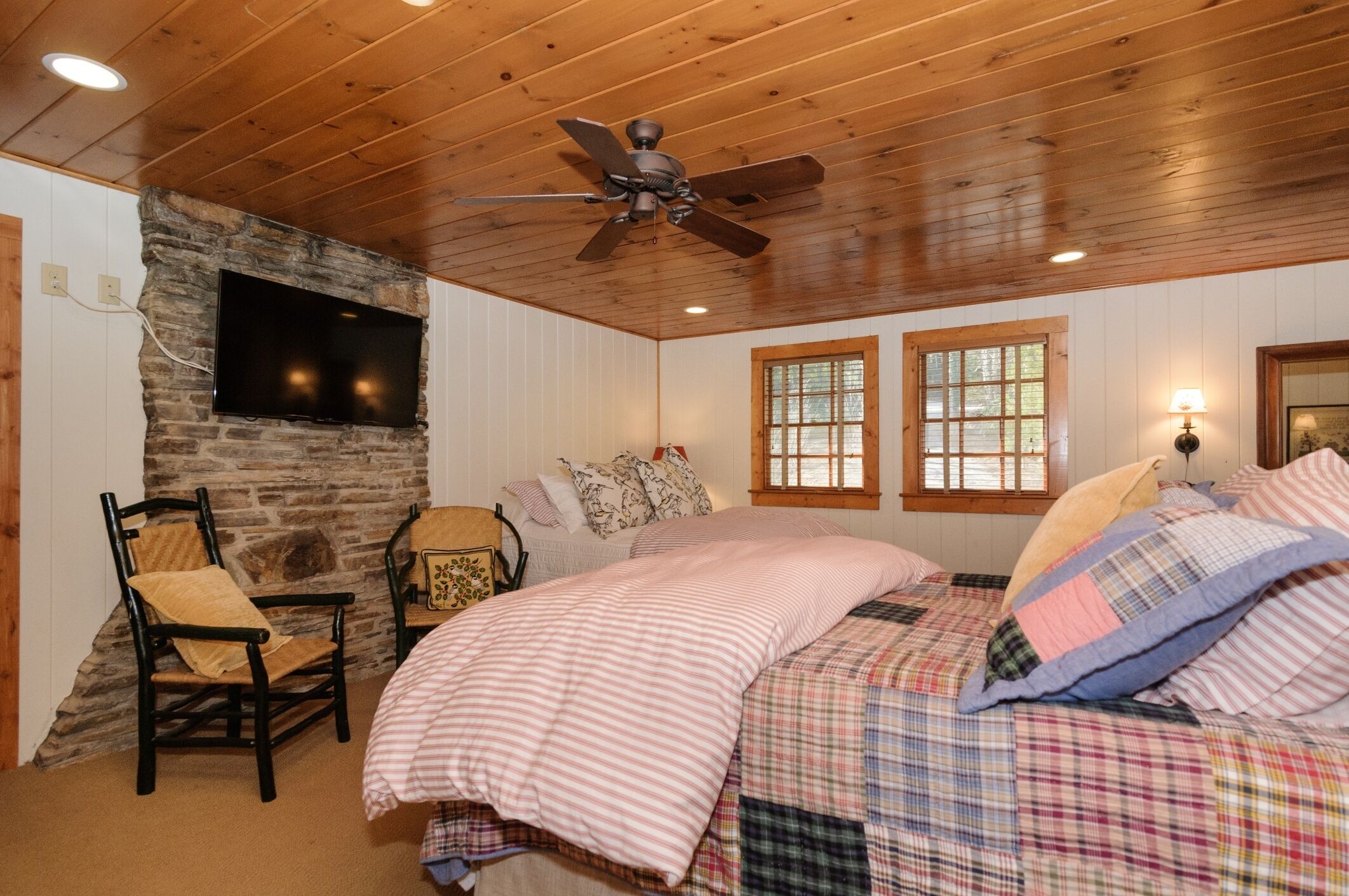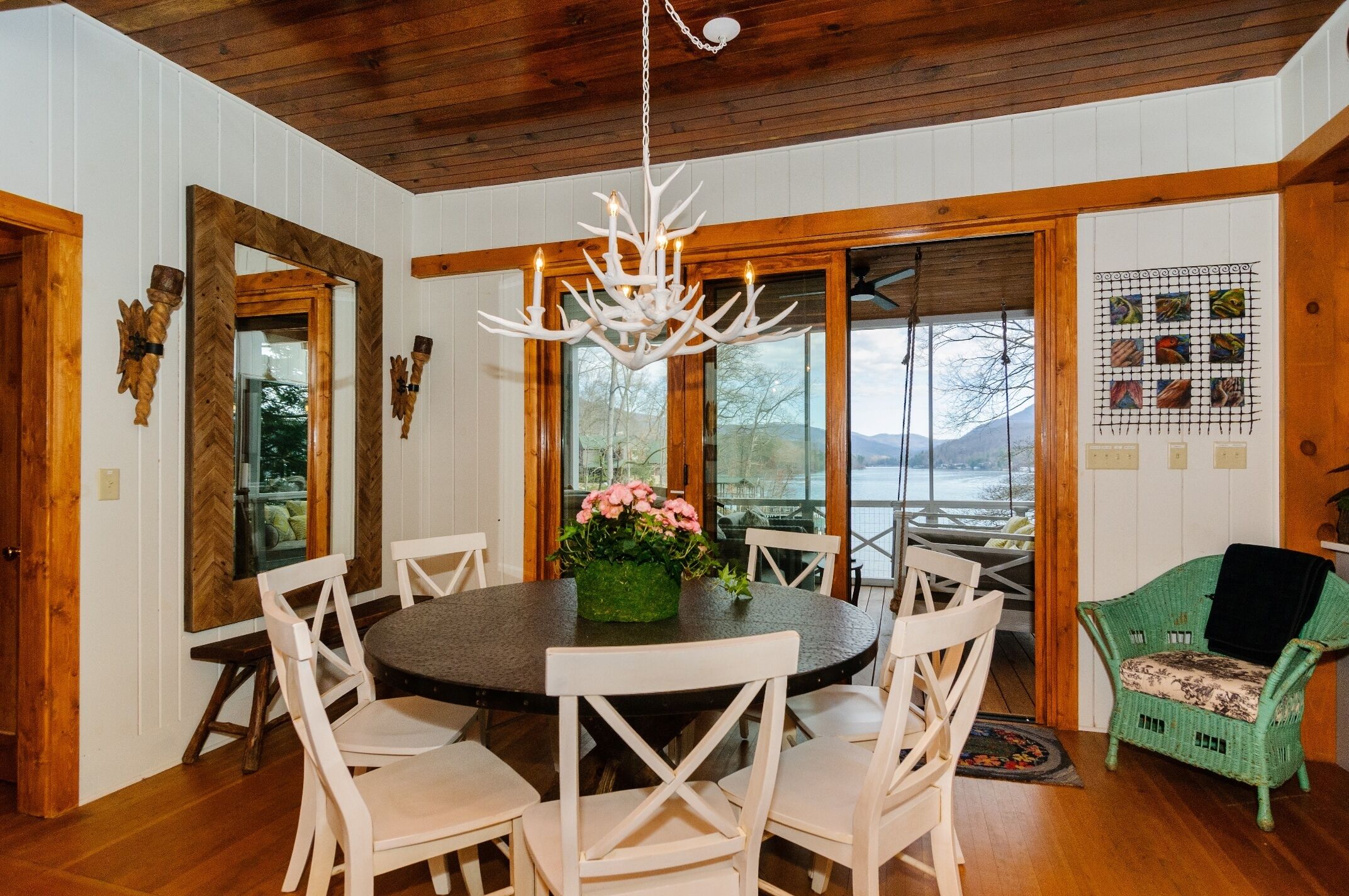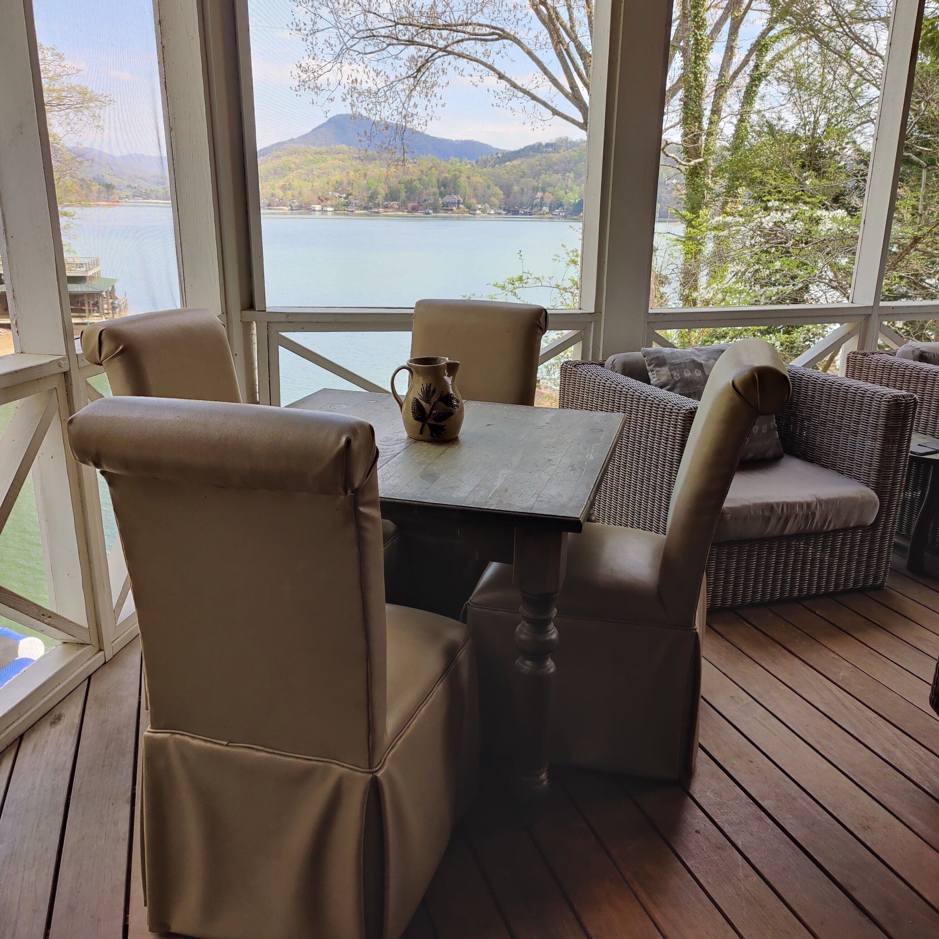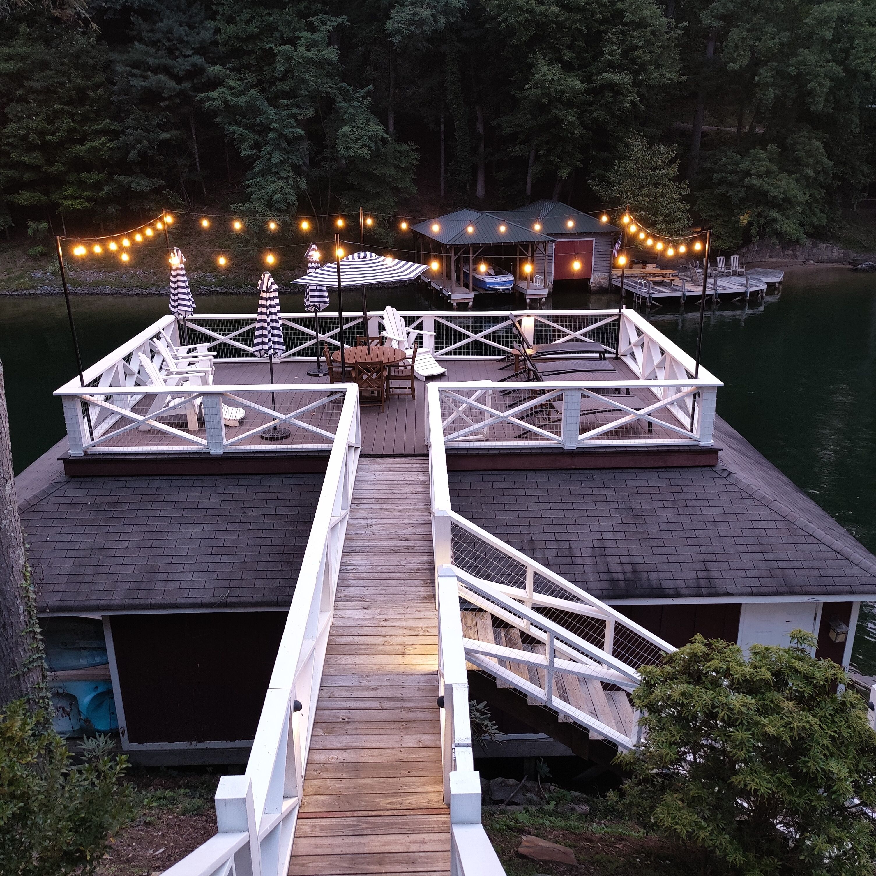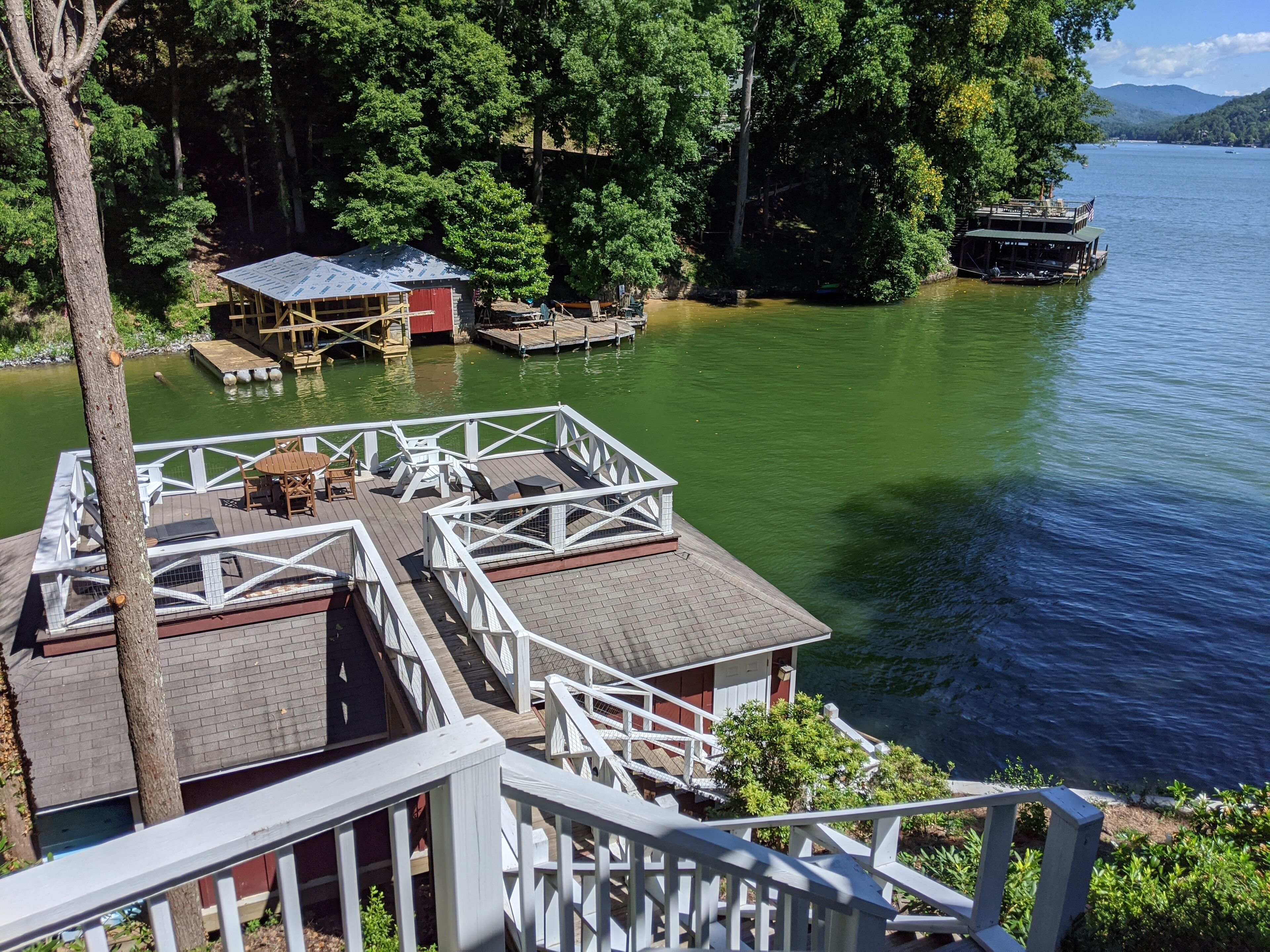 Large lakefront home. Swim, fish & kayak on Lake Lure Lured In on Holmes Lake House is a charming lakefront home located in the Town of Lake Lure which was chosen by Southern Living as the #1 lake town in the South! With 6 bedrooms, and 5 bathrooms, Lured In is perfect for large families or groups of friends who want to enjoy swimming, fishing and boating on site, as well as zip lining, gem mining and hiking in nearby Chimney Rock State Park, 10 minutes away. This charming lakeside home has 2 porches, a covered stone terrace, and a sun deck, so there's lots of outdoor spaces to enjoy the lake and mountain views. Decorated with a refined, lake cabin theme combined with shabby chic style, this warm and inviting lake house has many cozy and unexpected nooks and crannies so that everyone can find their favorite spot for some alone time to relax or read a book, then come together with the whole family in one of the spacious living areas. This 2,800 sq ft 3-story vintage lakefront home was built in 1931 when it was originally used as a hunting and fishing cabin and fully renovated and updated in 2016 with meticulous attention to detail. On cooler fall days or during the winter holidays, cozying up in front of the large wood burning fireplace on the main level and looking out over the lake is about as good as it gets. And we provide the firewood!On warmer days sitting down on the covered stone terrace, on the deck atop the boathouse or out on the dock just listening to the water lap up against the shore is equally magical. (The small private beach is especially a hit for parents with small children who aren't quite ready to swim.) There are 2 individual kayaks and one 2-person kayak for our guests to explore the lake.IMPORTANT: If you are planning to bring a boat or rent a boat during your stay, be sure to check with the Town of Lake Lure or Lake Lure Adventure Company about boater rules and regulations before renting. A boat can be docked at the house, but the dock can only be accessed from the lake. Shopping and dining in Chimney Rock Village is only 3 miles away and lakeside dining options are within 2 miles in either direction. For those up to venturing out on a day trip, the options abound. Asheville and the Biltmore Estate are 45 minutes away, Hendersonville and the Flat Rock Playhouse is 30 minutes away and Greenville and Spartanburg are both just an hour away. For those who enjoy antiquing in more quaint towns, Tryon, Saluda and Landrum are all within 30 minutes and have charming downtowns. This lakefront home is only 17 miles to the Tryon International Equestrian Center where you can enjoy watching or participating in equestrian competitions. There are also several wineries to visit within 20 minutes. So gather the whole gang and come experience lakeside living at its best and make memories you will treasure for a lifetime.This home is located in a mountainous area, and we have occasional power outages due to fallen trees. We cannot be held responsible for possible electrical power outages, or if the internet is not working, as these are circumstances beyond our control, and no refunds will be given. Thank you for your understanding.While we rarely have heavy snows, if you are coming to the mountains in winter or early spring, you must be prepared for the possibility of some ice and/or snow.PLEASE NOTE: Lake Lure will be undergoing a drawdown starting Jan 1, 2025 through March 15, 2025. The lake will begin to be lowered by approximately 1 foot per day on Jan 1, 2025 until 20 feet has been reached. Infrastructure maintenance, dredging and dock work will be expedited during this time frame. These efforts by the Town of Lake Lure may affect access to the lake and restrict any lake usage during this time frame. Refilling of the lake will begin on March 16, and will depend upon rainfall. During the drawdown, visitors will still be able to enjoy hiking, zip lining, gem mining, fishing in the Rocky Broad River, dining, shopping, and the beautiful mountain views that surround Lake Lure.