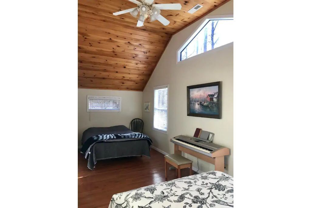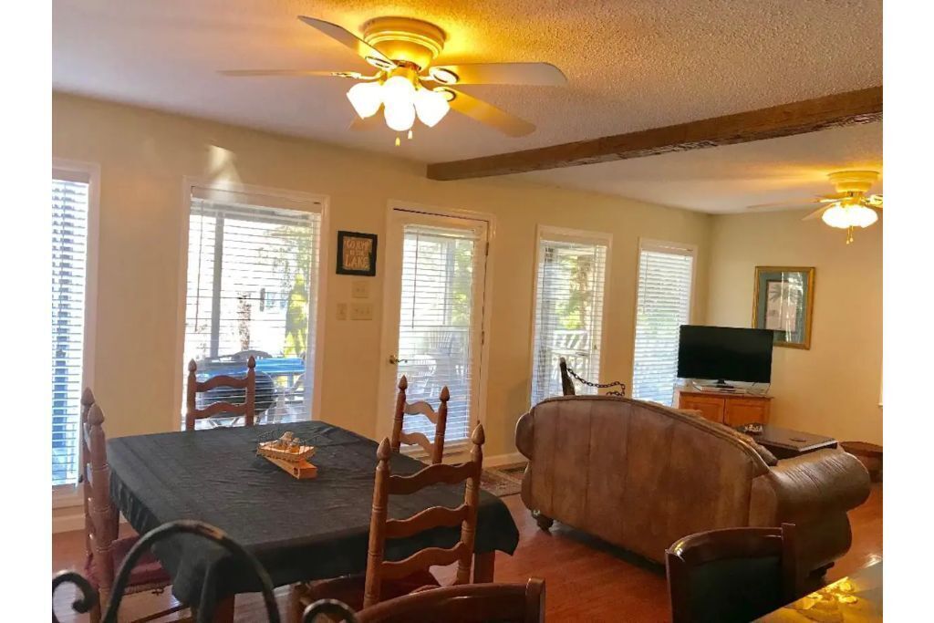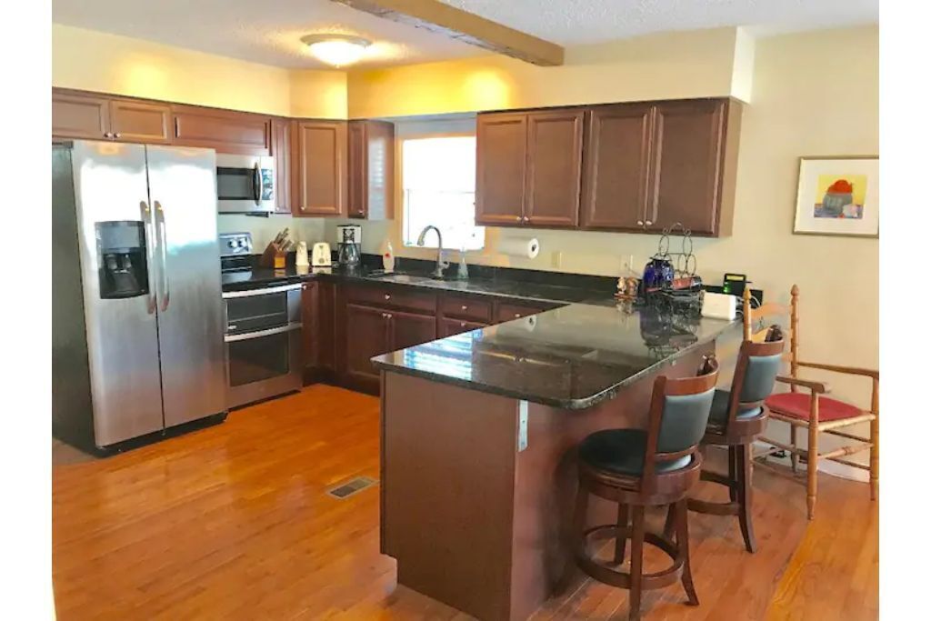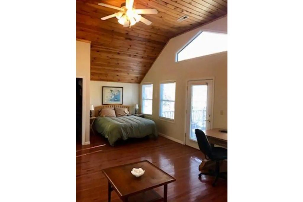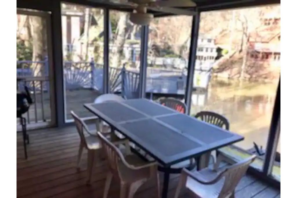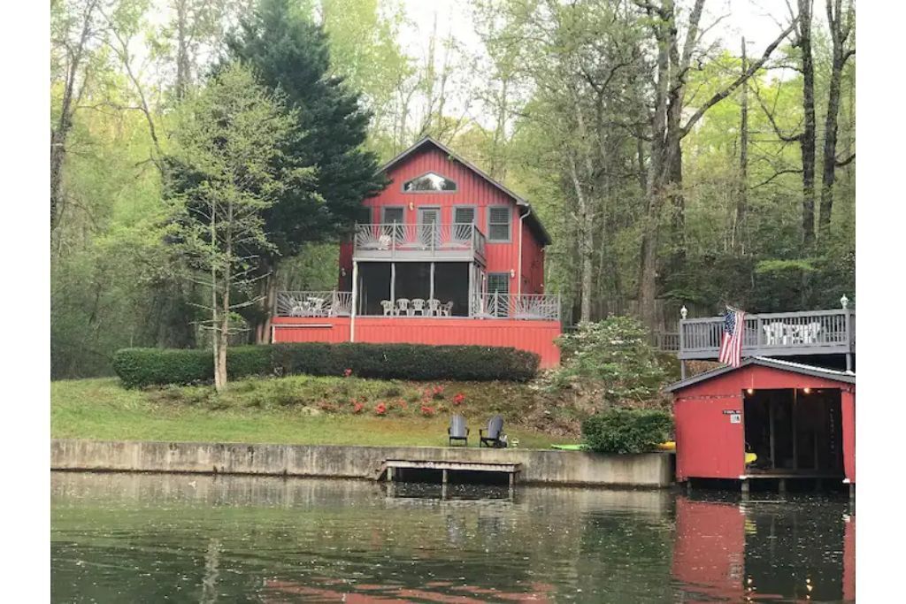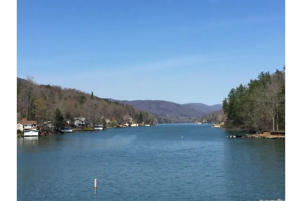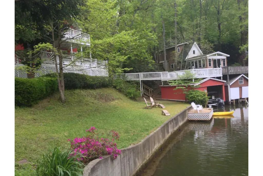 Beautiful Two Story Home in Lake Lure on Lakefront Beautiful home located on lake with private dock. Recent full kitchen remodel. Large lot with off street parking, swimming, fishing. Kayak and paddle board on site. Lake Lure is the premier lake in the mountains of North Carolina featured in many film. The mountain region is a perfect spot to go off grid or visit historic Chimney Rock Village. WiFi and SmartTV / DVD are provided. Service speed may not support multiple devices and HD movies simultaneously. Network TV via internet streaming only.The spaceHouse sleeps 6-8. Brand new hardwood floors, new kitchen appliances, vaulted pine ceilings in the master bedroom with its own private deck, and two additional separate decks (one screened and one outside on top of the boathouse) for enjoying vistas of the lake.Other things to noteA kayak and paddle board are a available for use with the house. Life jackets are also available.