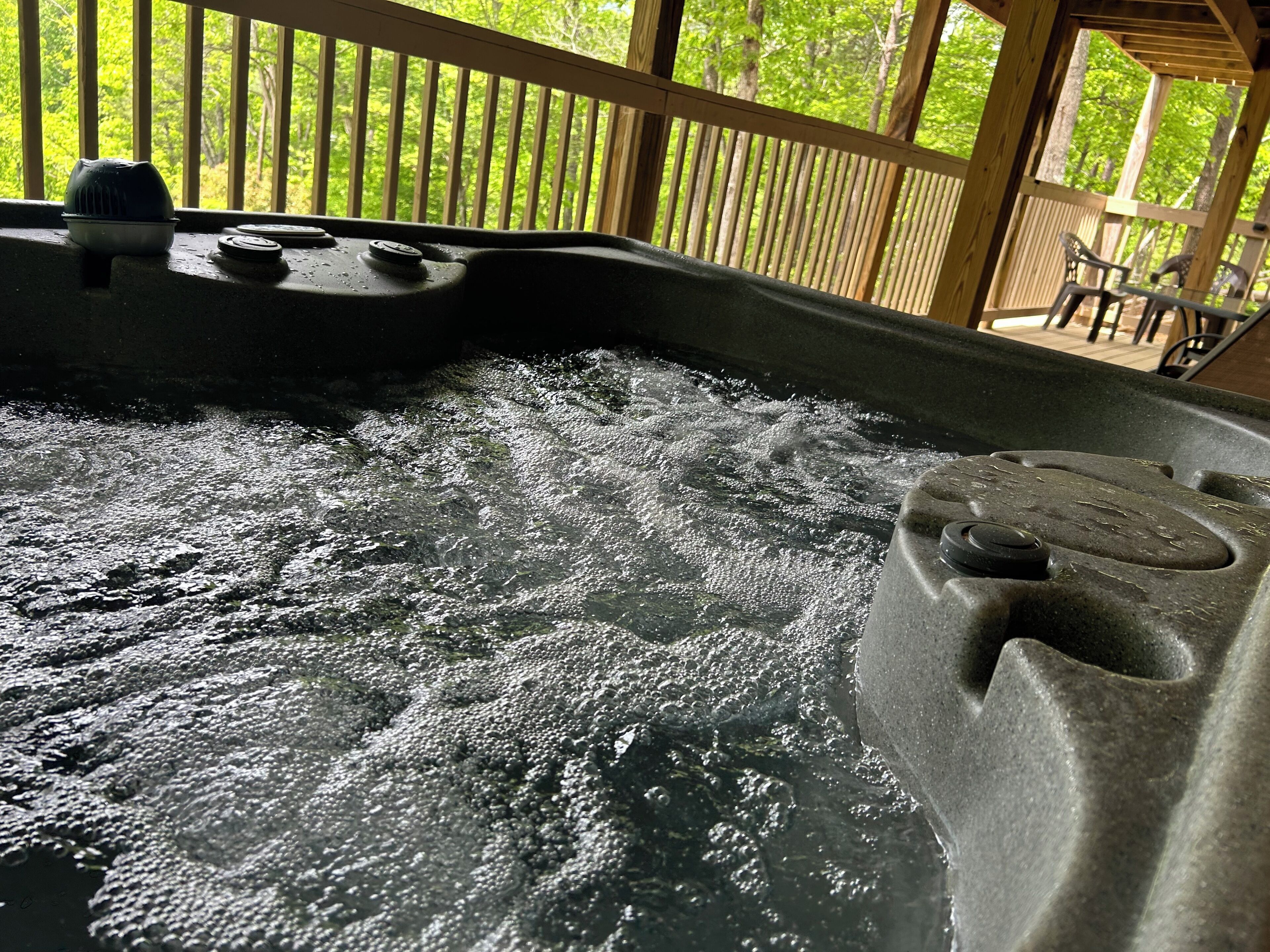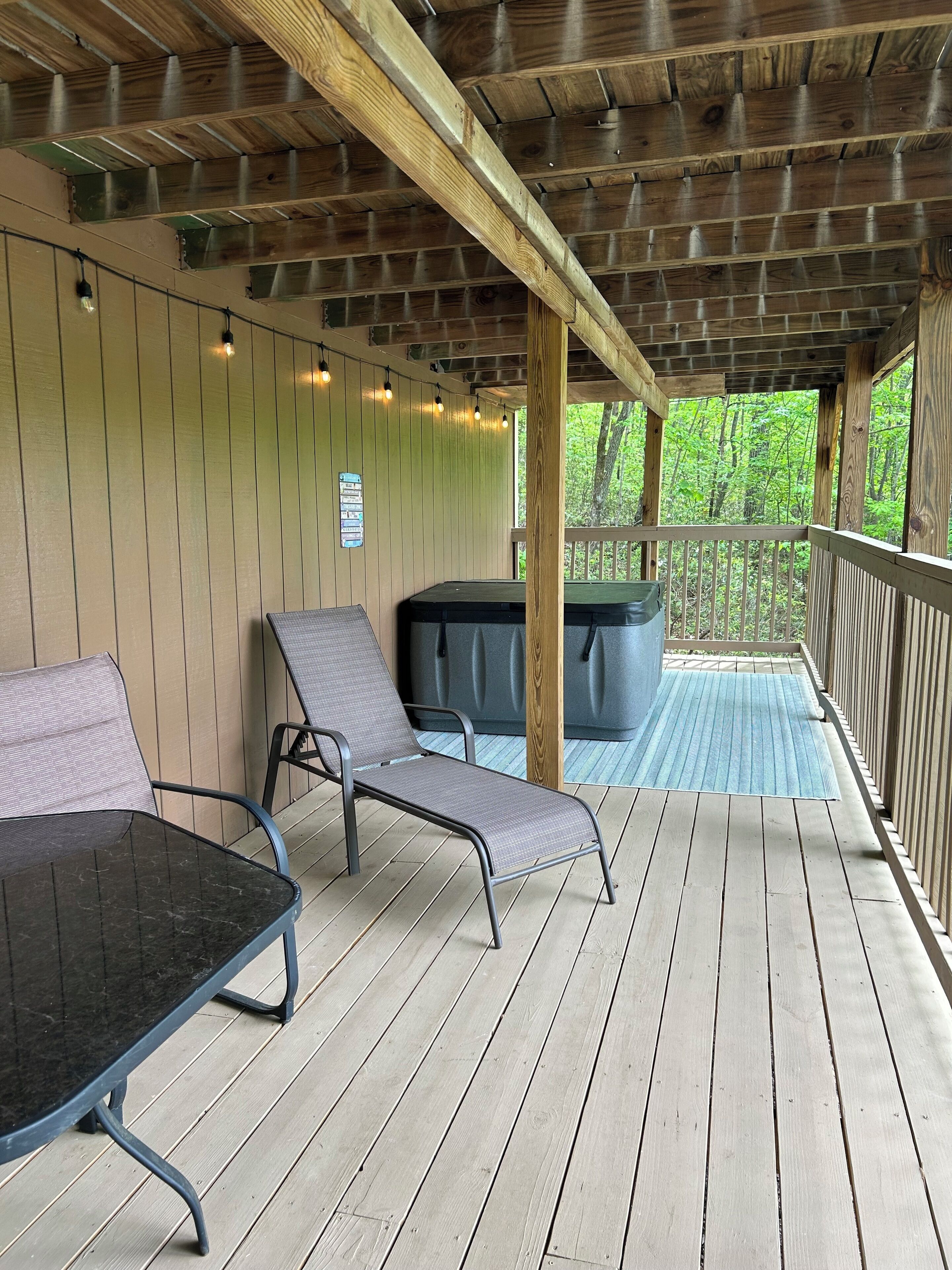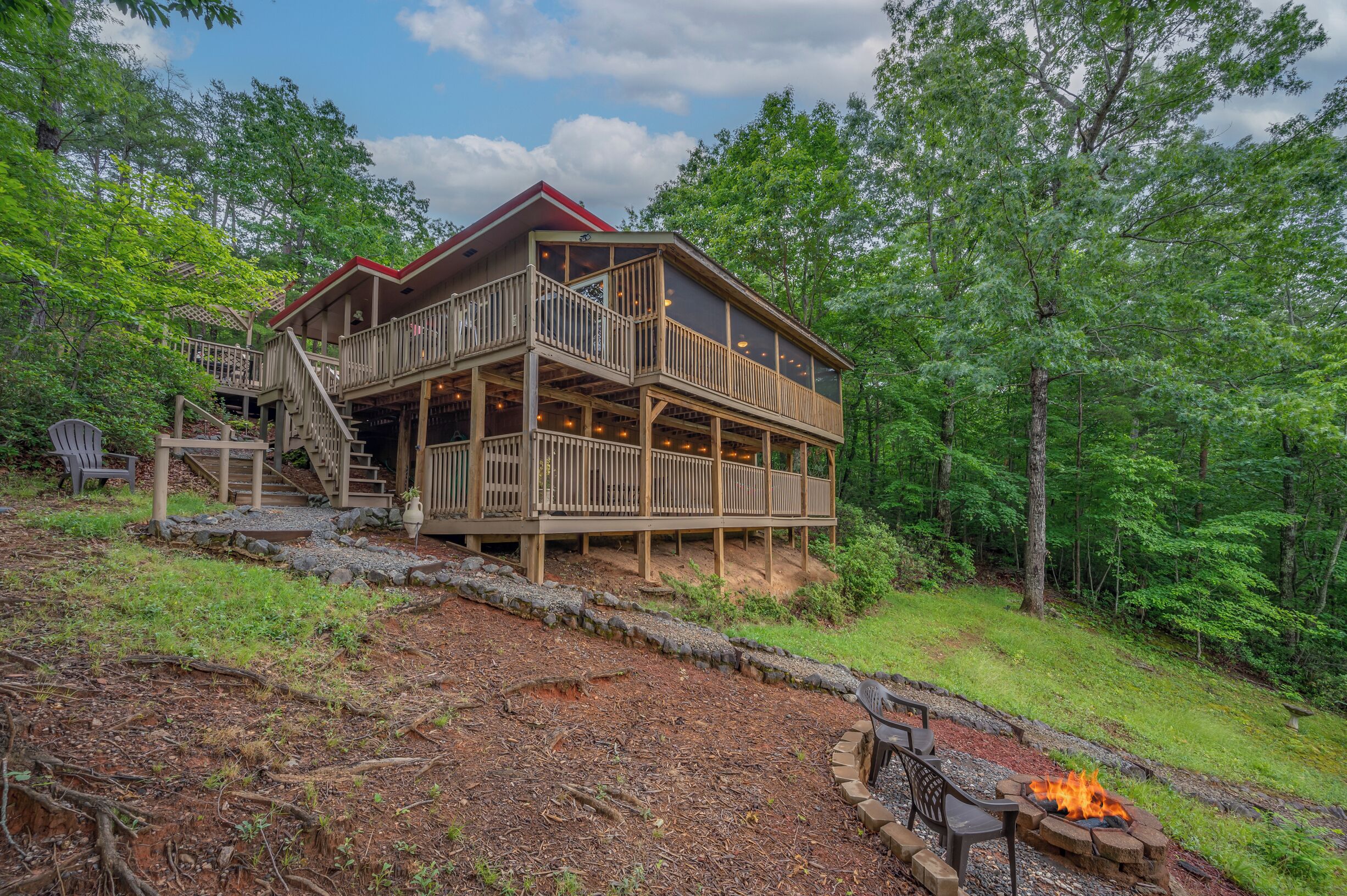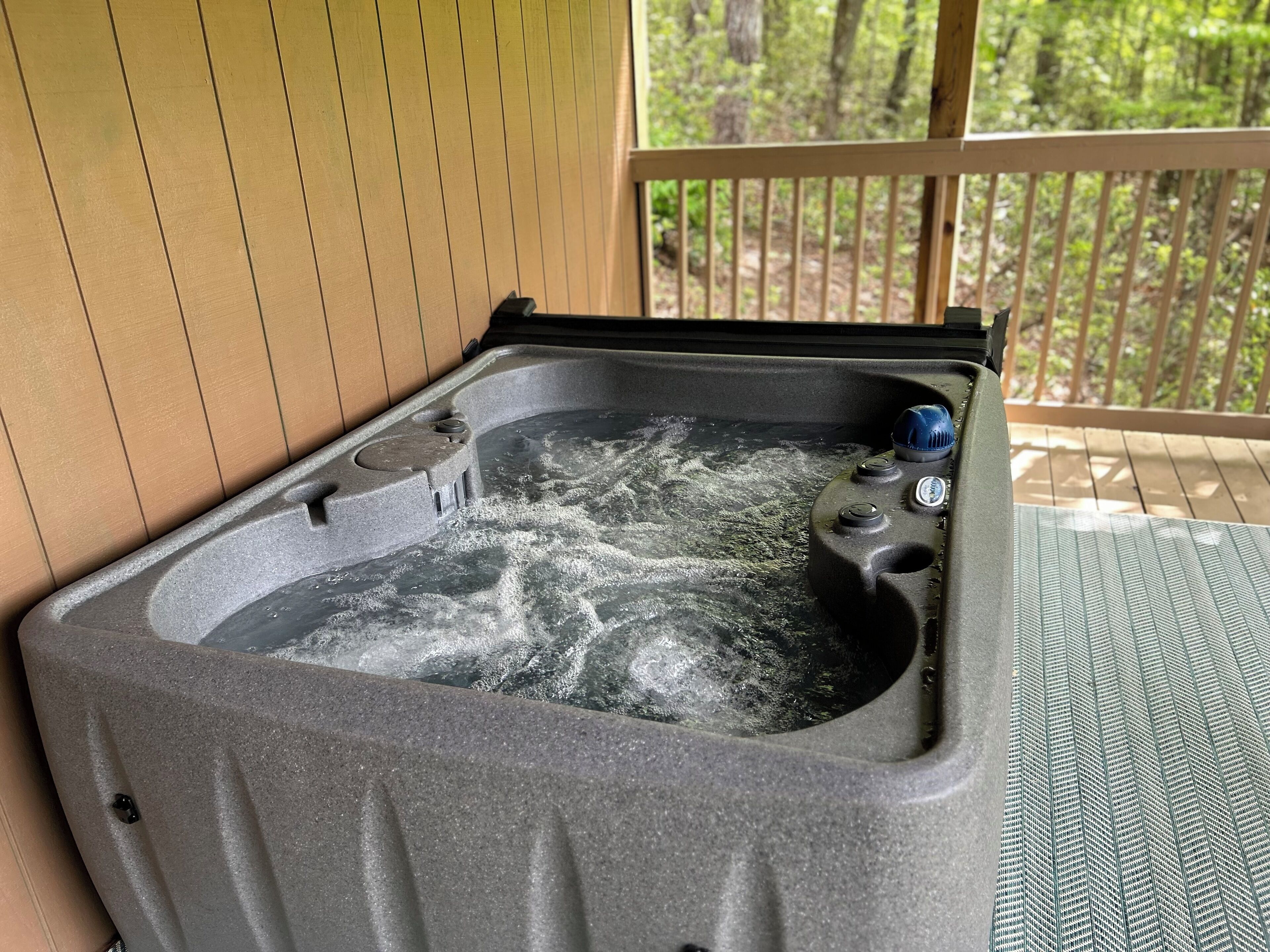 Angel of the Lake 2 bedroom with Hot Tub in Lake Lure This beautiful Lake Lure home provides the wilderness retreat of your dreams! Under the warm North Carolina sun, play in the sand at the beach, swim in the glimmering water, relax in your very own hot tub, or fire up the provided gas grill for a delicious cookout. When you want to get out and explore the area, Lake Lure Beach and Water Park is only 2.5 miles from the property.nside, you'll fall in love with the home's spacious living area with soft seating, an electric fireplace, and a large TV for streaming all your favorite channels using your own accounts. The adjacent kitchen is well-equipped for all your culinary ventures with its stainless steel appliances and ample meal prep space. After eating, head outside and enjoy the sweeping views from the home's screened porch or head down to the lower deck for a soothing soak in your private hot tub.Gather around the wood firepit in the yard for campfire stories.Sleep will come soundly as you tuck under the plush bedding in the bedrooms. Additional perks include central air-conditioning, a private washer/dryer, and board games.