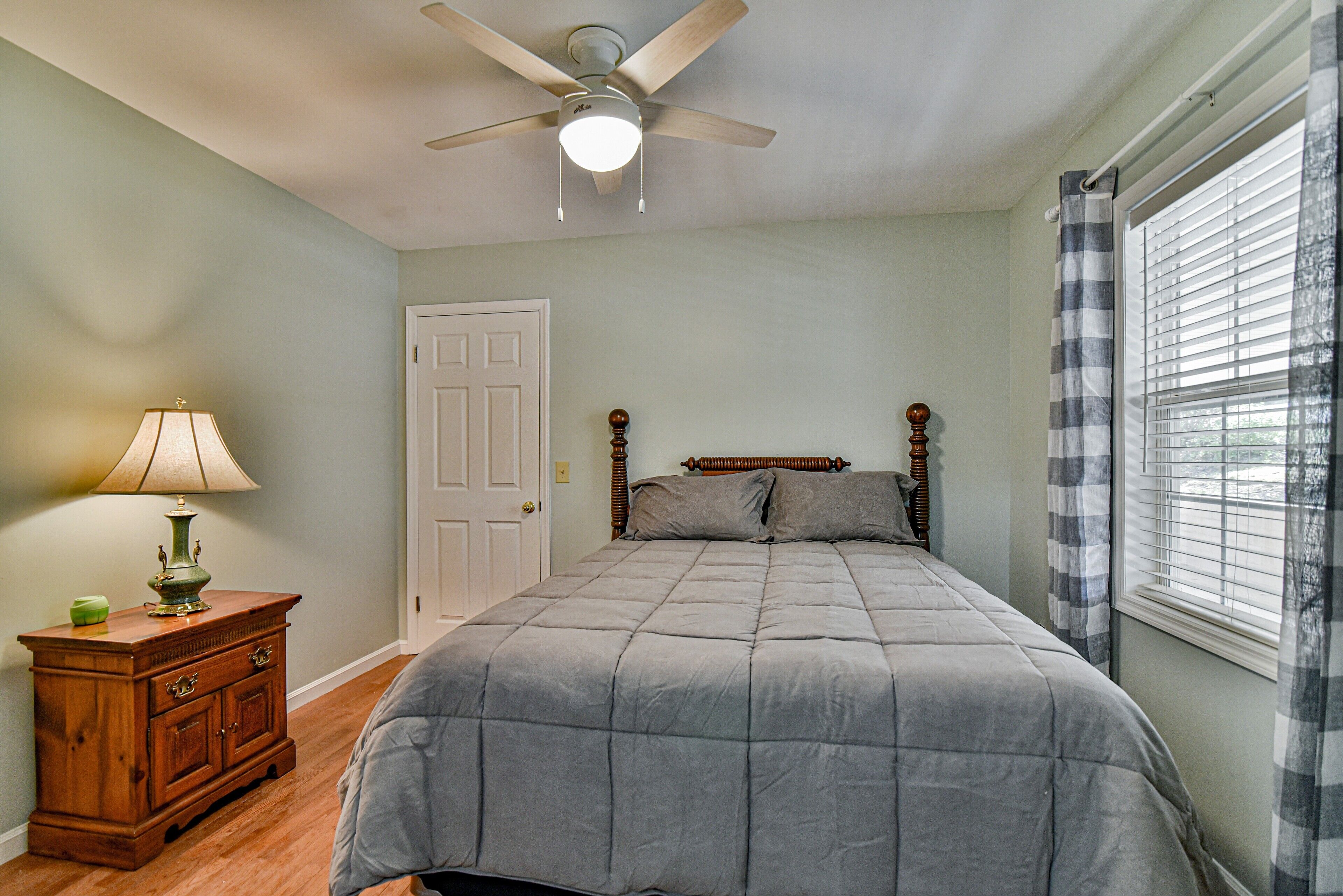 What time is check-out at Covered front porch with mountain views close to town.?