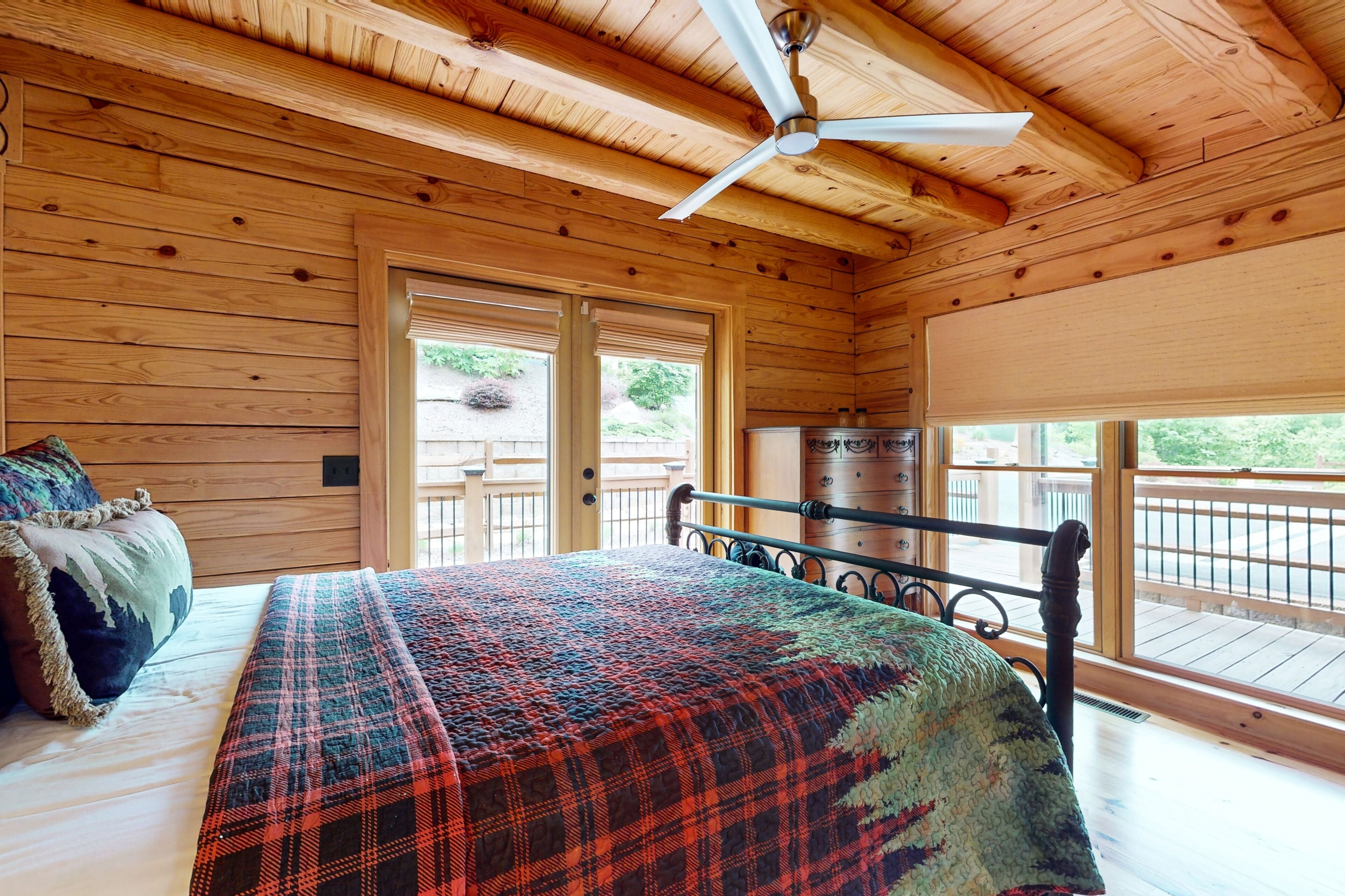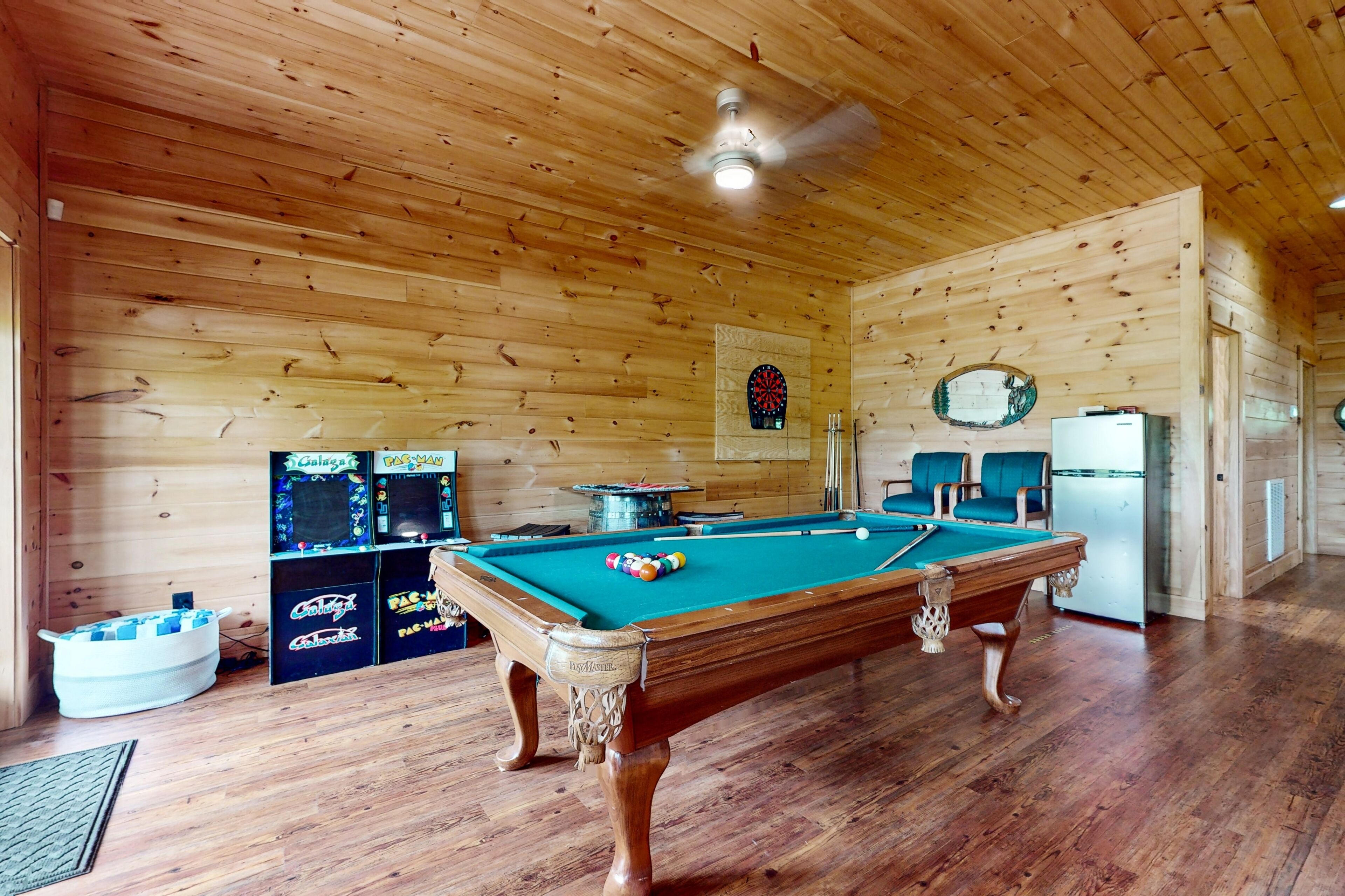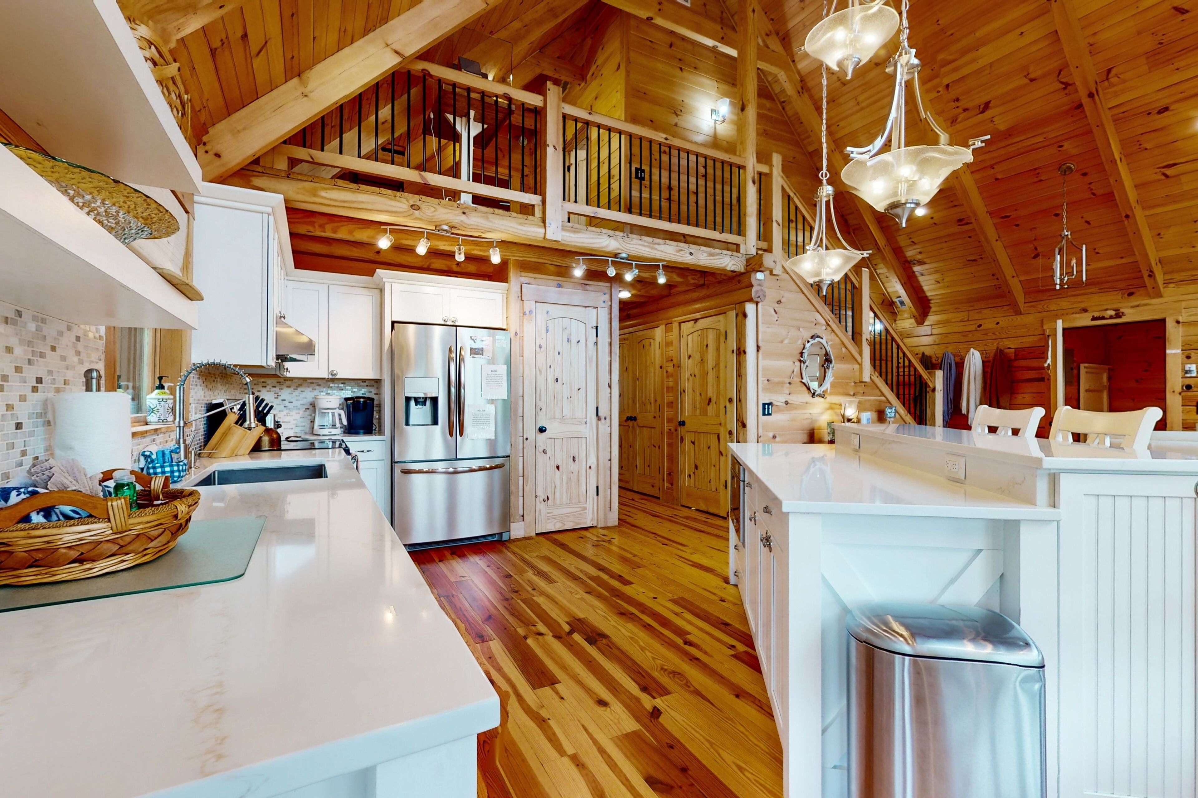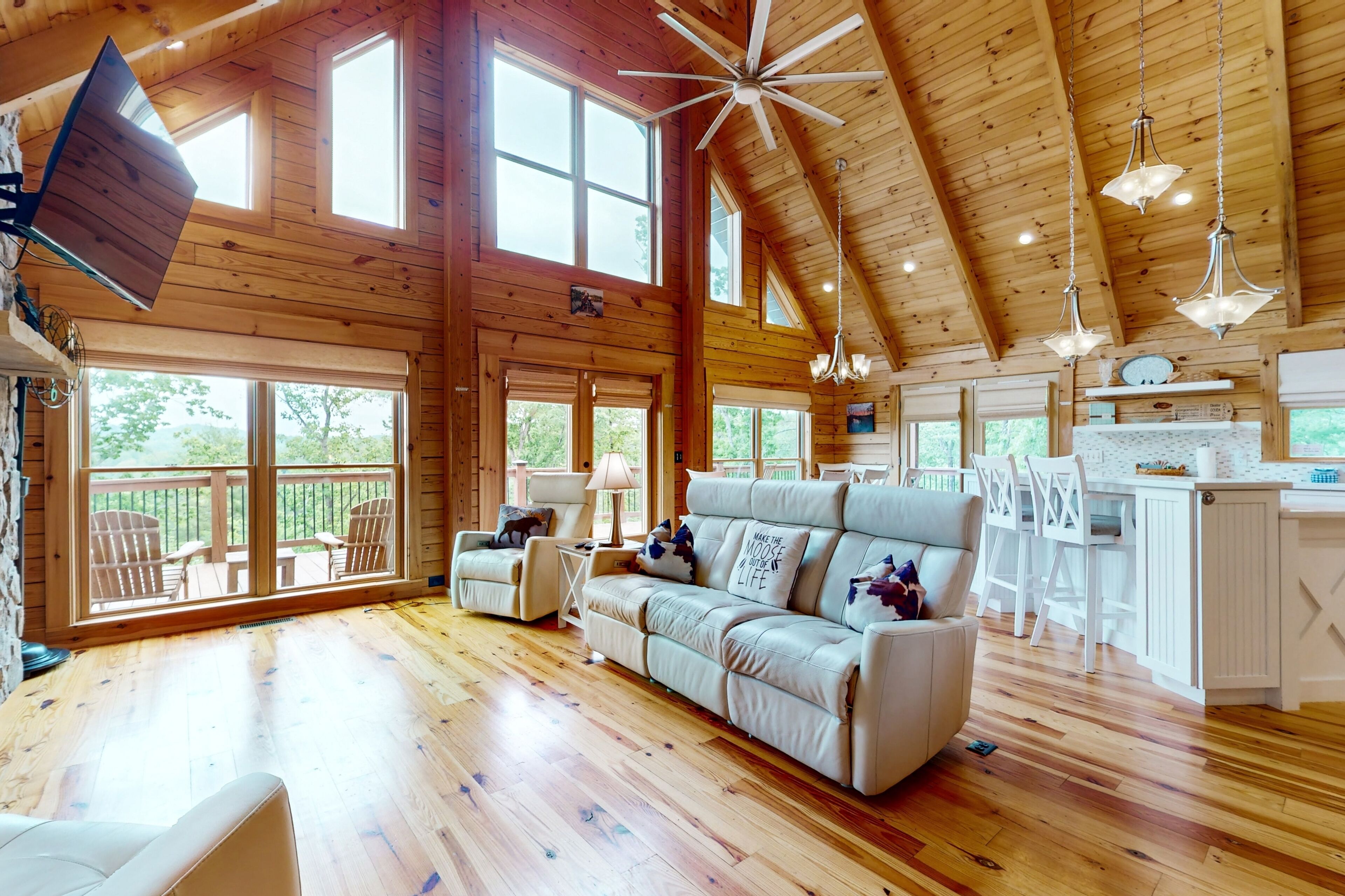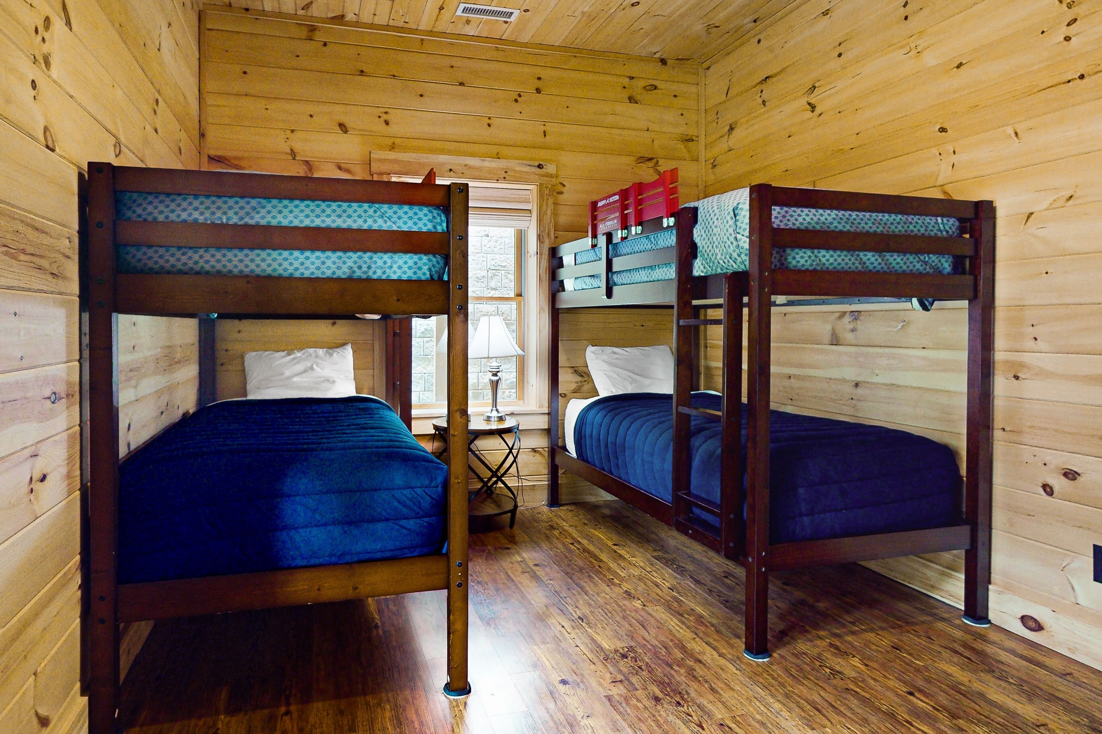 Lodge overlooking Lake Lure with hot tub, amazing deck, balcony, fast WiFi, & AC The Bentley At Lake LureOur calendar is updated in real-time & our nightly rates are accurately displayed. Simply enter your desired dates and click 'Book Now!'Offering a commanding view of Lake Lure from its expansive, wrap-around deck, this five-bedroom home is a place to experience the beauty of North Carolina - from spaces both inside and out.This log home sits on a hillside just above the lake's southwestern shores, with grounds that provide lovely views of the water and the neighboring ridgelines and treetops. It's a scene you can take in from the private hot tub and the shaded lounge and picnic areas on the garden-level patio, as you grill or relax in a rocking chair on the main floor's wrap-around deck, or as you build a fire in the stone firepit encircled by Adirondack chairs.The air-conditioned interior is a study in comfort and recreation, with natural wood details throughout and generous windows that frame the lake. The great room is a place to watch movies in the warmth of the gas fireplace, play board games around the dining room table, and lend a hand in the open kitchen with its full suite of stainless steel appliances (including a French-door refrigerator and a dishwasher). After-dinner fun awaits in the game room downstairs, which is home to a second gas fireplace, another TV, theater-style recliners, foosball and pool tables, and arcade consoles.When it's time to turn in, you'll have five bedrooms to choose from, each with cabin-like wood walls and its own TV. Additional amenities include two washer/dryers and free high-speed WiFi for your convenience. An additional perk, this home is decorated for Christmas from November 30th through January 3rd if you choose to book it for your family winter getaway.Please note that this home is listed as Handicapped Accessible, but not ADA compliant. We are happy to provide more details for those who may need more information about access.House RulesCheck-in time: 4:00 PM.Check-out time: 10:00 AM.All guests shall abide by Vacasa’s good neighbor policy and shall not engage in illegal activity. Quiet hours are from 10:00 PM to 8:00 AM.No smoking is permitted anywhere on the premises.An EV charging station is available nearby at the Lake Lure Washburn Marina.There are two washers/dryers (one set on the main floor and one set in the basement).This property is managed by Vacasa North Carolina, LLC.Parking notes: There is free parking available for 6 vehicles.Security camera details: Ring doorbell cameraDock details: Sunset Reserve Marina Dock #1Due to local laws or HOA requirements, guests must be at least 25 years of age to book. Guests under 25 must be accompanied by a parent or legal guardian for the duration of the reservation.