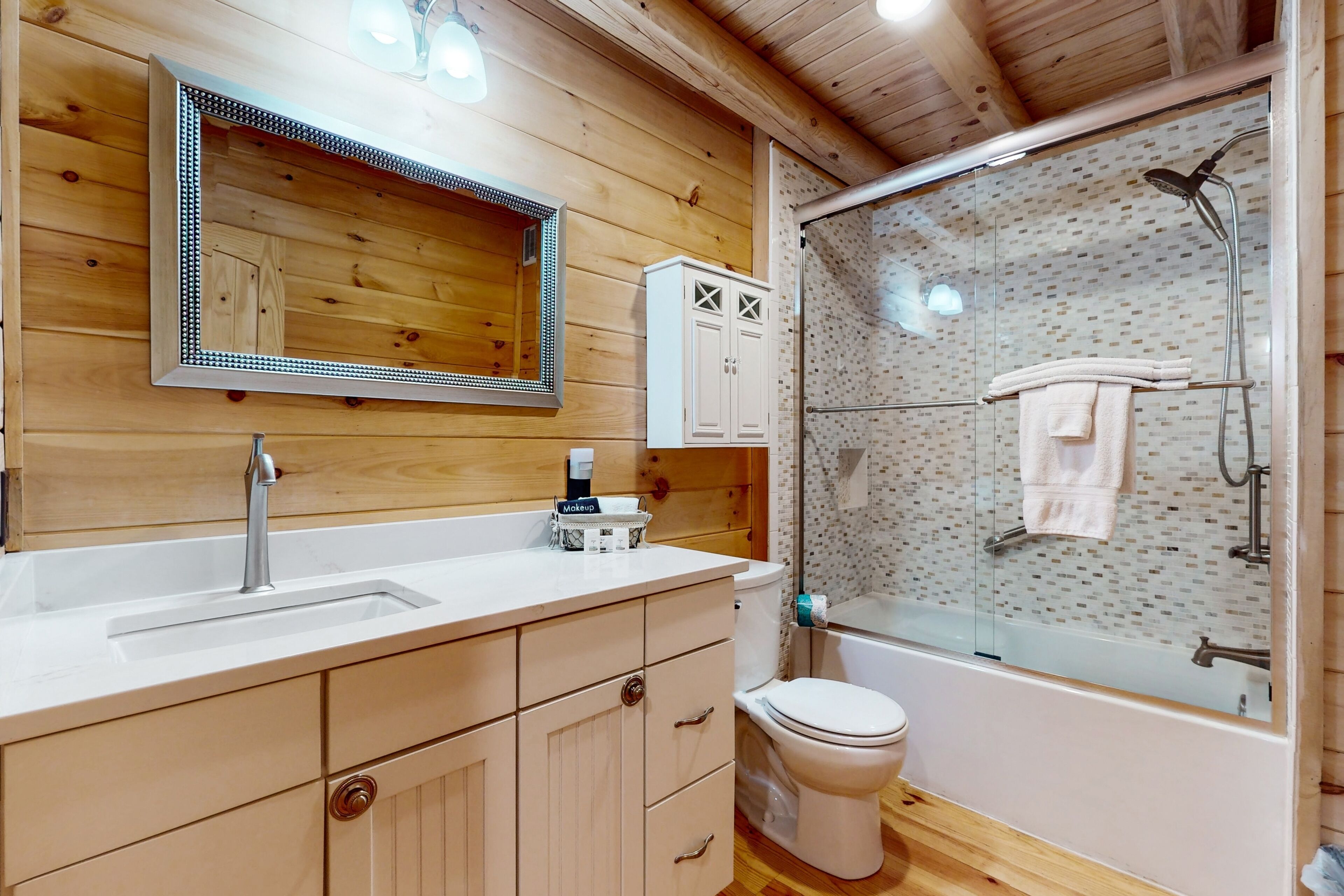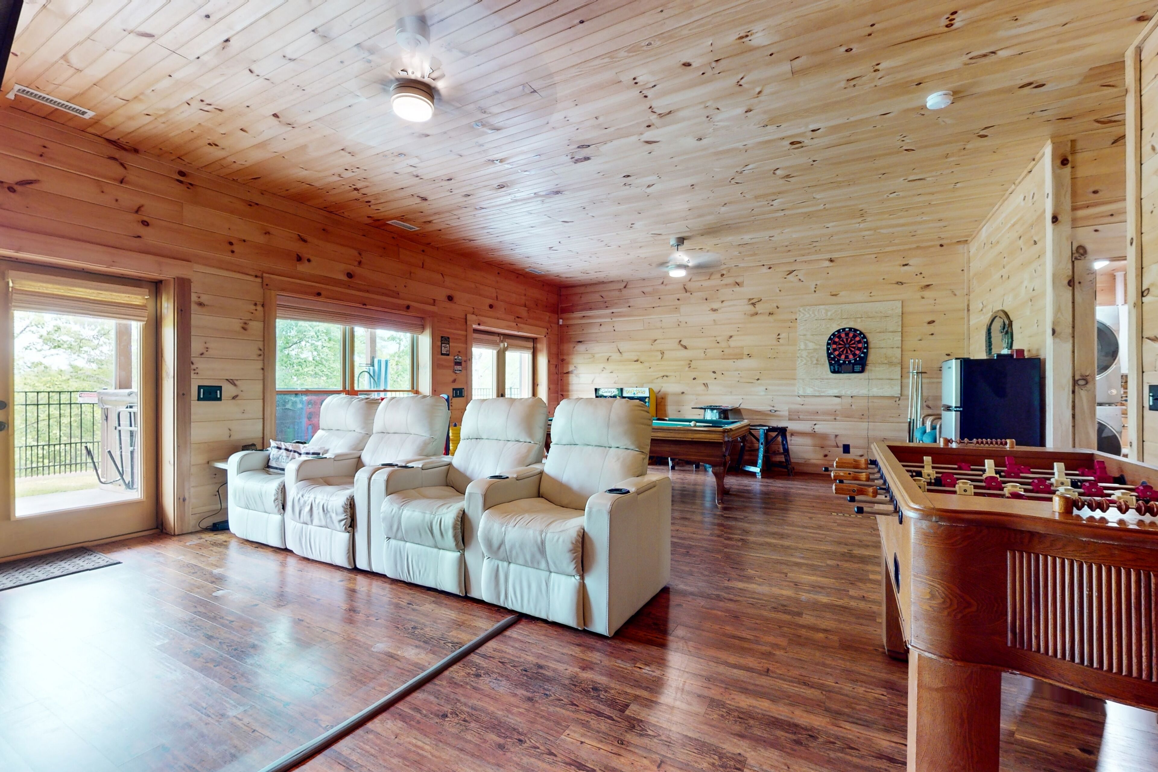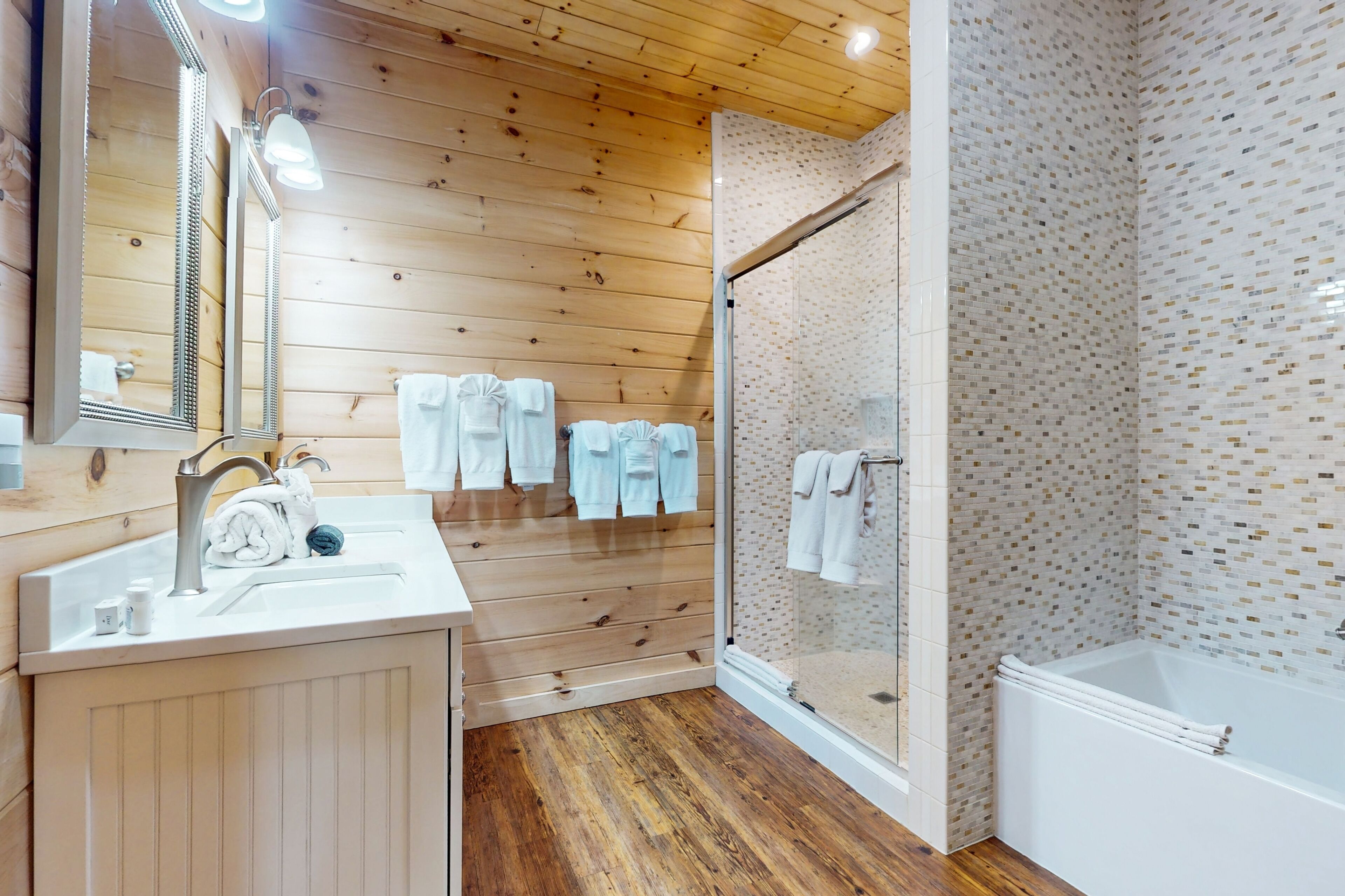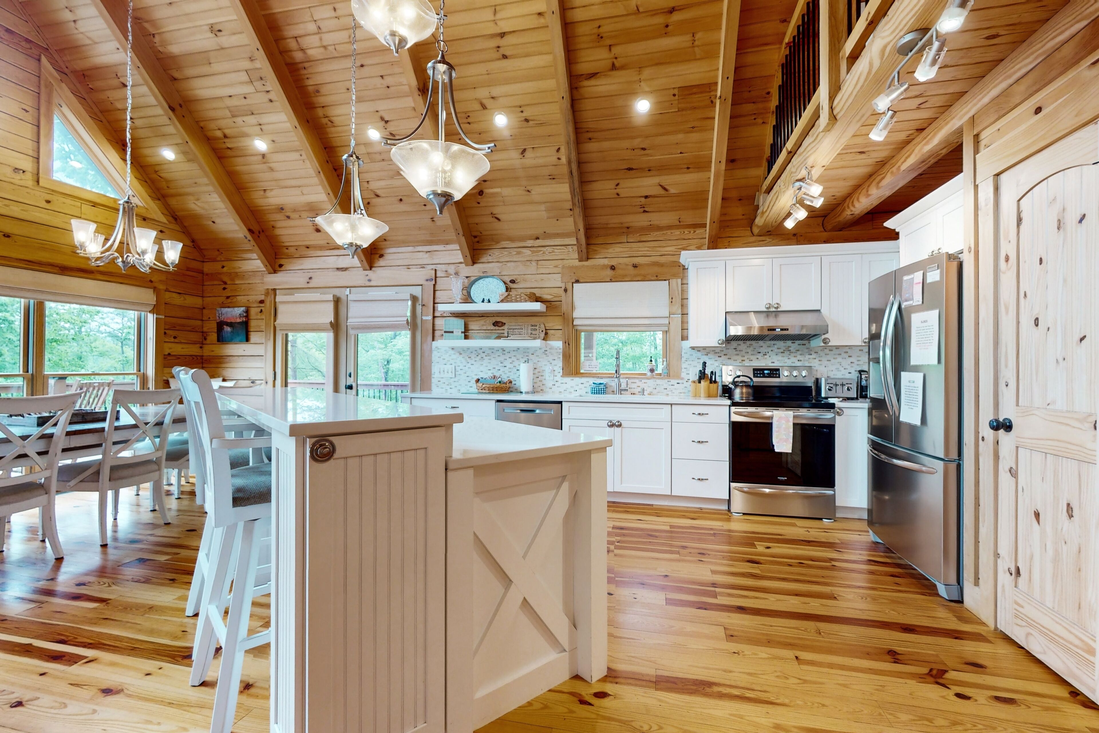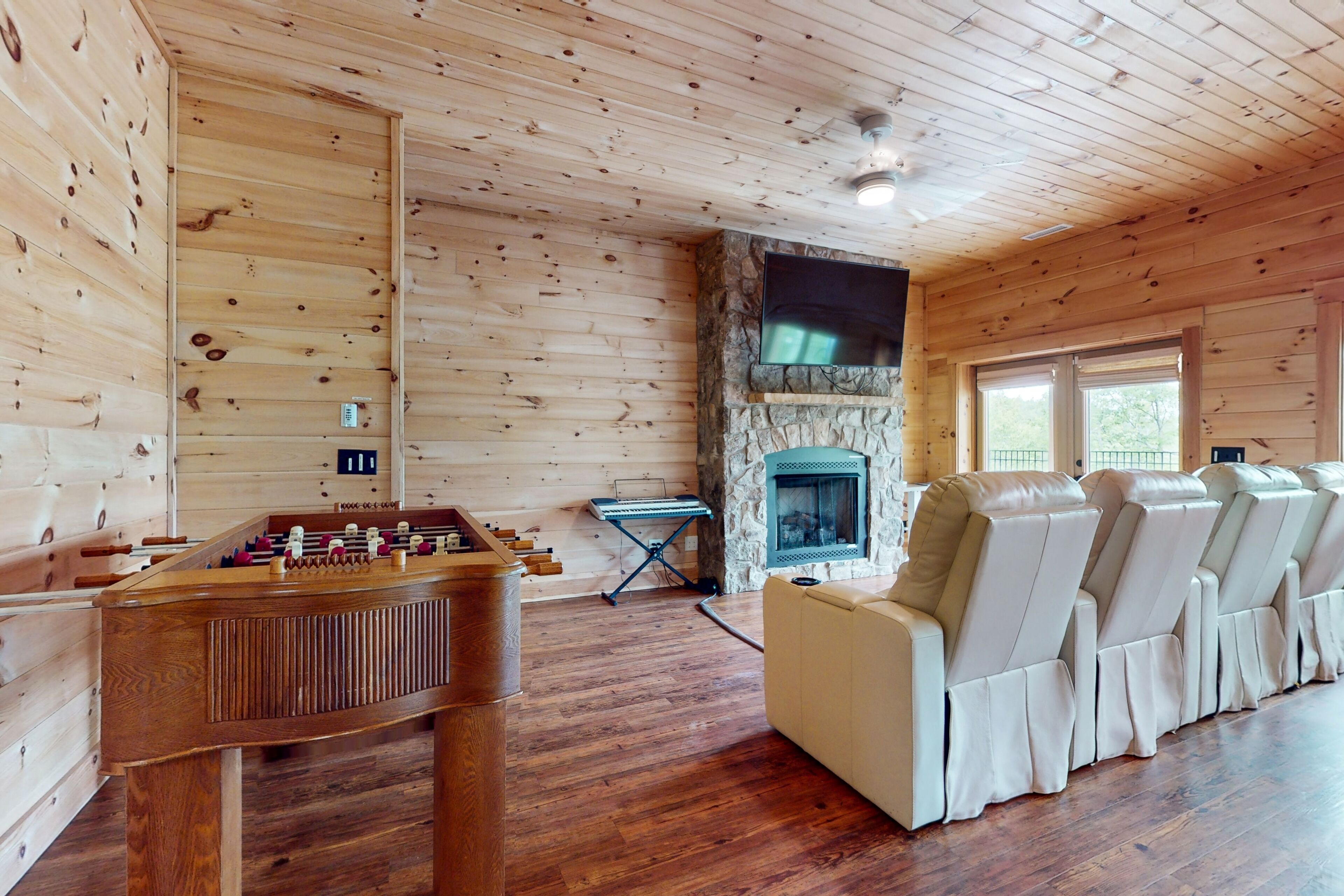 Lodge overlooking Lake Lure with hot tub, amazing deck, balcony, fast WiFi, & AC The Bentley At Lake LureOur calendar is updated in real-time & our nightly rates are accurately displayed. Simply enter your desired dates and click 'Book Now!'Offering a commanding view of Lake Lure from its expansive, wrap-around deck, this five-bedroom home is a place to experience the beauty of North Carolina - from spaces both inside and out.This log home sits on a hillside just above the lake's southwestern shores, with grounds that provide lovely views of the water and the neighboring ridgelines and treetops. It's a scene you can take in from the private hot tub and the shaded lounge and picnic areas on the garden-level patio, as you grill or relax in a rocking chair on the main floor's wrap-around deck, or as you build a fire in the stone firepit encircled by Adirondack chairs.The air-conditioned interior is a study in comfort and recreation, with natural wood details throughout and generous windows that frame the lake. The great room is a place to watch movies in the warmth of the gas fireplace, play board games around the dining room table, and lend a hand in the open kitchen with its full suite of stainless steel appliances (including a French-door refrigerator and a dishwasher). After-dinner fun awaits in the game room downstairs, which is home to a second gas fireplace, another TV, theater-style recliners, foosball and pool tables, and arcade consoles.When it's time to turn in, you'll have five bedrooms to choose from, each with cabin-like wood walls and its own TV. Additional amenities include two washer/dryers and free high-speed WiFi for your convenience. An additional perk, this home is decorated for Christmas from November 30th through January 3rd if you choose to book it for your family winter getaway.Please note that this home is listed as Handicapped Accessible, but not ADA compliant. We are happy to provide more details for those who may need more information about access.House RulesCheck-in time: 4:00 PM.Check-out time: 10:00 AM.All guests shall abide by Vacasa’s good neighbor policy and shall not engage in illegal activity. Quiet hours are from 10:00 PM to 8:00 AM.No smoking is permitted anywhere on the premises.An EV charging station is available nearby at the Lake Lure Washburn Marina.There are two washers/dryers (one set on the main floor and one set in the basement).This property is managed by Vacasa North Carolina, LLC.Parking notes: There is free parking available for 6 vehicles.Security camera details: Ring doorbell cameraDock details: Sunset Reserve Marina Dock #1Due to local laws or HOA requirements, guests must be at least 25 years of age to book. Guests under 25 must be accompanied by a parent or legal guardian for the duration of the reservation.