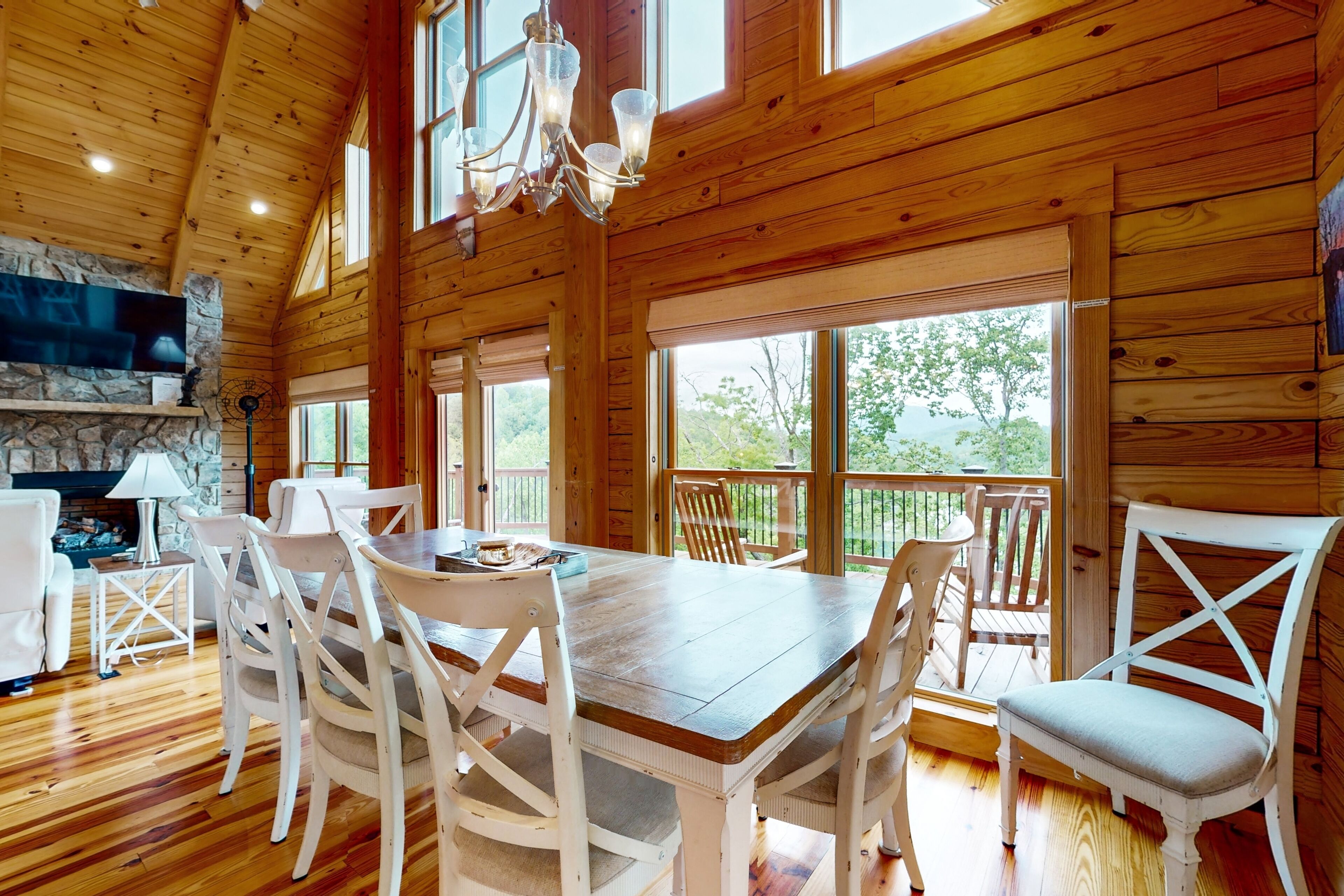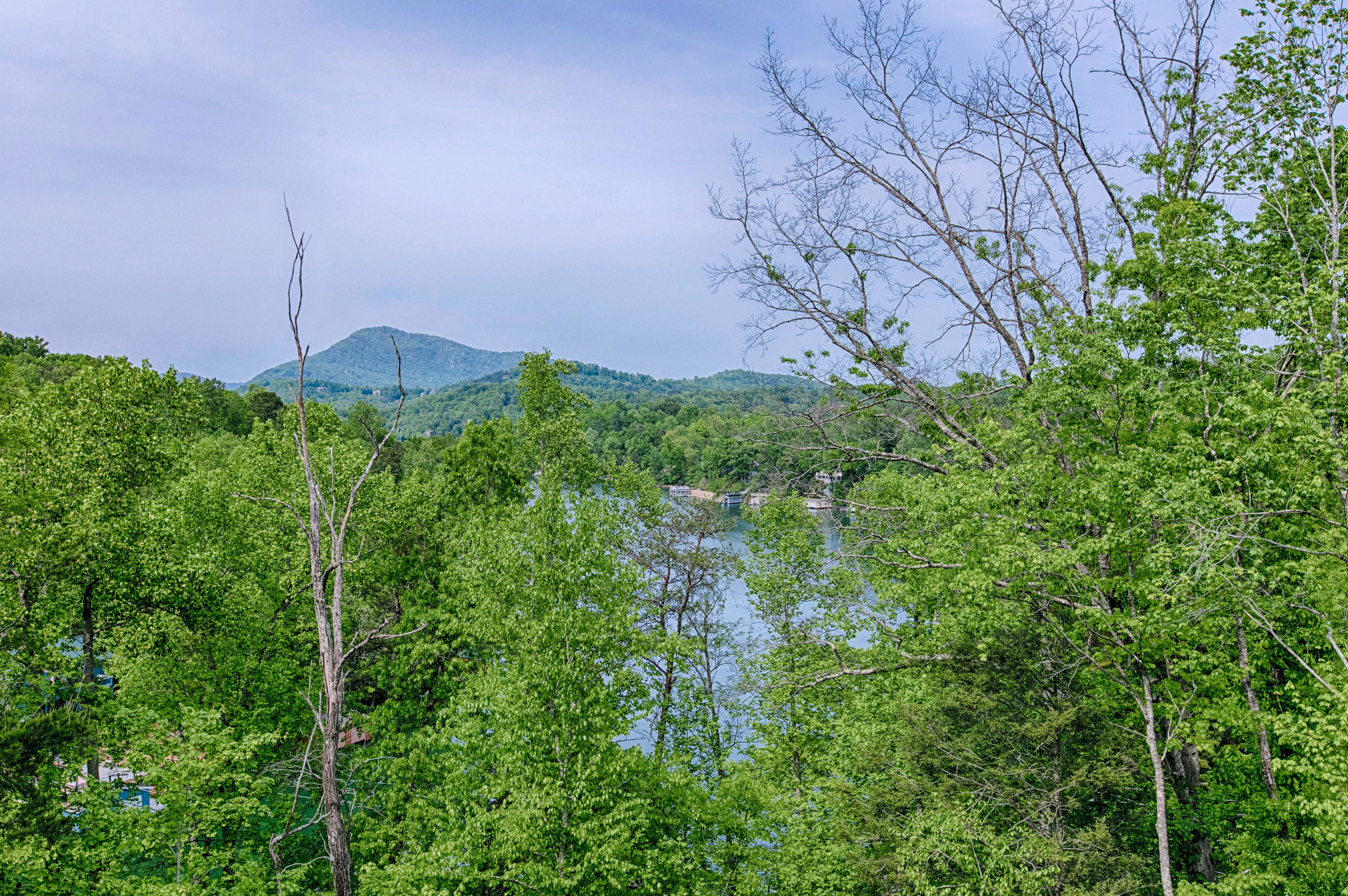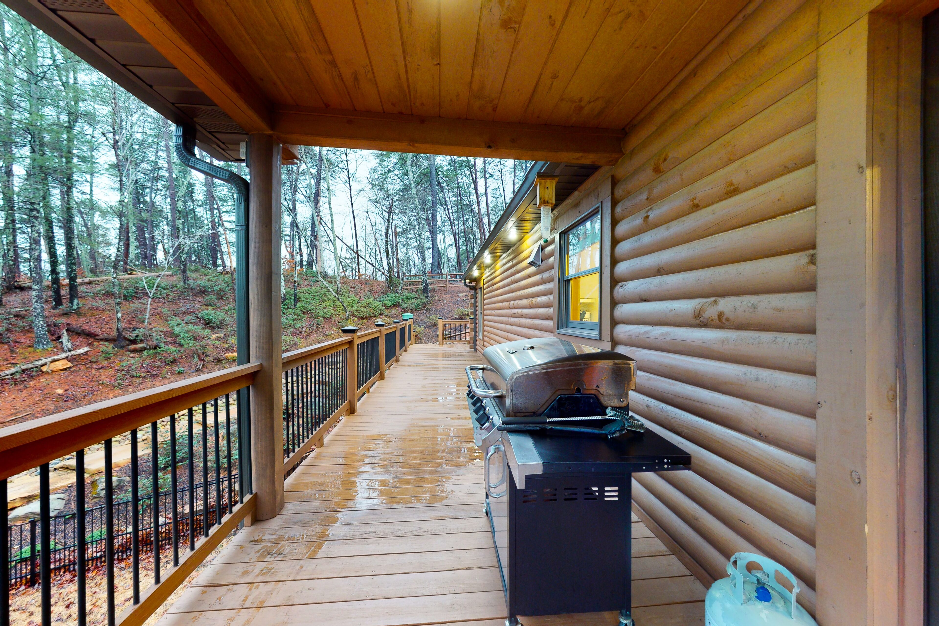 Lodge overlooking Lake Lure with hot tub, amazing deck, balcony, fast WiFi, & AC
