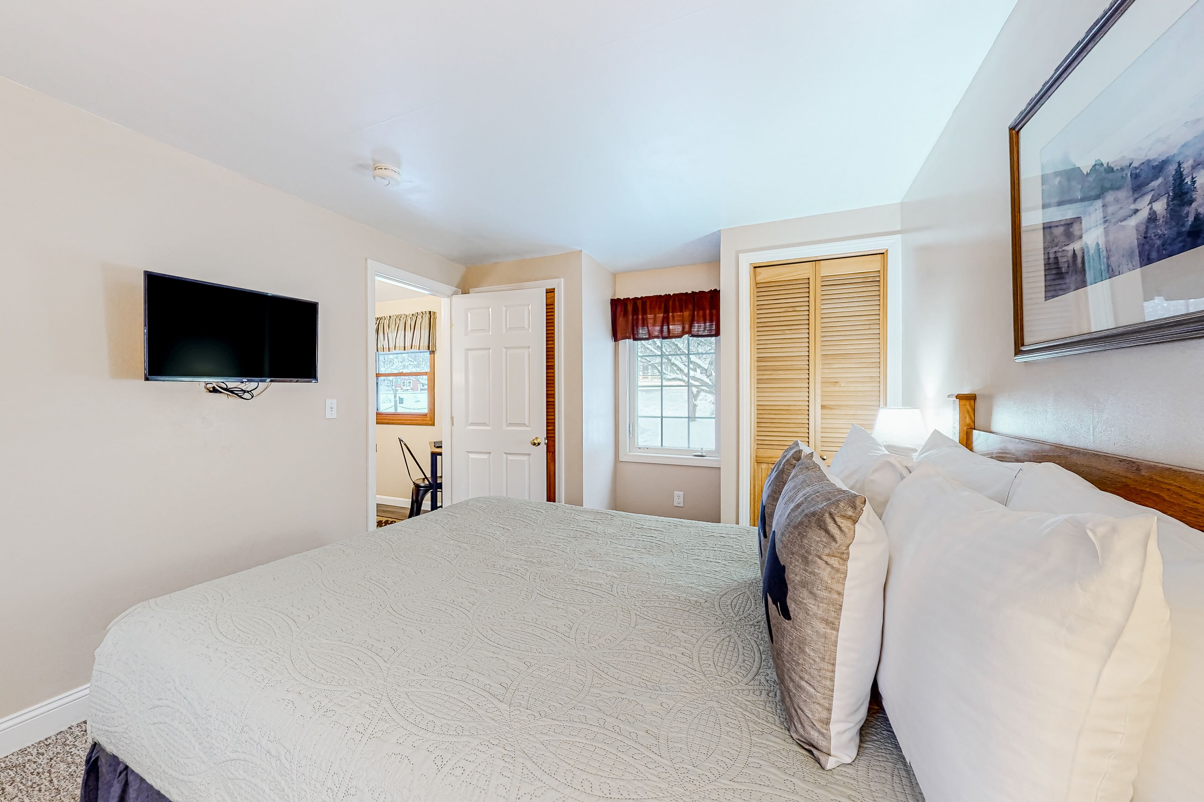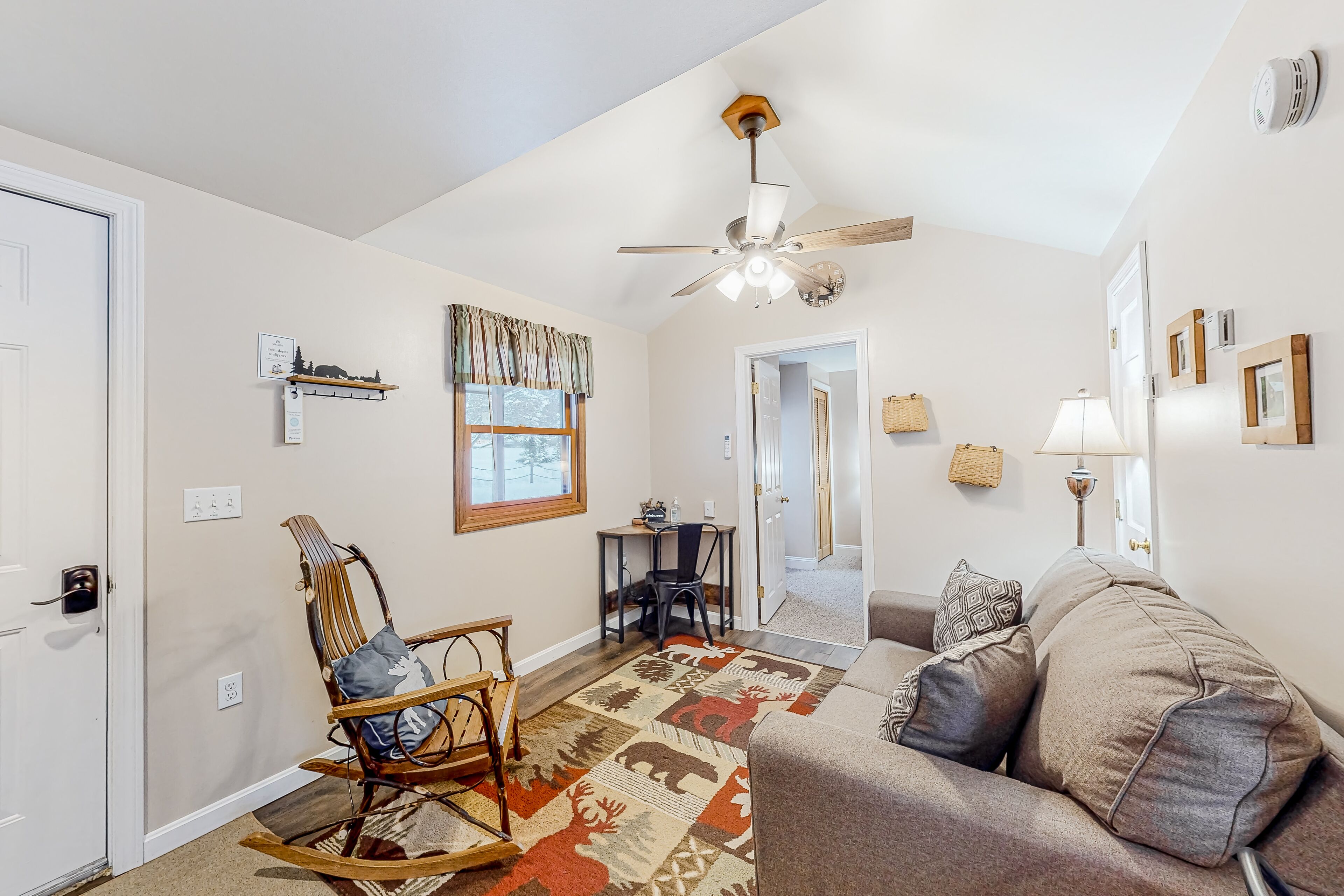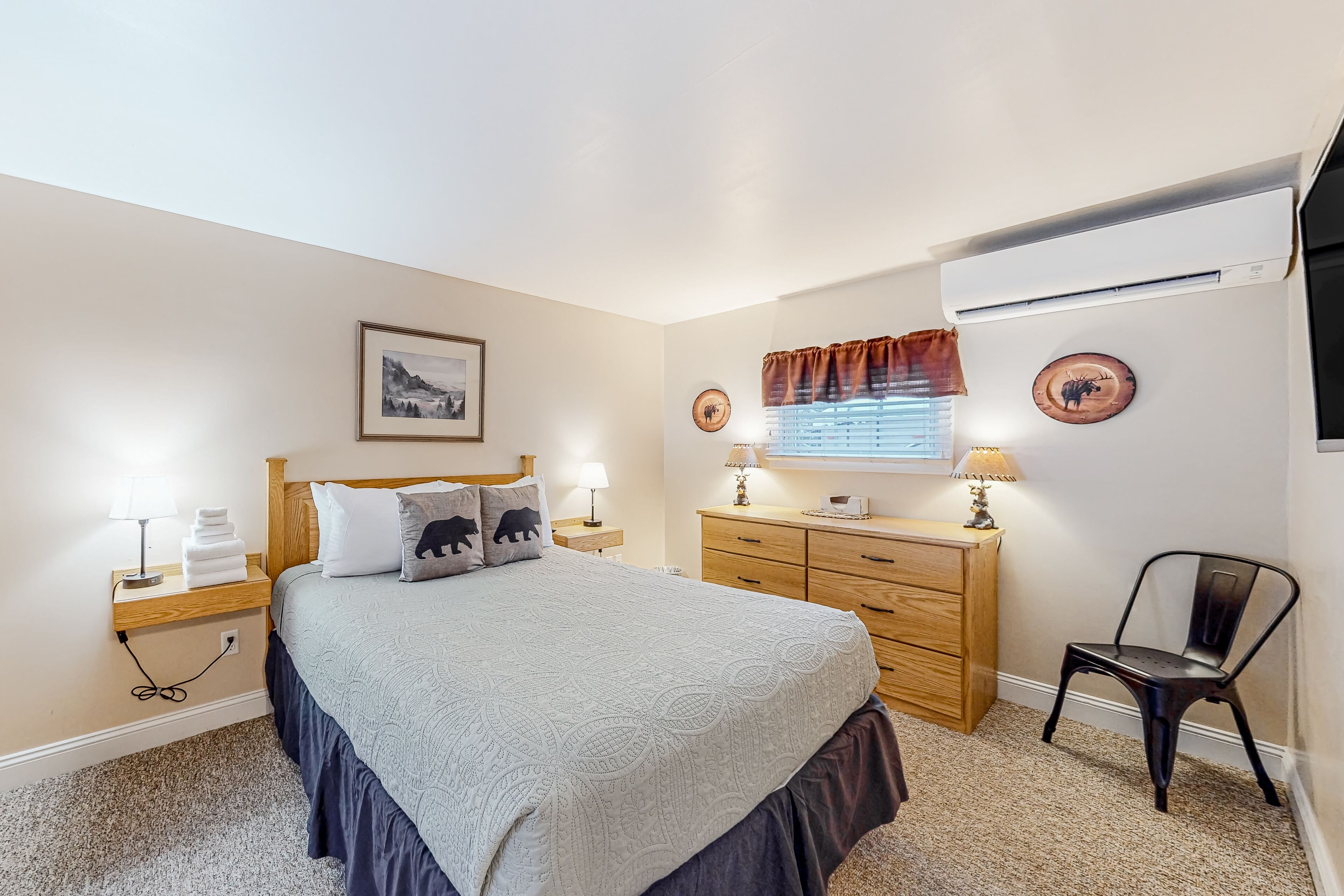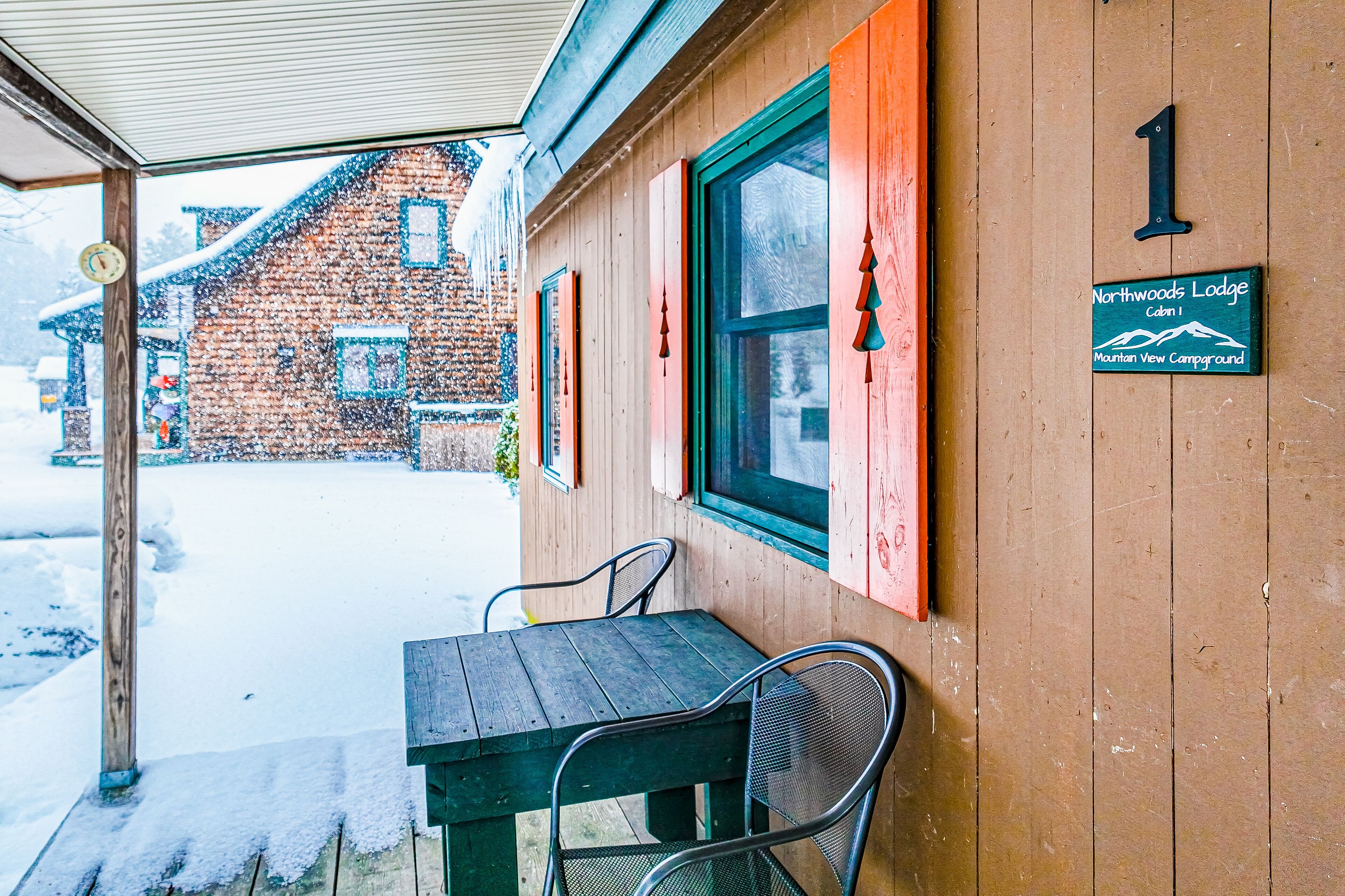 Dog-friendly, mountain-view cabin with shared hot tub, fireplace, & central AC Northwoods Lodge Cabin 1Our calendar is updated in real-time & our nightly rates are accurately displayed. Simply enter your desired dates and click 'Book Now!'This cozy cabin at Mountian View Campground is perfect for your next Vermont adventure. Enjoy relaxing in the shared covered hot tub, or walking on the 13 acres of riverfront property, excellent for enjoying the gorgeous mountain views. You’ll be in the perfect location to experience outdoor activities like skiing and snowshoeing, as well as delicious eateries and breweries for extra fun. Retreat to your abode after the day’s adventures and find a furnished porch, perfect for relaxing and unwinding. Inside, you’ll have all the amenities you need to make your stay a success! The living area has a soft sofa, a rustic rocking chair, and a desk, perfect for last-minute work projects. The adjoining space has a gas fireplace for additional coziness and a well-equipped kitchen. Sit down at the formal dining table to share meals and conversation about the day's explorations. In the spacious bedroom, enjoy ample sprawling space, soft bedding, and plenty of storage space. Rest assured that restful nights' sleep is guaranteed with the cabin's partial air-conditioning.THINGS TO KNOW Streaming TV services require guest accounts to access.The cabin is located on a campground property that is closed in the winter.If you are bringing a dog on your trip, the pet fee is already included in your quote when selecting ‘Yes’ to pets. If you would like to add more dogs, please contact us. The pet fee is per stay and ranges between $150 and $200, depending on the bedroom count, and will apply for each additional dog.Parking notes: There is free parking available for 1 vehicle.Please note: this home resides in a noise-sensitive area and the owners participate in our Good Neighbor protection program. Our smart home technology will alert our team if excessive decibel or occupancy levels are detected, allowing us to reach out directly with a reminder of maximum occupancy and quiet hours. This technology is privacy compliant, and only monitors the presence of decibels and devices-not any personal conversation or information. Thank you for supporting our efforts to be good neighbors!Damage waiver: The total cost of your reservation for this Property includes a nightly damage waiver fee, plus tax if applicable (the “Damage Waiver”). (A discount may be applied for stays of 28 nights or longer, if permitted.) The Damage Waiver covers you for up to $3,000 of accidental damage to the Property or its contents (such as furniture, fixtures, and appliances) as long as you report the incident to the host prior to checking out. The Damage Waiver fee eliminates the need for a traditional security deposit.More information can be downloaded from the "Rental Agreement" on the checkout page.Due to local laws or HOA requirements, guests must be at least 21 years of age to book. Guests under 21 must be accompanied by a parent or legal guardian for the duration of the reservation.