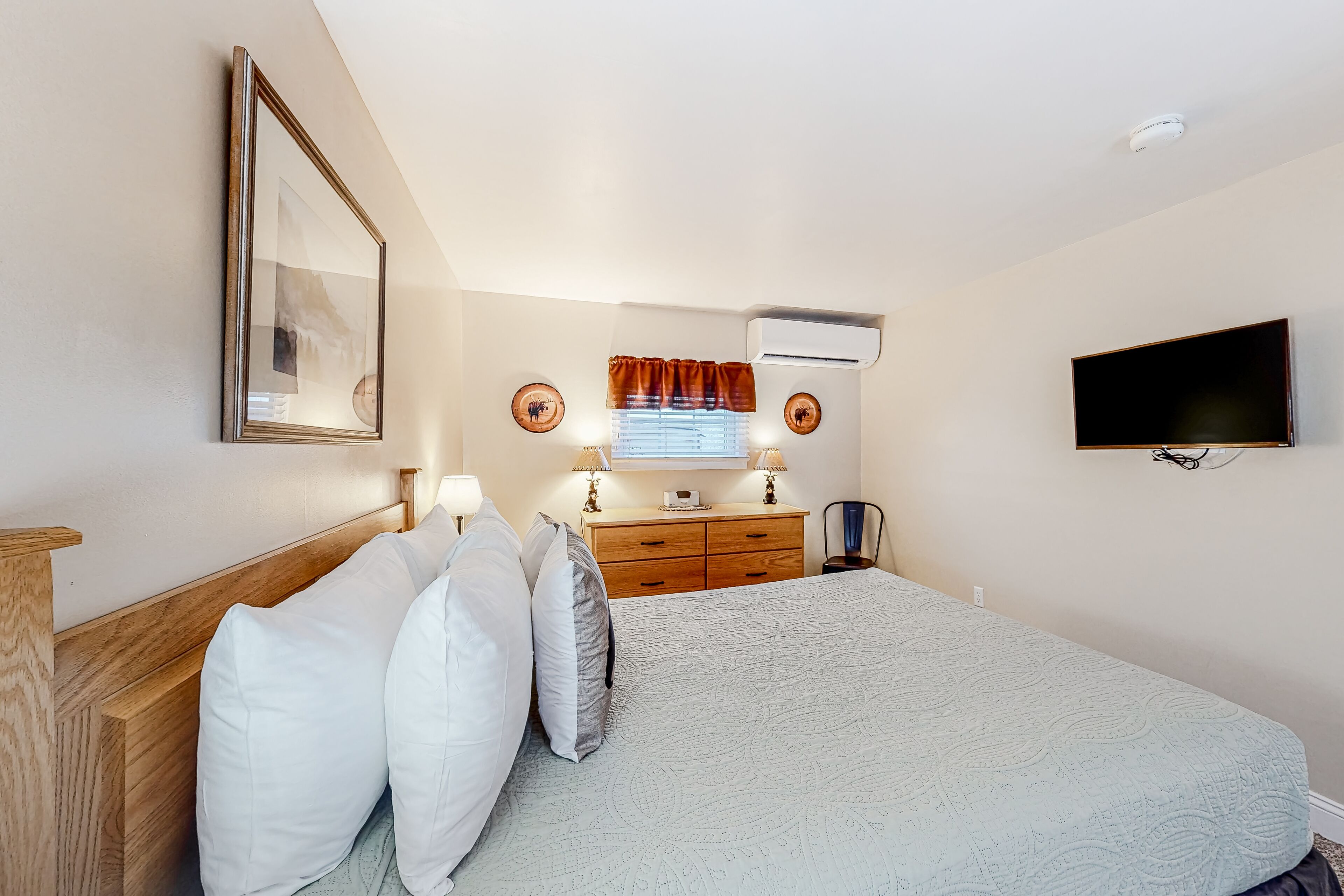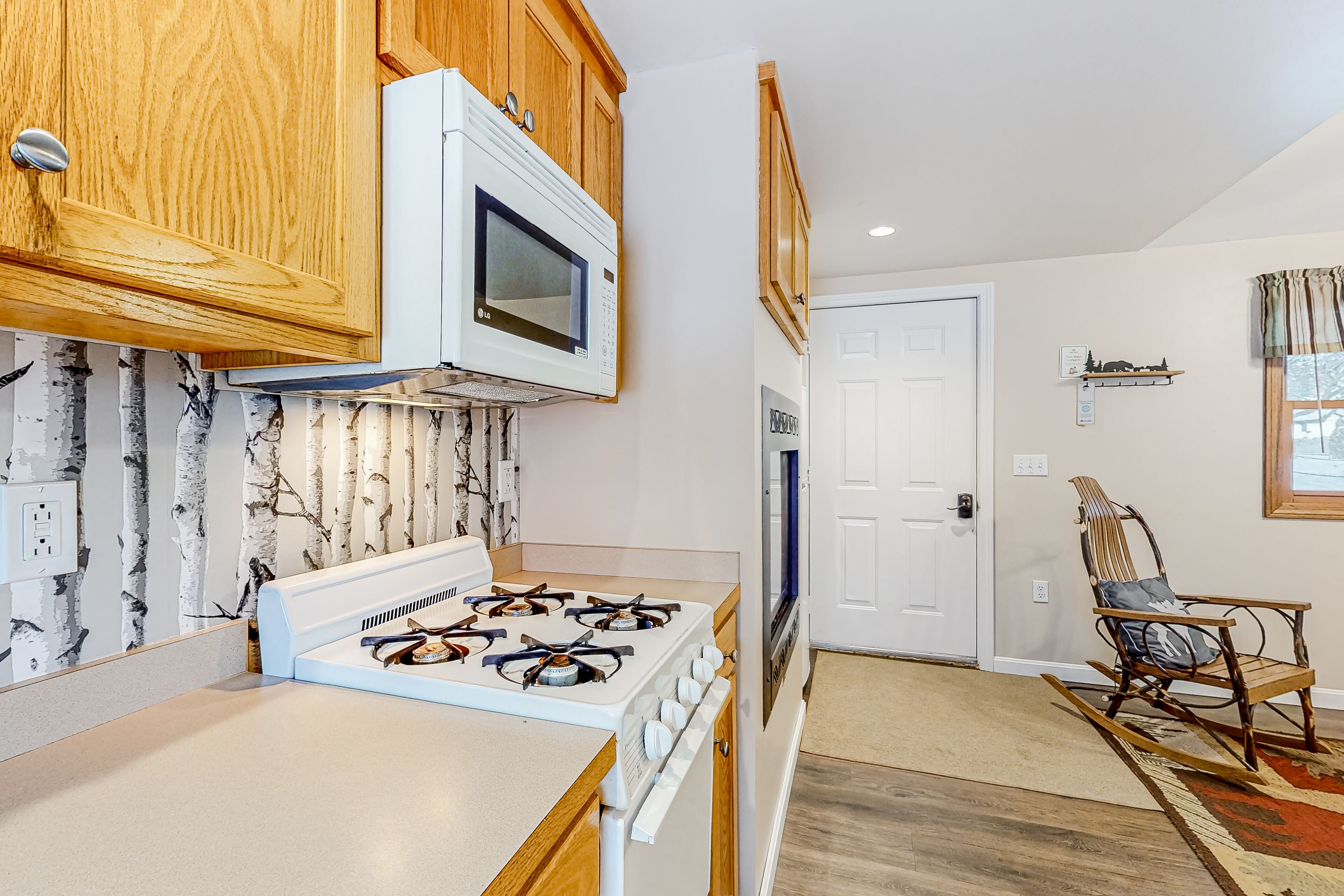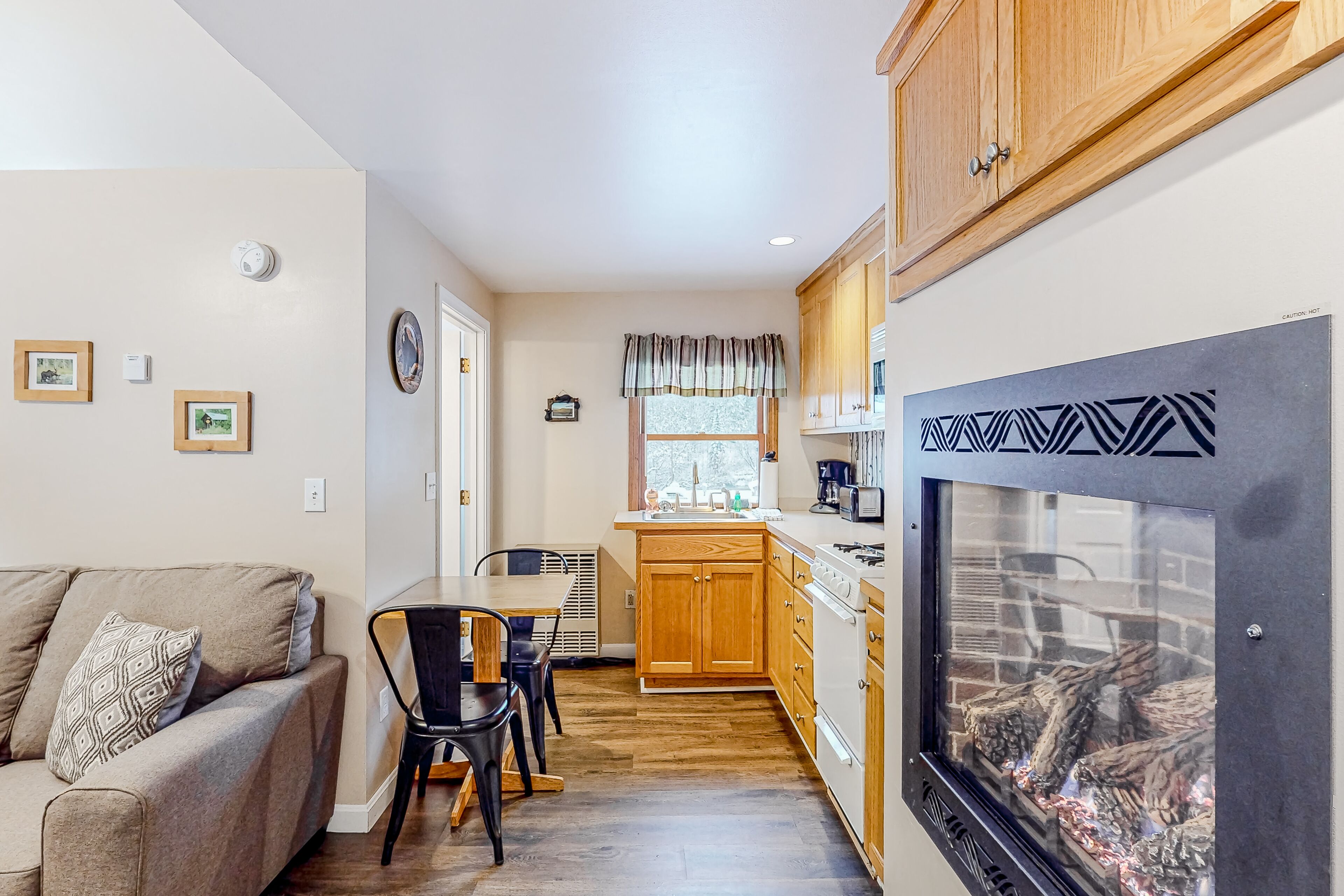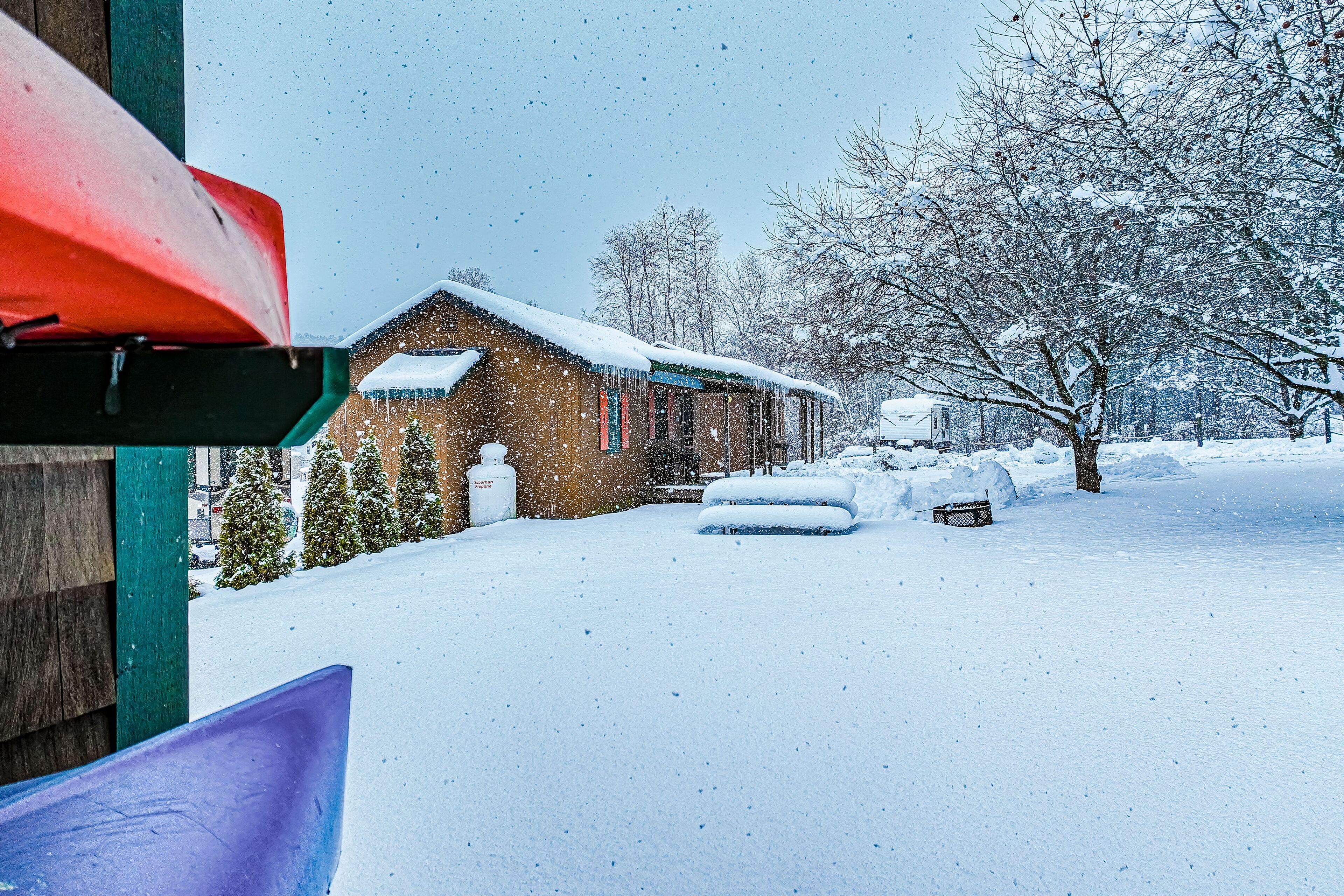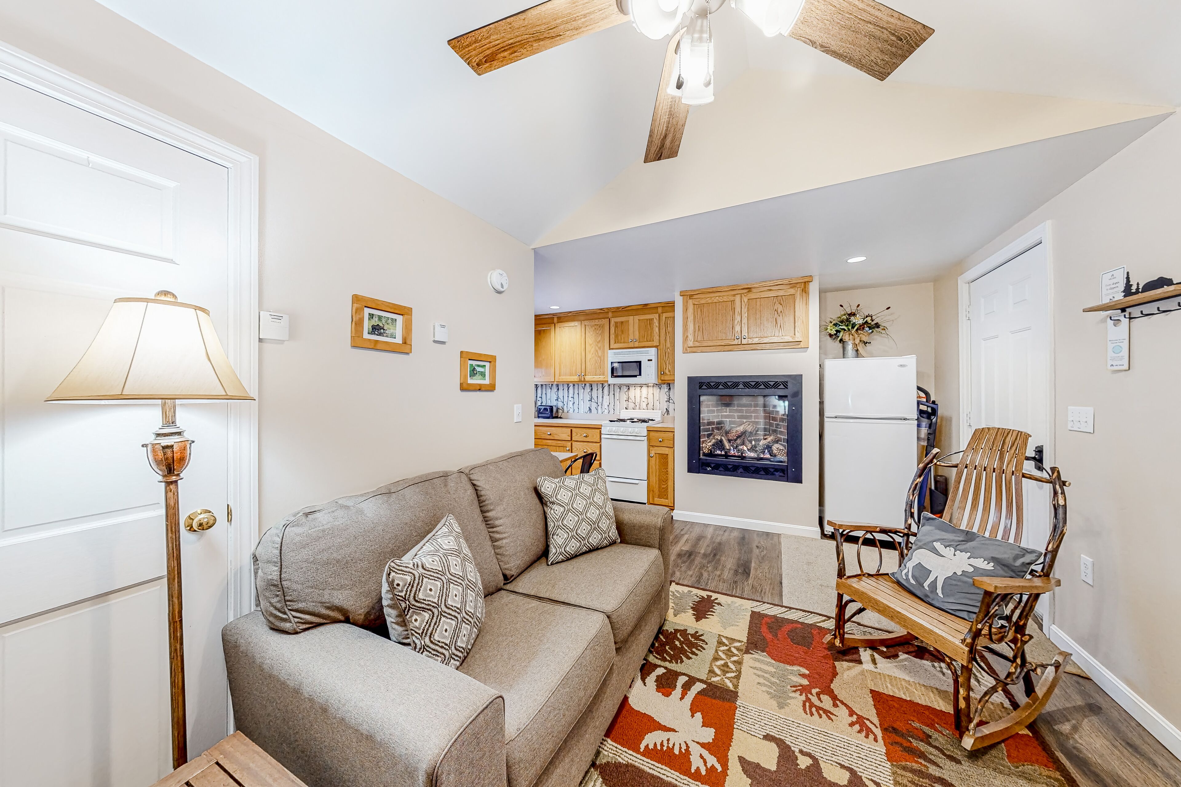 Dog-friendly, mountain-view cabin with shared hot tub, fireplace, & central AC Northwoods Lodge Cabin 1Our calendar is updated in real-time & our nightly rates are accurately displayed. Simply enter your desired dates and click 'Book Now!'This cozy cabin at Mountian View Campground is perfect for your next Vermont adventure. Enjoy relaxing in the shared covered hot tub, or walking on the 13 acres of riverfront property, excellent for enjoying the gorgeous mountain views. You’ll be in the perfect location to experience outdoor activities like skiing and snowshoeing, as well as delicious eateries and breweries for extra fun. Retreat to your abode after the day’s adventures and find a furnished porch, perfect for relaxing and unwinding. Inside, you’ll have all the amenities you need to make your stay a success! The living area has a soft sofa, a rustic rocking chair, and a desk, perfect for last-minute work projects. The adjoining space has a gas fireplace for additional coziness and a well-equipped kitchen. Sit down at the formal dining table to share meals and conversation about the day's explorations. In the spacious bedroom, enjoy ample sprawling space, soft bedding, and plenty of storage space. Rest assured that restful nights' sleep is guaranteed with the cabin's partial air-conditioning.THINGS TO KNOW Streaming TV services require guest accounts to access.The cabin is located on a campground property that is closed in the winter.If you are bringing a dog on your trip, the pet fee is already included in your quote when selecting ‘Yes’ to pets. If you would like to add more dogs, please contact us. The pet fee is per stay and ranges between $150 and $200, depending on the bedroom count, and will apply for each additional dog.Parking notes: There is free parking available for 1 vehicle.Please note: this home resides in a noise-sensitive area and the owners participate in our Good Neighbor protection program. Our smart home technology will alert our team if excessive decibel or occupancy levels are detected, allowing us to reach out directly with a reminder of maximum occupancy and quiet hours. This technology is privacy compliant, and only monitors the presence of decibels and devices-not any personal conversation or information. Thank you for supporting our efforts to be good neighbors!Damage waiver: The total cost of your reservation for this Property includes a nightly damage waiver fee, plus tax if applicable (the “Damage Waiver”). (A discount may be applied for stays of 28 nights or longer, if permitted.) The Damage Waiver covers you for up to $3,000 of accidental damage to the Property or its contents (such as furniture, fixtures, and appliances) as long as you report the incident to the host prior to checking out. The Damage Waiver fee eliminates the need for a traditional security deposit.More information can be downloaded from the "Rental Agreement" on the checkout page.Due to local laws or HOA requirements, guests must be at least 21 years of age to book. Guests under 21 must be accompanied by a parent or legal guardian for the duration of the reservation.