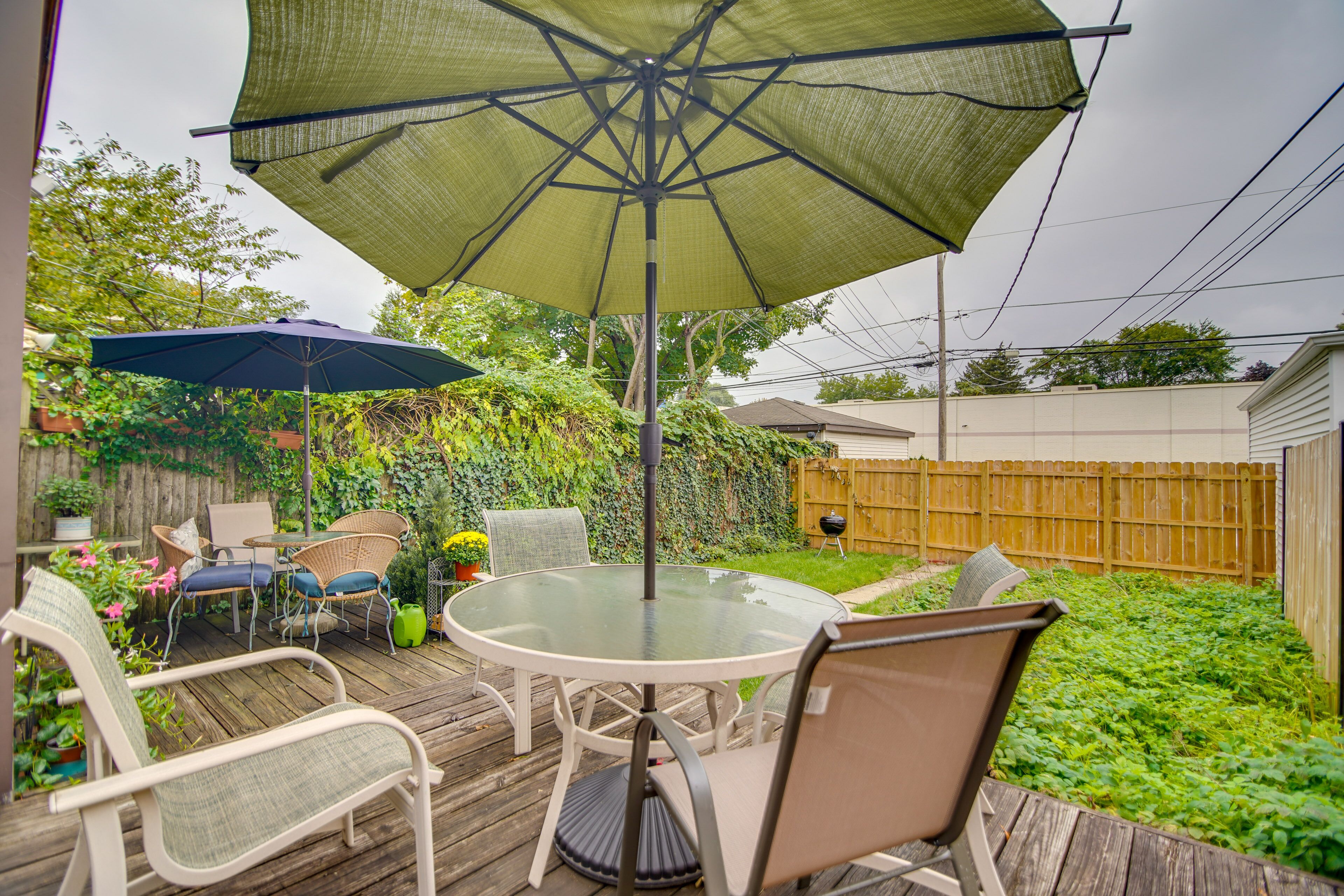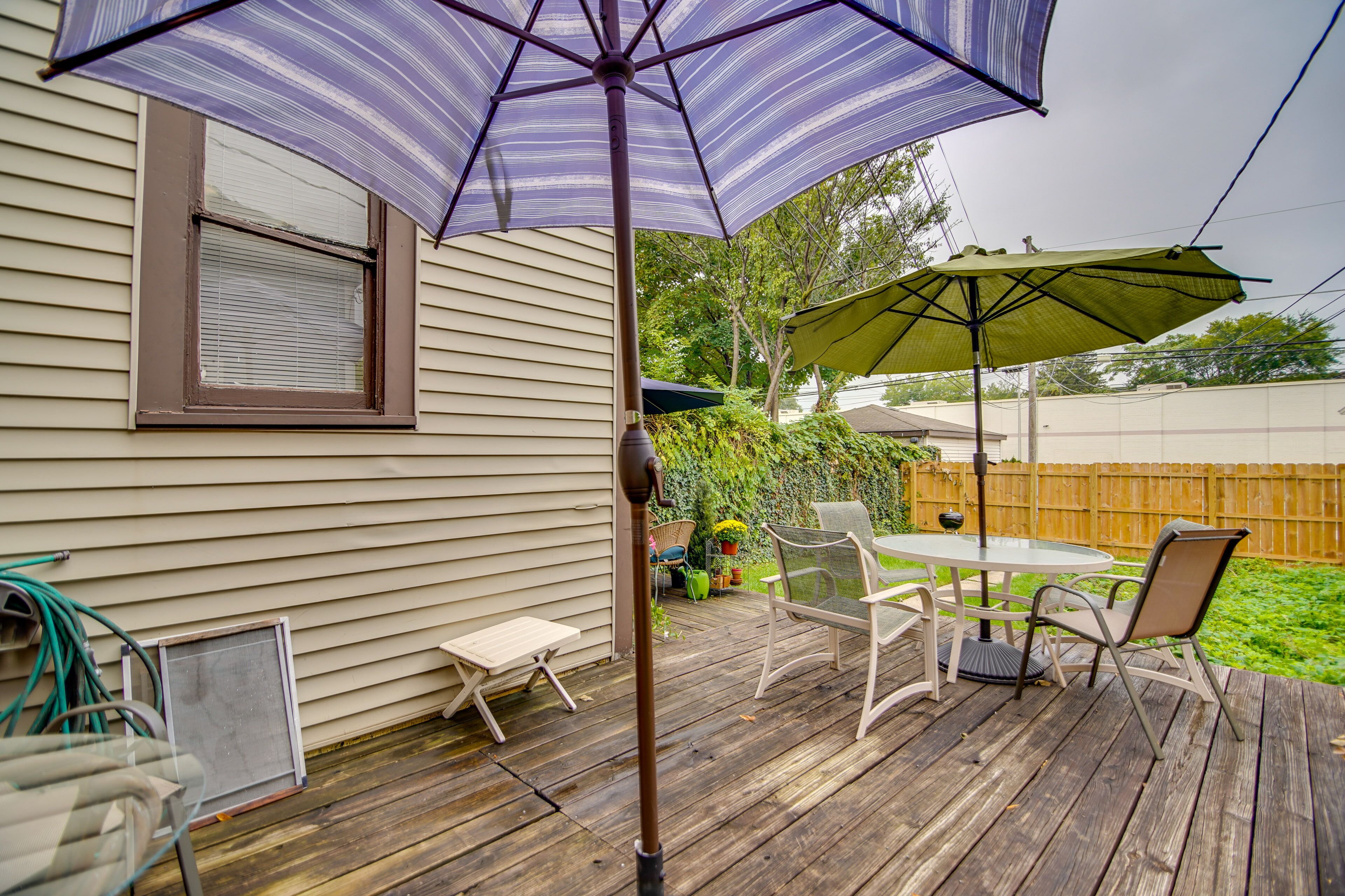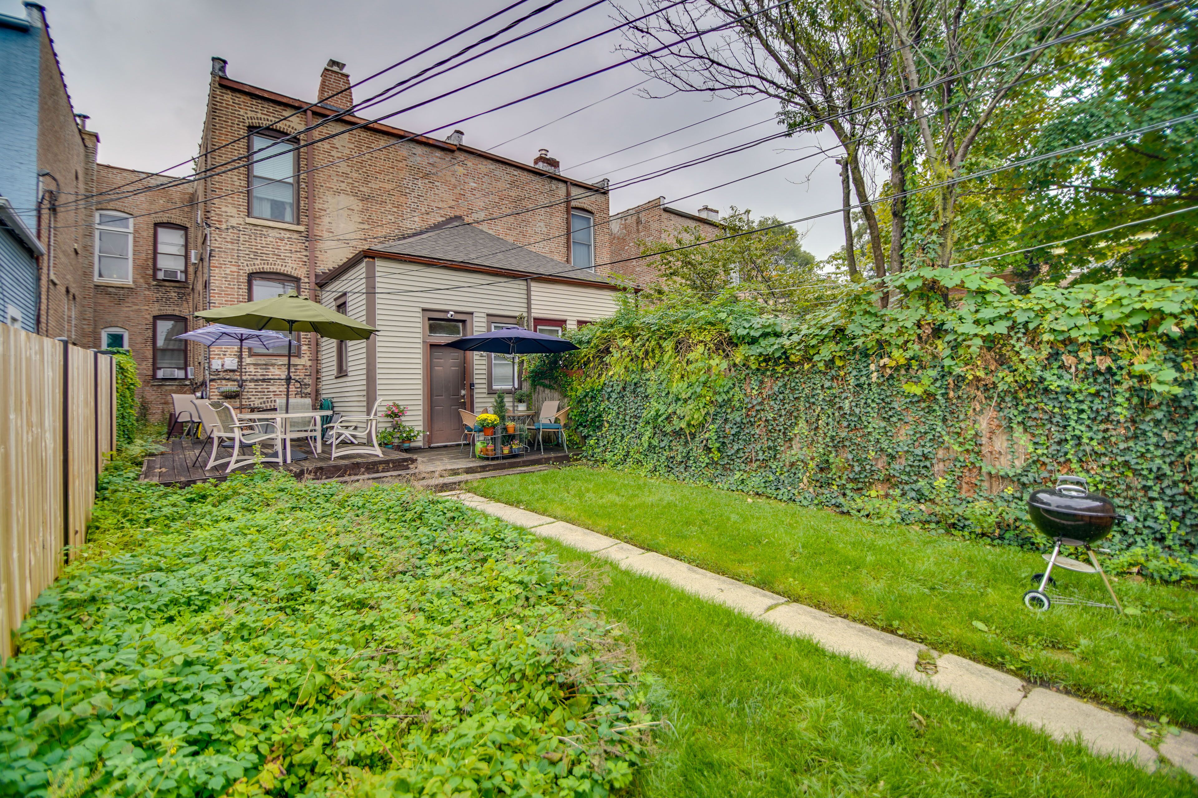 Historic Townhome in Oak Park w/ Backyard! Discover the best of the Chicago area when you book this charming 2-bedroom, 1-bathroom vacation rental! This Victorian townhome was nominated for historic landmark status, yet still features a modern interior equipped with all the essential amenities. The property is in a very walkable location within 4 blocks of downtown Oak Park, River Forest, and Forest Park. Plus, you’ll be 2 blocks from the nearest Metra and CTA stations! When you’re not exploring, look forward to relaxing on the deck.-- THE PROPERTY --Remote-Work Friendly | Off-Street Parking | Walkable Location | Close to Local RestaurantsBedroom 1: Queen Bed | Bedroom 2: Queen Bed, Twin BedOUTDOOR LIVING: Deck, charcoal grill, cornhole, badminton set, front porch, dining area, umbrella, fenced-in yardINDOOR LIVING: Smart TV, board games, small laptop desk, hardwood floors, dining tableKITCHEN: Cooking basics, Keurig coffee maker (w/ coffee & sugar provided), gas stovetop, knife set, toaster, microwaveGENERAL: Free WiFi, linens & towels, complimentary toiletries, radiator heating, portable electric heater, window A/C units, hair dryer, iron & boardFAQ: Stairs required, 2 Ring security cameras (facing out), 2 rentals on-site (separate units)PARKING: Designated parking spot (1 vehicle)-- THE LOCATION --DOWNTOWN CHICAGO (~10 miles): Willis Tower, Little Italy, The Art Institute of Chicago, Greektown, River West, Fulton River District, River North, Magnificent Mile, Streeterville, Chicago Riverwalk, New Eastside, Navy Pier, Millenium ParkWALKABLE (< 0.5 miles): Mills Park, Pleasant Home, Oak Park station, shops & restaurantsPARK DAYS: Austin Gardens (0.7 miles), Ridgeland Common Park (1 mile), Longfellow Park (1 mile), Barrie Park (2 miles), Euclid Square Park (2 miles), Scoville Park (1 mile)LOCAL HISTORY: Frank Lloyd Wright Home & Studio (1 mile), Ernest Hemingway Birthplace Museum (1 mile)AIRPORTS: Chicago Midway International Airport (10 miles), O’Hare International Airport (11 miles)-- REST EASY WITH US --Evolve makes it easy to find and book properties you’ll never want to leave. You can relax knowing that our properties will always be ready for you and that we’ll answer the phone 24/7. Even better, if anything is off about your stay, we’ll make it right. You can count on our homes and our people to make you feel welcome--because we know what vacation means to you.-- POLICIES --- No smoking- No pets allowed- No events, parties, or large gatherings- Must be at least 25 years old to book- Additional fees and taxes may apply- Photo ID may be required upon check-in- NOTE: The property requires stairs to access- NOTE: Your safety matters. This property features 2 exterior Ring security cameras. Camera 1 is located on the front door and camera 2 is located above the back door facing the parking area. The cameras are outward facing and do not look into interior spaces. The cameras record video and audio when activated by motion- NOTE: There are 2 separate rental units on-site; other tenants may be present during your stay