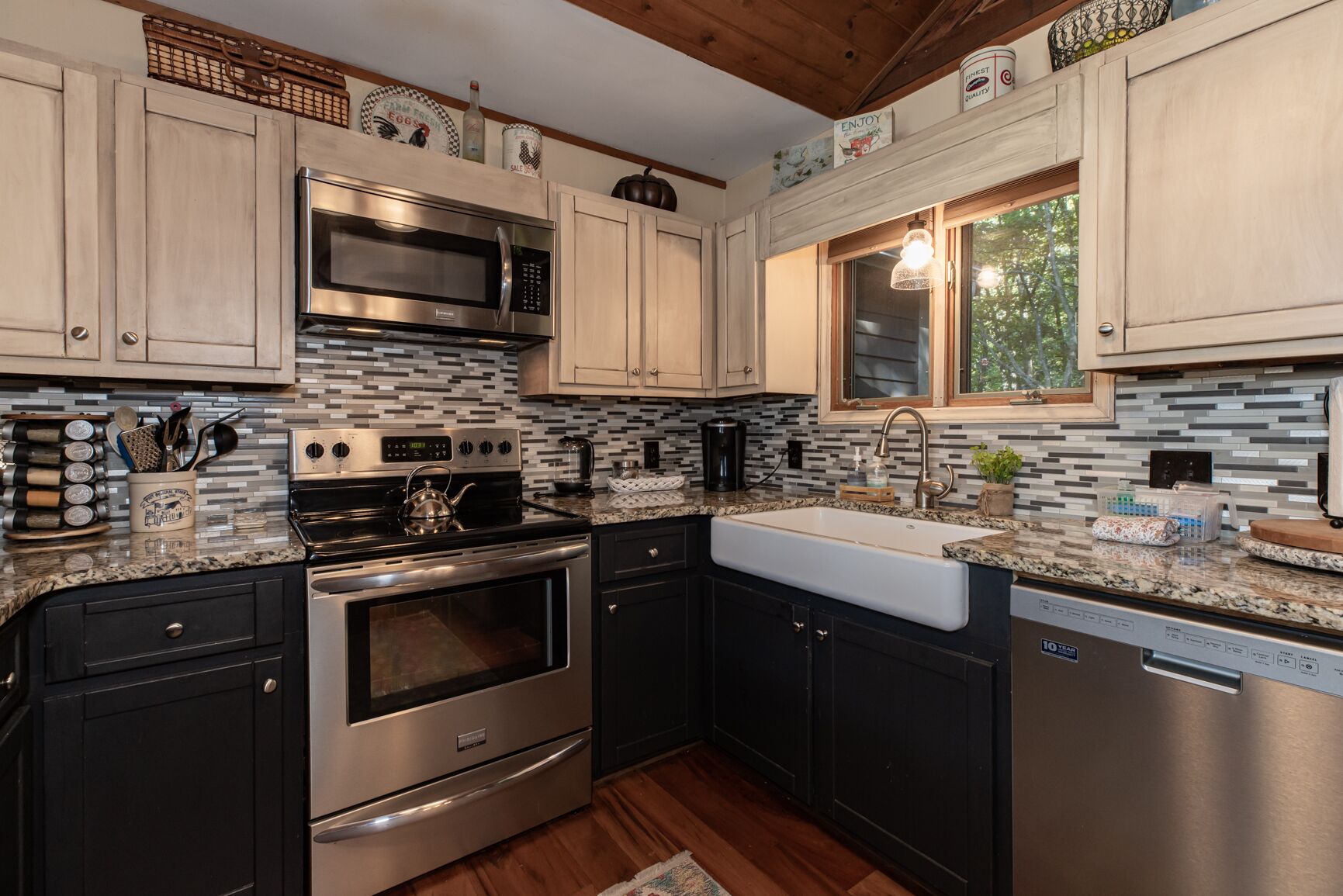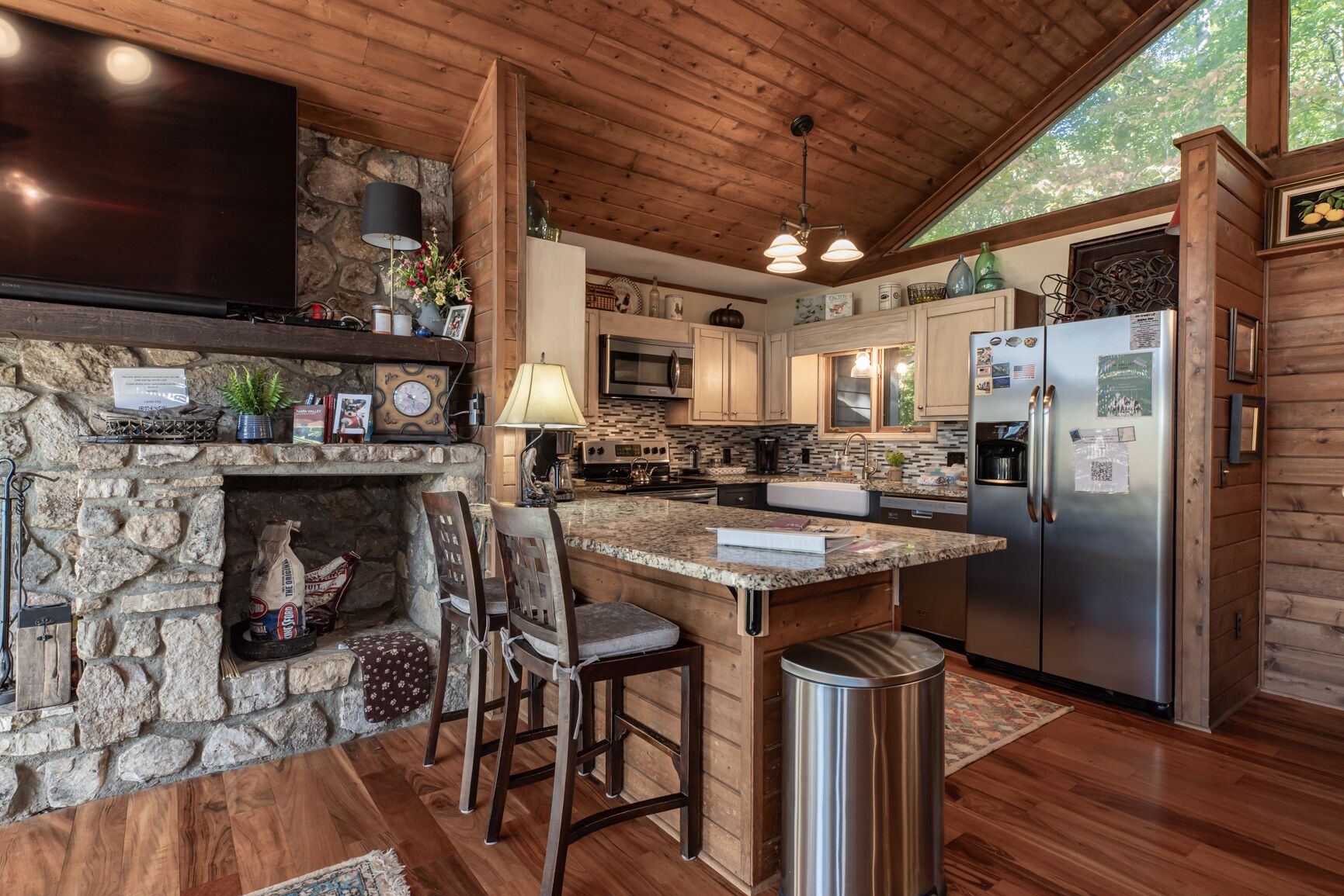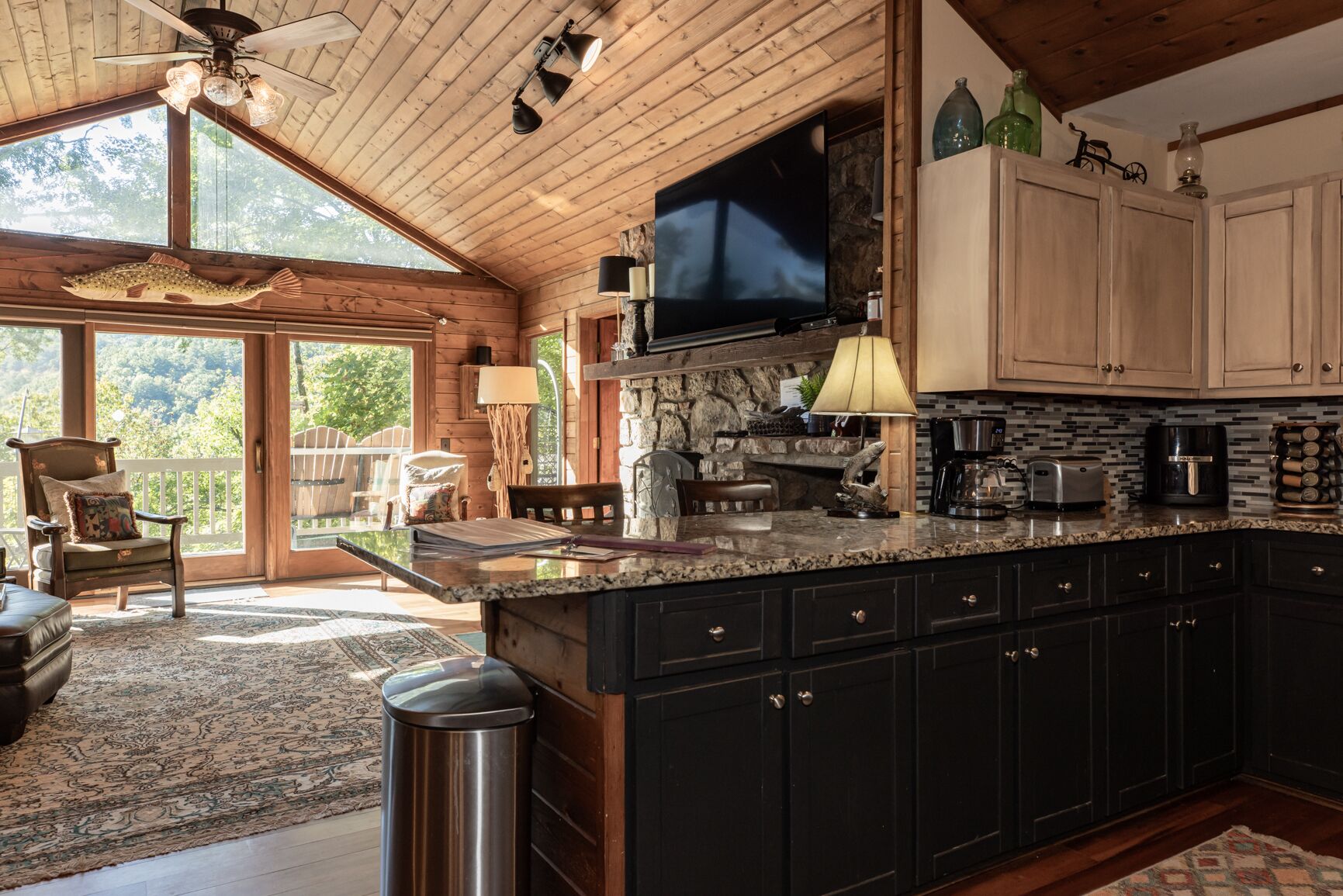 Hot Tub*Long Range Views*Resort Amenities*Pets OK SLEEPS 10 "Four Daughters Cabin" - Powder Horn Mountain* Sleeps 10 KKQ 2 Sets of Bunks, 4 bedrooms*Hot Tub*Long Range Views*Free access to Powder Horn Mountain amenities: Hiking Trails, Frisbee Golf, Tennis, Community pool, fitness center, campground, chapel, clubhouse.*Wood Burning fireplace*13 miles to Boone (25 mins)*21 miles to Banner Elk or Blowing Rock (40 mins)*Close to Appalachian State University*2 living rooms* NEW FIBER internet 500Mbps****4 Daughters has 2 levels of comfortable living, beautiful views and a HOT TUB. Zero steps on main level with 2 bedrooms(K,K) and 2 bathrooms, the kitchen, dining room, living room all on this level. Full wrap around deck with amazing views, outdoor seating and small firepit to create ambiance on those winter nights. The wood burning fireplace in the living room is the ultimate mountain necessity and wood can be purchased from the property manager prior to arrival for $10 per bundle. Pets are allowed for $50 per pet. Dogs only, Limit 2. Lower level has a living room, one full bath, and one bedroom with 2 sets of twin bunks and one bedroom with a Queen. There is also a walk out deck on this level with a dining area and the HOT TUB! This house has flat screen smart TV’s in both living rooms and in all three bedrooms. High Speed Skyline Skybest internet available for guests to use. A selection of movies and games are also available for guest use. This house has views from every level and if you listen quietly, you will hear the rushing creek below called Laurel Creek. This is house is very private and very easy to access in all seasons. You will only need 4wd if we have a major winter storm so check that forecast before you arrive! Ski resorts are about 45 mins away (30 miles). House AmenitiesLinens are provided along with one full roll of toilet paper per bathroom and one roll of paper towel in the kitchen. A small starter packet of laundry pods, dishwasher pods, hand soap, dish soap, sponge and some misc. The kitchen is heavily stocked with everything you need to feed a large group including all your silverware, dishes, cutting boards, pots and pans, knives, cookie sheets, measuring cups and spoons, can opener, strainer, crock pot, blender, mixer, mixing bowls, casserole dishes, full size fridge with ice maker. Gas stove and dishwasher along with plenty of counterspace for all your cooking needs. Both a drip coffee maker and Keurig are provided. Propane grill.The Neighborhood - Powder Horn Mountain - Deep Gap, NCRenters have access to the outdoor community pool during the summer months as well as miles of hiking trails, community clubhouse, fitness center, tennis court, campground, horseshoe pit, fishing, paddle boating, and more. The gated community of about 250 single family homes is a great getaway, located just a few hours from Charlotte, Greensboro, Winston Salem, and Raleigh. Cell phone signal is descent especially if you have Verizon but wifi calling is available. (check the settings on your phone) This house is the absolute getaway. Pets are ALLOWED for $50 per pet for the stay. Limited to no more than 4 and dogs only. You must make note of the fur babies when you make your reservation. 4 Daughters is about 20 minutes to Boone, 45 mins to Banner Elk and Blowing Rock and West Jefferson. This is the perfect place to stay while going out to enjoy High County festivals, Fly Fishing, the Blue Ridge Mountains, the Appalachian Trail, various wineries, breweries, and some App State Football! Shopping and local restaurants galore! 45 minutes to ski resorts.When you book,look for an email with an attached pdf almost immediately this will have your house access instructions and your gate code!