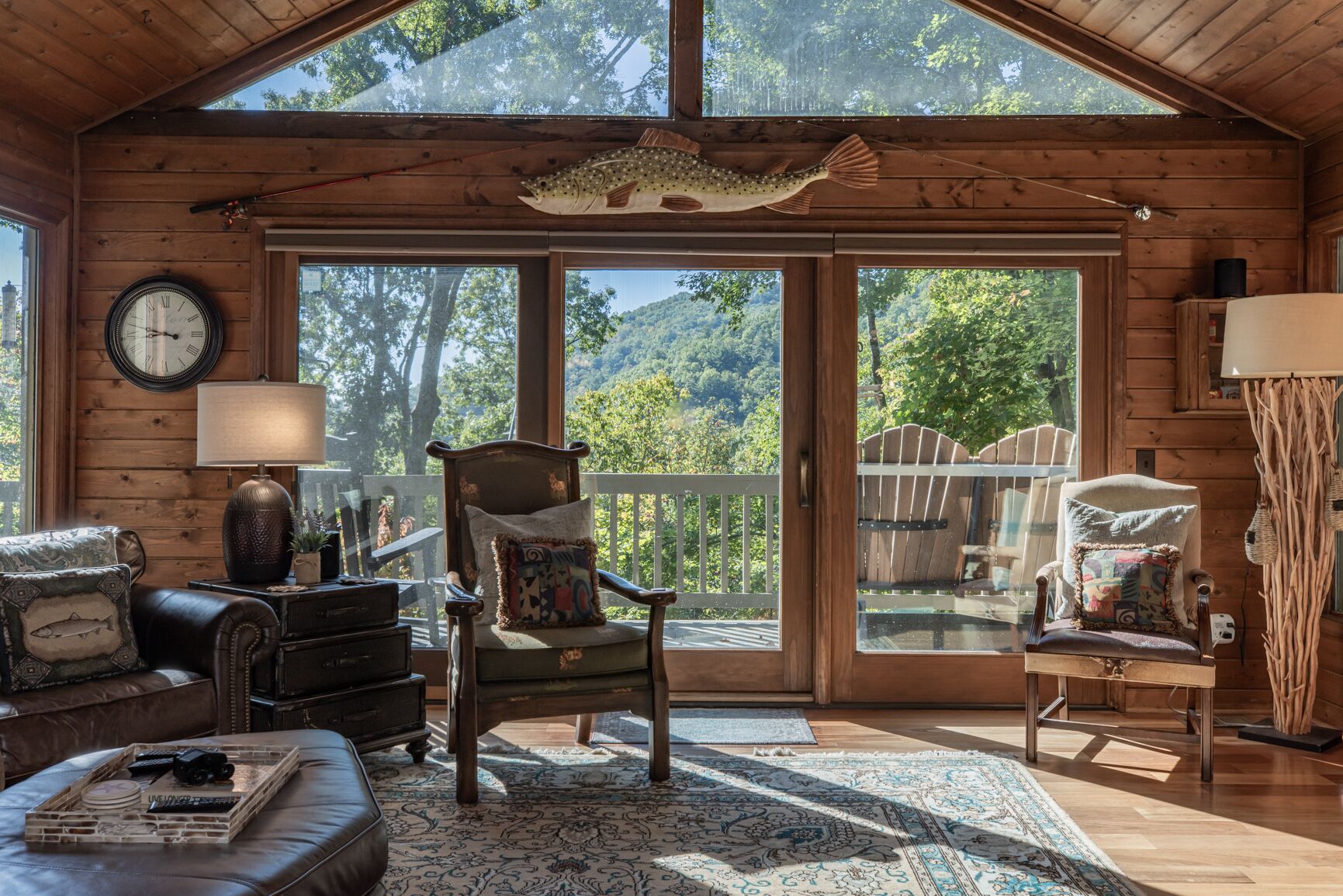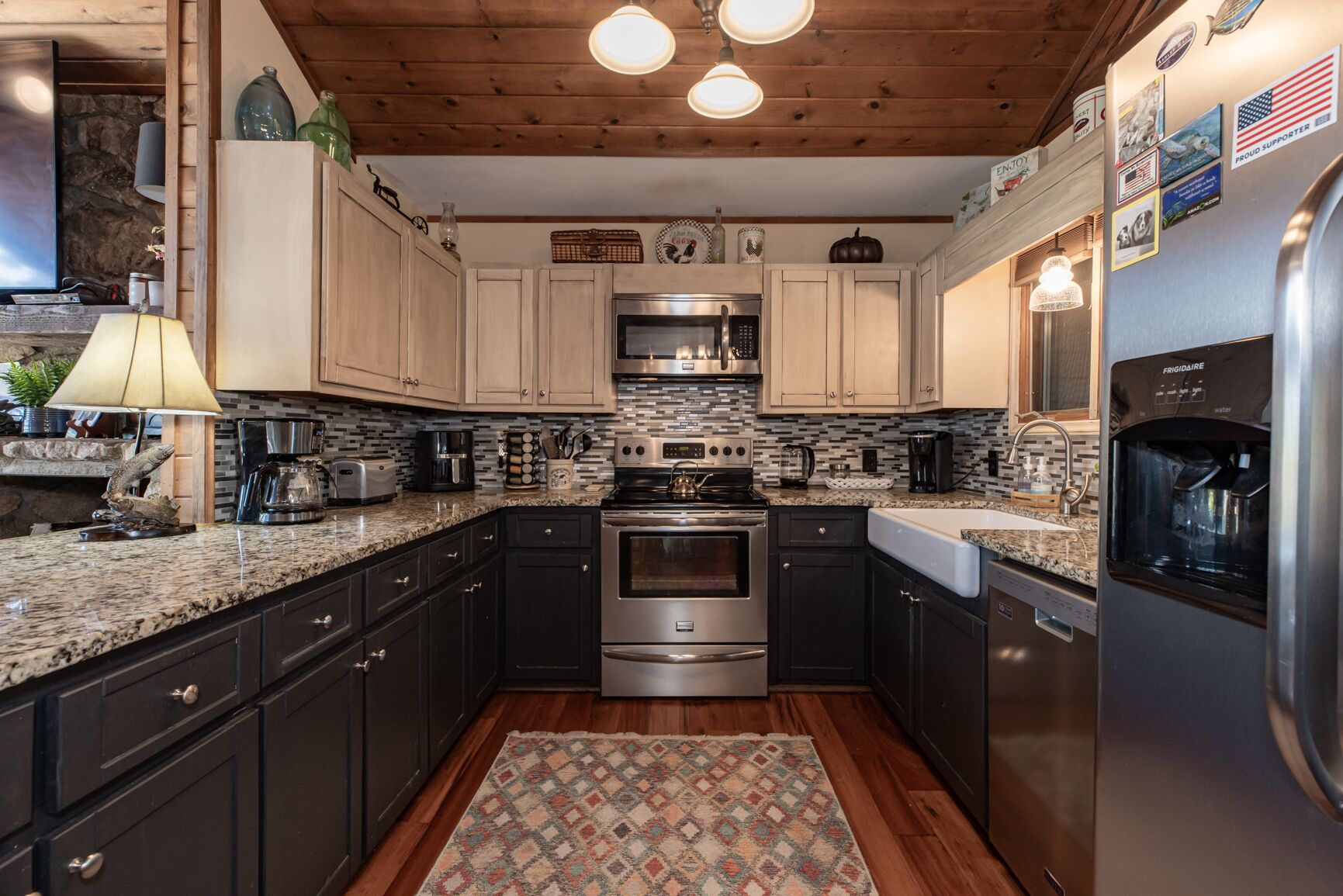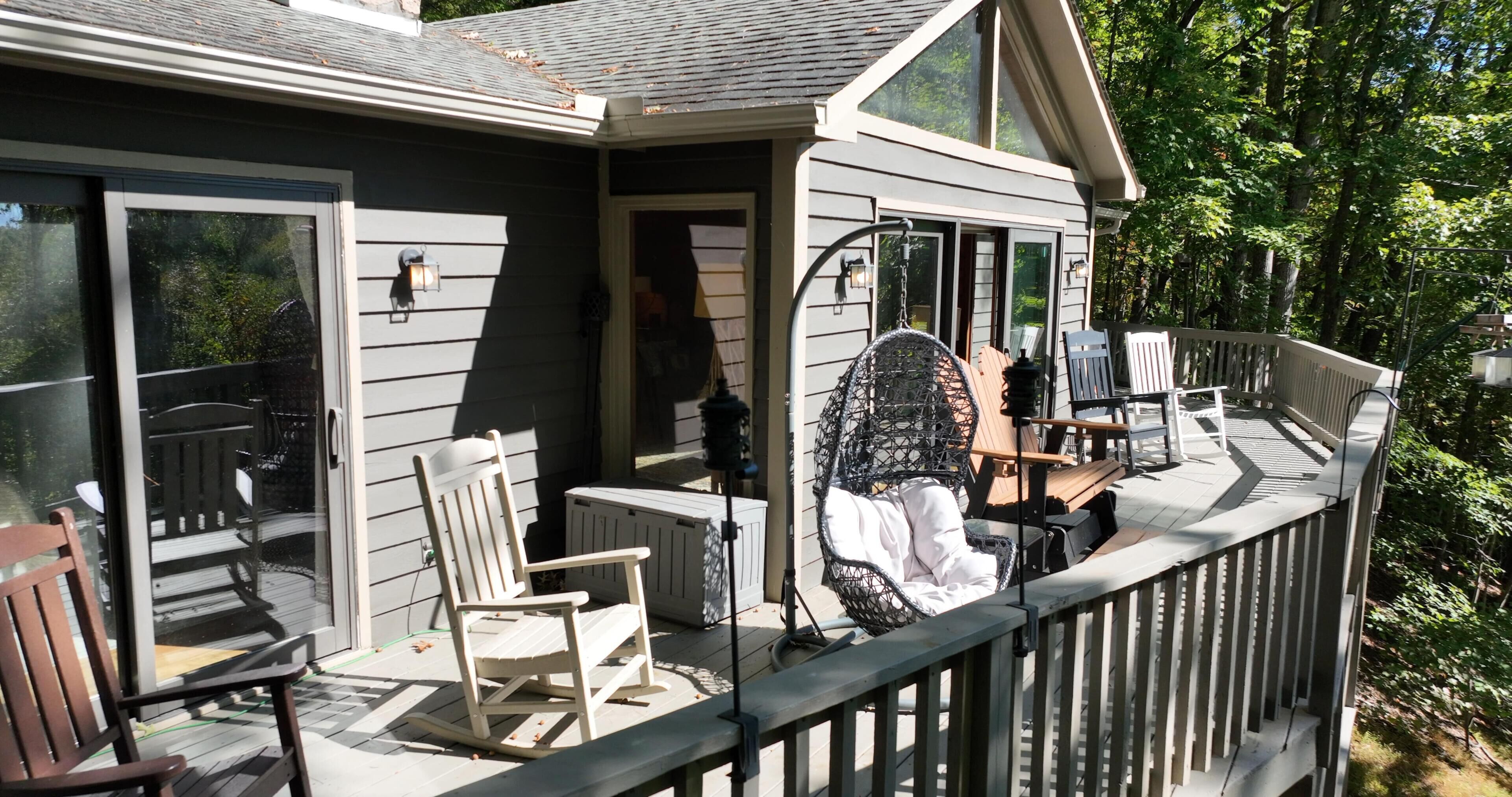 Hot Tub*Long Range Views*Resort Amenities*Pets OK SLEEPS 10 "Four Daughters Cabin" - Powder Horn Mountain* Sleeps 10 KKQ 2 Sets of Bunks, 4 bedrooms*Hot Tub*Long Range Views*Free access to Powder Horn Mountain amenities: Hiking Trails, Frisbee Golf, Tennis, Community pool, fitness center, campground, chapel, clubhouse.*Wood Burning fireplace*13 miles to Boone (25 mins)*21 miles to Banner Elk or Blowing Rock (40 mins)*Close to Appalachian State University*2 living rooms* NEW FIBER internet 500Mbps****4 Daughters has 2 levels of comfortable living, beautiful views and a HOT TUB. Zero steps on main level with 2 bedrooms(K,K) and 2 bathrooms, the kitchen, dining room, living room all on this level. Full wrap around deck with amazing views, outdoor seating and small firepit to create ambiance on those winter nights. The wood burning fireplace in the living room is the ultimate mountain necessity and wood can be purchased from the property manager prior to arrival for $10 per bundle. Pets are allowed for $50 per pet. Dogs only, Limit 2. Lower level has a living room, one full bath, and one bedroom with 2 sets of twin bunks and one bedroom with a Queen. There is also a walk out deck on this level with a dining area and the HOT TUB! This house has flat screen smart TV’s in both living rooms and in all three bedrooms. High Speed Skyline Skybest internet available for guests to use. A selection of movies and games are also available for guest use. This house has views from every level and if you listen quietly, you will hear the rushing creek below called Laurel Creek. This is house is very private and very easy to access in all seasons. You will only need 4wd if we have a major winter storm so check that forecast before you arrive! Ski resorts are about 45 mins away (30 miles). House AmenitiesLinens are provided along with one full roll of toilet paper per bathroom and one roll of paper towel in the kitchen. A small starter packet of laundry pods, dishwasher pods, hand soap, dish soap, sponge and some misc. The kitchen is heavily stocked with everything you need to feed a large group including all your silverware, dishes, cutting boards, pots and pans, knives, cookie sheets, measuring cups and spoons, can opener, strainer, crock pot, blender, mixer, mixing bowls, casserole dishes, full size fridge with ice maker. Gas stove and dishwasher along with plenty of counterspace for all your cooking needs. Both a drip coffee maker and Keurig are provided. Propane grill.The Neighborhood - Powder Horn Mountain - Deep Gap, NCRenters have access to the outdoor community pool during the summer months as well as miles of hiking trails, community clubhouse, fitness center, tennis court, campground, horseshoe pit, fishing, paddle boating, and more. The gated community of about 250 single family homes is a great getaway, located just a few hours from Charlotte, Greensboro, Winston Salem, and Raleigh. Cell phone signal is descent especially if you have Verizon but wifi calling is available. (check the settings on your phone) This house is the absolute getaway. Pets are ALLOWED for $50 per pet for the stay. Limited to no more than 4 and dogs only. You must make note of the fur babies when you make your reservation. 4 Daughters is about 20 minutes to Boone, 45 mins to Banner Elk and Blowing Rock and West Jefferson. This is the perfect place to stay while going out to enjoy High County festivals, Fly Fishing, the Blue Ridge Mountains, the Appalachian Trail, various wineries, breweries, and some App State Football! Shopping and local restaurants galore! 45 minutes to ski resorts.When you book,look for an email with an attached pdf almost immediately this will have your house access instructions and your gate code!