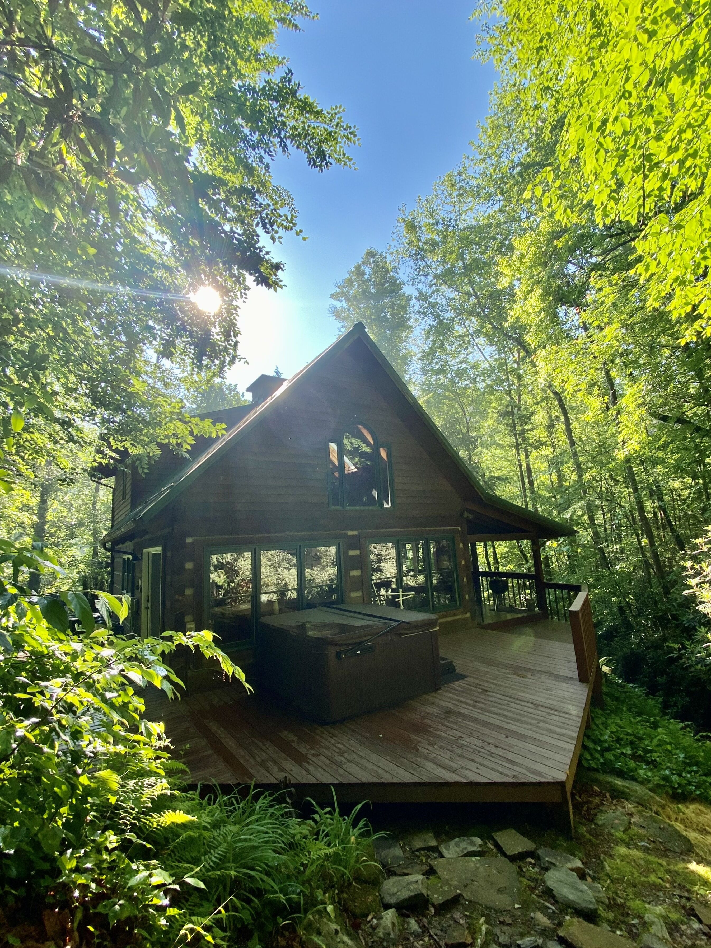 Serene mountain cabin on 10 acres with hot tub, creek and waterfall near Boone! Welcome to our peaceful and private retreat! Our log cabin is nestled on 10 acres in the North Carolina mountains! Soak in the hot tub just outside on the deck while you watch the water flow from the waterfall just feet away. Spend some time hiking the private trails on the property in search of the mountain swing. Gra...
