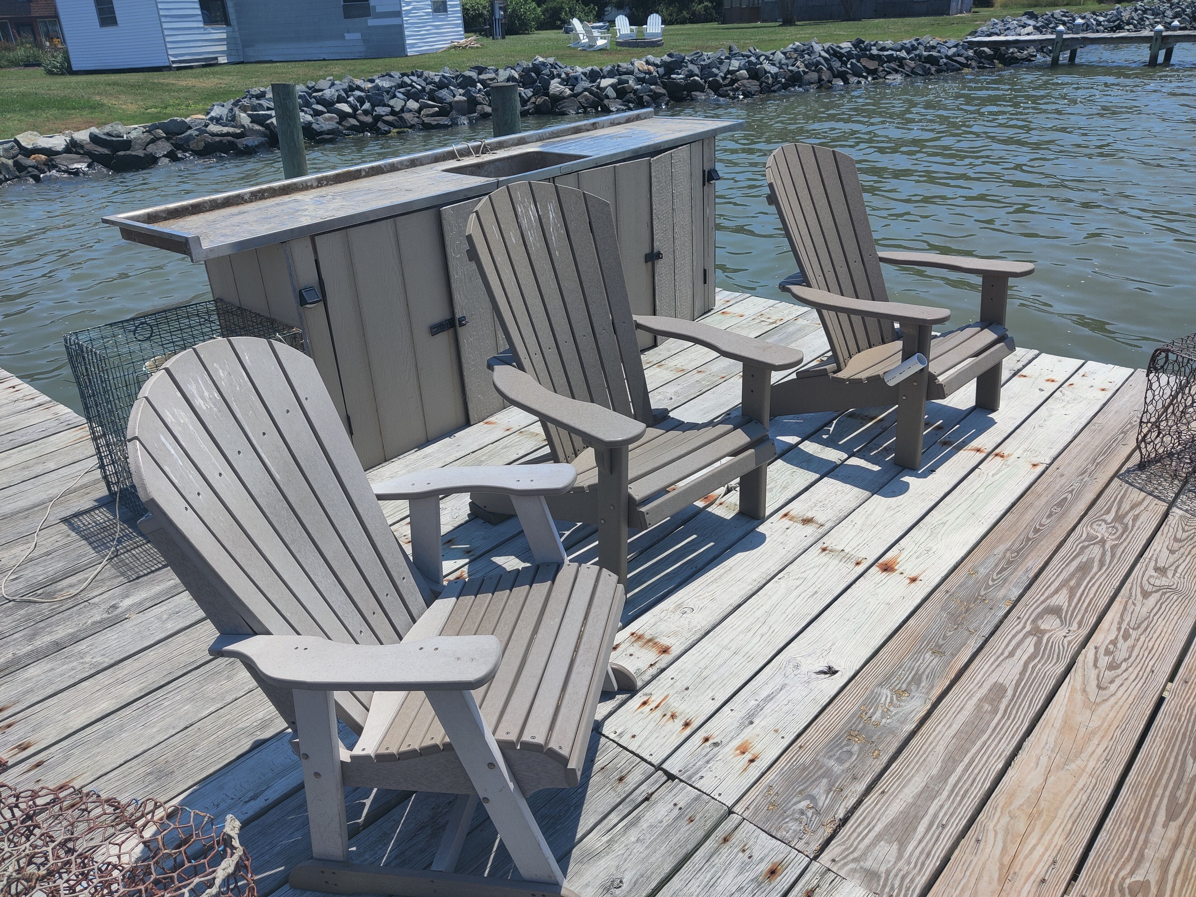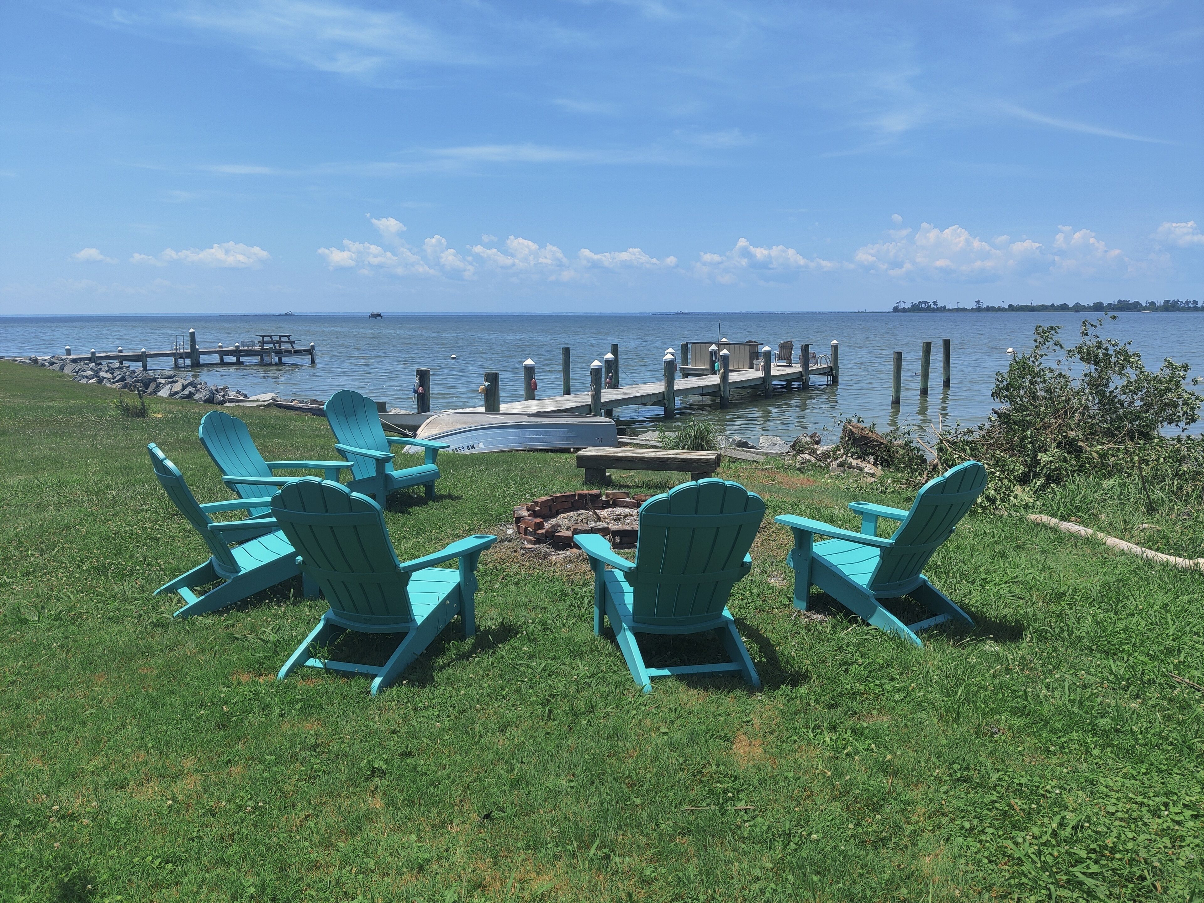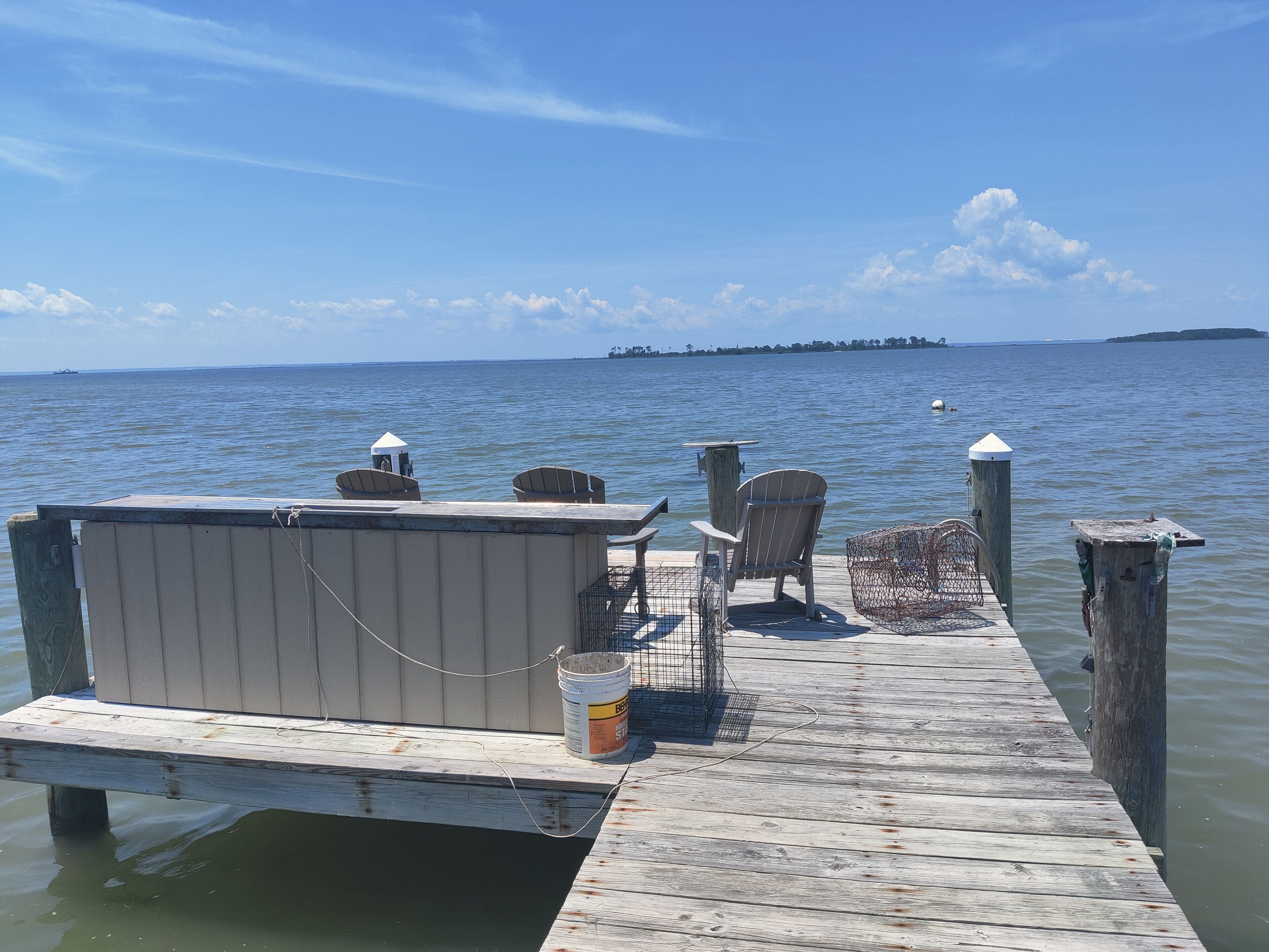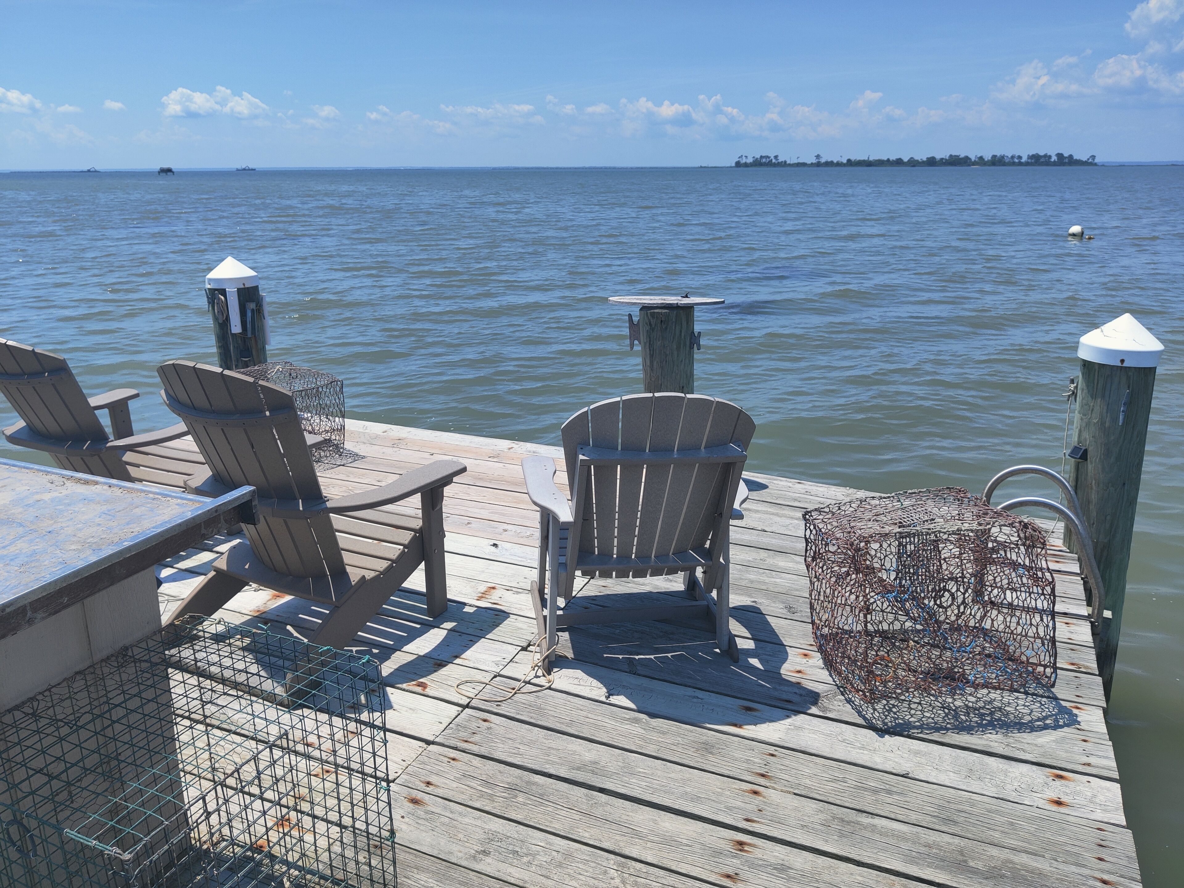 Waterfront Historic "Old Bank" on Hoopers Island A step back in time with all the modern amenities you are accustomed to. Fabulous sunset views out to Barren Island and the open waters of the Chesapeake bay. Crabbing, fishing, swimming, kayaking, boating right from your private dock. Relax on the Adirondacks on the dock or at the fire pit. Walk to Old Salty's for fine dining and entertainment at the outdoor tiki bar.The Old Bank is a perfect vacation home for one couple or three. The original bank structure was modified for residential living with two bedrooms, a bath, living room and a small kitchen in the bank vault. A second residence was later added to the waterfront side with an open kitchen, living and dining space, as well as a bedroom and bath.The spaces are now combined but retain a distinct separation with the vault as a pass through. One couple can enjoy the waterfront section while another couple, or two (or the kids) enjoys the bank and its beautiful views of the marsh and out to back creek. Each side offers private bath and living space.The rooftop deck is spacious. The yard is open and offers unimpeded views of Tar Bay, out to Barren Island and the open Chesapeake. You'll watch passing ships, working crab and oyster boats and the sunsets are nothing short of spectacular.Hoopers Island is one of the last working "waterman's" islands remaining. Purchase seafood right from the local watermen or haul in your own from your private dock. Of course, you can just walk down the road a few houses to Old Salty's and let them do the work for you while enjoying your favorite adult beverage at the tiki bar. Bring your bicycles! Hoppers Island and the Blackwater National Refuge at large is one of the very best road biking areas anywhere. Pedal north for breakfast and supplies at the general store, or pedal south all the way to the end of Middle Hoopers and enjoy sweeping views of the Honga River to the east and the open Chesapeake to the west.Bring your kayaks! Launch right from the property and enjoy a leisurely, or vigorous, paddle out to Barren Island, North to Fishing Creek and the sandbars, South to the pass between Upper and Middle Hoopers and into the Honga. Continue for a loop around the Island or cut into back creek and take out just down the road a cross the road from Old Salty's. Paddle up to the head of the Honga and get lost in the maze of marsh channels throughout the Blackwater.Bring your fishing and crabbing gear and enjoy world class action right from the dock or bring your boat and chase that action farther from shore. There are free boat launches at Fishing Creek and Hooperville. Our dock is set up to accommodate two or more boats safely with hold off piers (posts).Bring your stress, your troubles, your utter exhaustion and watch them all roll away with the ebbing tide. Hoopers Island is Heaven. The Old Bank is our little slice. It can be yours too. Please note: There are two outdoor cameras located on the garage. There is also a doorbell camera.