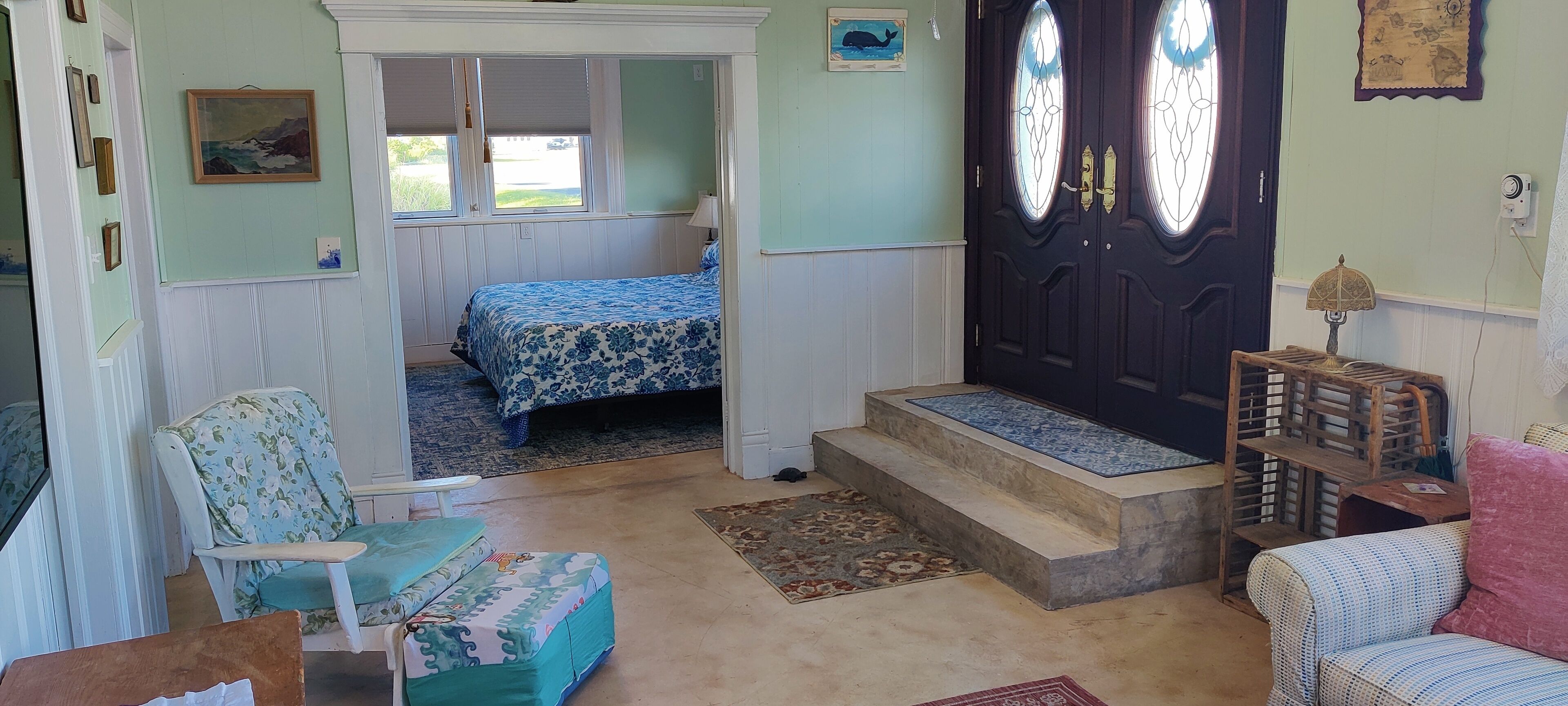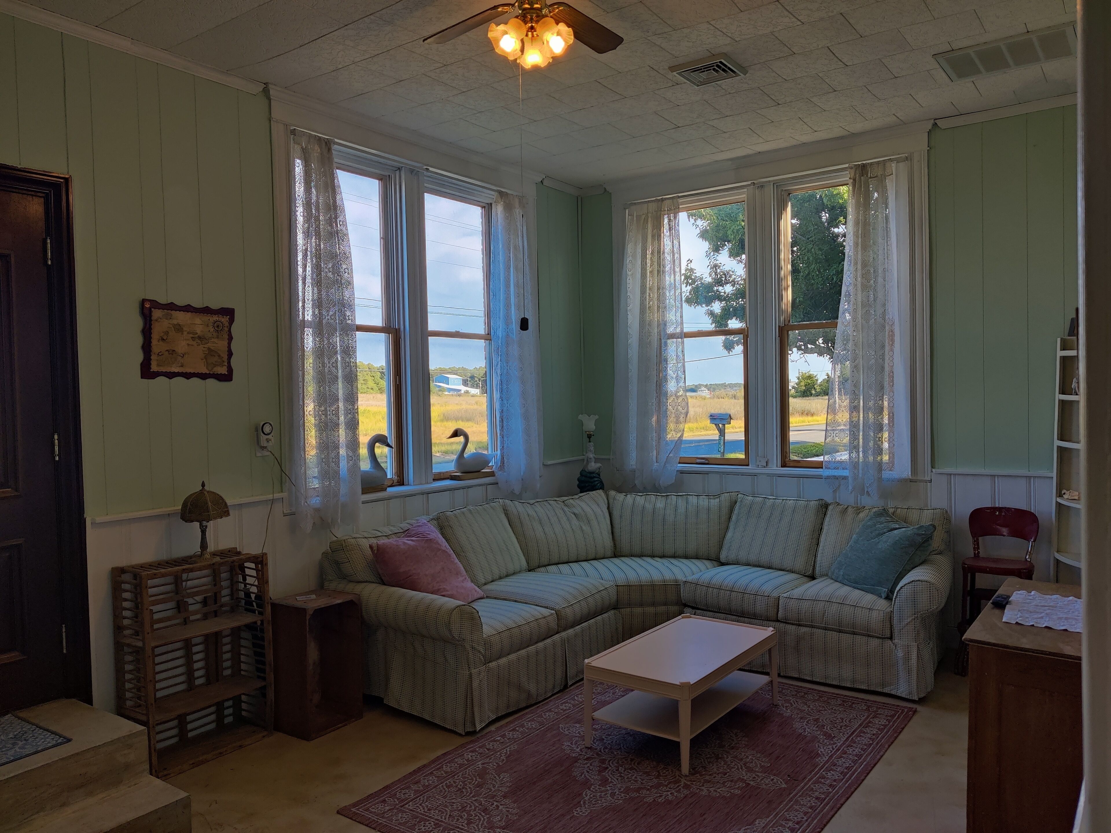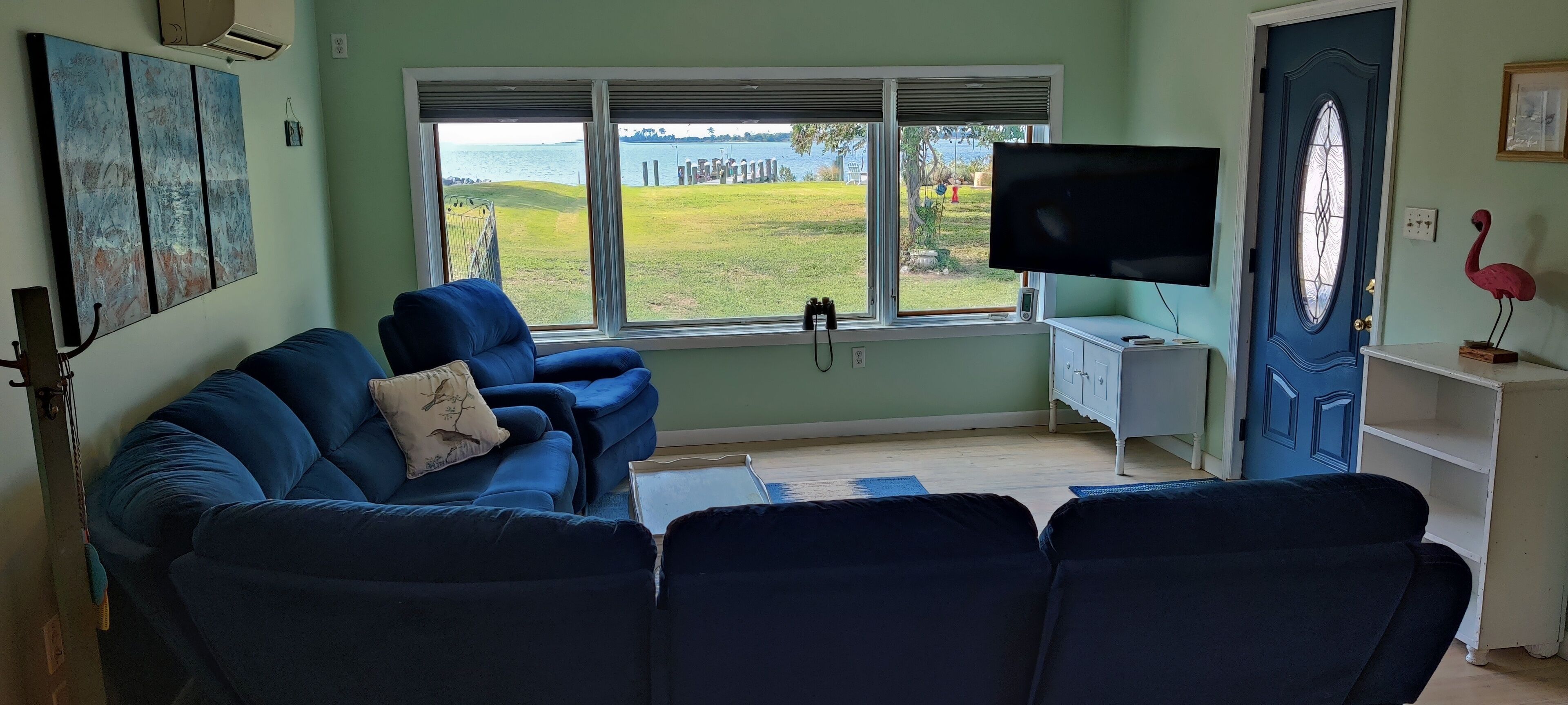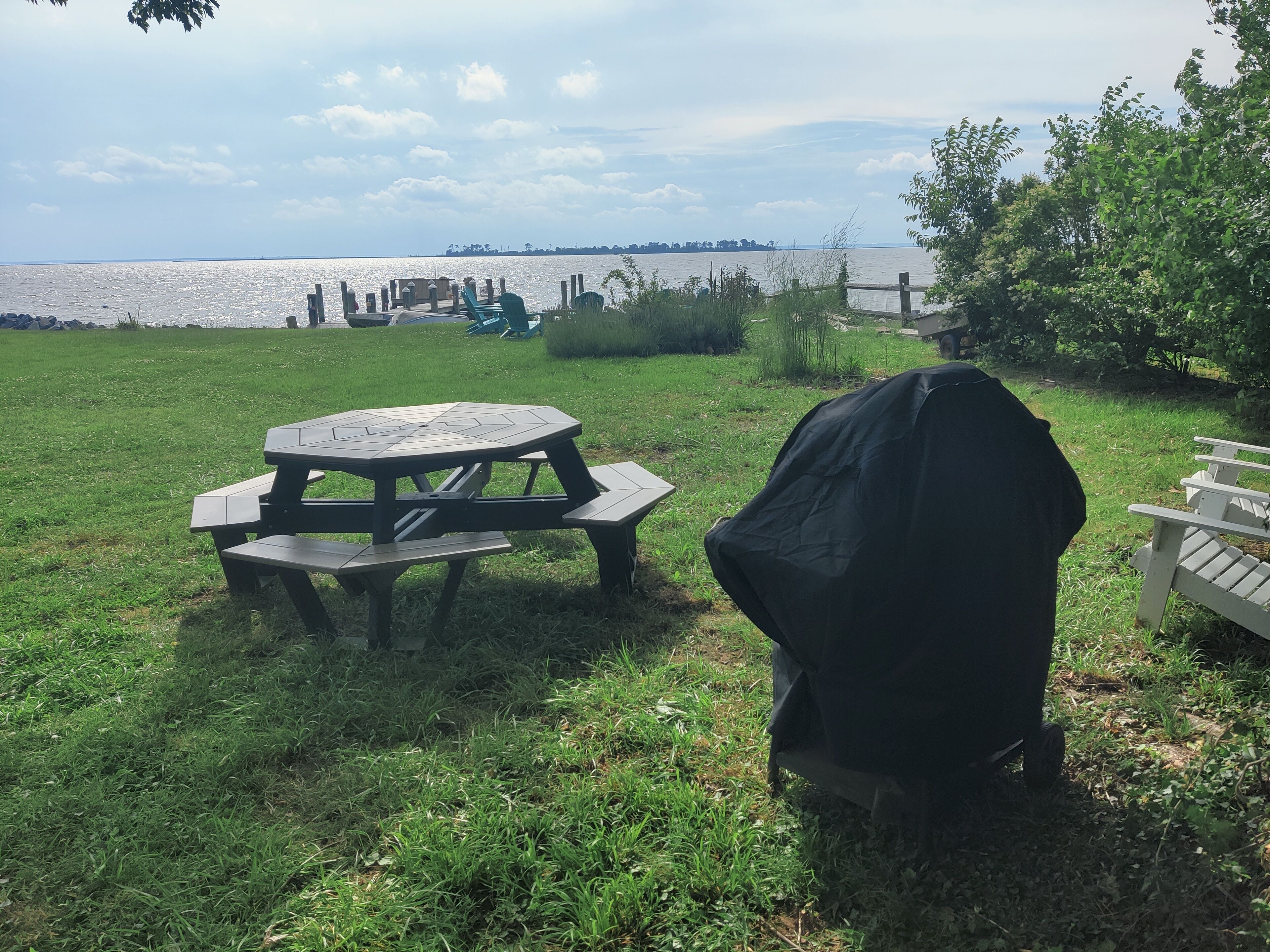 Waterfront Historic "Old Bank" on Hoopers Island A step back in time with all the modern amenities you are accustomed to. Fabulous sunset views out to Barren Island and the open waters of the Chesapeake bay. Crabbing, fishing, swimming, kayaking, boating right from your private dock. Relax on the Adirondacks on the dock or at the fire pit. Walk to Old Salty's for fine dining and entertainment at the outdoor tiki bar.The Old Bank is a perfect vacation home for one couple or three. The original bank structure was modified for residential living with two bedrooms, a bath, living room and a small kitchen in the bank vault. A second residence was later added to the waterfront side with an open kitchen, living and dining space, as well as a bedroom and bath.The spaces are now combined but retain a distinct separation with the vault as a pass through. One couple can enjoy the waterfront section while another couple, or two (or the kids) enjoys the bank and its beautiful views of the marsh and out to back creek. Each side offers private bath and living space.The rooftop deck is spacious. The yard is open and offers unimpeded views of Tar Bay, out to Barren Island and the open Chesapeake. You'll watch passing ships, working crab and oyster boats and the sunsets are nothing short of spectacular.Hoopers Island is one of the last working "waterman's" islands remaining. Purchase seafood right from the local watermen or haul in your own from your private dock. Of course, you can just walk down the road a few houses to Old Salty's and let them do the work for you while enjoying your favorite adult beverage at the tiki bar. Bring your bicycles! Hoppers Island and the Blackwater National Refuge at large is one of the very best road biking areas anywhere. Pedal north for breakfast and supplies at the general store, or pedal south all the way to the end of Middle Hoopers and enjoy sweeping views of the Honga River to the east and the open Chesapeake to the west.Bring your kayaks! Launch right from the property and enjoy a leisurely, or vigorous, paddle out to Barren Island, North to Fishing Creek and the sandbars, South to the pass between Upper and Middle Hoopers and into the Honga. Continue for a loop around the Island or cut into back creek and take out just down the road a cross the road from Old Salty's. Paddle up to the head of the Honga and get lost in the maze of marsh channels throughout the Blackwater.Bring your fishing and crabbing gear and enjoy world class action right from the dock or bring your boat and chase that action farther from shore. There are free boat launches at Fishing Creek and Hooperville. Our dock is set up to accommodate two or more boats safely with hold off piers (posts).Bring your stress, your troubles, your utter exhaustion and watch them all roll away with the ebbing tide. Hoopers Island is Heaven. The Old Bank is our little slice. It can be yours too. Please note: There are two outdoor cameras located on the garage. There is also a doorbell camera.