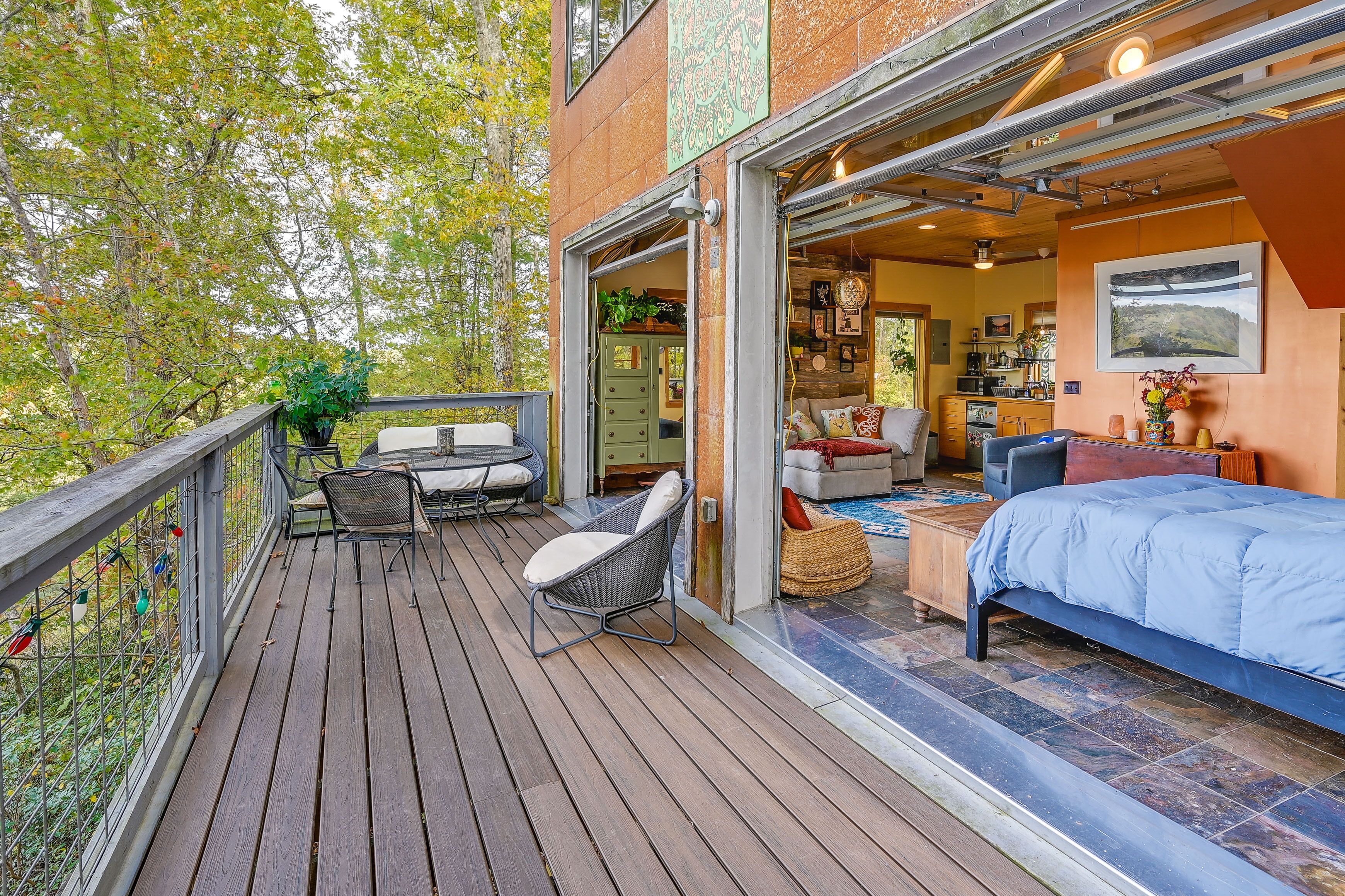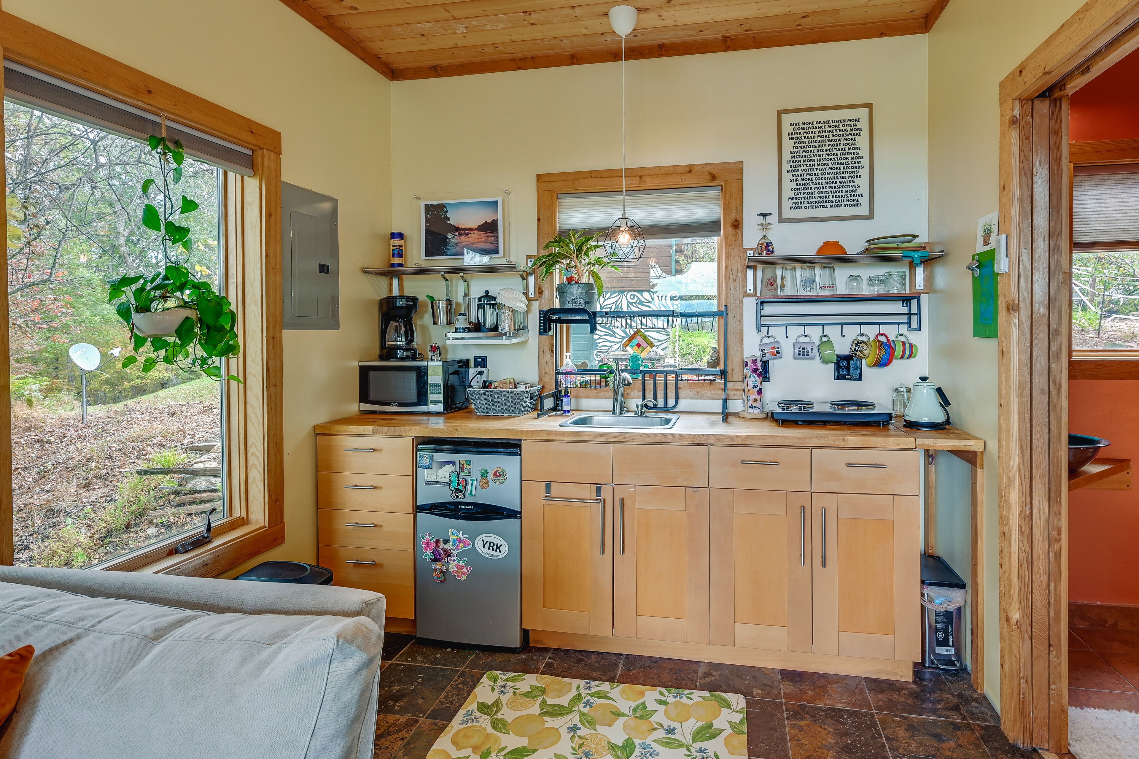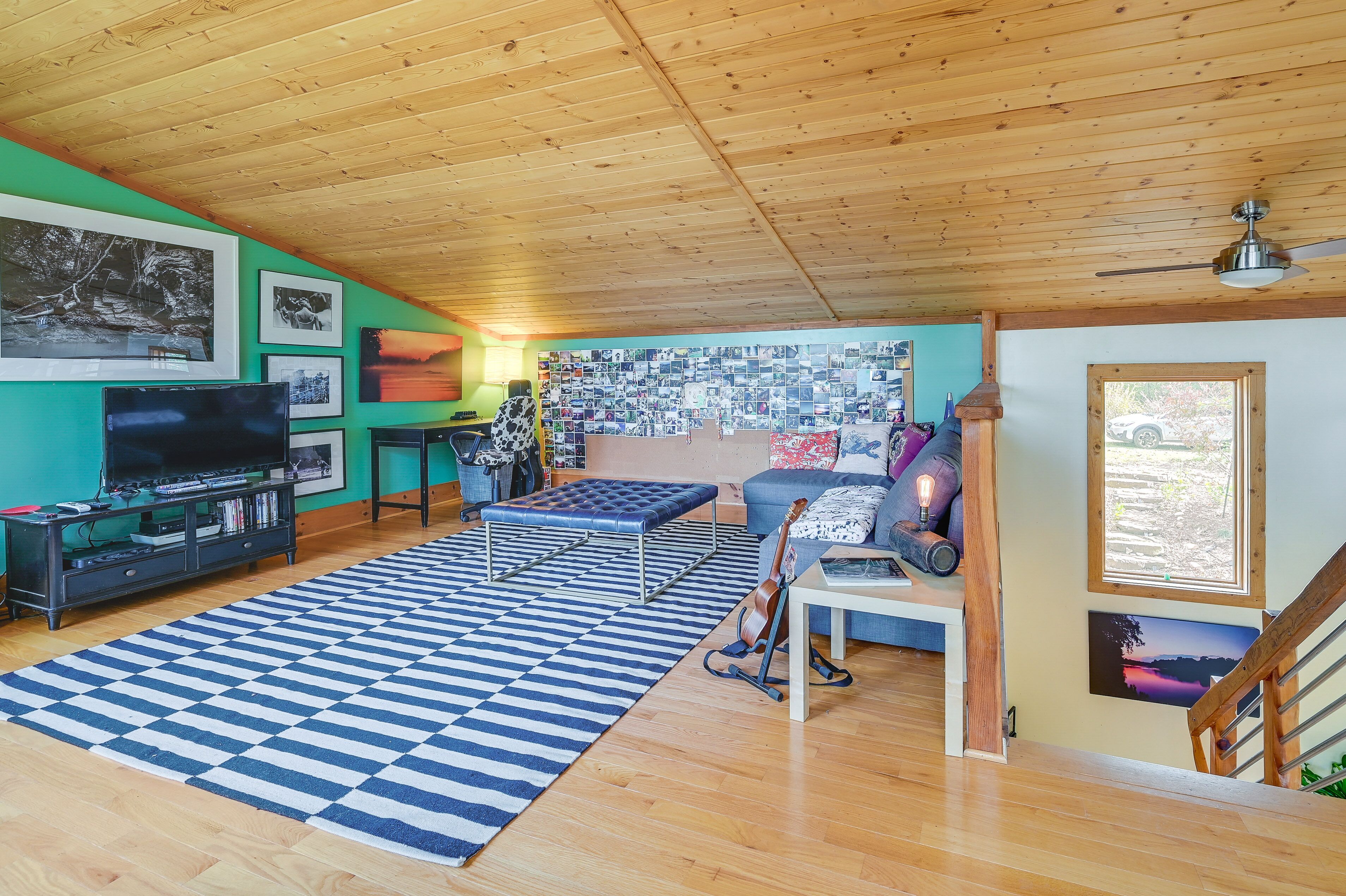 Charming East Bend Studio w/ Yadkin River Access Experience the tranquil beauty of Yadkin River from this 1-bath vacation rental studio in East Bend! ‘Rivernest’ is situated on Easy Bend Farms and will serve as the perfect spot for a solo traveler or a couple seeking a peaceful getaway. During your stay, enjoy your coffee out on the deck overlooking the Yadkin River, hike the trails on-site, or cozy up with a good book in the loft. If you feel like venturing out, consider visiting a nearby winery or taking a day trip to explore Winston-Salem!-- THE PROPERTY --Pet Friendly w/ Fee | Gas Grill (Propane Provided) | Free WiFiStudio: Full Bed, Queen Sleeper SofaSHARED AMENITIES: Hiking/walking trails on-site, river access, concrete boat rampINDOOR LIVING: Flat-screen TV, loft space, desk, glass garage doorsKITCHENETTE: Coffee maker, complimentary coffee & tea, cooking utensils, dishware & flatware, microwave, toaster, hot plateOUTDOOR LIVING: Deck, dining area, river viewsGENERAL: Central air conditioning & heating, complimentary toiletries, hangers, linens/towels, trash bags/paper towelsFAQ: 1 minor step to enter, 1 exterior security camera (facing out), homeowner on-site, pet fee (paid pre-trip)PARKING: Driveway (2 vehicles), trailer parking-- THE LOCATION --OPT OUTSIDE: Yadkin River (access on-site), Pilot Mountain State Park - Ivy Bluff Access (5 miles), Silo Run Golf Course (9 miles), Pilot Mountain State Park Scholas access (11 miles), Hanging Rock State Park (33 miles)VINEYARDS & WINERIES: Cellar 4201 (7 miles), Divine Llama Vineyards (8 miles), Pilot Mountain Vineyards & Weddings (14 miles), JOLO Winery and Vineyards with Restaurant (14 miles), Laurel Gray Vineyards (26 miles), RayLen Vineyards & Winery (28 miles), Round Peak Vineyards (28 miles)WINSTON-SALEM (~23 miles): Reynolds House Museum of American Art, Kaleideum Downtown, Adventure Landing Winston-Salem, Lawrence Joel Veterans Memorial Coliseum, Historic Town of Old Salem, Quarry Park, Tanglewood Park, Tanglewood Festival Of LightsAIRPORTS: Piedmont Triad International Airport (50 miles), Charlotte Douglas International Airport (93 miles)-- REST EASY WITH US --Evolve makes it easy to find and book properties you’ll never want to leave. You can relax knowing that our properties will always be ready for you and that we’ll answer the phone 24/7. Even better, if anything is off about your stay, we’ll make it right. You can count on our homes and our people to make you feel welcome--because we know what vacation means to you.-- POLICIES --- No smoking- Pet friendly w/ $50 fee (+ fees & taxes)- No events, parties, or large gatherings- Must be at least 25 years old to book- Additional fees and taxes may apply- Photo ID may be required upon check-in- NOTE: The property requires 1 minor step to enter- NOTE: The homeowner lives on-site, in a completely separate unit, and may be present during your stay- NOTE: Your safety matters. This property features 1 exterior security camera located on the railing of the main house facing the front entrance and driveway of the studio. The camera does not look into any interior spaces. The camera records video and sound when activated by motion