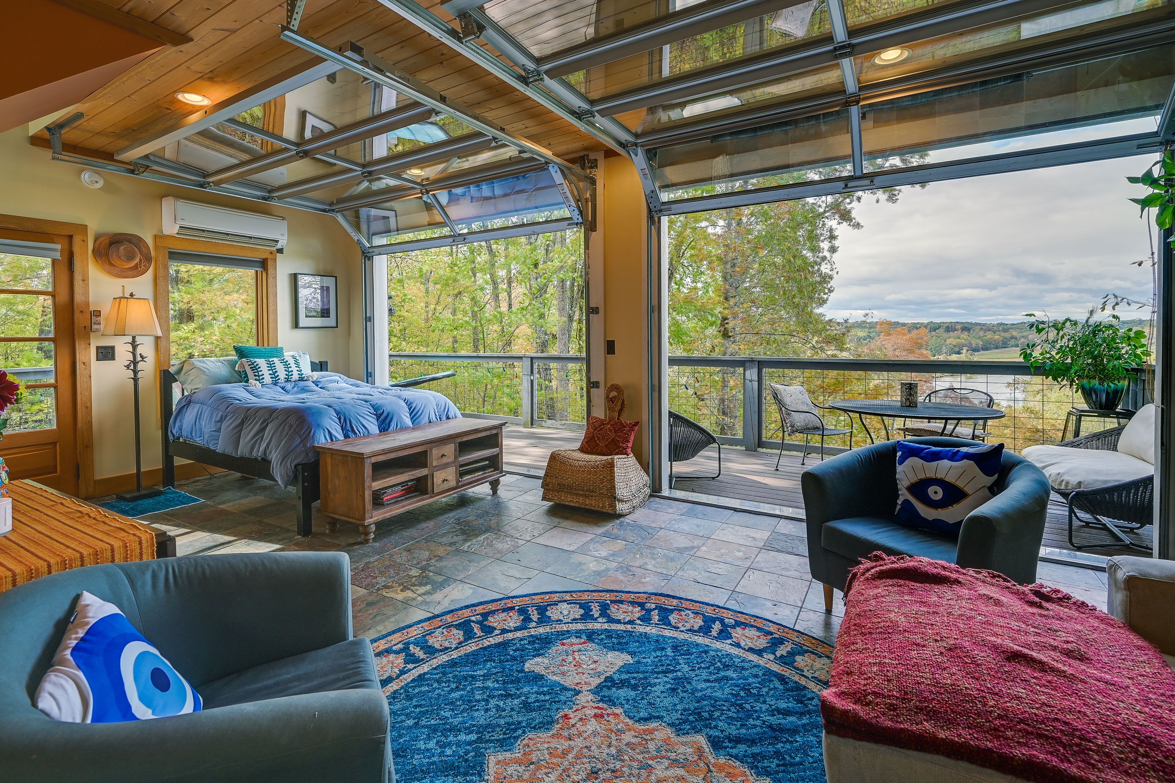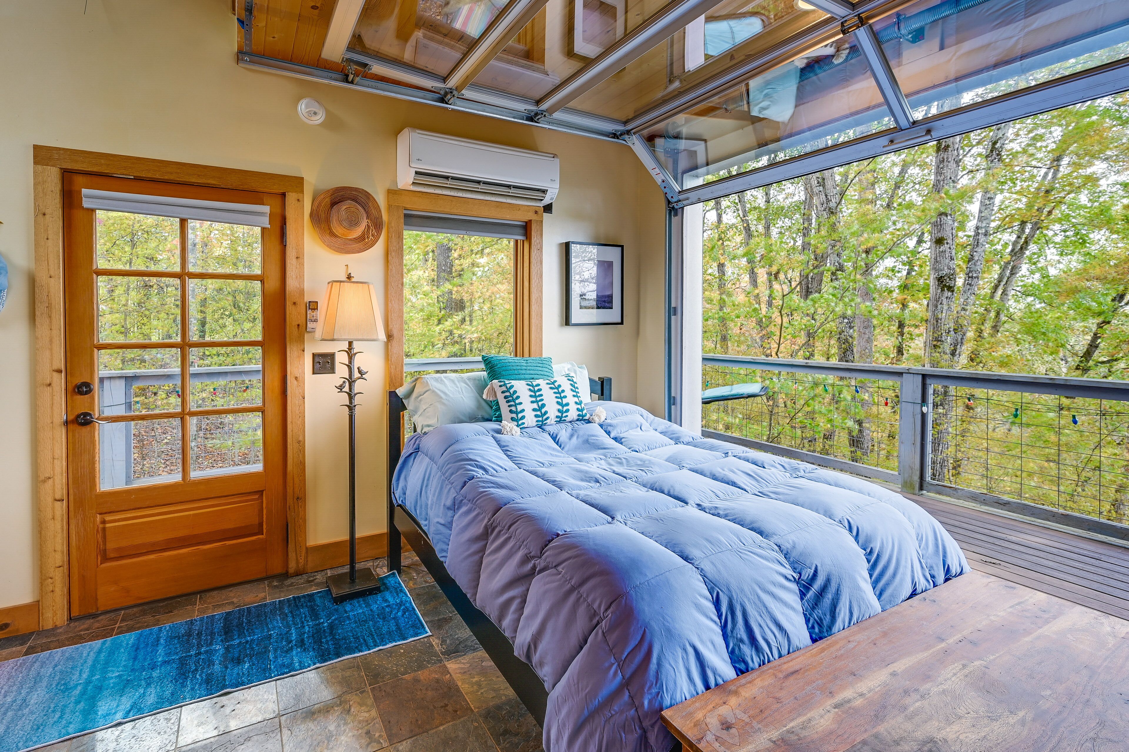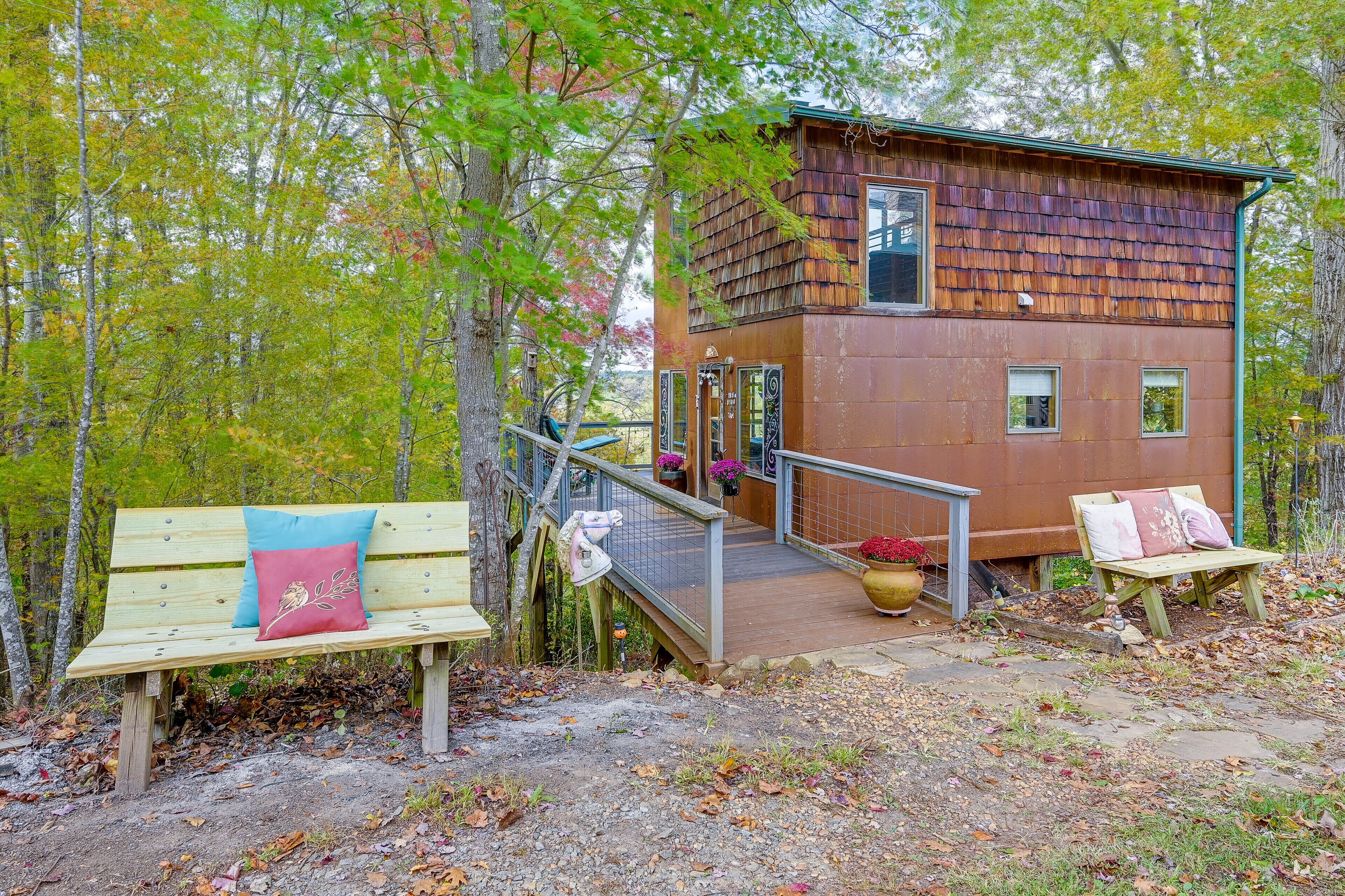 Charming East Bend Studio w/ Yadkin River Access Experience the tranquil beauty of Yadkin River from this 1-bath vacation rental studio in East Bend! ‘Rivernest’ is situated on Easy Bend Farms and will serve as the perfect spot for a solo traveler or a couple seeking a peaceful getaway. During your stay, enjoy your coffee out on the deck overlooking the Yadkin River, hike the trails on-site, or cozy up with a good book in the loft. If you feel like venturing out, consider visiting a nearby winery or taking a day trip to explore Winston-Salem!-- THE PROPERTY --Pet Friendly w/ Fee | Gas Grill (Propane Provided) | Free WiFiStudio: Full Bed, Queen Sleeper SofaSHARED AMENITIES: Hiking/walking trails on-site, river access, concrete boat rampINDOOR LIVING: Flat-screen TV, loft space, desk, glass garage doorsKITCHENETTE: Coffee maker, complimentary coffee & tea, cooking utensils, dishware & flatware, microwave, toaster, hot plateOUTDOOR LIVING: Deck, dining area, river viewsGENERAL: Central air conditioning & heating, complimentary toiletries, hangers, linens/towels, trash bags/paper towelsFAQ: 1 minor step to enter, 1 exterior security camera (facing out), homeowner on-site, pet fee (paid pre-trip)PARKING: Driveway (2 vehicles), trailer parking-- THE LOCATION --OPT OUTSIDE: Yadkin River (access on-site), Pilot Mountain State Park - Ivy Bluff Access (5 miles), Silo Run Golf Course (9 miles), Pilot Mountain State Park Scholas access (11 miles), Hanging Rock State Park (33 miles)VINEYARDS & WINERIES: Cellar 4201 (7 miles), Divine Llama Vineyards (8 miles), Pilot Mountain Vineyards & Weddings (14 miles), JOLO Winery and Vineyards with Restaurant (14 miles), Laurel Gray Vineyards (26 miles), RayLen Vineyards & Winery (28 miles), Round Peak Vineyards (28 miles)WINSTON-SALEM (~23 miles): Reynolds House Museum of American Art, Kaleideum Downtown, Adventure Landing Winston-Salem, Lawrence Joel Veterans Memorial Coliseum, Historic Town of Old Salem, Quarry Park, Tanglewood Park, Tanglewood Festival Of LightsAIRPORTS: Piedmont Triad International Airport (50 miles), Charlotte Douglas International Airport (93 miles)-- REST EASY WITH US --Evolve makes it easy to find and book properties you’ll never want to leave. You can relax knowing that our properties will always be ready for you and that we’ll answer the phone 24/7. Even better, if anything is off about your stay, we’ll make it right. You can count on our homes and our people to make you feel welcome--because we know what vacation means to you.-- POLICIES --- No smoking- Pet friendly w/ $50 fee (+ fees & taxes)- No events, parties, or large gatherings- Must be at least 25 years old to book- Additional fees and taxes may apply- Photo ID may be required upon check-in- NOTE: The property requires 1 minor step to enter- NOTE: The homeowner lives on-site, in a completely separate unit, and may be present during your stay- NOTE: Your safety matters. This property features 1 exterior security camera located on the railing of the main house facing the front entrance and driveway of the studio. The camera does not look into any interior spaces. The camera records video and sound when activated by motion