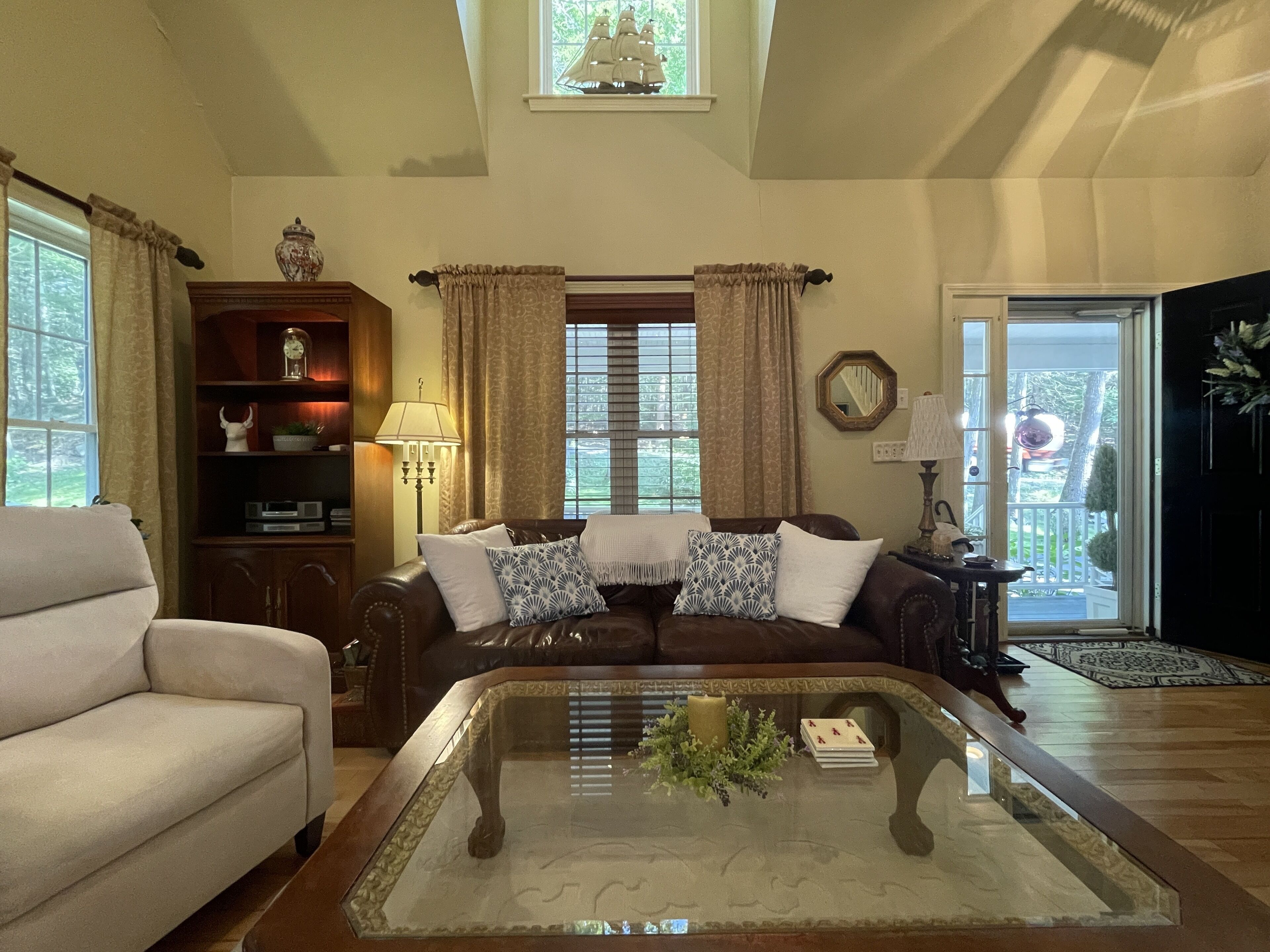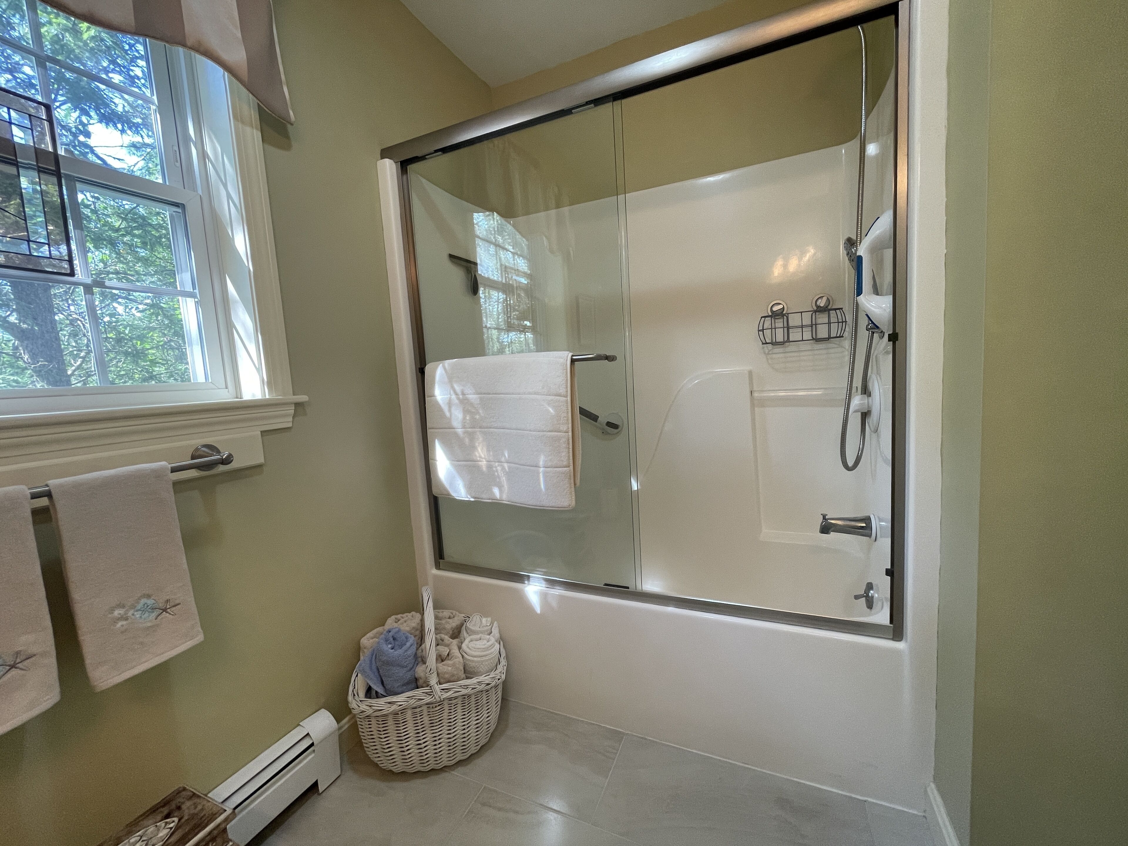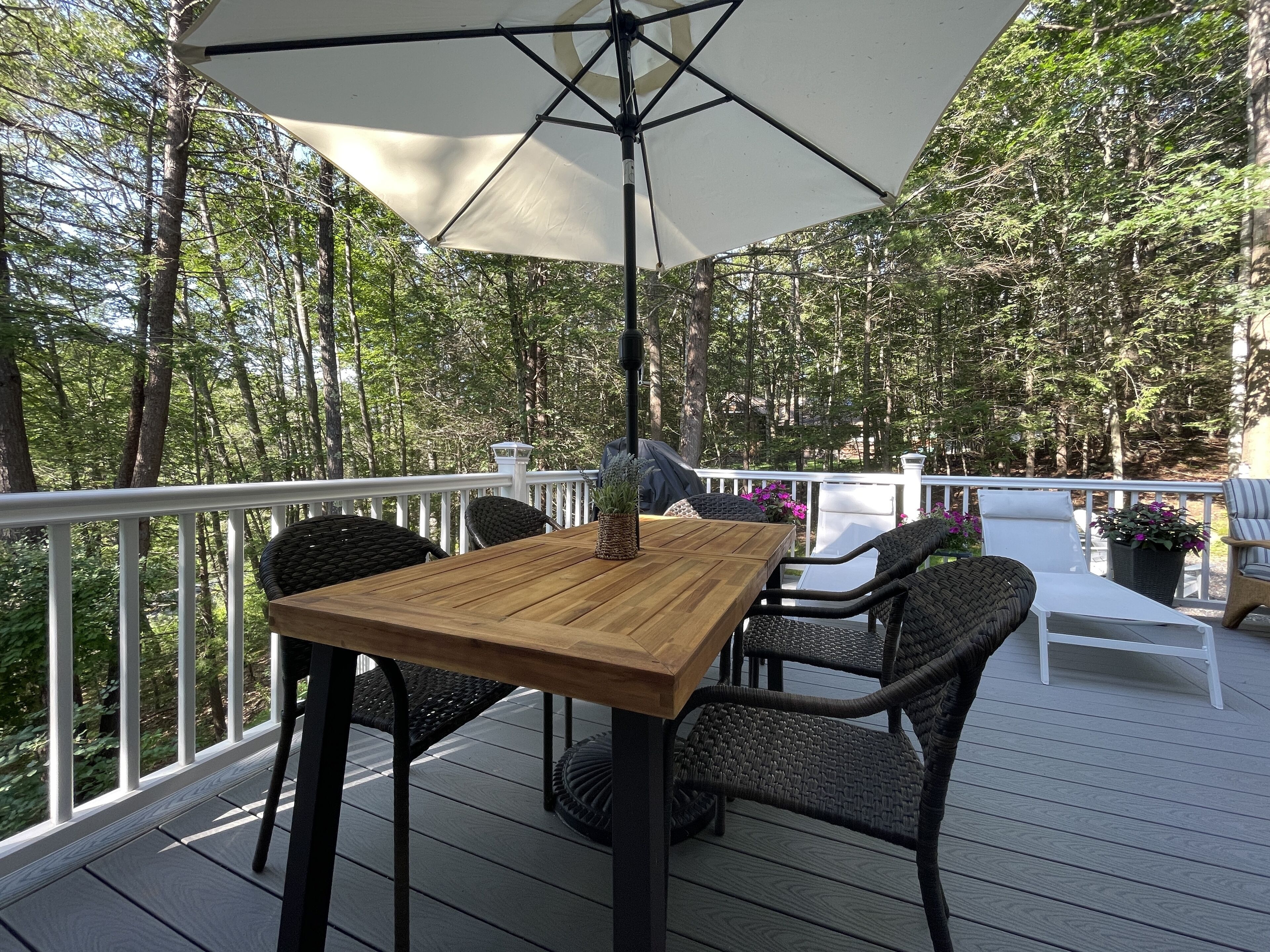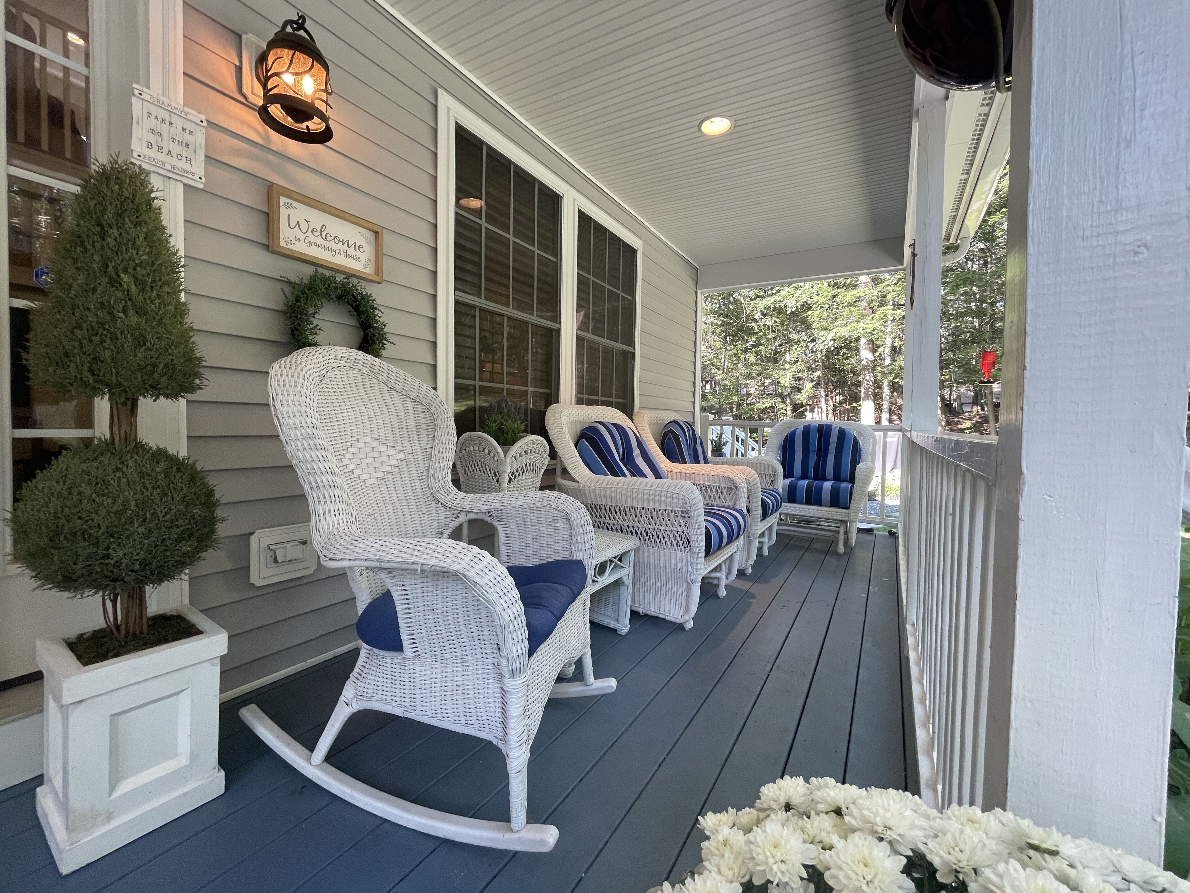 Harbor Hideaway - Beautiful 4 bedroom home near Harbor Beach Beautifully maintained & furnished 4 bedroom, 21/2 bath home on three levels just off Rt 103 in York, Maine, in walking distance to the York harbor, 2 mins to Harbor beach, 4 mins to Long Sands beach & 6 mins to Short Sands beach. Plenty of parking in circular driveway, front covered porch with wicker gliders & a large attached new deck with grill, deck furniture & deck fire pit. Inside you will be welcomed by a beautiful cathedral ceiling, open concept living rm, dining rm & kitchen with stainless steel appliances. In the living rm you will find a large flat screen TV with Dish cable & wifi with Netflix & UTube. The first floor has a master bedroom suit with a king size sleep number bed & bath has a large walk in shower. There is also a laundry rm & half bath on the first floor. Upstairs you will be greeted with a beautifully decorated sitting rm overlooking the living rm below. There are two bedrooms upstairs, one with a queen bed & the other with a full & twin bed. There is also a full bath upstairs with tub & shower. The lower level has a large bedroom with a queen bed & a large flat screened TV. The bedroom is connected to a 3 seasoned screened in private porch with wicker chairs & a treadmill. Outside the porch there is a walk way to the courtyard which is decorated with perennials. This home sleeps 8 to 9 people very comfortably. No pets & no smoking of any kind.Note:NO Smoking on property or premises.NO Pets.We do not provide propane refills for gas grills.Linens are included.