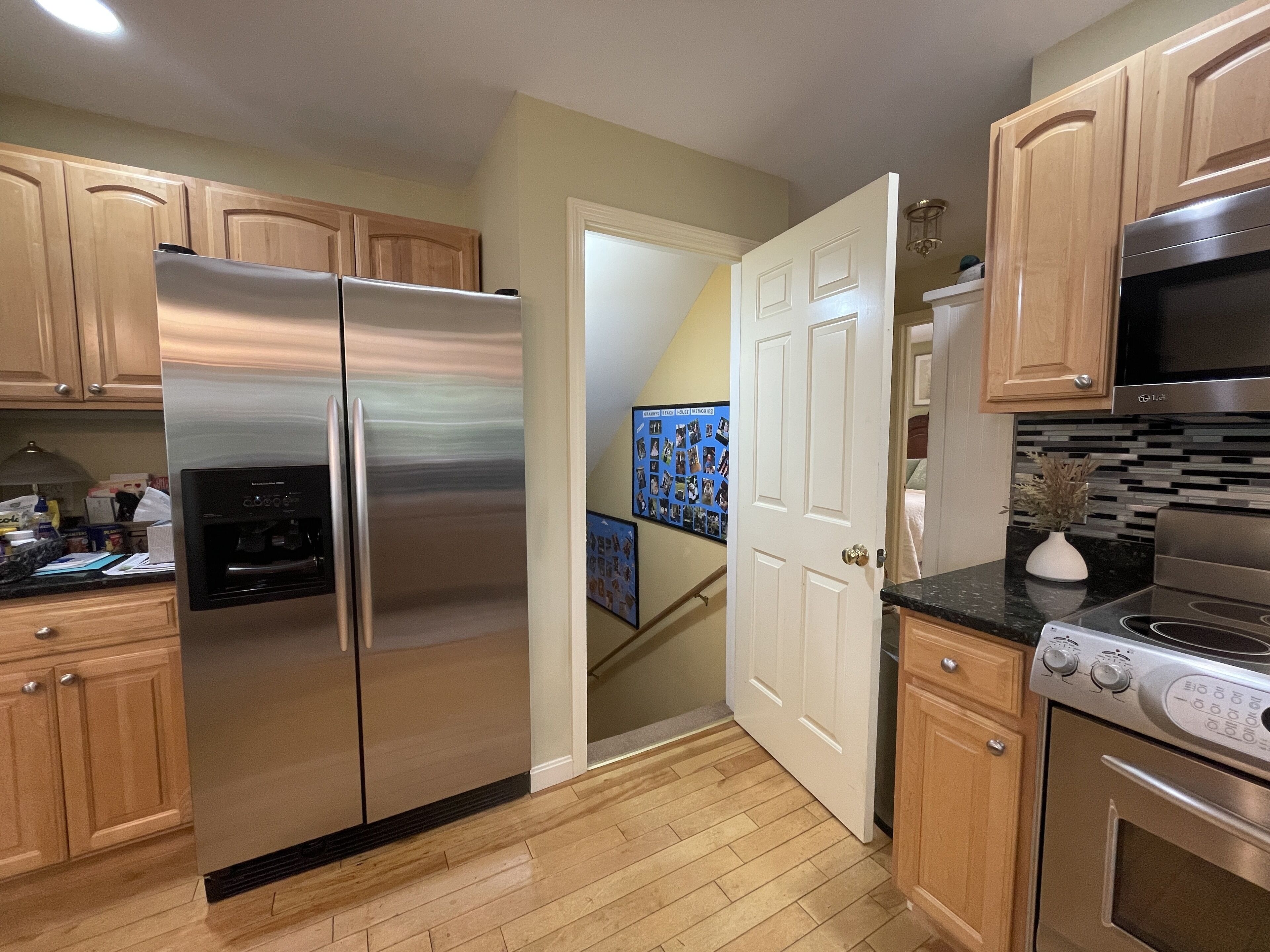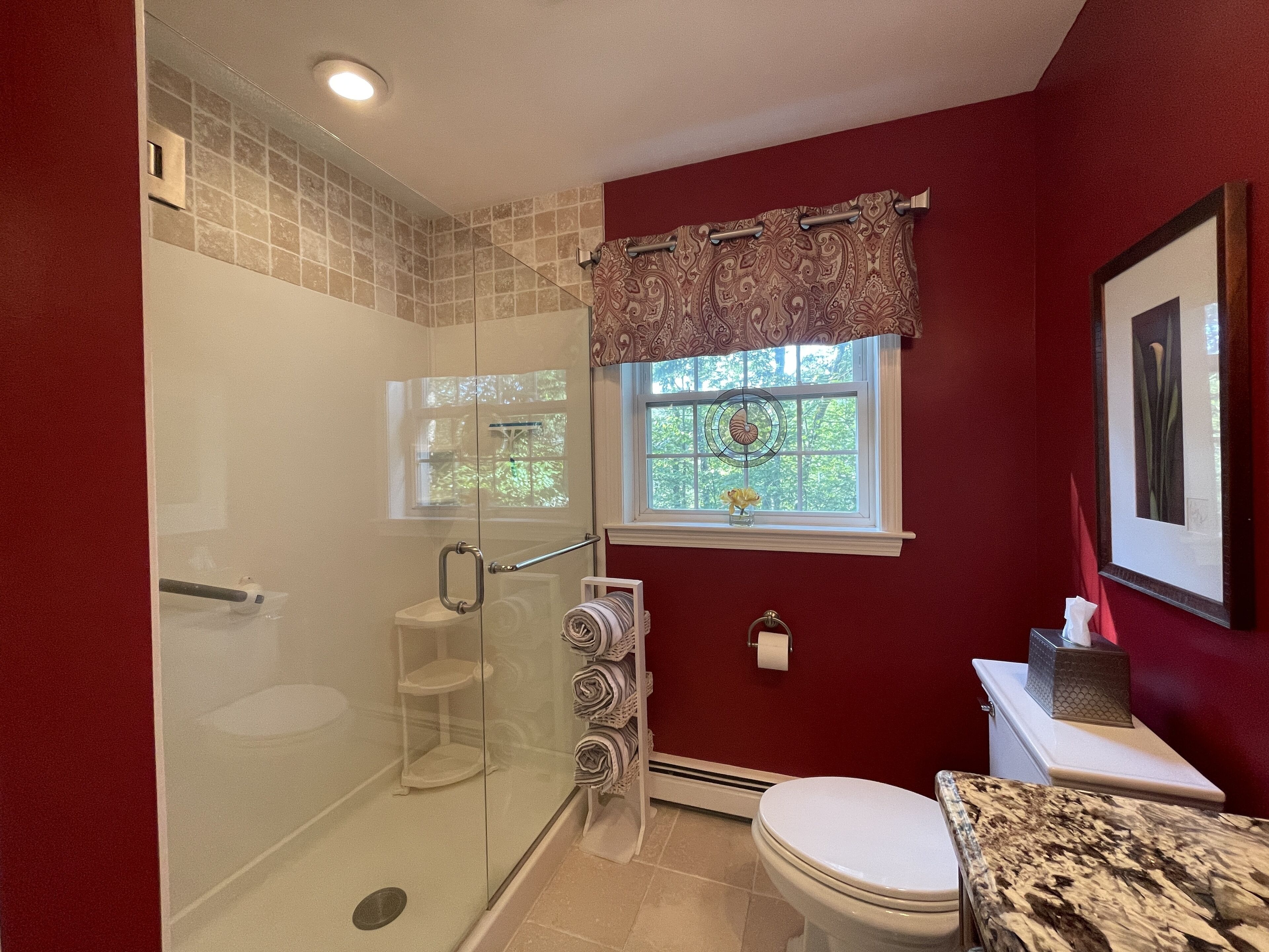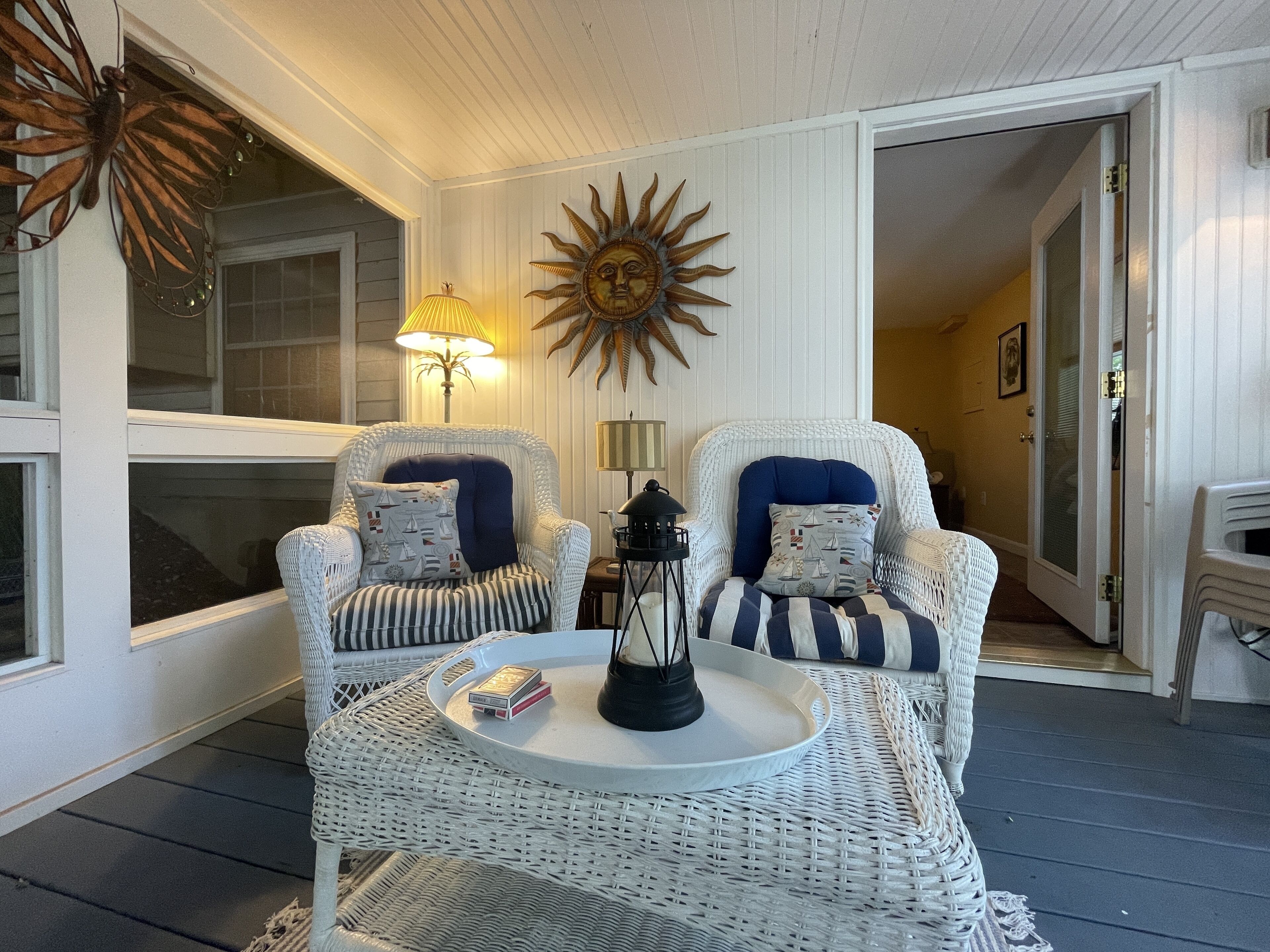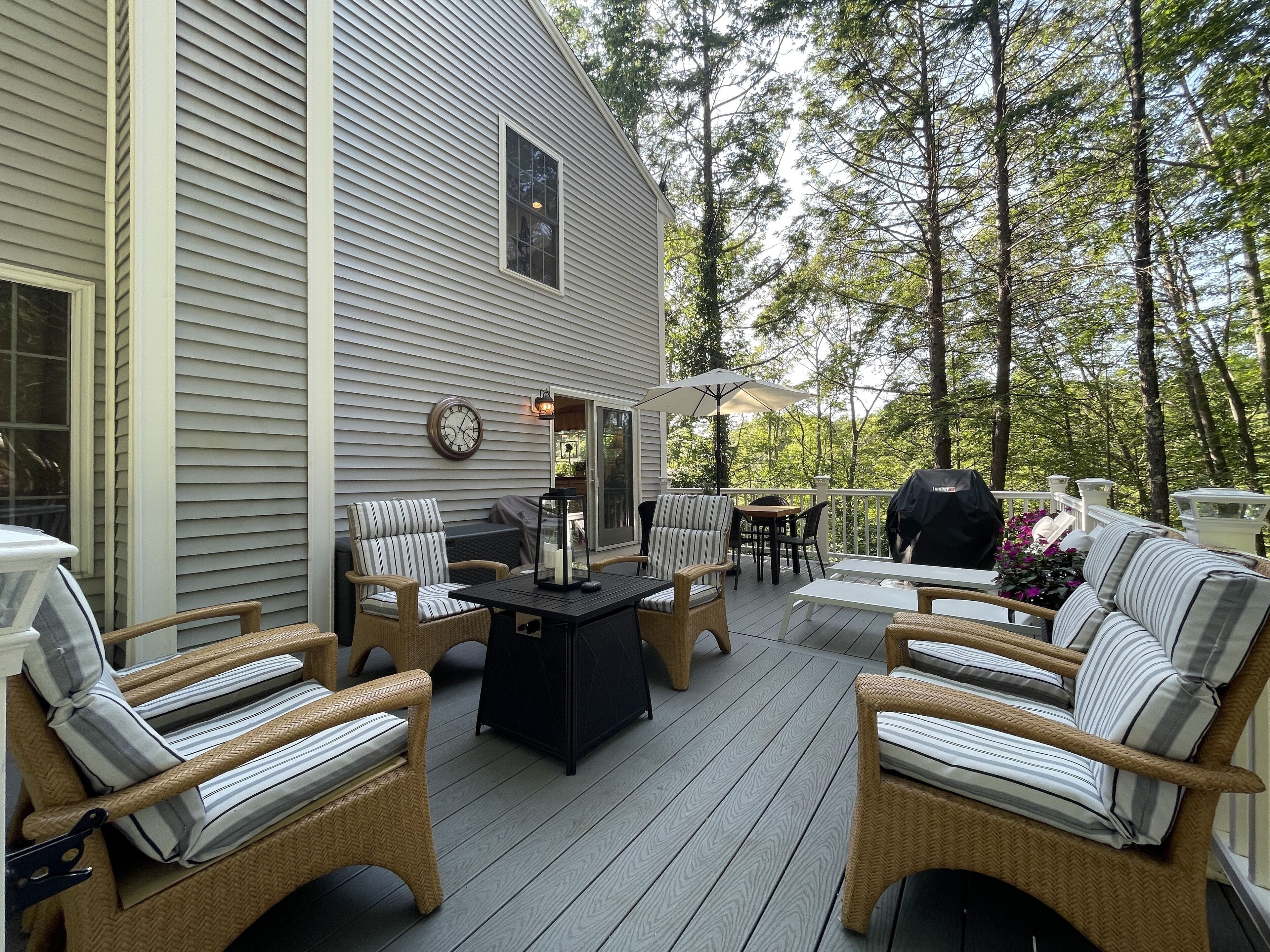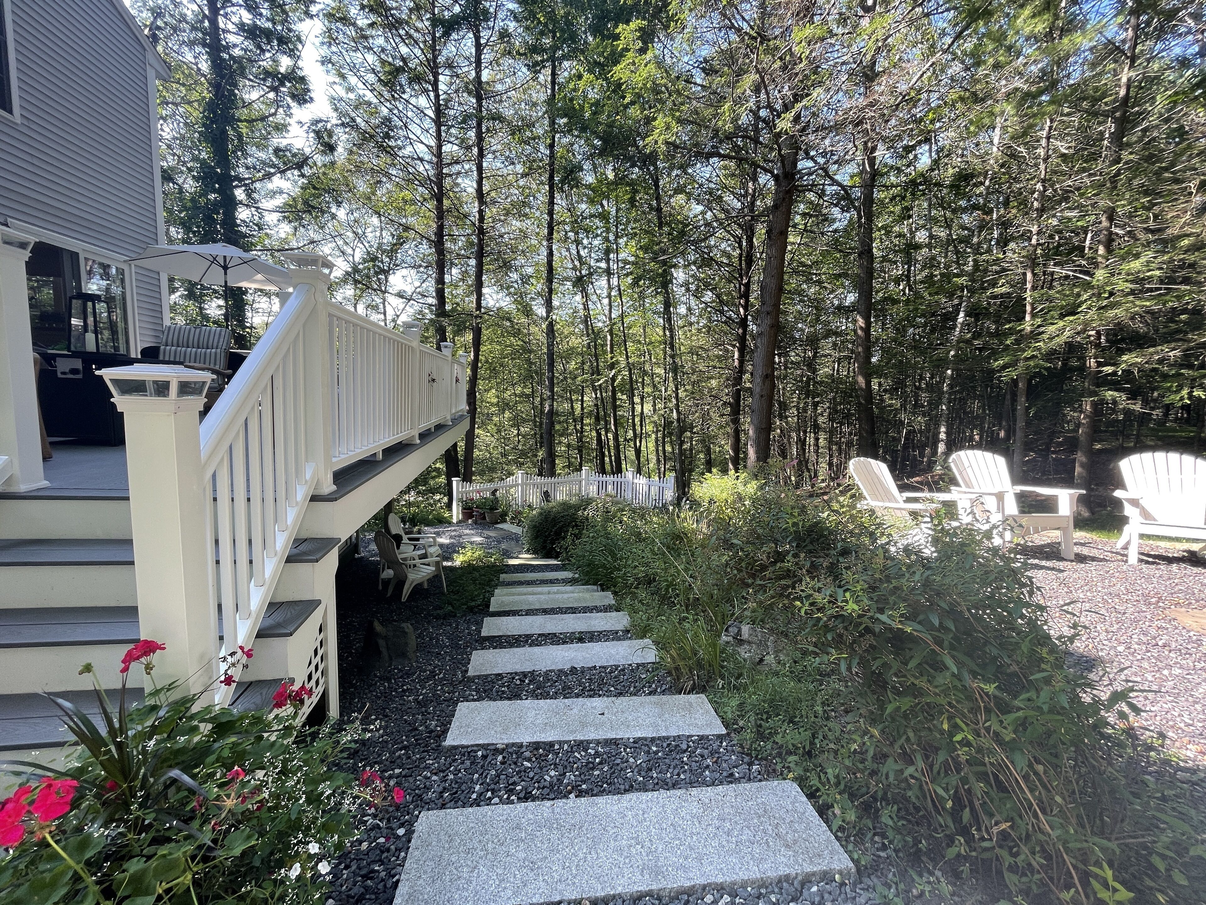 Harbor Hideaway - Beautiful 4 bedroom home near Harbor Beach Beautifully maintained & furnished 4 bedroom, 21/2 bath home on three levels just off Rt 103 in York, Maine, in walking distance to the York harbor, 2 mins to Harbor beach, 4 mins to Long Sands beach & 6 mins to Short Sands beach. Plenty of parking in circular driveway, front covered porch with wicker gliders & a large attached new deck with grill, deck furniture & deck fire pit. Inside you will be welcomed by a beautiful cathedral ceiling, open concept living rm, dining rm & kitchen with stainless steel appliances. In the living rm you will find a large flat screen TV with Dish cable & wifi with Netflix & UTube. The first floor has a master bedroom suit with a king size sleep number bed & bath has a large walk in shower. There is also a laundry rm & half bath on the first floor. Upstairs you will be greeted with a beautifully decorated sitting rm overlooking the living rm below. There are two bedrooms upstairs, one with a queen bed & the other with a full & twin bed. There is also a full bath upstairs with tub & shower. The lower level has a large bedroom with a queen bed & a large flat screened TV. The bedroom is connected to a 3 seasoned screened in private porch with wicker chairs & a treadmill. Outside the porch there is a walk way to the courtyard which is decorated with perennials. This home sleeps 8 to 9 people very comfortably. No pets & no smoking of any kind.Note:NO Smoking on property or premises.NO Pets.We do not provide propane refills for gas grills.Linens are included.