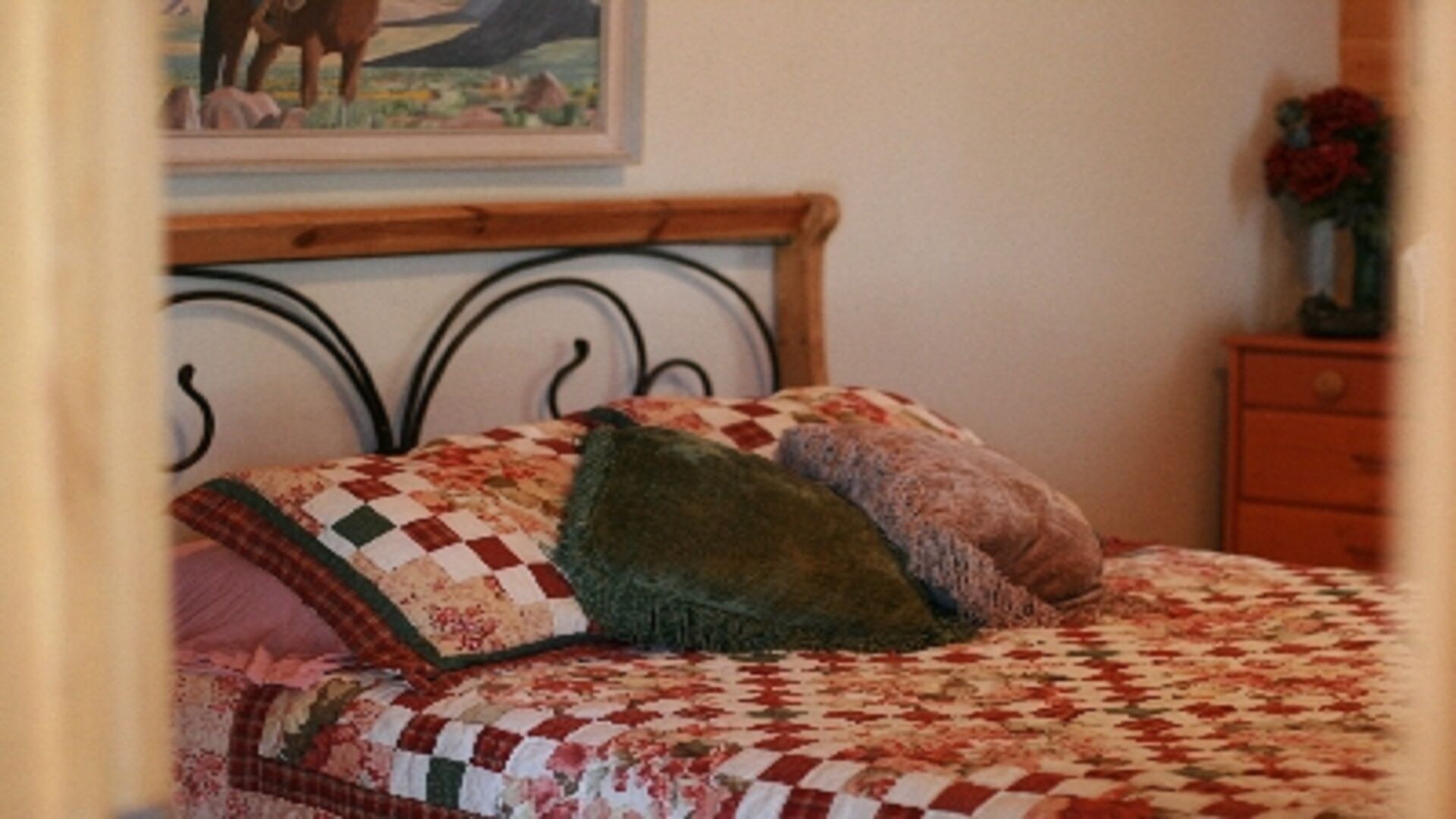 Beautiful log-sided cabin in scenic Chama, New Mexico PONDEROSA - This nearly-new 3 bedroom home is conveniently located in the Ponderosa area, just 7 minutes to Chama, 4 minutes to Tierra Amarilla and about 15 minutes to Heron Lake, famous for its fishing and water sports. Quality finishing and furnishing throughout. Marvel at the awesome views of the Brazos Cliffs and surrounding mountains from the spacious deck and living rooms. Nicely equipped kitchen. Jetted tub to soak away after an active day of exploring or mountain biking. The tranquil Ponderosa is made up of ranches and large tracts of land. Perfect roads for biking. Centrally located with good paved access, yet peacefully set back behind the hills away from the highway. King bed in the master suite with private bath and satellite TV. Good separation for families and groups with two more bedrooms in north wing of the house. One bedroom has a queen bed and TV for DVDs and tapes. The other has a queen with bunk above and a separate twin. A second bath serves these two guest rooms. All rooms are spacious with high ceilings. Living room has large screen TV with satellite and DVD/VCR combo. Covered parking for 3 cars. Sleeps up to 8 people in comfort and style for about $25 per person! Sorry there’s no WiFi available.*****Please note there are 6 steep steps to get to the front door. Handicap person will have difficulty getting in as a result Please be advised.*******