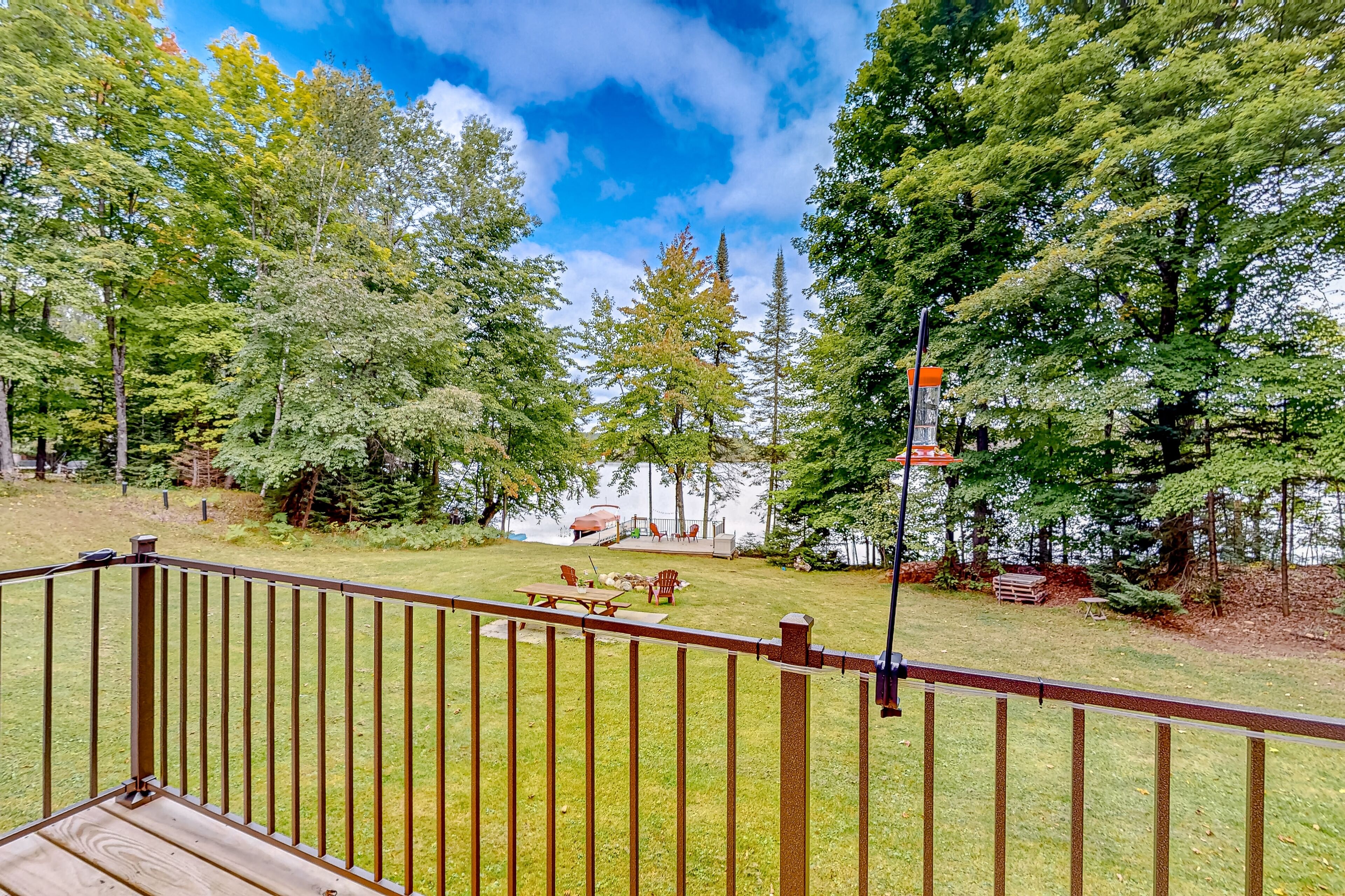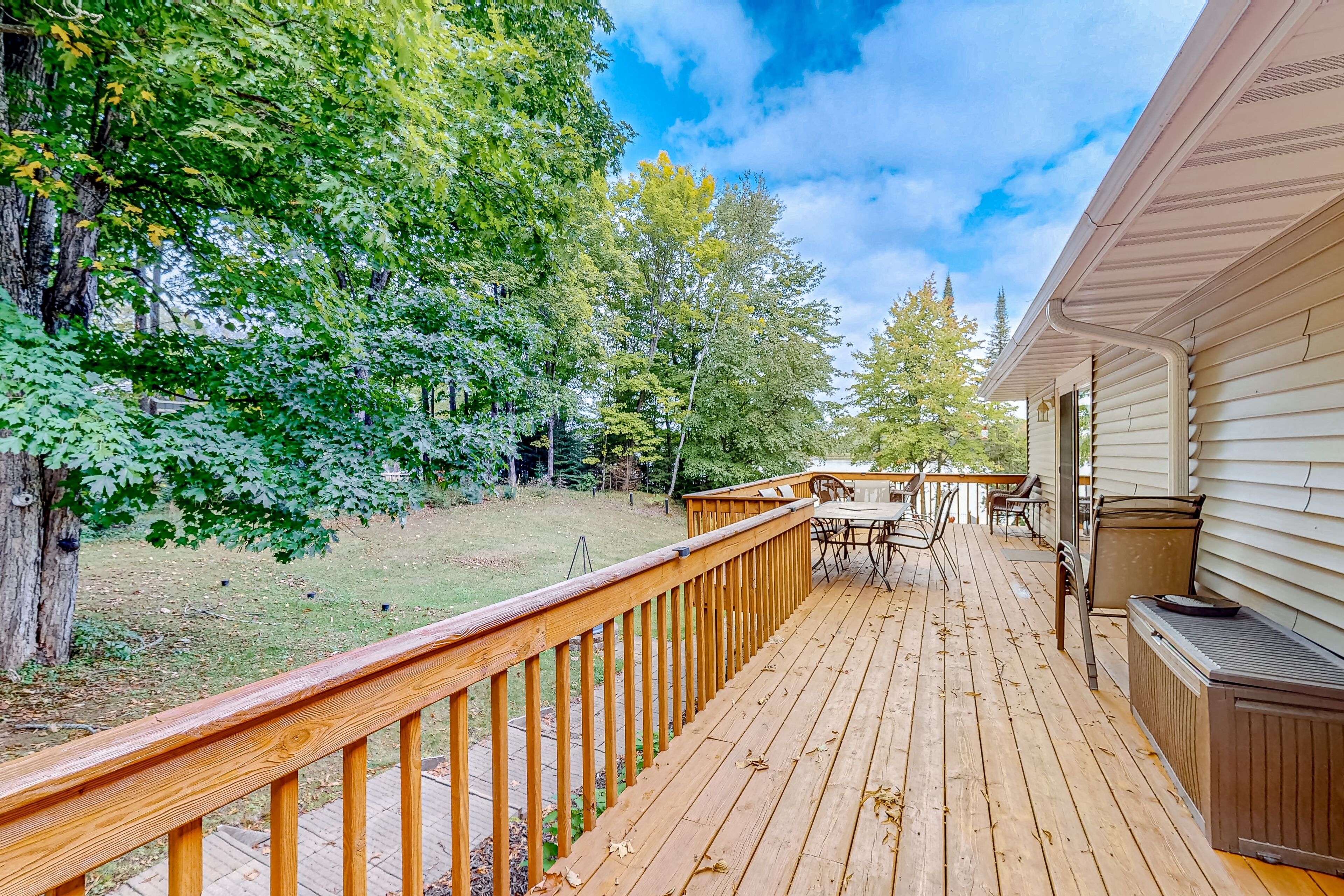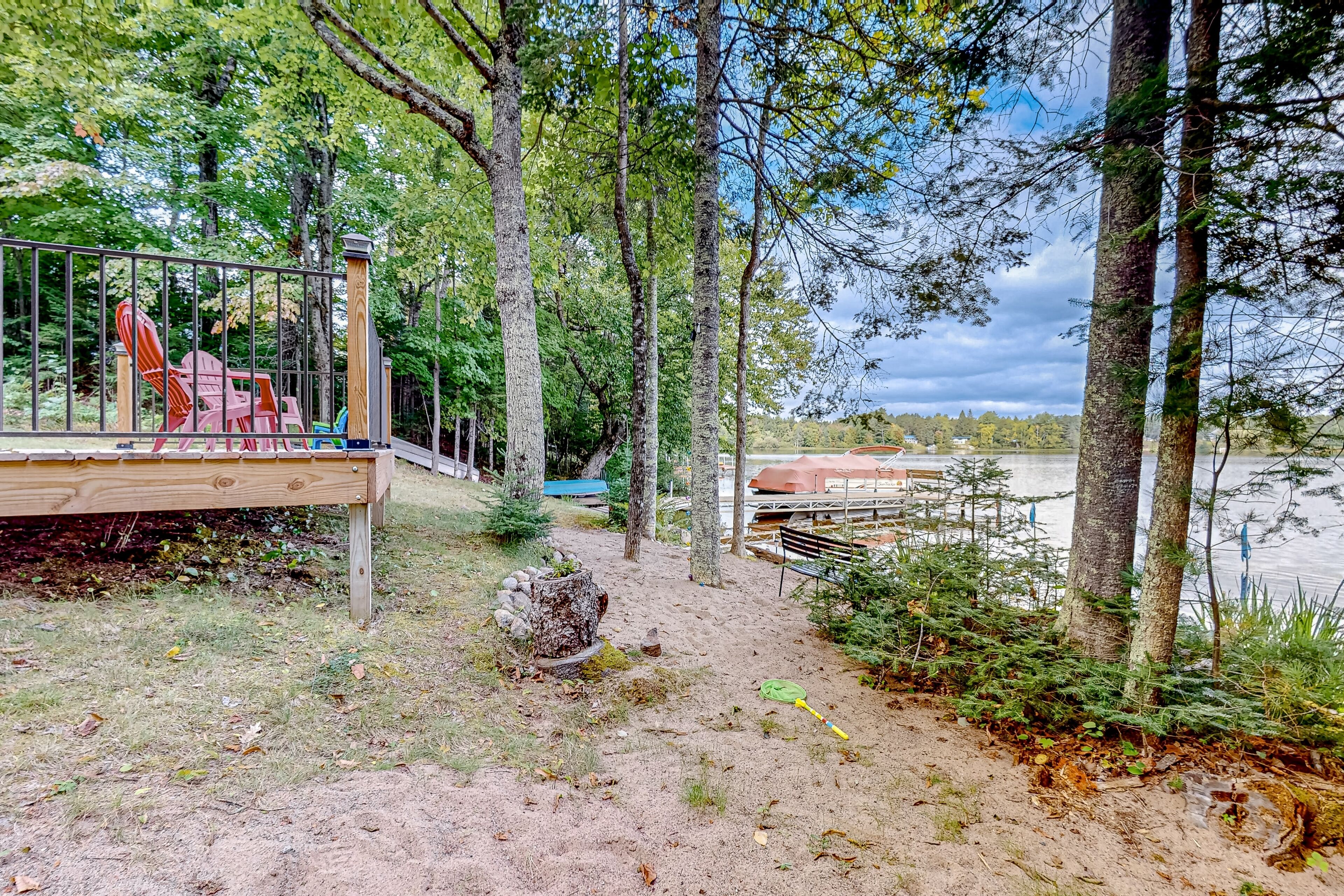 Dog-friendly lakefront home with a private beach, dock, firepit, & kayaks Little Pines CottageOur calendar is updated in real-time & our nightly rates are accurately displayed. Simply enter your desired dates and click 'Book Now!'Offering a private dock, swimmable beach area, and serene lake views, you're sure to have a perfectly peaceful vacation at this two-story home! When you're not fishing, swimming, or paddling around the lake on the provided paddleboard or in the kayaks, this property is also within a few miles of several must-see attractions including Claire' d Loon for the perfect selfie, WinMan Trails cycling park, Schomberg County Park, and even Big Powderhorn Mountain Resort with year-round activities for the whole family - just 33 miles from your door.Back at home, prepare anything from your morning coffee to elaborate dinners in the well-equipped, island kitchen, and then meet up for mealtimes in the dining area or head out to the furnished deck for the perfect alfresco experience. Two upper-floor living areas offer comfortable seating and TVs ready to stream all your favorite channels, while an additional living space awaits in the basement - the perfect room for younger guests craving their own space during your stay.Outside, discover additional decks (including a lakeside dock for relaxing afternoons), a dock, picnic table, and a firepit for nighttime fun.This home also includes a washer/dryer to let you pack light for your visit.Things to KnowCheck-in time: 4:00 PM.Check-out time: 10:00 AM.All guests shall abide by Vacasa's good neighbor policy and shall not engage in illegal activity. Quiet hours are from 10:00 PM to 8:00 AM.No smoking is permitted anywhere on the premises.This property is managed by Vacasa Wisconsin LLC.If you are bringing a dog on your trip, the pet fee is already included in your quote when selecting ‘Yes’ to pets. If you would like to add more dogs, please contact us. The pet fee is per stay and ranges between $150 and $200, depending on the bedroom count, and will apply for each additional dog.Parking notes: There is free parking available for 4 vehicles.Damage waiver: The total cost of your reservation for this Property includes a nightly damage waiver fee, plus tax if applicable (the “Damage Waiver”). (A discount may be applied for stays of 28 nights or longer, if permitted.) The Damage Waiver covers you for up to $3,000 of accidental damage to the Property or its contents (such as furniture, fixtures, and appliances) as long as you report the incident to the host prior to checking out. The Damage Waiver fee eliminates the need for a traditional security deposit.More information can be downloaded from the "Rental Agreement" on the checkout page.Due to local laws or HOA requirements, guests must be at least 21 years of age to book. Guests under 21 must be accompanied by a parent or legal guardian for the duration of the reservation.