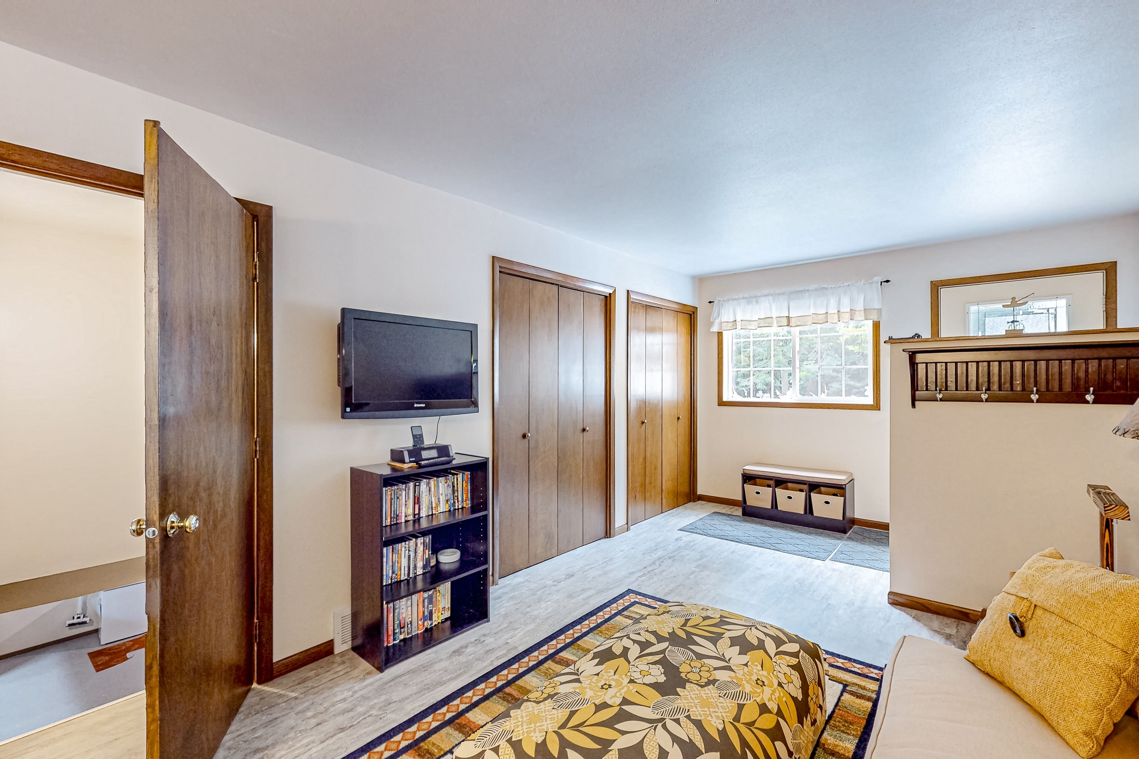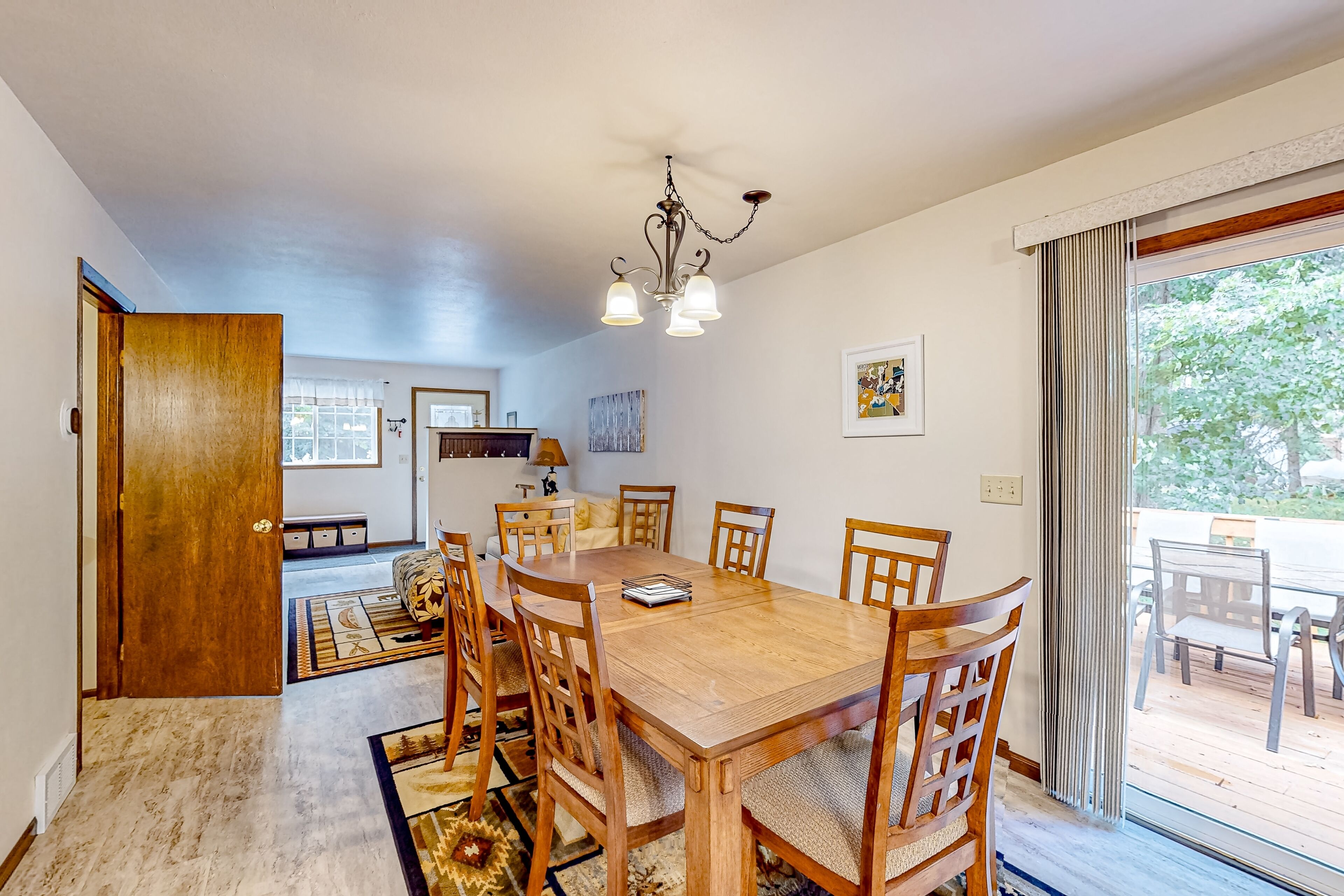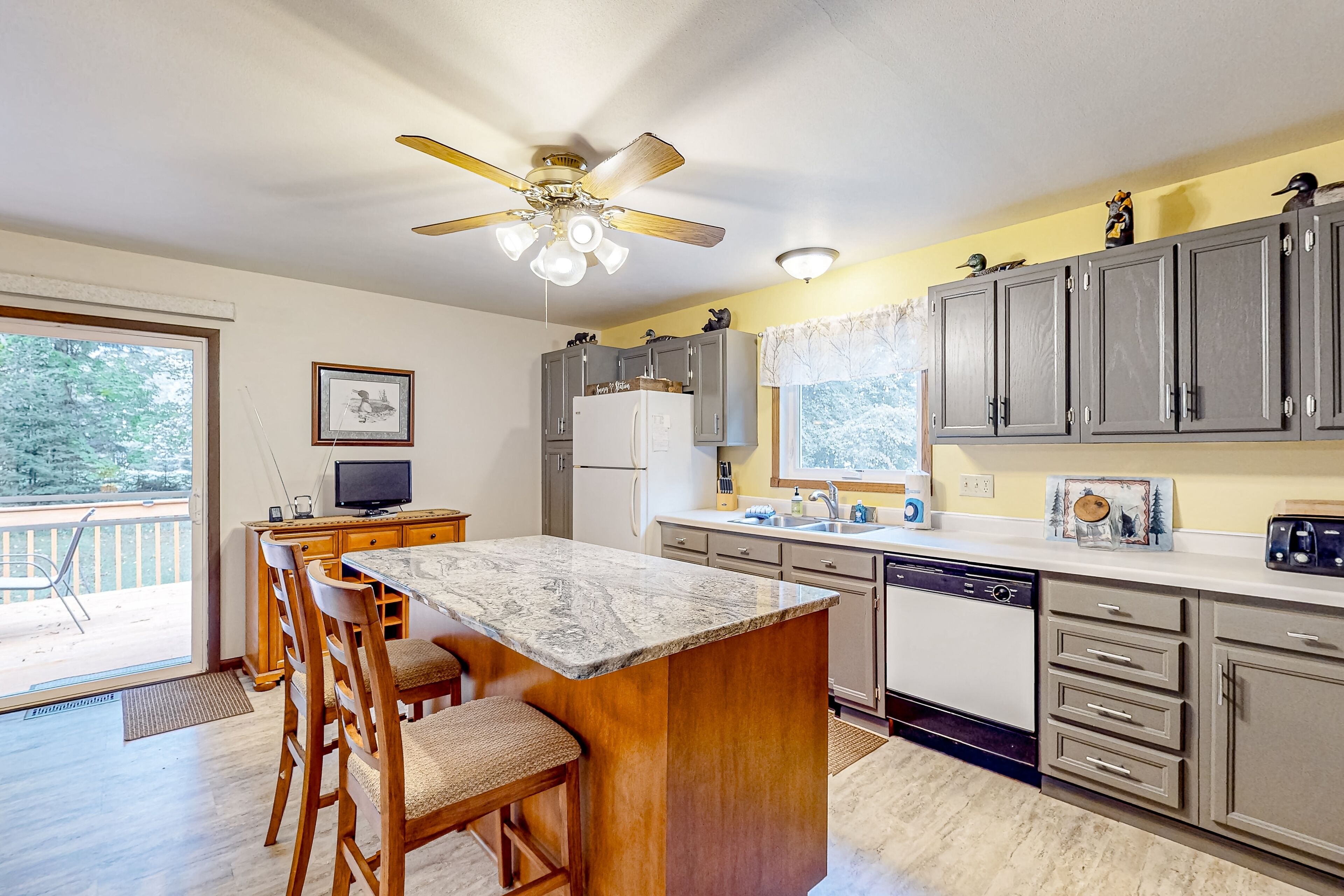 Dog-friendly lakefront home with a private beach, dock, firepit, & kayaks Little Pines CottageOur calendar is updated in real-time & our nightly rates are accurately displayed. Simply enter your desired dates and click 'Book Now!'Offering a private dock, swimmable beach area, and serene lake views, you're sure to have a perfectly peaceful vacation at this two-story home! When you're not fishing, swimming, or paddling around the lake on the provided paddleboard or in the kayaks, this property is also within a few miles of several must-see attractions including Claire' d Loon for the perfect selfie, WinMan Trails cycling park, Schomberg County Park, and even Big Powderhorn Mountain Resort with year-round activities for the whole family - just 33 miles from your door.Back at home, prepare anything from your morning coffee to elaborate dinners in the well-equipped, island kitchen, and then meet up for mealtimes in the dining area or head out to the furnished deck for the perfect alfresco experience. Two upper-floor living areas offer comfortable seating and TVs ready to stream all your favorite channels, while an additional living space awaits in the basement - the perfect room for younger guests craving their own space during your stay.Outside, discover additional decks (including a lakeside dock for relaxing afternoons), a dock, picnic table, and a firepit for nighttime fun.This home also includes a washer/dryer to let you pack light for your visit.Things to KnowCheck-in time: 4:00 PM.Check-out time: 10:00 AM.All guests shall abide by Vacasa's good neighbor policy and shall not engage in illegal activity. Quiet hours are from 10:00 PM to 8:00 AM.No smoking is permitted anywhere on the premises.This property is managed by Vacasa Wisconsin LLC.If you are bringing a dog on your trip, the pet fee is already included in your quote when selecting ‘Yes’ to pets. If you would like to add more dogs, please contact us. The pet fee is per stay and ranges between $150 and $200, depending on the bedroom count, and will apply for each additional dog.Parking notes: There is free parking available for 4 vehicles.Damage waiver: The total cost of your reservation for this Property includes a nightly damage waiver fee, plus tax if applicable (the “Damage Waiver”). (A discount may be applied for stays of 28 nights or longer, if permitted.) The Damage Waiver covers you for up to $3,000 of accidental damage to the Property or its contents (such as furniture, fixtures, and appliances) as long as you report the incident to the host prior to checking out. The Damage Waiver fee eliminates the need for a traditional security deposit.More information can be downloaded from the "Rental Agreement" on the checkout page.Due to local laws or HOA requirements, guests must be at least 21 years of age to book. Guests under 21 must be accompanied by a parent or legal guardian for the duration of the reservation.