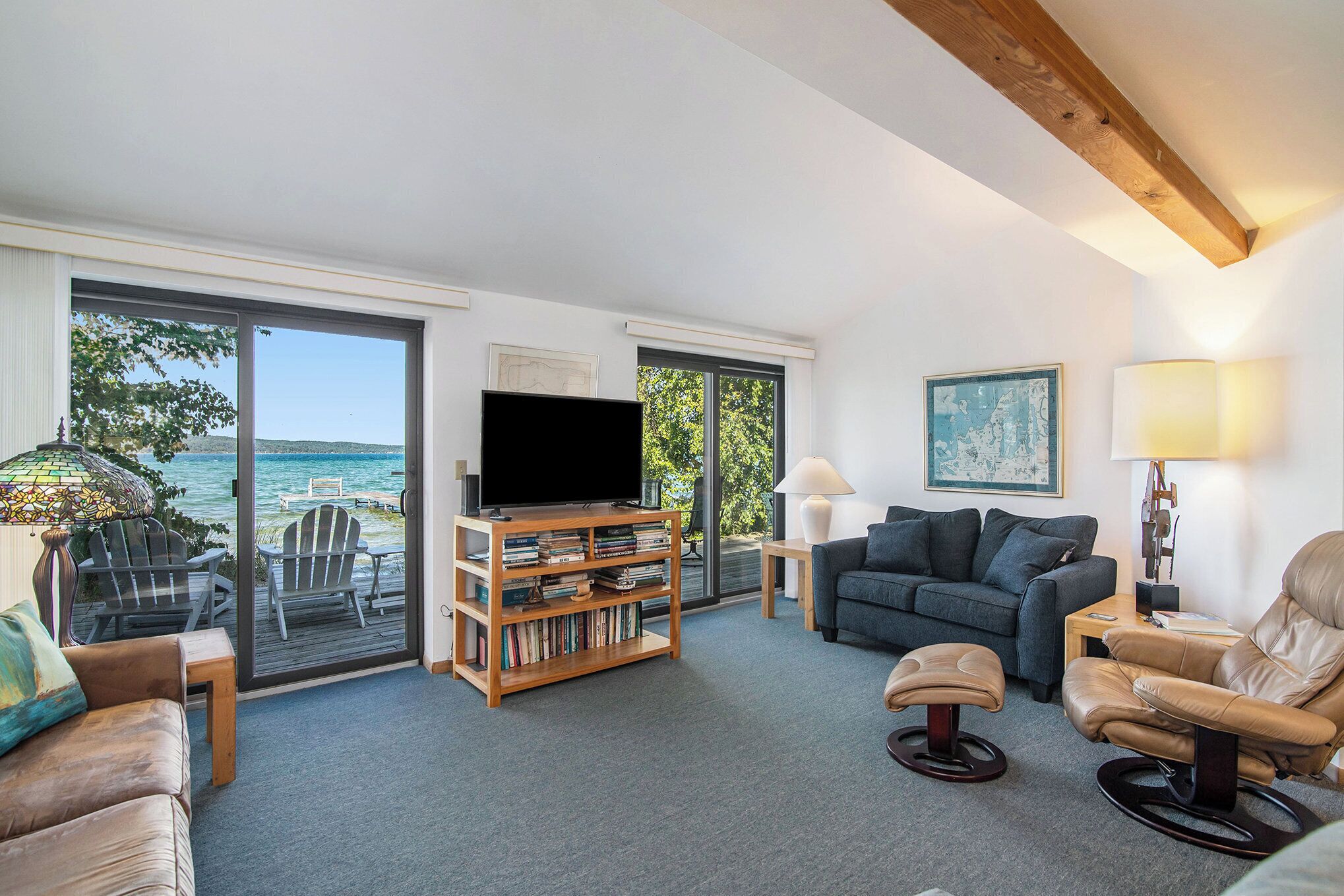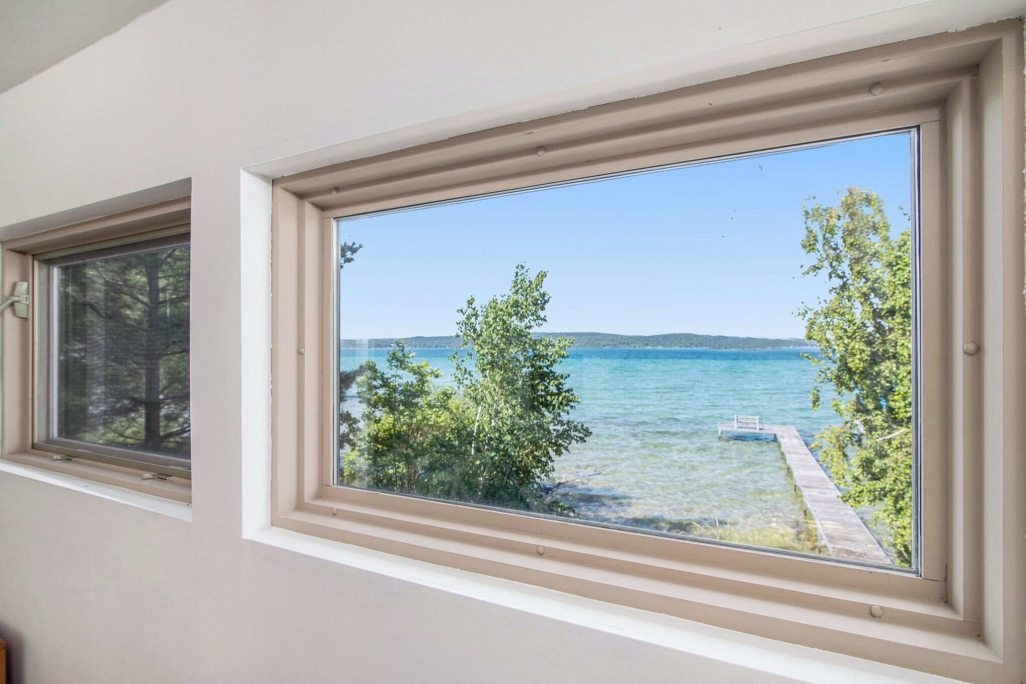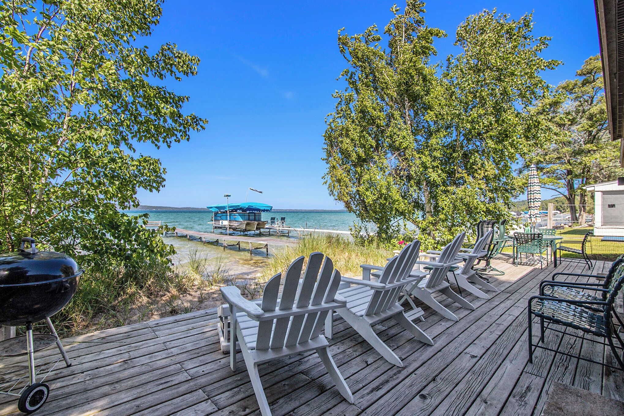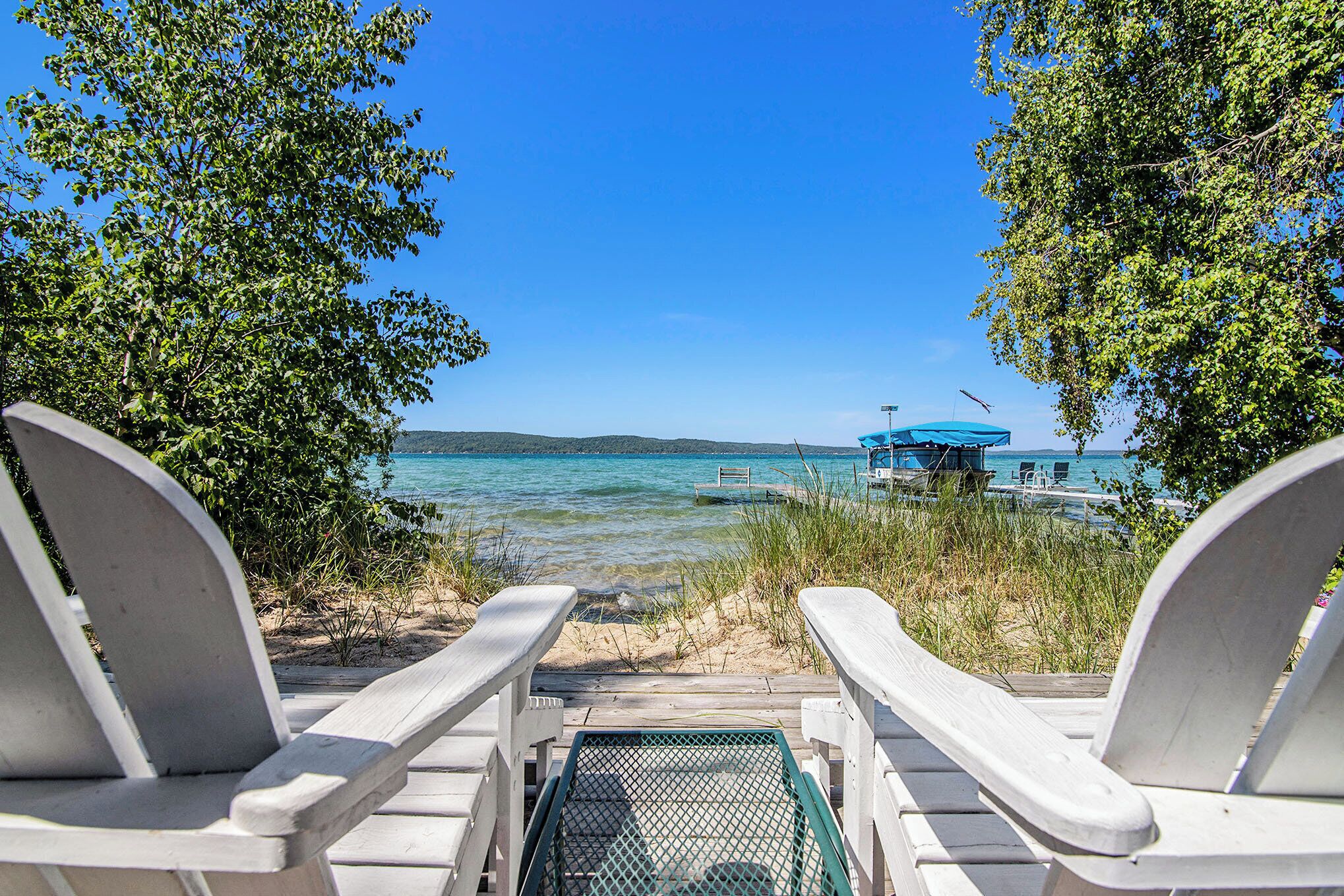 Your Extraordinary Crystal Lake Getaway Welcome to your unforgettable Crystal Lake getaway where you will be steps away from putting your toes in the warm sandy beach and sparkling blue waters. Get ready to create priceless memories with friends and family as you enjoy the cozy accommodations in our three bedroom and two bathroom lake house. The bottom floor features the primary bedroom with one king sized bed and a beautiful view of the stunning lake. An additional bedroom is also located on the main floor that includes two twin sized beds and a stacked washer and dryer. A full bathroom is located right outside both bedrooms and is easily accessible to all guests. For additional sleeping accommodations, there is a pullout sofa couch in the living area. Take pleasure in creating delicious meals within the full kitchen, which is complete with a refrigerator, oven and dishwasher. Follow the spiral staircase to find a spacious third bedroom complete with three twin beds; a full private bath; breathtaking views of the water, and a room that is set up for your guests to also enjoy those soothing sounds of the lake. Outside you will find a large detached garage with a tall door to accommodate larger trailers, campers, cars and any of your "seasonal toys". Enjoy your morning cup of coffee or mimosa on the newly finished deck overlooking the private sandy beach and personal dock. Be sure to grab your fishing poles and take a seat on the quiet bench located at the end of the dock as you soak in the beautiful sun rays. Need a break from the lake? Follow the scenic M-22 drive to Sleeping Bear National Park, multiple local area golf courses, St. Ambrose Cellars, or the beautiful Crystal Mountain Resort. Take a short drive into the charming Village of Beulah and the City of Frankfort, which provides quaint shops, restaurants and access to the stunning shoreline of Lake Michigan. Embrace lakeside living at its finest in this extraordinary beach front home.