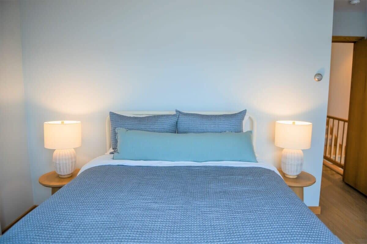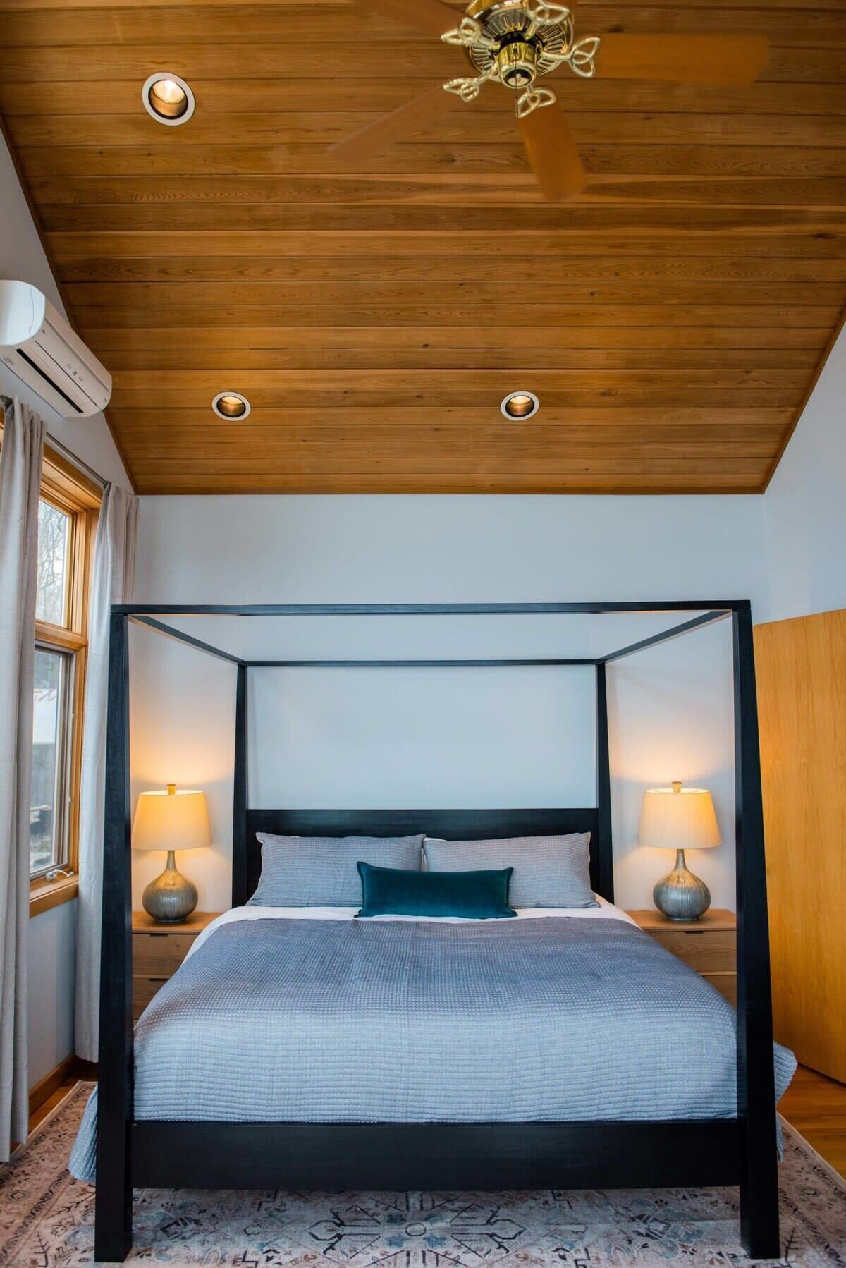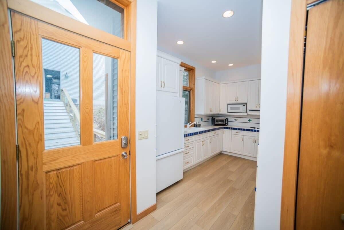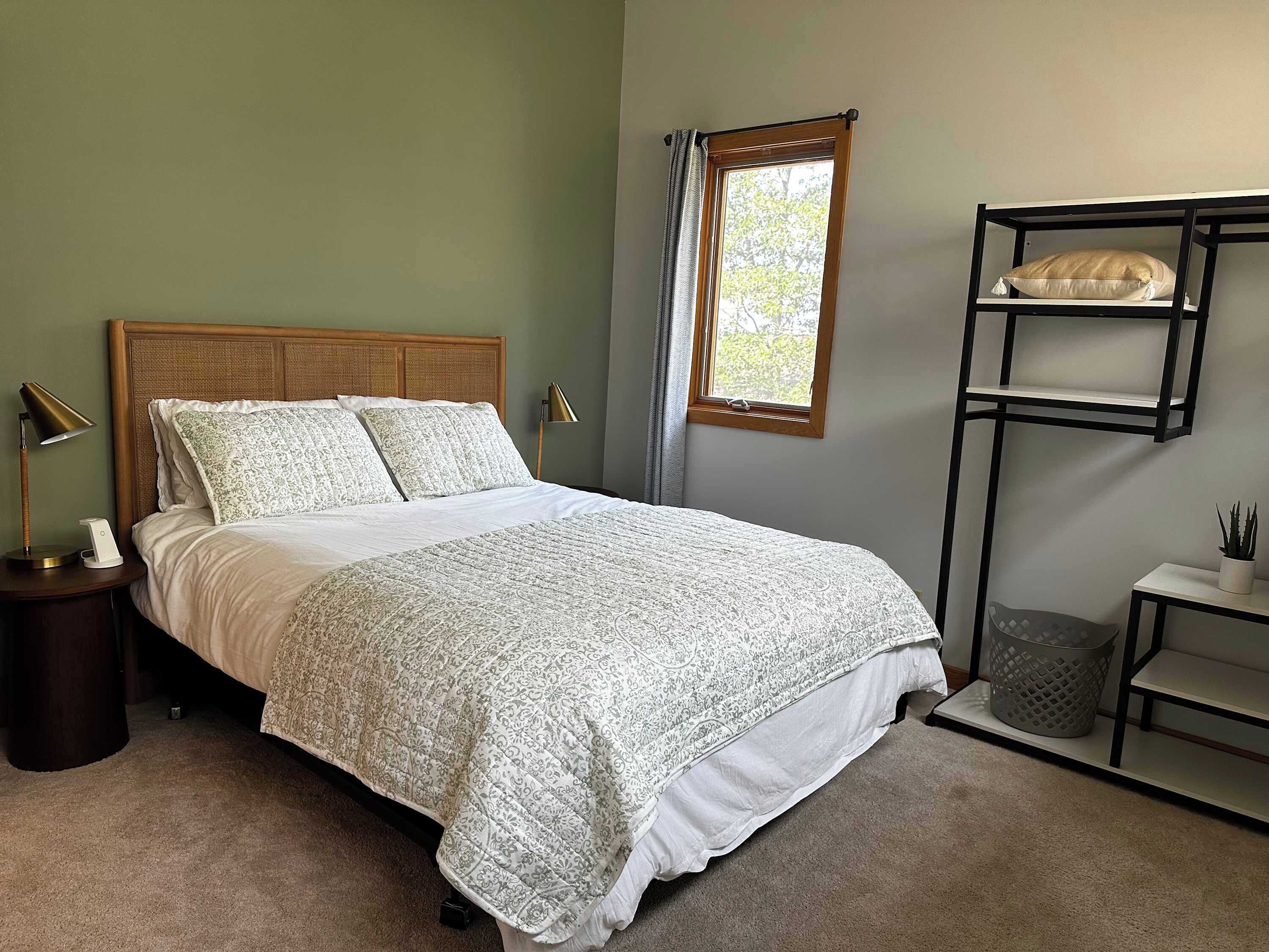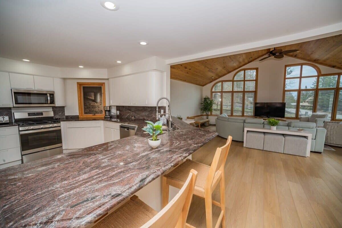 Crystal Lake Hillside with Private Sandy Beach Summary:This unique and spacious, renovated lakefront vacation home is the kind of place that Up North dreams are made of! Plenty of room for everyone -including the pups! Large deck in front with hot tub, and a spectacular view of sparkling Crystal Lake. **The house is separated from the beach by the road that circles Crystal Lake. It is not a busy road. ALL guests must be 25+ unless accompanied by a parent or guardian. See pet fee info below.The Space:Once inside this uniquely situated hillside home, you are treated to lake views from the main floor's array of large windows. The open floorplan on the main floor includes living room, dining and kitchen. Making your way up the extended grand staircase you'll find private bedrooms at each landing. In the main home there are: 5 bedrooms total, 3 full bathrooms, two kitchens, and a laundry room. Main House includes:1st Level - Living Room, Dining Area, Main Kitchen 2nd Level- Bedroom 1: Queen- Bedroom 2: Queen- Laundry room- Full bathroom with tub3rd level - Bedroom 3: Master King - Full bathroom4th level - Bedroom 4: Balcony room: King + Twin trundle daybed- Bedroom 5: 3 Bunk beds (6 twin mattresses)- Full bathroom- Kitchenette Outside:You will have access to a firepit and a private, sandy beachfront just across the street. There is a hot tub on the front deck overlooking the water, open year-round!In the summer months a dock and mooring ball will be available as well. This spacious lakefront home is 4,298 square feet in total.Guest Access:Parking: There is space for 4 standard sized vehicles in the front driveway. No garage parking at this time. Welcome to northern Michigan, where our wintertime weather can swing from glorious to ferocious in a flash. Each of our properties has snow removal service scheduled to plow with each snowfall amounting to at least 3 inches of snow. If the vehicle you bring is not 4-Wheel or All-Wheel Drive, please be aware of the potential risks accessing the property when snow is present.The Neighborhood:Crystal Lake is considered to be one of the most beautiful lakes in northern Michigan.Other Things to Note:*Please Note: All guests staying at this property must be 25 or older unless accompanied by a parent or guardian. This will be verified after booking confirmation.*A damage waiver fee is required by Golden Swan for each stay. For this property, the fee is $149 and provides our guests with accidental damage coverage up to $2500. If the amount of damage exceeds this, or if the damage is found to have occurred with malicious intent, Golden Swan retains the right to seek damages beyond that amount.High chair and pack n play available upon request for an additional fee.There is a non-refundable credit card processing fee applied to all reservations.If the reservation is 14 days or longer there will be a required mid-stay clean. This is also available upon request for a shorter length of stay.Dogs are allowed with an additional fee, with a maximum of 2 dogs. Please be advised that it is absolutely imperative for all renters to keep their dogs on a leash at all times. While we truly appreciate and value pets, ensuring that our furry friends are leashed or properly secured is of utmost importance to us. Please take your pup with you or kennel them when you leave the home. We cannot have lonely barking dogs left at our property. Please be considerate and clean up after your pet.DOCK: You can expect the dock to be available for use Memorial Weekend through Labor Day Weekend. Please only use the dock for 15-minute loading and unloading of passengers. A mooring ball just beyond it is available for mooring between boat rides. Winds and waves pick up super-quick and can cause damage to boats and docks. There are no protective dock bumpers to prevent potential boat-docking issues.