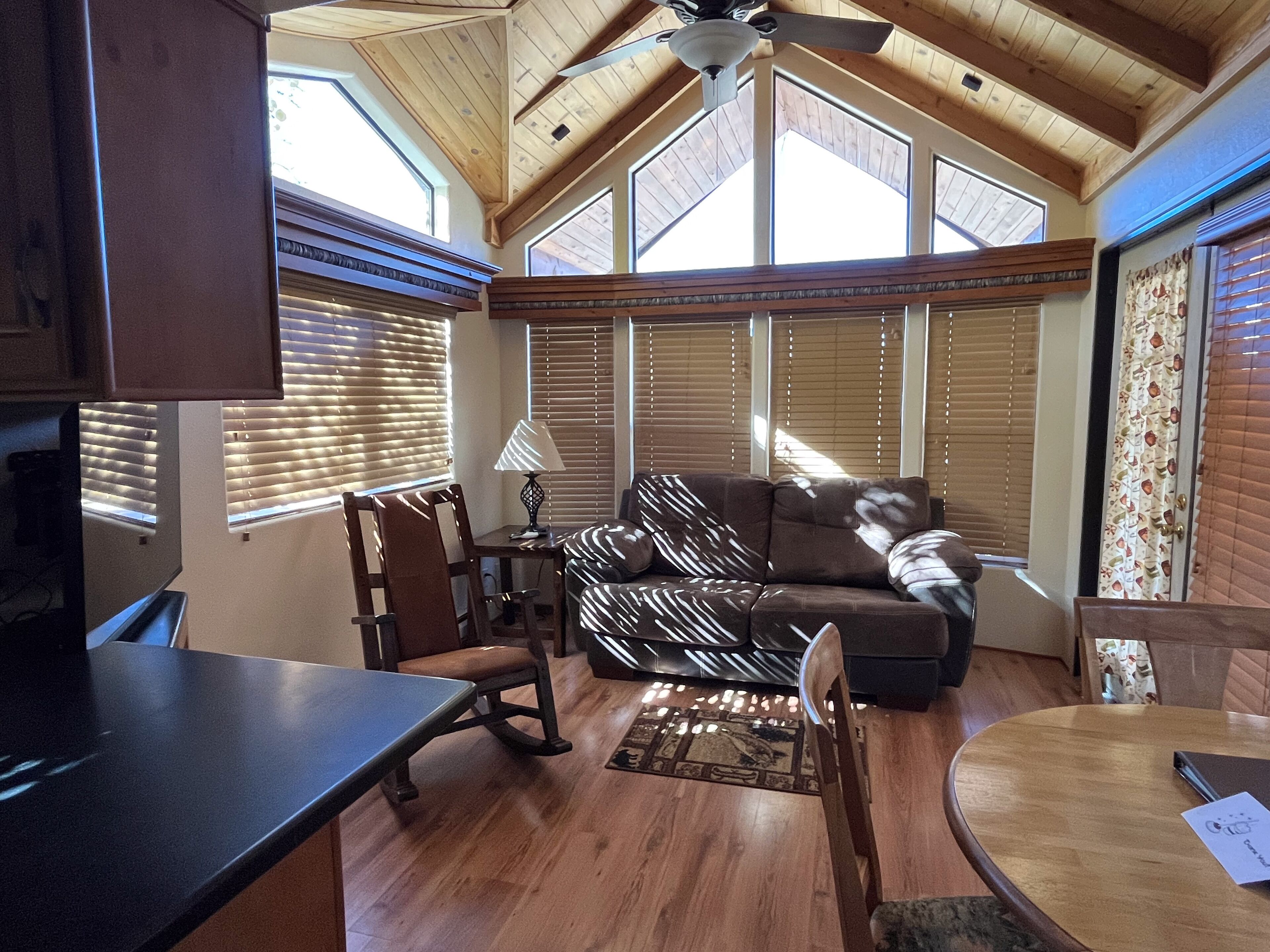 Cozy "Tiny Home" style Cabin Perfect for Couples and Families Red Quill (Every cabin is named after a fly pattern.) Cabins 39-44 are identical styles with cabin 49 being similar but having a slightly different layout. These tiny home “mountain chalets” offer all the amenities of a cabin in a modern and compact package. They are perfect for families. There is a private bedroom downstairs and a low...