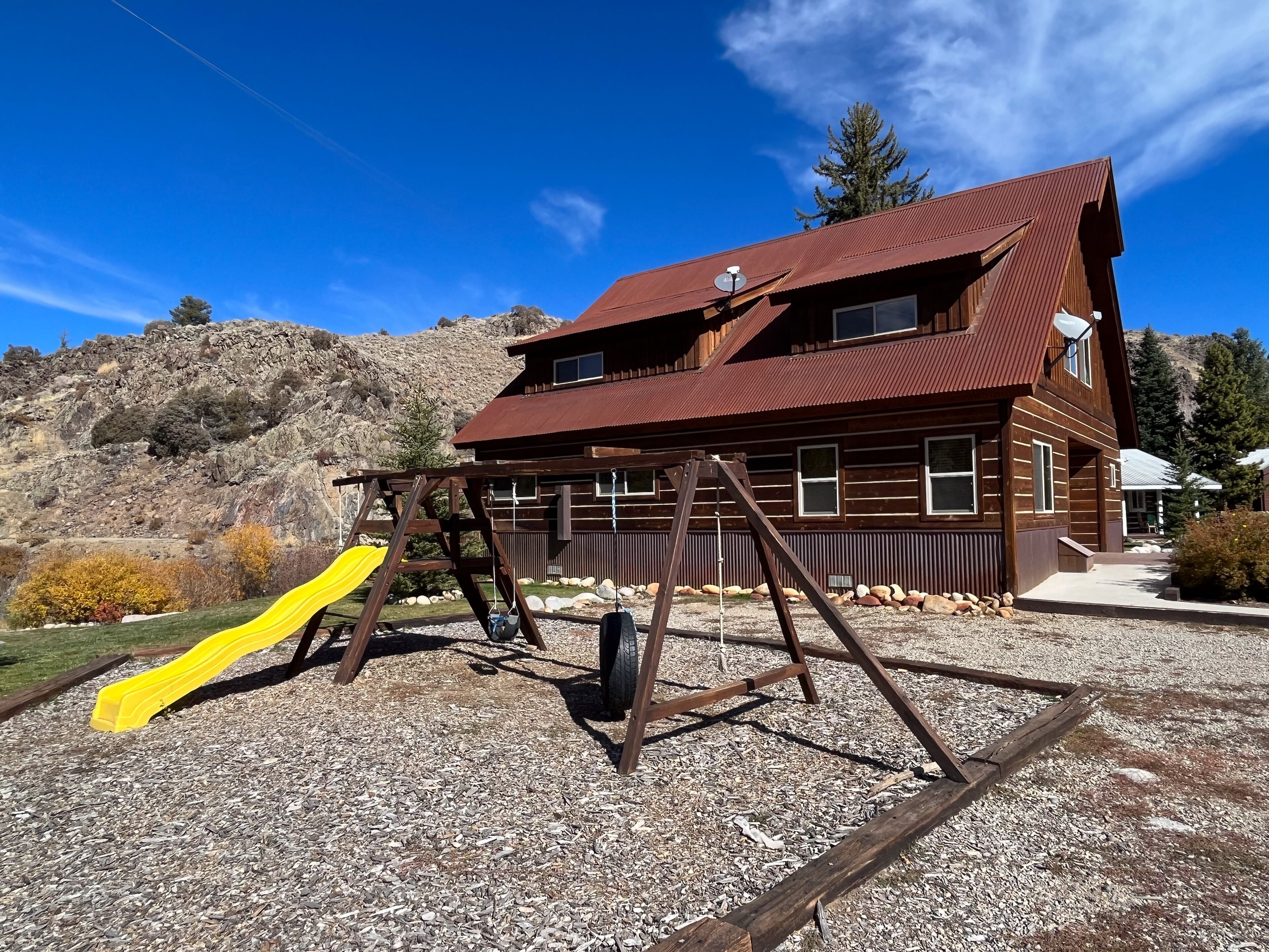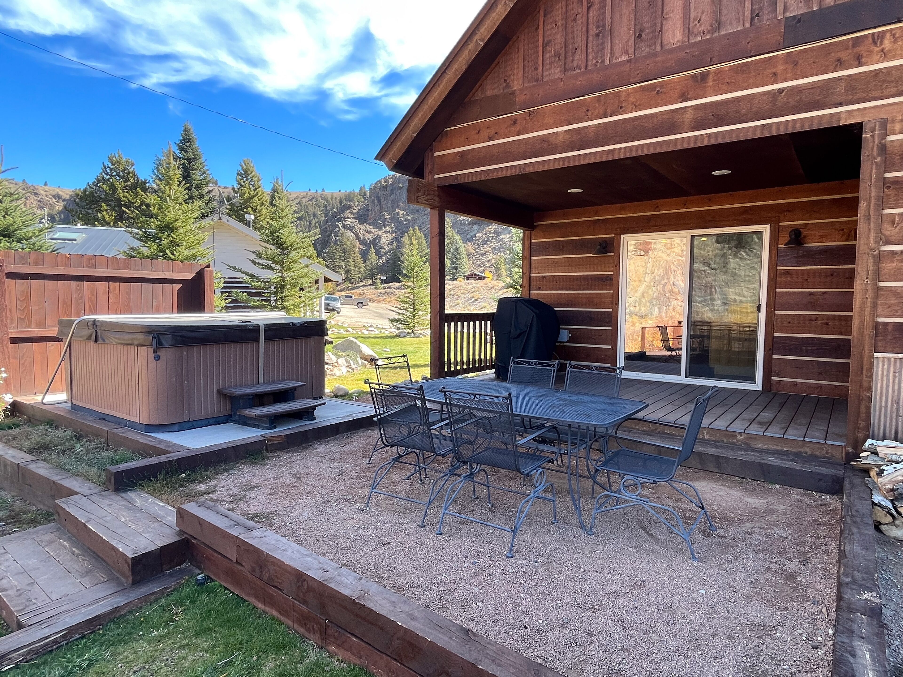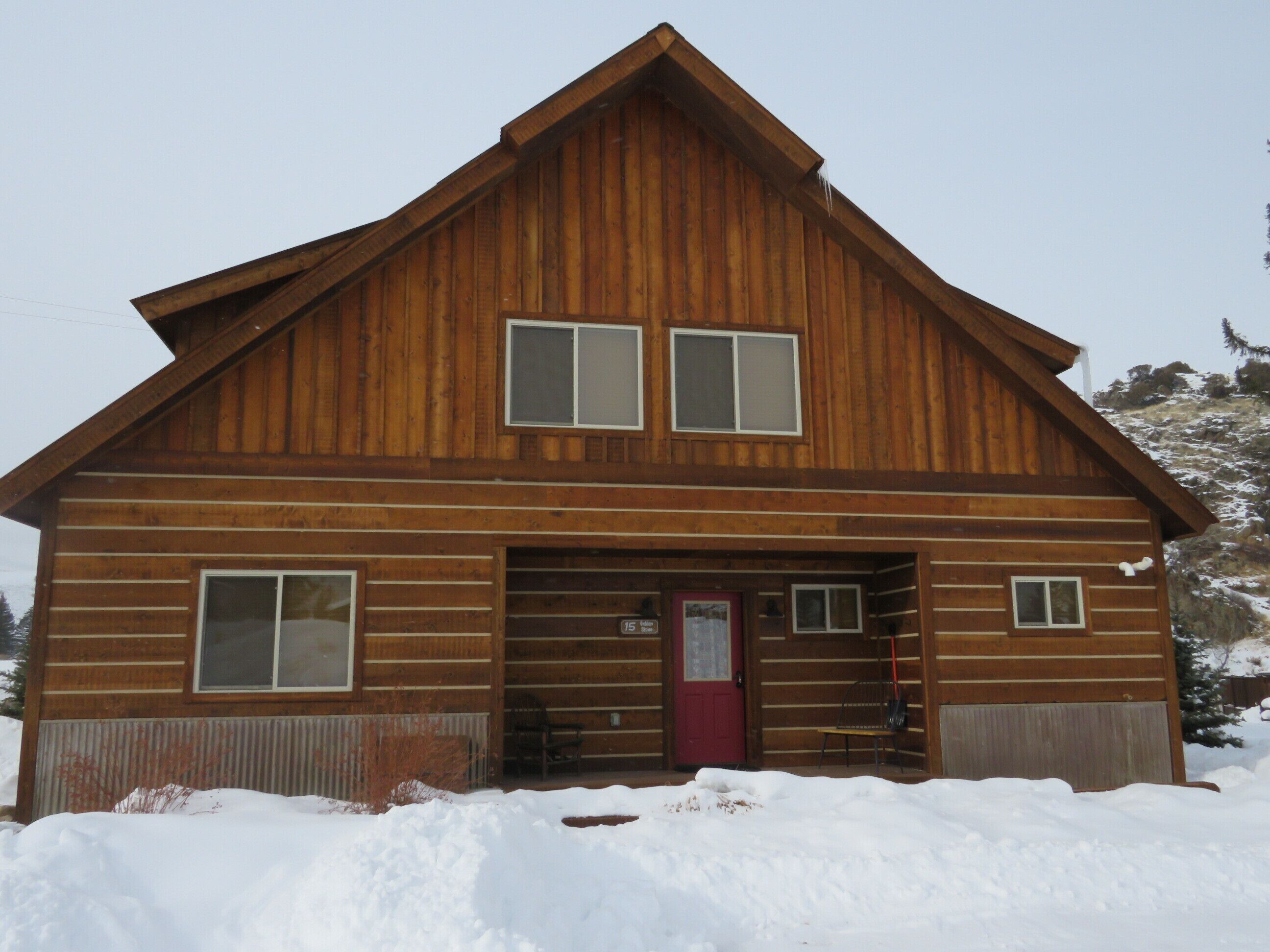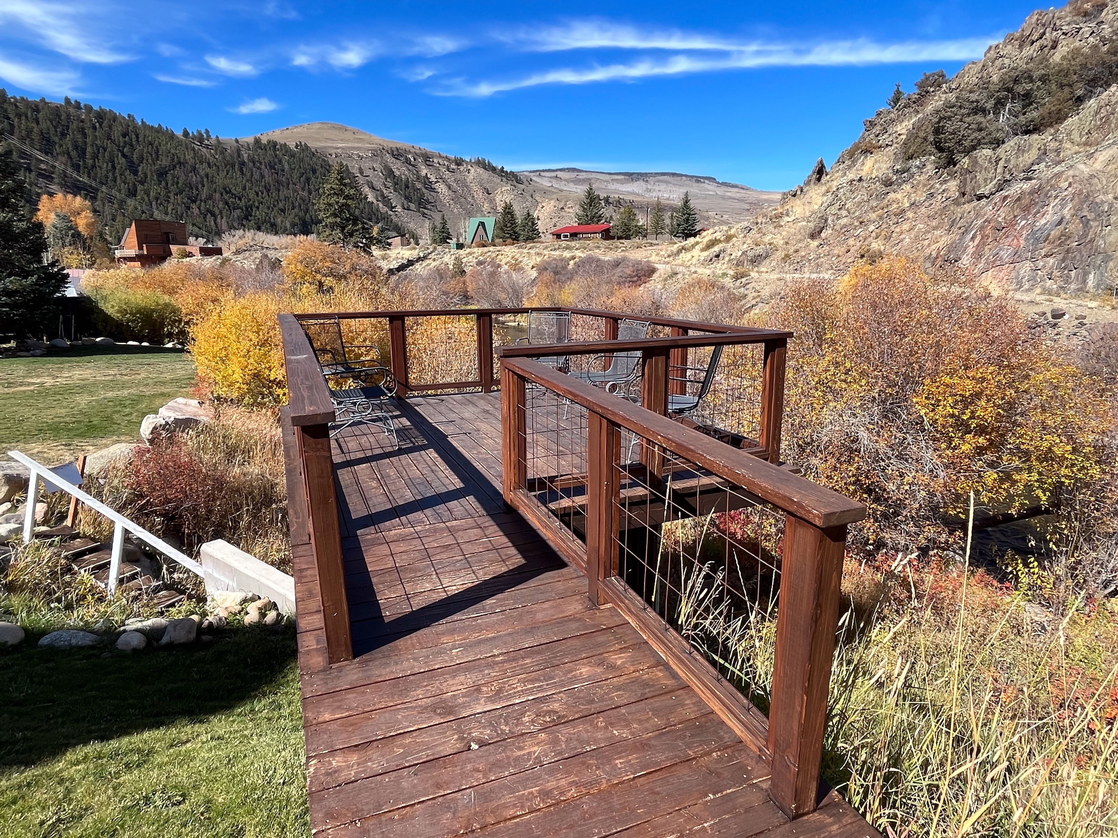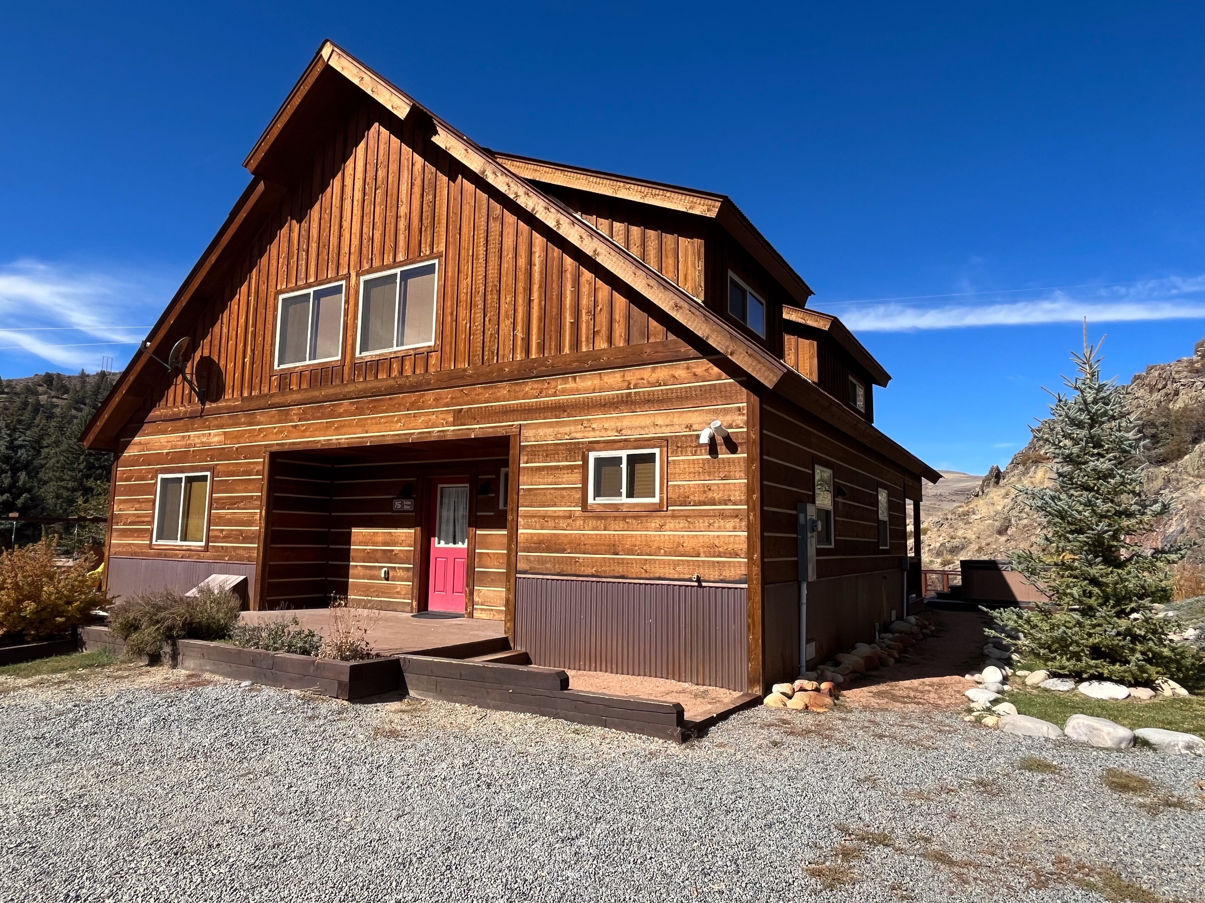 Fabulous 5 BR Vacation Home on the Taylor River “Golden Stone” (Every cabin is named after a fly pattern.) This new, gorgeous, riverfront home is ideal for large groups and families or multiple families to share. The first floor has a master bedroom and full bath, laundry, large living room, half bath and kitchen. The master bedroom/bath will be handicap accessible. From the kitchen, a sliding door opens onto a deck overlooking the Taylor River. There is a natural gas grill and private hot tub outside. Upstairs, 4 additional bedrooms and 3 full bathrooms offer plenty of space for everyone. • Approximately 2000+ square feet• Ground floor Master Bedroom with king bed, full bathroom, shower, handicap accessible • Upstairs, two bedrooms each have a queen and twin bed with full bathroom, tub/shower• Upstairs, two bedrooms each have a king bed and share a bathroom with tub/shower• Supplies included: paper towels, toilet paper, facial tissues, trash bags, dish soap, shampoo, conditioner, body wash, hairdryer• Not included: Anything edible (including coffee, condiments, spices), laundry detergent• Plenty of parking here for 2+ vehicles and toy trailers• All Three Rivers Resort guests have access to private fishing on the Taylor River bordering the resort property.**For VRBO guests, please refer to your reservation confirmation sent to your email after booking for check-in and unit details. We operate like a hotel with a front desk.** All units are designated as non-smoking (including marijuana). Dogs allowed for an additional nightly fee, maximum of 2 dogs. No cats or other animals. Dogs may not be left alone in cabins at any time. Nightly rate is based on 10 people. There is an additional fee of $10/person/night for extra persons (ages 7 and over). Maximum occupancy is 12. Rates are typically higher during the peak season from May – September/early October and during holiday periods. Rates are adjusted based on occupancy and can change at any time. For exact rates, enter your trip dates in the availability search.**If online search results produce a limited listing of available units for your dates, please call us as availability can change quickly. For stays less than 3 nights or arrival within the next 2 days, you must contact the office directly.**