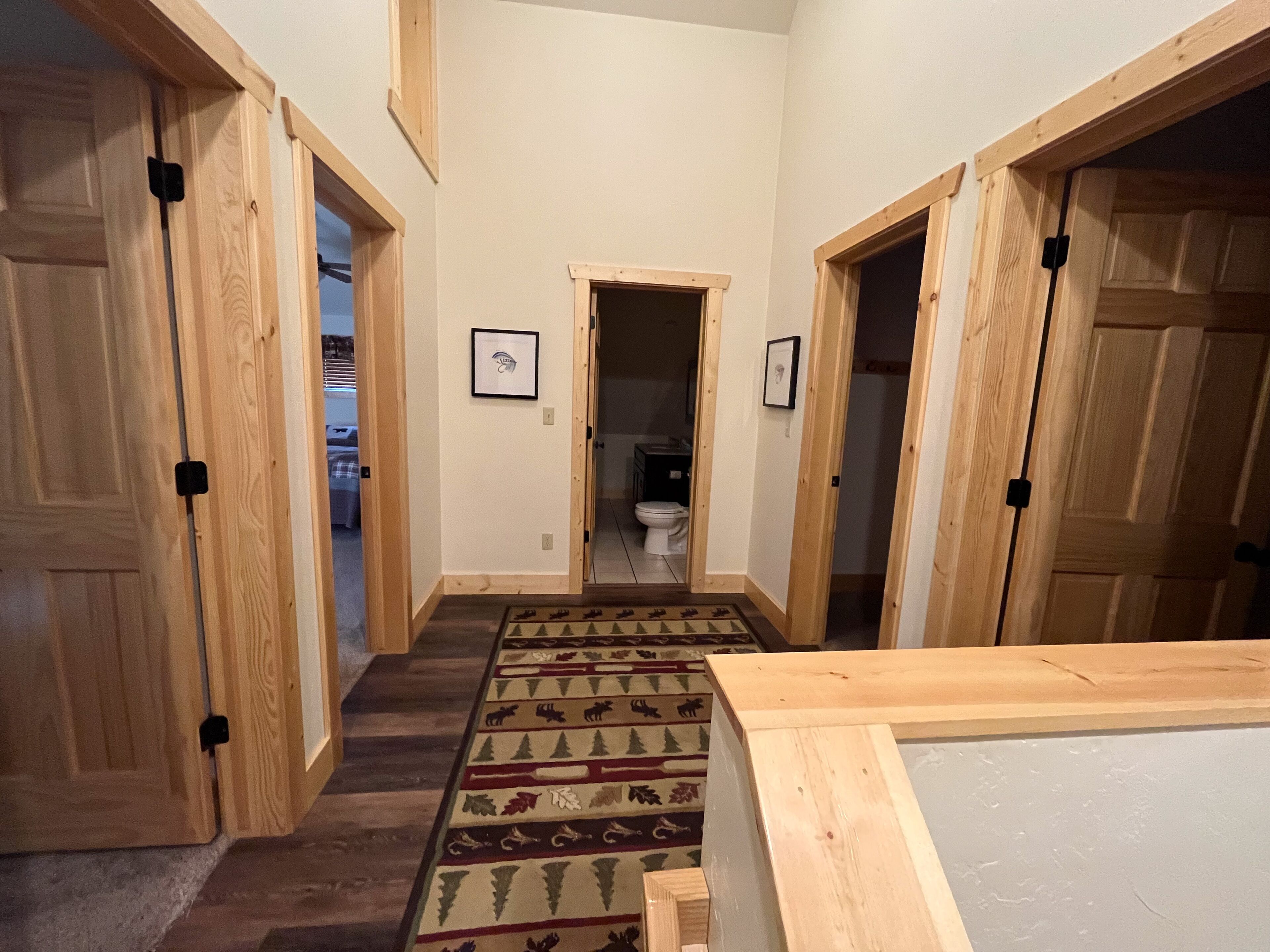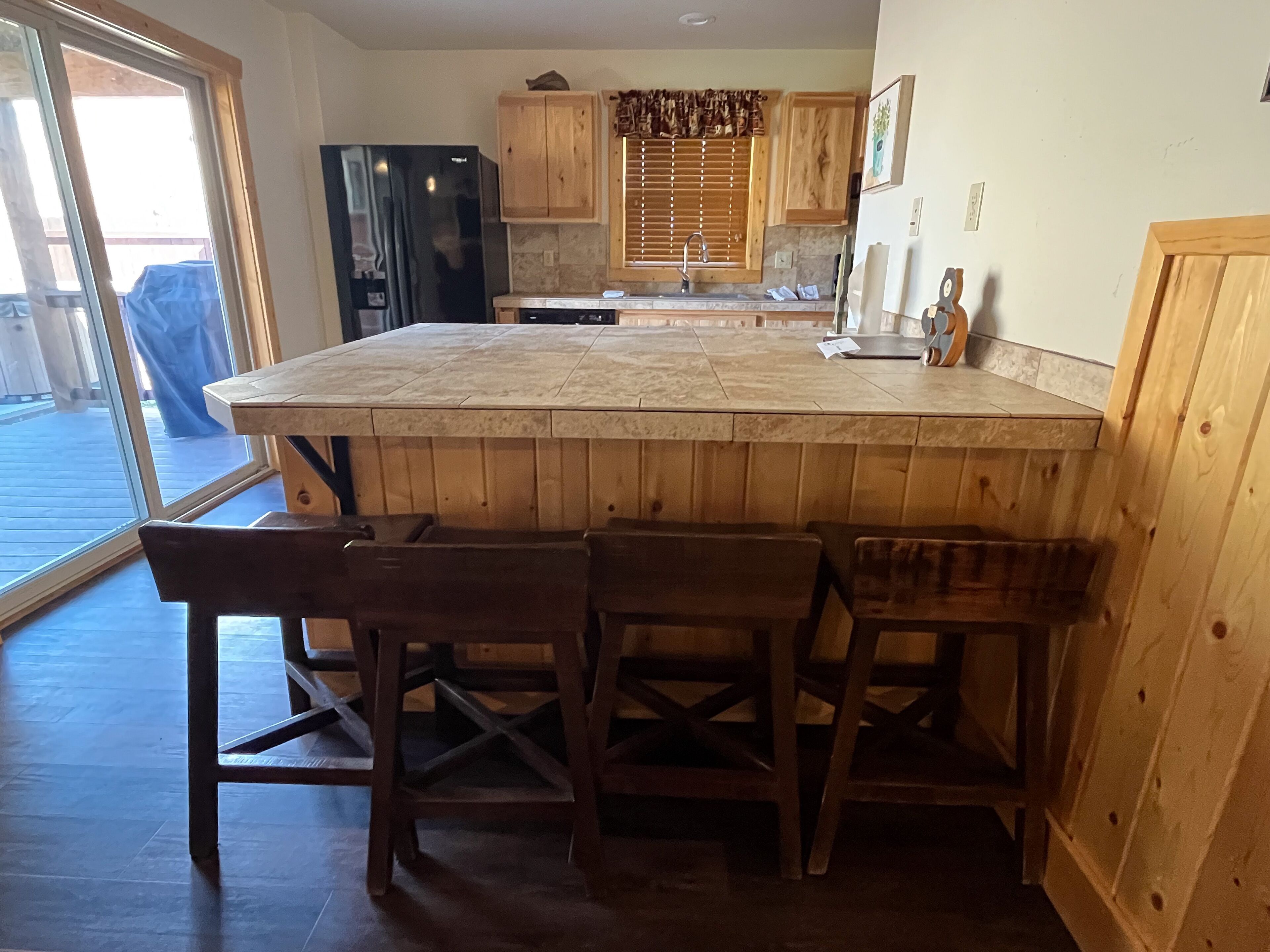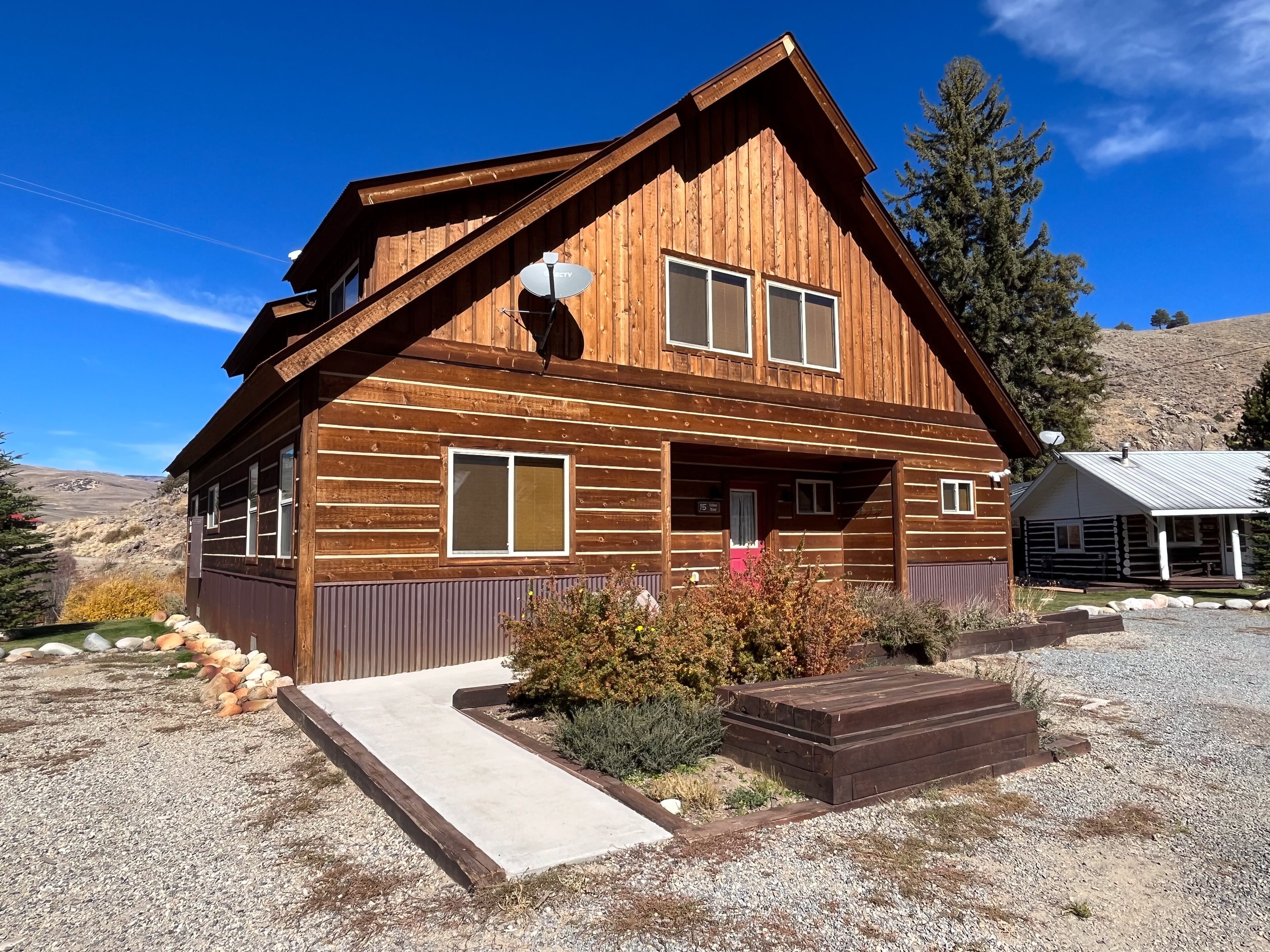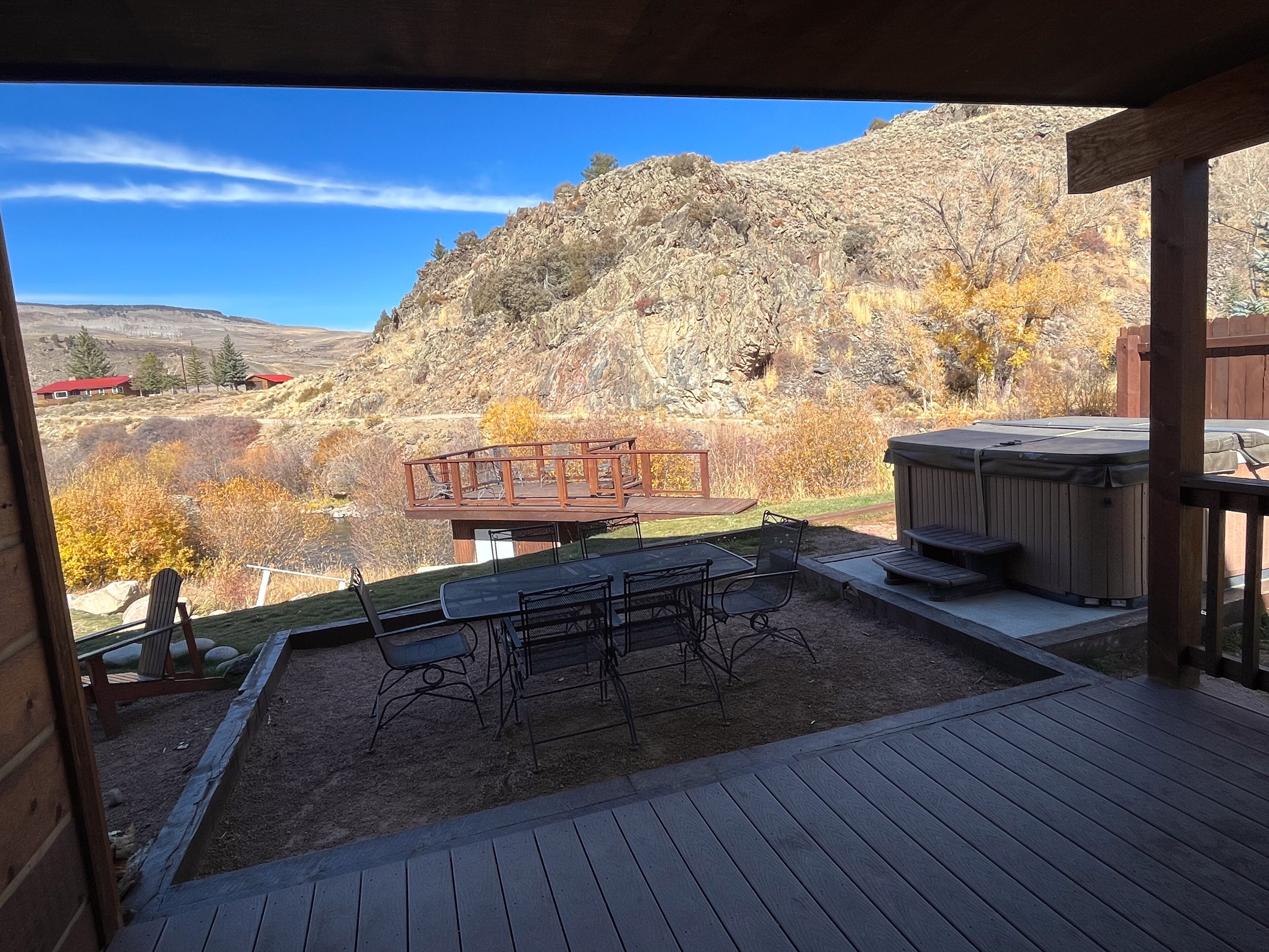 Fabulous 5 BR Vacation Home on the Taylor River “Golden Stone” (Every cabin is named after a fly pattern.) This new, gorgeous, riverfront home is ideal for large groups and families or multiple families to share. The first floor has a master bedroom and full bath, laundry, large living room, half bath and kitchen. The master bedroom/bath will be handicap accessible. From the kitchen, a sliding door opens onto a deck overlooking the Taylor River. There is a natural gas grill and private hot tub outside. Upstairs, 4 additional bedrooms and 3 full bathrooms offer plenty of space for everyone. • Approximately 2000+ square feet• Ground floor Master Bedroom with king bed, full bathroom, shower, handicap accessible • Upstairs, two bedrooms each have a queen and twin bed with full bathroom, tub/shower• Upstairs, two bedrooms each have a king bed and share a bathroom with tub/shower• Supplies included: paper towels, toilet paper, facial tissues, trash bags, dish soap, shampoo, conditioner, body wash, hairdryer• Not included: Anything edible (including coffee, condiments, spices), laundry detergent• Plenty of parking here for 2+ vehicles and toy trailers• All Three Rivers Resort guests have access to private fishing on the Taylor River bordering the resort property.**For VRBO guests, please refer to your reservation confirmation sent to your email after booking for check-in and unit details. We operate like a hotel with a front desk.** All units are designated as non-smoking (including marijuana). Dogs allowed for an additional nightly fee, maximum of 2 dogs. No cats or other animals. Dogs may not be left alone in cabins at any time. Nightly rate is based on 10 people. There is an additional fee of $10/person/night for extra persons (ages 7 and over). Maximum occupancy is 12. Rates are typically higher during the peak season from May – September/early October and during holiday periods. Rates are adjusted based on occupancy and can change at any time. For exact rates, enter your trip dates in the availability search.**If online search results produce a limited listing of available units for your dates, please call us as availability can change quickly. For stays less than 3 nights or arrival within the next 2 days, you must contact the office directly.**