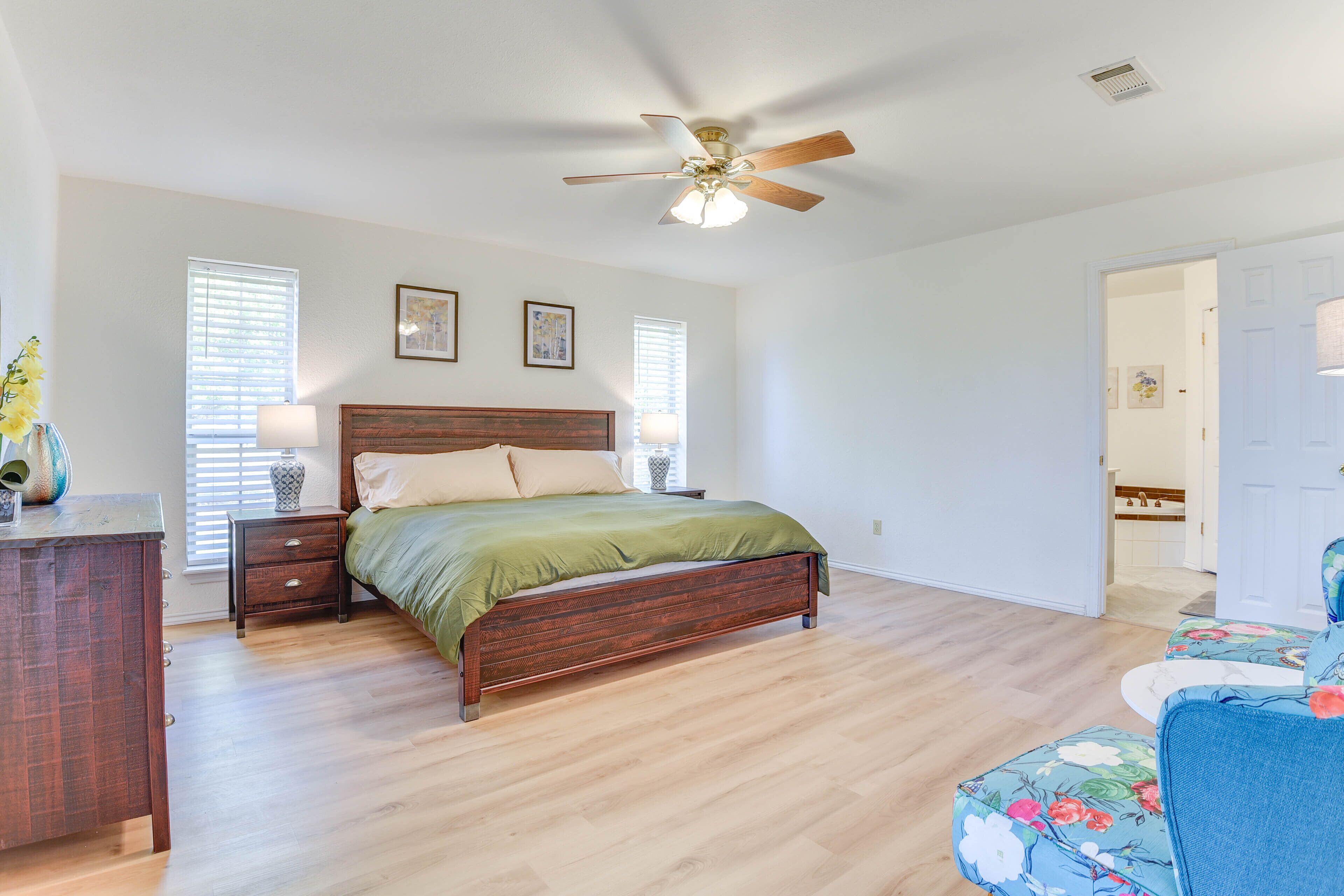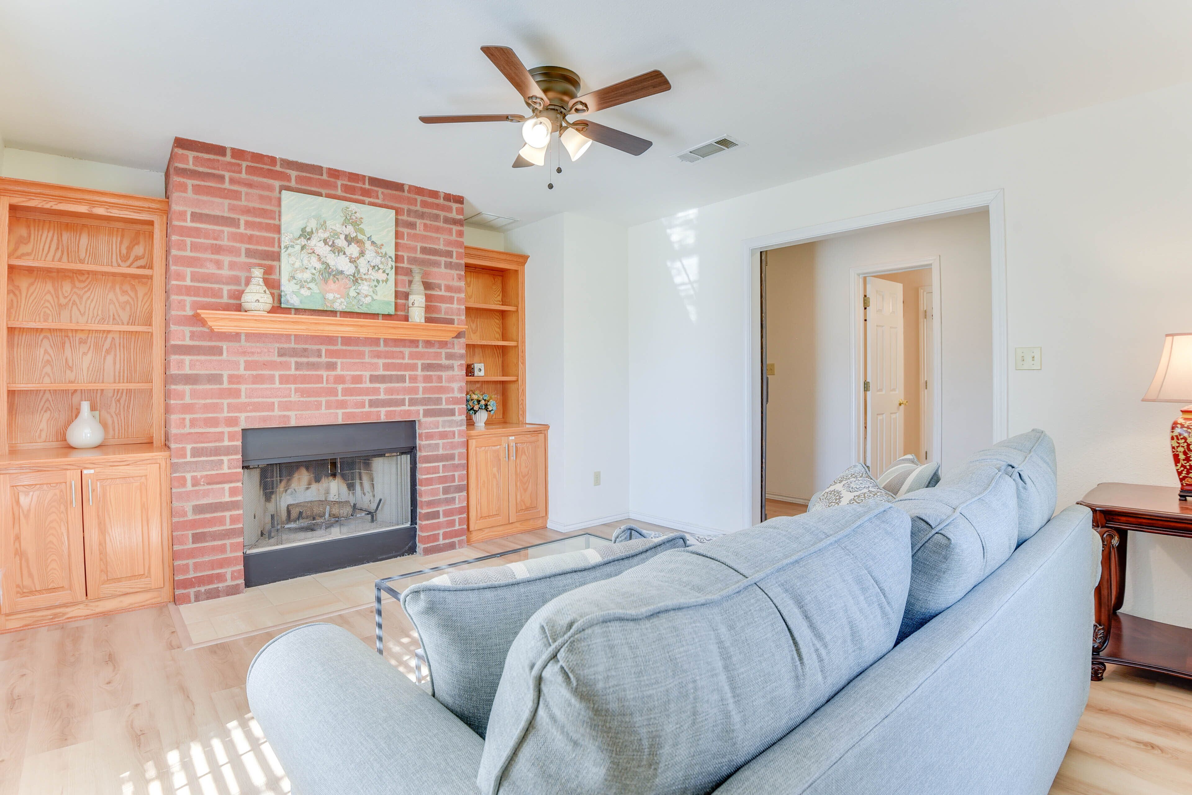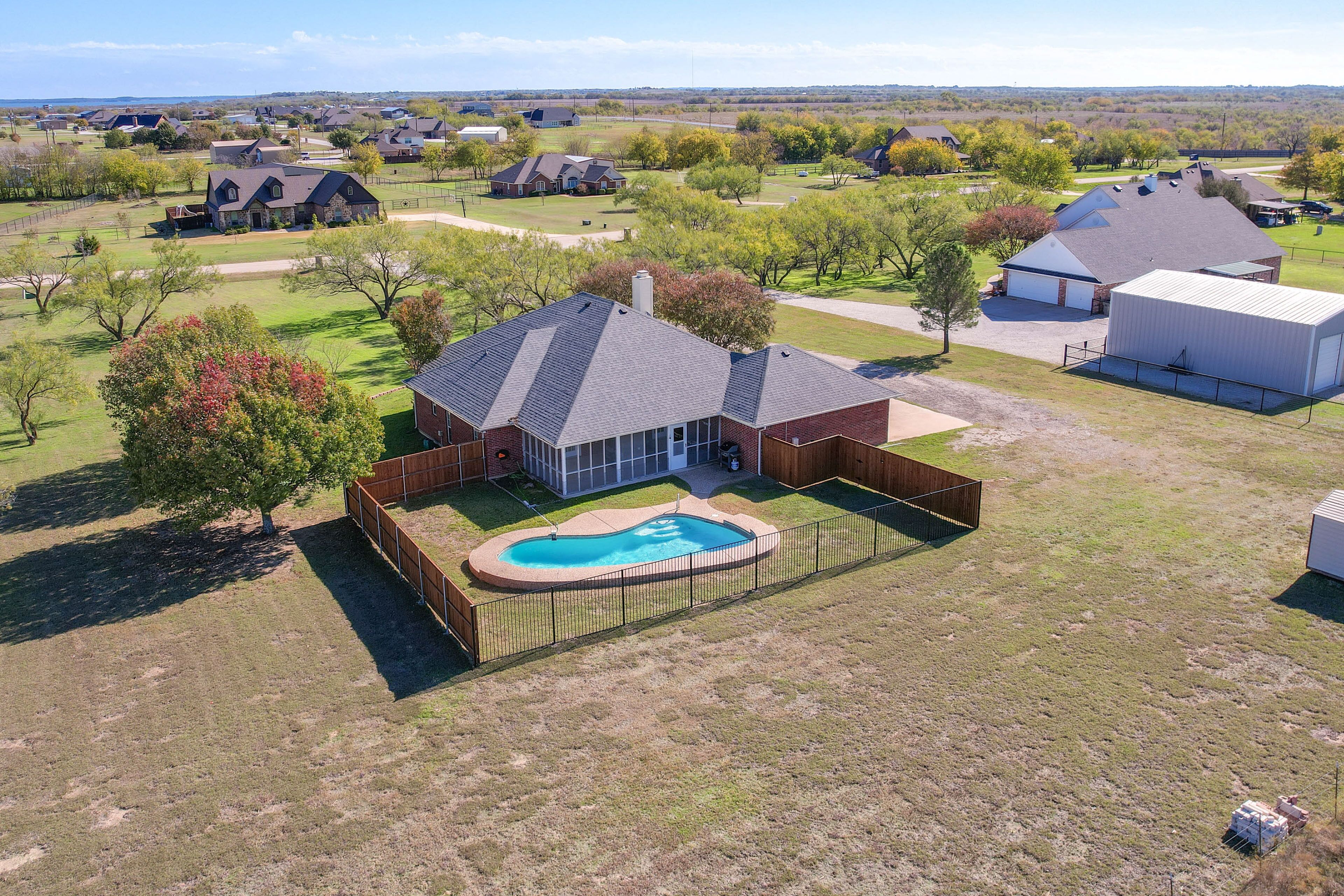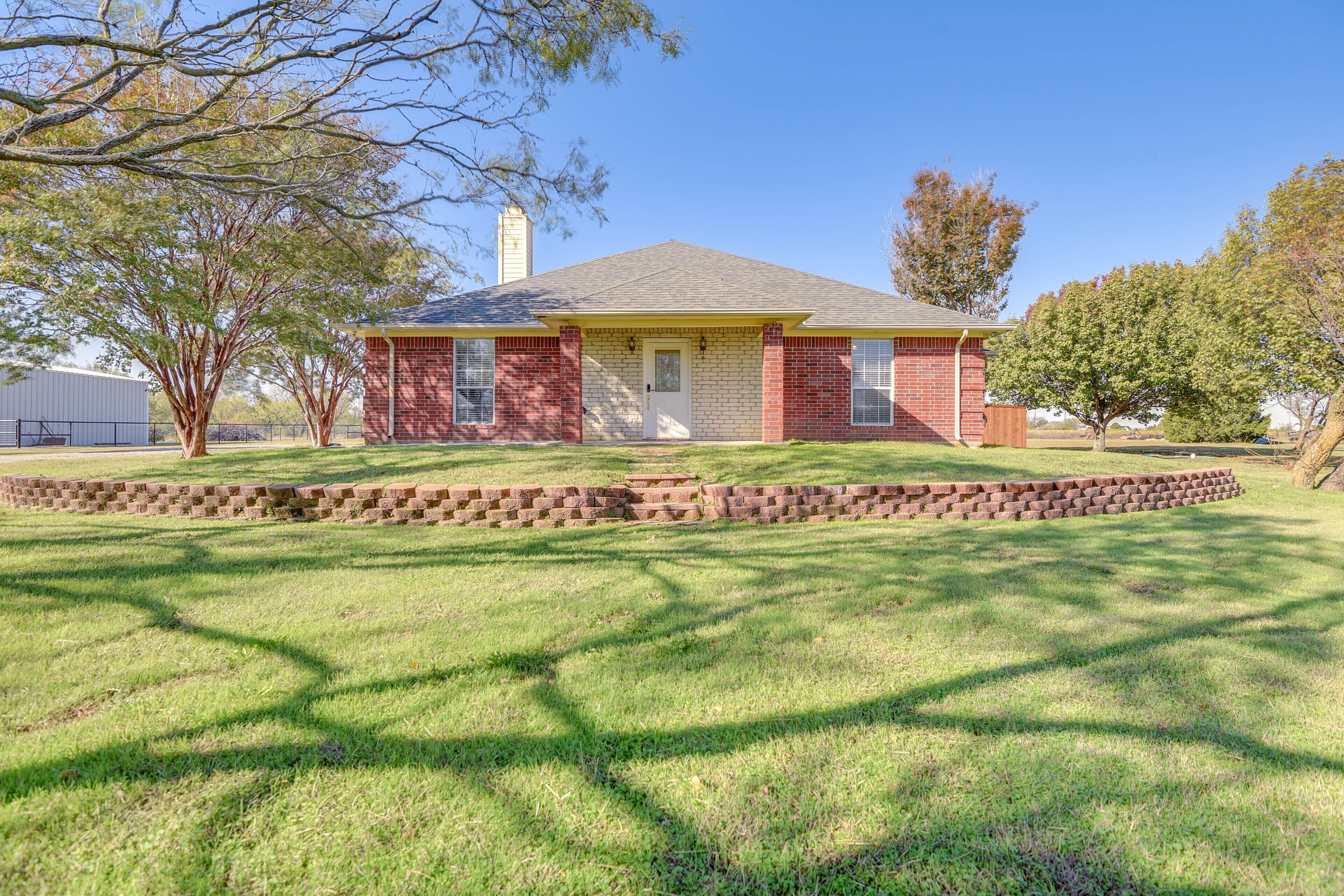 Cozy Texas Retreat w/ Pool, Grill & Fenced-In Yard Escape to Texas when you stay at this charming 2-bedroom, 2-bath Sanger vacation rental! Boasting a private pool, a screened-in patio, a fully equipped kitchen, and a modern interior, this home is the perfect place to spend quality time with your loved ones. Venture out to explore Downtown Sanger, tee off at North Lakes Driving Range, or take a day trip to adventure at LEGOLAND Discovery Center. Return home to splash around in the pool before firing up the grill and enjoying a meal on the patio!-- THE PROPERTY --Screened-In Patio | Fireplace | WFH Friendly | Near Hiking & GolfingBedroom 1: King Bed | Bedroom 2: Queen Bed | Living Room: Queen Sleeper Sofa OUTDOOR LIVING: Pool (summer months only), gas grill, outdoor seating & dining, fenced-in yardINDOOR LIVING: Smart TVs, dining table, laptop-friendly workspace, soaking tub, walk-in shower, shower/tub combo, walk-in closet, ceiling fansKITCHEN: Stainless steel appliances w/ dishwasher, cooking basics, dishware/flatware, coffee maker, microwave, toasterGENERAL: Free WiFi, central heating & air conditioning, complimentary toiletries, hair dryer, washer/dryer, laundry detergent, hangers, iron/board, linens/towels, trash bags/paper towelsFAQ: No fence around pool ACCESSIBILITY: Single-story house, 1 step to enter PARKING: Driveway (2 vehicles), street parking (first-come, first-served basis)-- THE LOCATION --ATTRACTIONS: Downtown Sanger (3 miles), Ray Roberts Lake State Park Isle du Bois (9 miles), Clear Creek Natural Heritage Center (14 miles), LEGOLAND Discovery Center Dallas/Fort Worth (40 miles), Arbor Hills Nature Preserve (42 miles), Fort Worth Stockyards (47 miles)TEE TIME: North Lakes Driving Range (12 miles), Christie’s Golf Ranch, Inc (16 miles), Timberlinks Golf Club (18 miles), Oakmont Country Club (21 miles), Windhorse Golf Club (22 miles), Grapevine Golf Course (43 miles)HIT THE TRAILS: Fossil Creek (7 miles), Ray Roberts Greenbelt Trailhead (8 miles), Scenic Overlook (11 miles), Randy Bell Scenic Trail (11 miles), Cooper Creek Trail Trailhead (12 miles), DORBA Johnson Branch Trailhead (15 miles), Johnny Broyles Nature Trail (27 miles), Cottonwood Park Nature Trail (27 miles)AIRPORTS: Dallas/Fort Worth International Airport (42 miles), Dallas Love Field (50 miles)-- REST EASY WITH US --Evolve makes it easy to find and book properties you’ll never want to leave. You can relax knowing that our properties will always be ready for you and that we’ll answer the phone 24/7. Even better, if anything is off about your stay, we’ll make it right. You can count on our homes and our people to make you feel welcome--because we know what vacation means to you.-- POLICIES --- No smoking - No pets allowed- No events, parties, or large gatherings - Must be at least 25 years old to book - Additional fees and taxes may apply - Photo ID may be required upon check-in- NOTE: This single-story home requires 1 step to enter - NOTE: This property may not be suitable for young children due to the unfenced pool area- NOTE: The pool is not available for guest use during the winter months