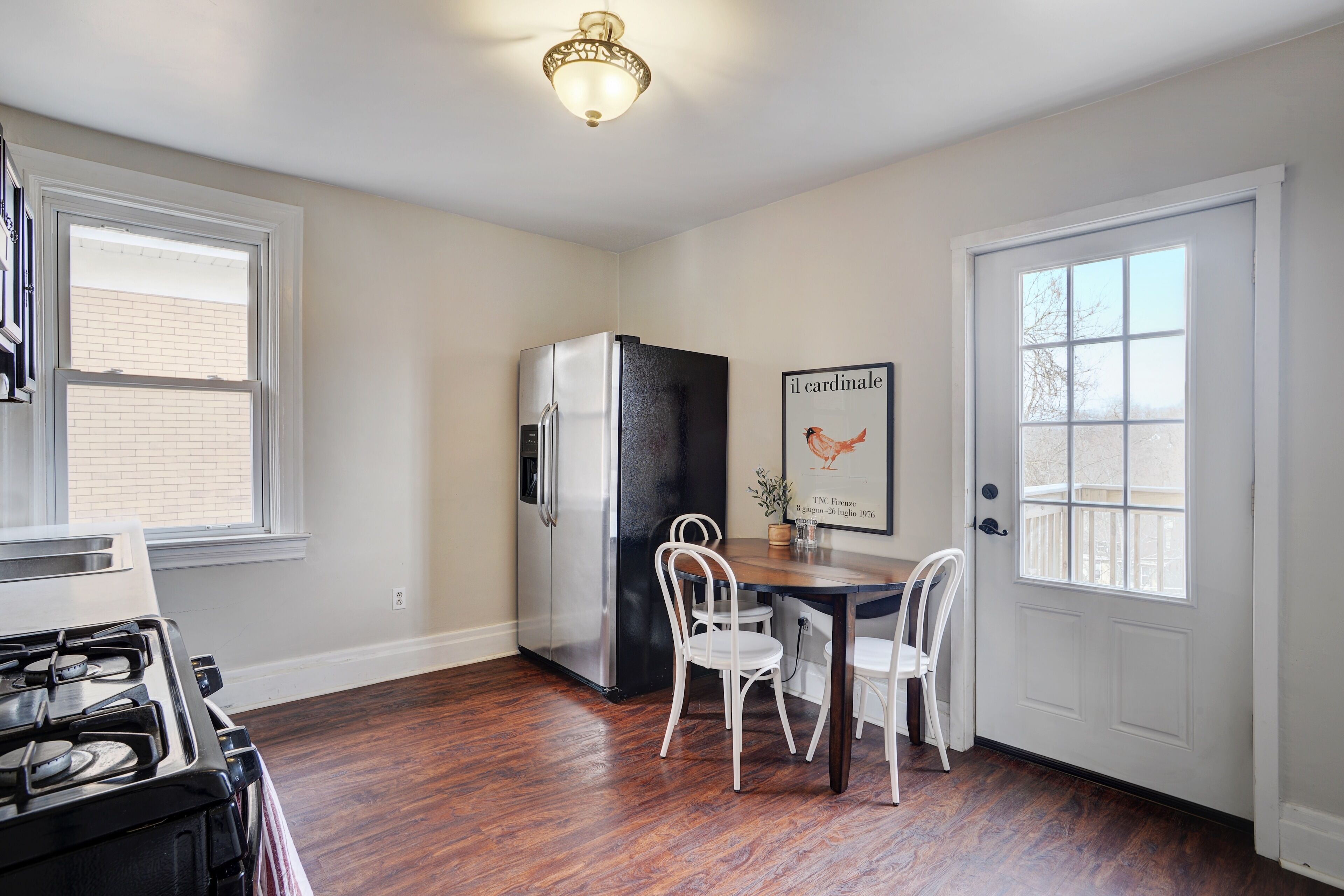 Peaceful Getaway in a Quiet Walking Neighborhood This charming 1907 home on a quiet dead end street was converted years ago into three separate units. This unit is on the second story and features a comfortable queen sized bedroom and a full sized bed in the second bedroom and one bright, newly tiled bathroom. The warm living room welcomes you in with comfy sofa, cozy chairs and smart tv. Off the living room is the adorable eat in kitchen equipped with all the essentials including a drip coffee maker. This unit is a perfect getaway when you return from all the sights Pittsburgh has to offer! It blends the peaceful comfort of home while being close to downtown, stadiums and casino! One off street parking space and shared laundry are included!