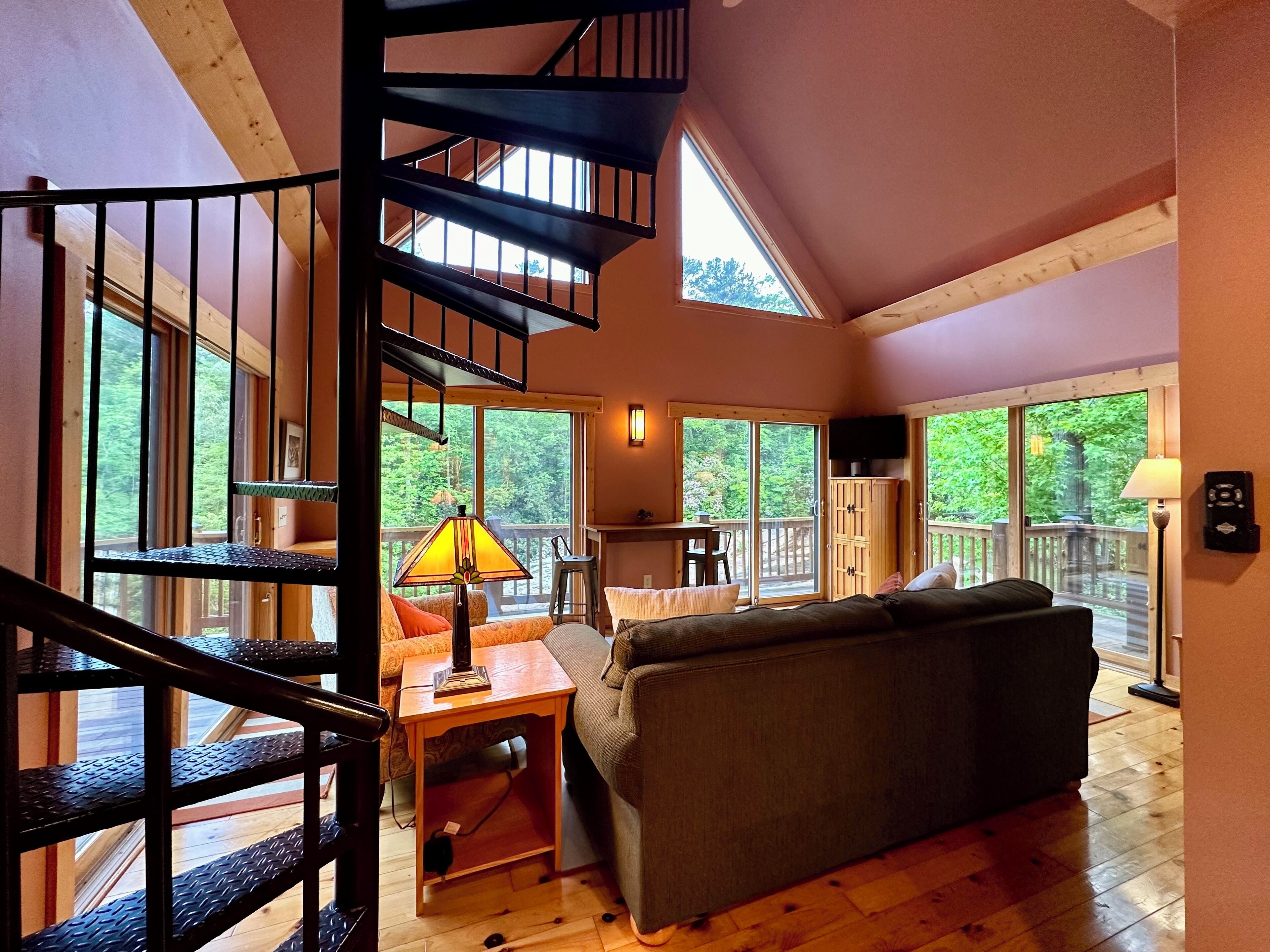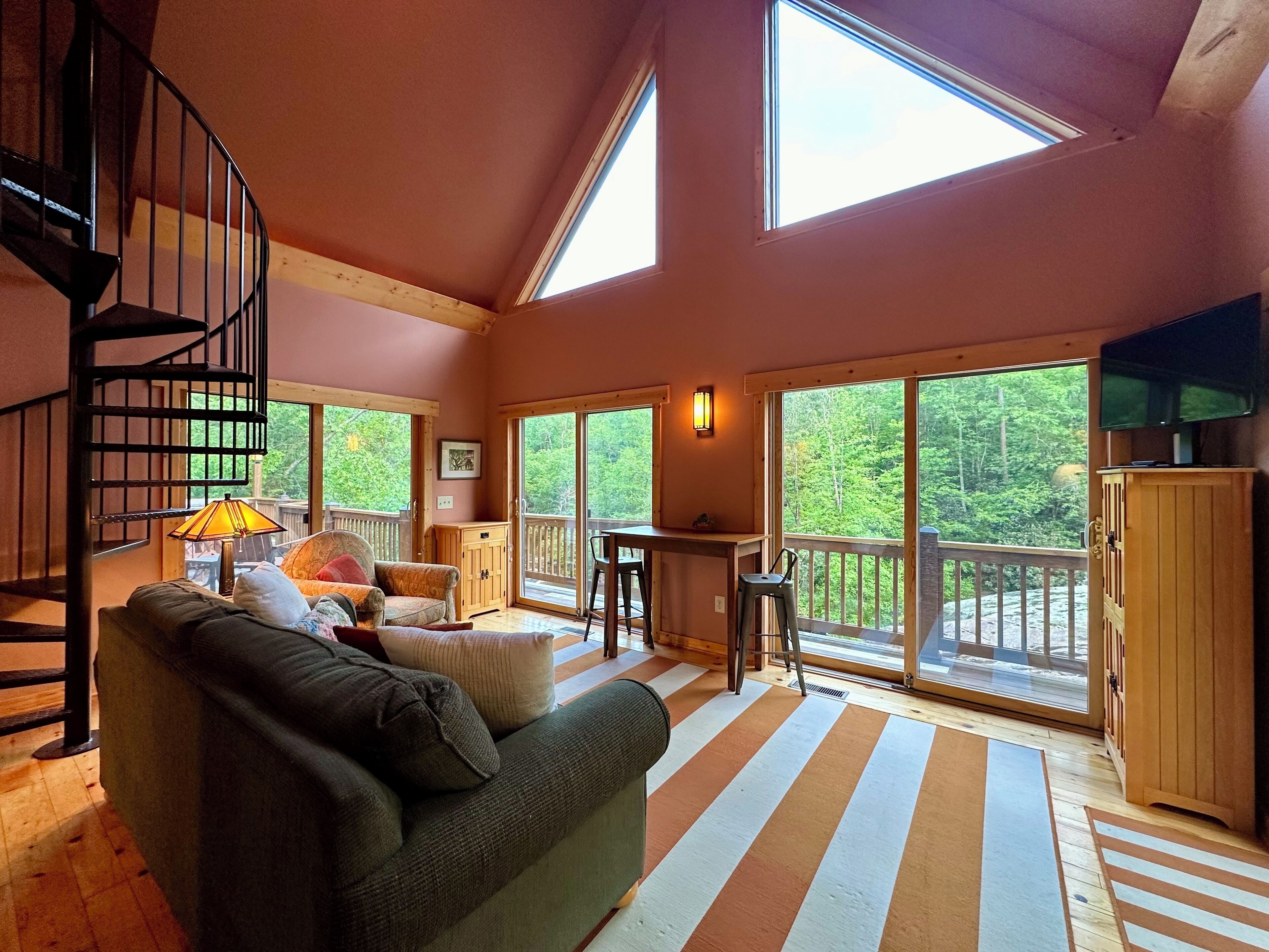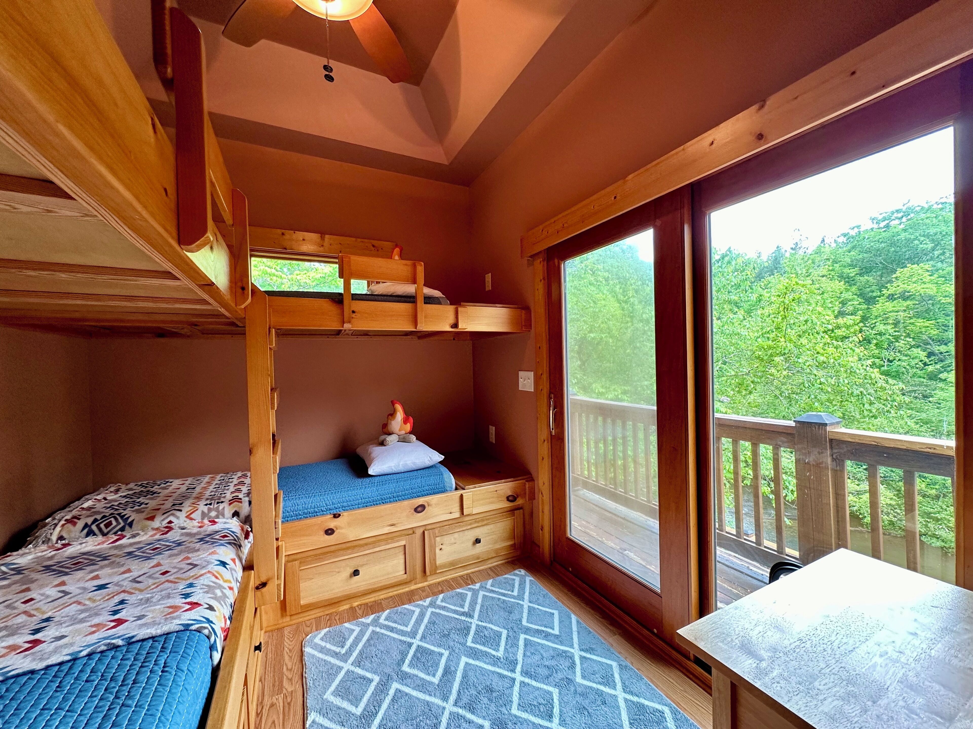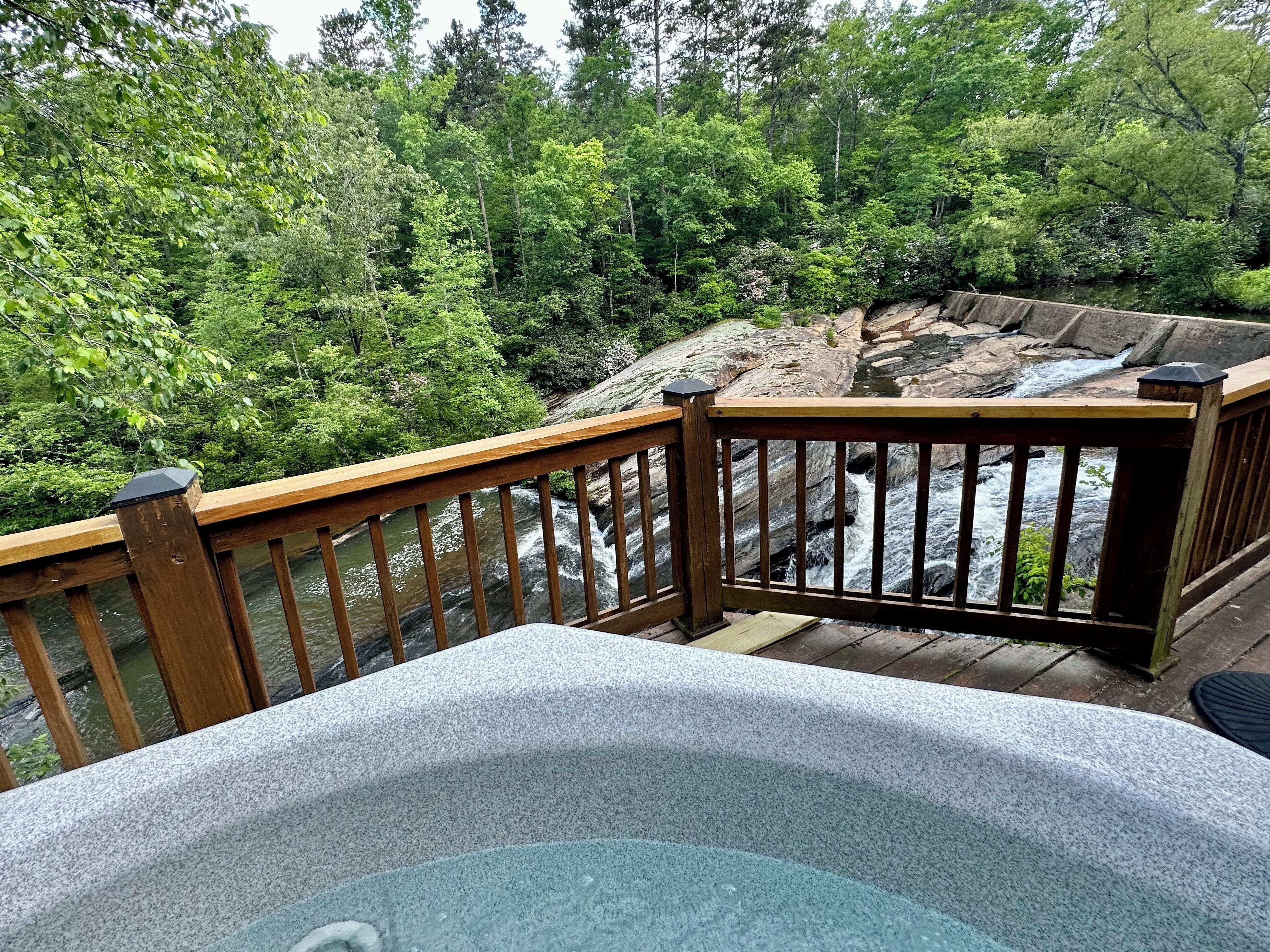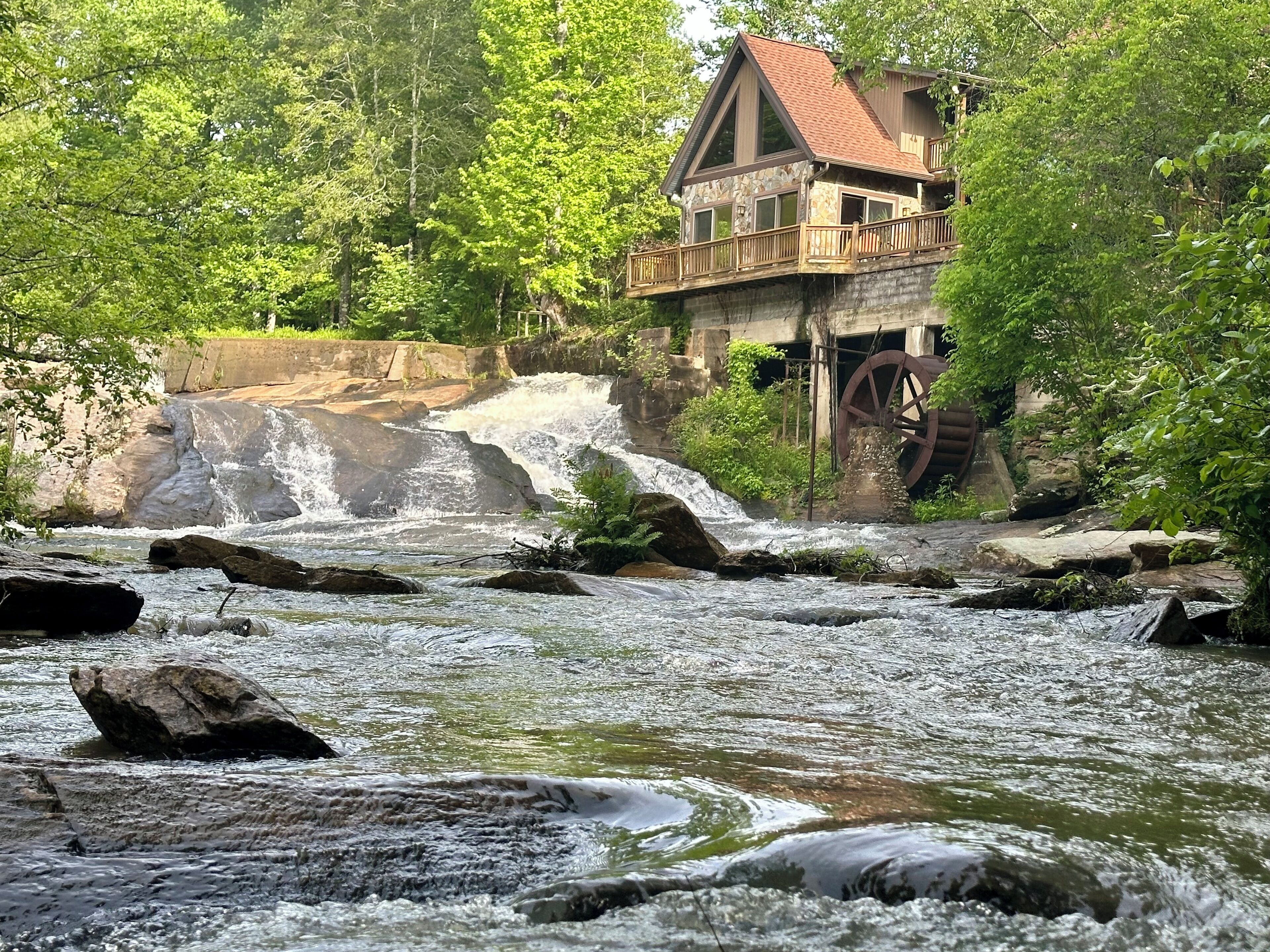 Lodge on the Waterfall! Hot tub overlooking a private waterfall... need I say more? Well, yes, there's so much more to say after all...Step into a world where history and luxury blend seamlessly, nestled on the grounds of the county's historic grist mill. Our serene waterfall haven is not just an accommodation, it's an experience designed to engulf your senses and refresh your soul.Prepare to be enveloped in a cocoon of tranquility as you step inside our charming home, where every window frames the breathtaking views of a private river and waterfall. The living room is a cozy congregation spot that invites you to unwind with its rustic charm and contemporary comforts. The fully equipped kitchen is complete with amenities to juice your culinary inspiration. And an adorable spiral staircase takes you to a loft and a plush queen bed - a snug retreat for dreamers and lovers of plush linens alike. But wait, there’s more! Just across the breezeway is a detached bunk house - an ideal haven for little adventure seekers. Boasting 4 twin bunks and a half bath, it provides an ideal nest for young ones, and promising sweet dreams and whispers of ancient mill secrets. Or maybe uninterrupted giggles on into the night.Beds:Queen bed in the loftFull size pull out sofaFour twin bunk beds in the bunkhouseBathrooms:One full bath inside, a half bath in the bunk house, and another full bath on the deck.Outdoor Paradise:Our deck, a majestic front-row seat to nature's masterpiece, offers more than just spectacular views. The outdoor kitchen offers a quaint setting for al fresco dining, the hot tub offers to melt away your stress, and the dry sauna offers the rejuvenation and healing of a Northern European spa!Distance From:Clemson University - 22 milesDowntown Seneca - 15 milesDowntown Pickens - 24 milesDowntown Walhalla - 6 milesLake Jocassee at Devils Fork State Park - 11 milesBook Now:Unlock the door to this unique blend of history, luxury, and nature. Perfect for those looking to escape the mundane, our serene waterfall haven awaits your arrival.