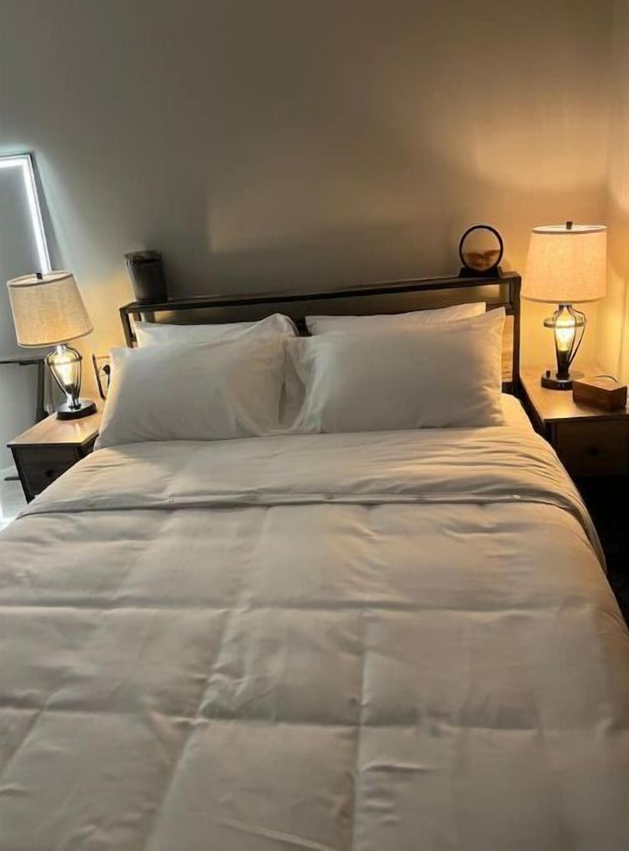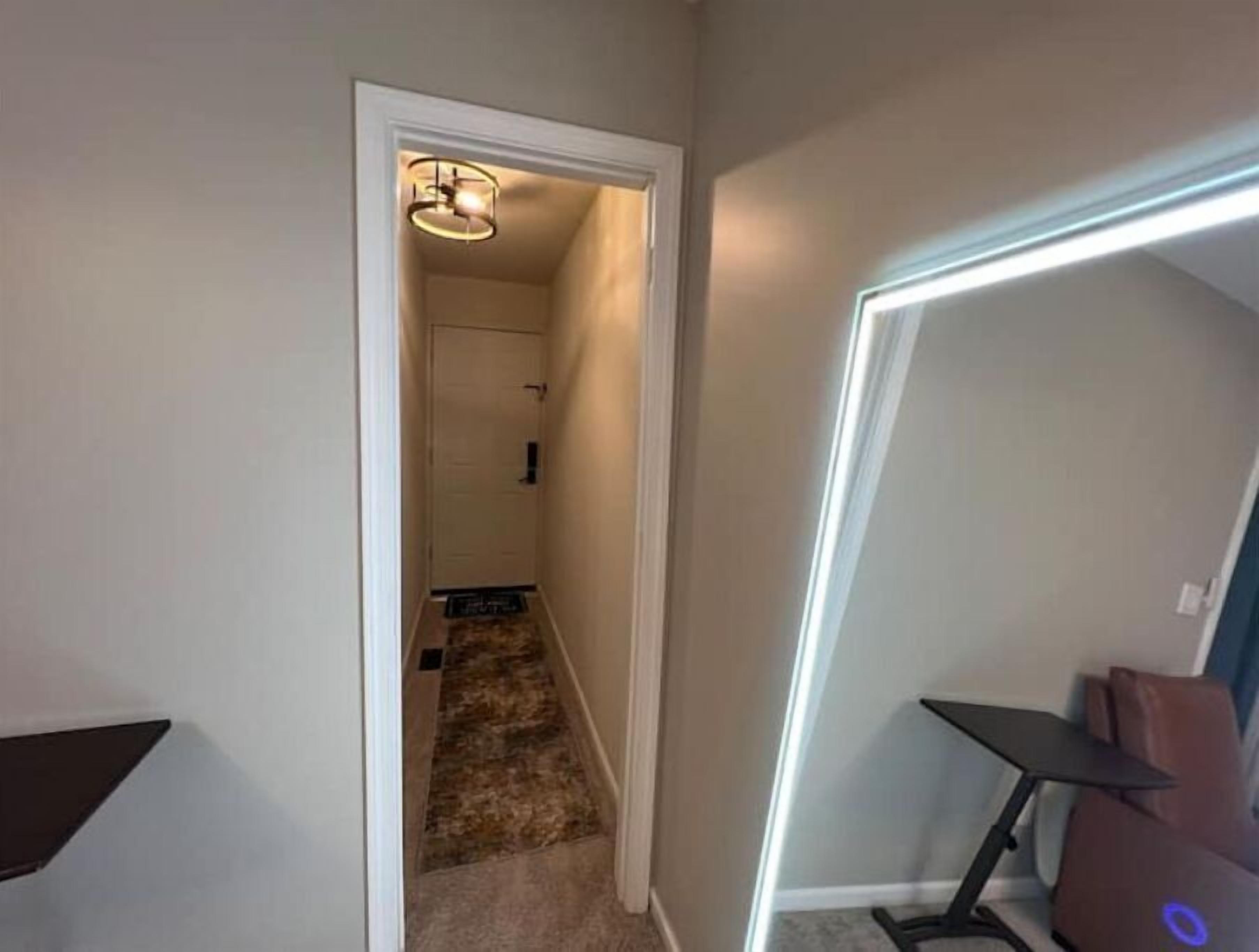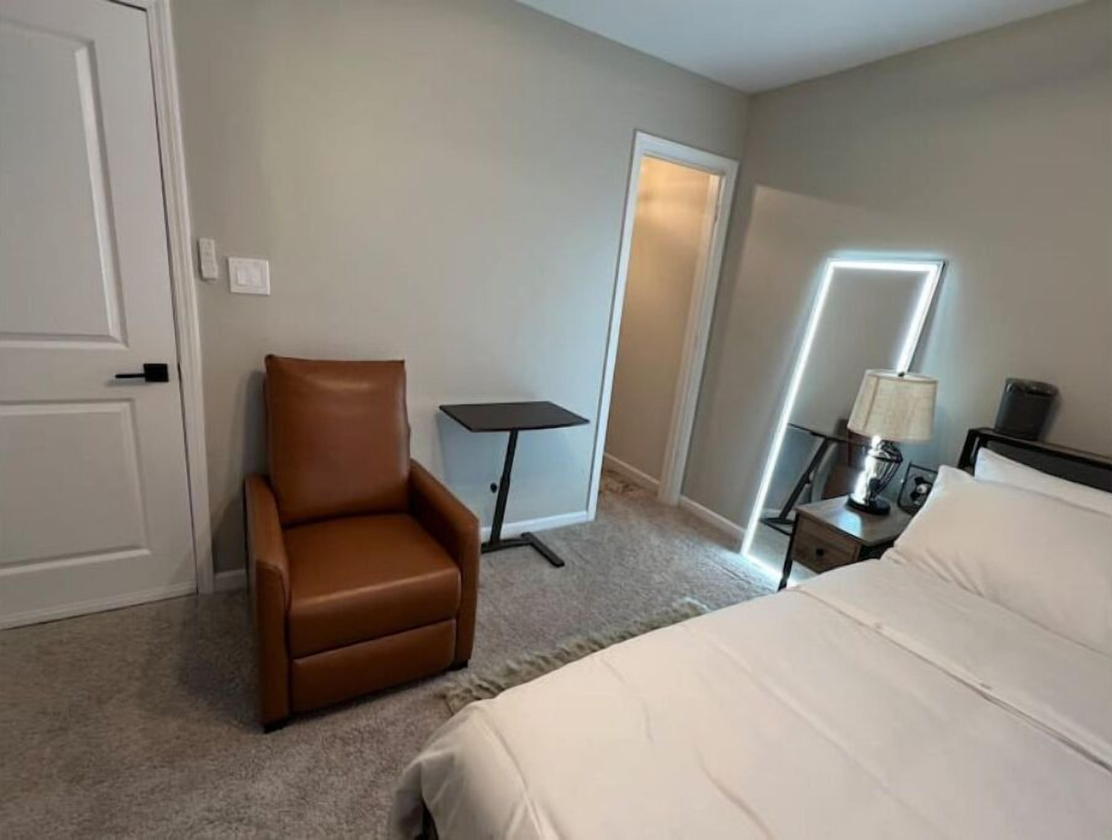 Private Entrance Guest Suite with Contactless Check-In Debuting a new, super clean, & comfortable private suite carved out of our newly built home in a safe, serene subdivision & premium amenities.Private Entrance & Contactless Check-In.Pet 🐶 & smoke free.Features:-Leather recliner-Snack/laptop table-100 Mbps WiFi-55” 4K Smart 📺 -Massage gun-Air purifier-☁️ fall humidifier & diffuser-reversible 🔥🧊 ceiling fan-Complimentary 🧼 🧴-Kitchenette & ☕️/🫖 bar -Expandable mobile dining table/workstation-Full bath w/ bidet-🧺 service available And more…--------------------------------More about the space--------------------------------A private entrance on the left through the garage door will meet you with an entryway and a closet/storage area to your right, a shoe bench, a key holder, and bedroom straight ahead. [Closet/Storage Area]Contains:-overhead shelf-velvet hangers-steam iron -ironing board-key holder -luggage rack -fire extinguisher 🧯 -space heater -toaster oven-personal blender-essential oil diffuser and humidifier-hair dryer [Bedroom]The farmhouse-themed bedroom features a queen bed with two nightstands/dimmable lamps, outlets, USB charging ports, a large window 🪟, blackout & privacy curtains, and a reversible 🔥 🧊 ceiling fan. The soundproofed bedroom walls and solid-core door add additional privacy and comfort.Dimmable vintage lighting with ♥️-shaped amber bedside bulbs create a warm, relaxing, and romantic nighttime ambience.The room also includes:-leather recliner-adjustable snack/laptop table-55” LG 4K Smart TV-Full length touch LED mirror [Bed 🛏️]The metal/wood bed features a storage shelf, two under-bed drawers, USB ports, clean pillows, high thread count sateen cotton sheets, all-season duvet, and a medium-firm queen hybrid pillow-top mattress. Mattress & pillow protectors are used keep things clean and sanitary for every guest.In the suite, you will find the following items for your comfort: -massage gun-portable personal fan -HEPA filter air purifier-digital alarm clock w/ wireless charger-essential oil diffuser and humidifier w/ relaxing cloud-fall effect-dehumidifier [Dinette/Workstation]There is a mobile, expandable dining/work table with two stowaway stools that can be used to work and eat. The velvet-lined drawers contain dinner/silverware. [Kitchenette🍴 & ☕️ / 🫖 Bar]Contains:-microwave -mini fridge/freezer -personal blender (closet) -toaster oven (closet)-griddle-Keurig coffee maker w/ complimentary K-cups -hot water kettle 🫖 -tea infuser cup w/ complimentary tea bags -coffee mugs ☕️ -dinner/silverware 🍴 -salt & pepper grinder-sugar & sweeteners -napkins-ice bucket 🪣 & 🧊 tray (in fridge)-Brita filtered 💧 jug (in fridge)Opening the other bedroom door will take you to a small foyer with the bathroom entrance. [Full Private Bathroom]Features:-beautiful glass waterfall faucet (see pics)-Main toiletries: toilet paper 🧻 , shampoo🧴, conditioner, body wash, hand soap, lotion -high pressure 3-way handheld & rainfall shower 🚿 -bathtub 🛁 -handheld bidet w/ precision pressure control -fresh bath towels, hand towels, and wash cloths -hair dryer-magnifying cosmetic mirror🪞 -smart bathroom scale -squatty potty (cabinet)-contemporary art hanging hooks 🪝 (see pics)-dish soap 🧼 and sponge 🧽 (cabinet) [Temperature Control🌡️]You can manage temperature using the reversible ceiling fan and space heater, or ask us to adjust the central HVAC temperature. If you are in need of anything else during your stay, please ask and we will do our best to accommodate.-----------------------------Other things to note-----------------------------The following may be available or offered for a nominal fee:-Mid-stay cleaning-Laundry service-Additional toiletries-Food/drinks....