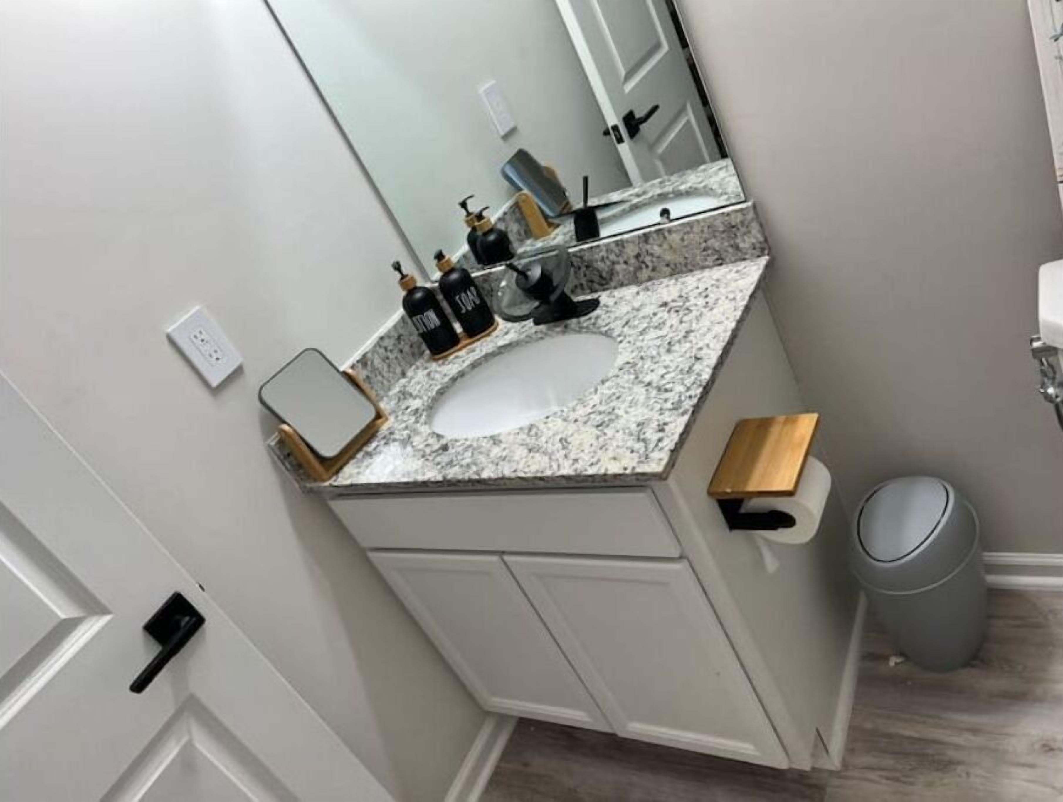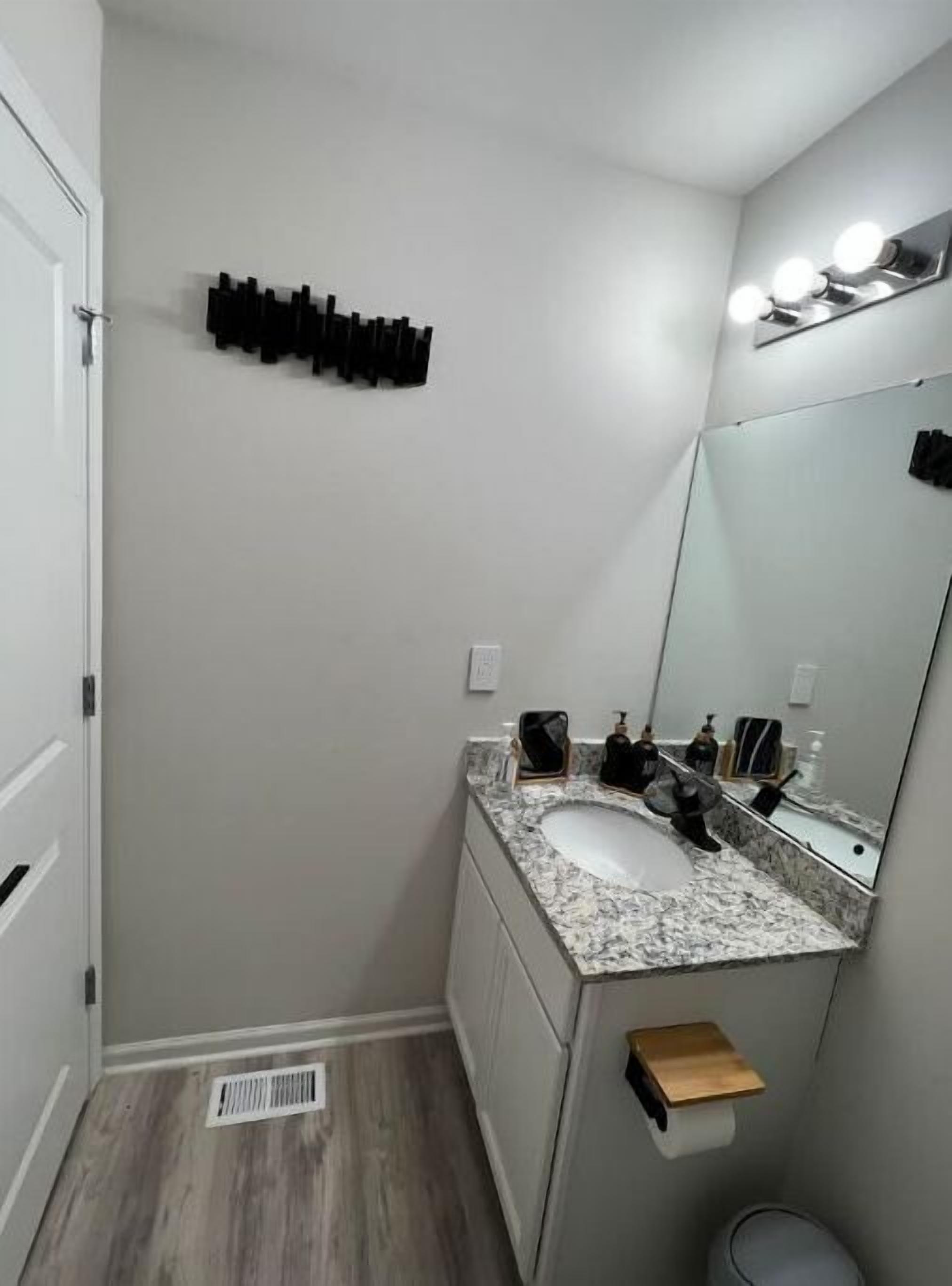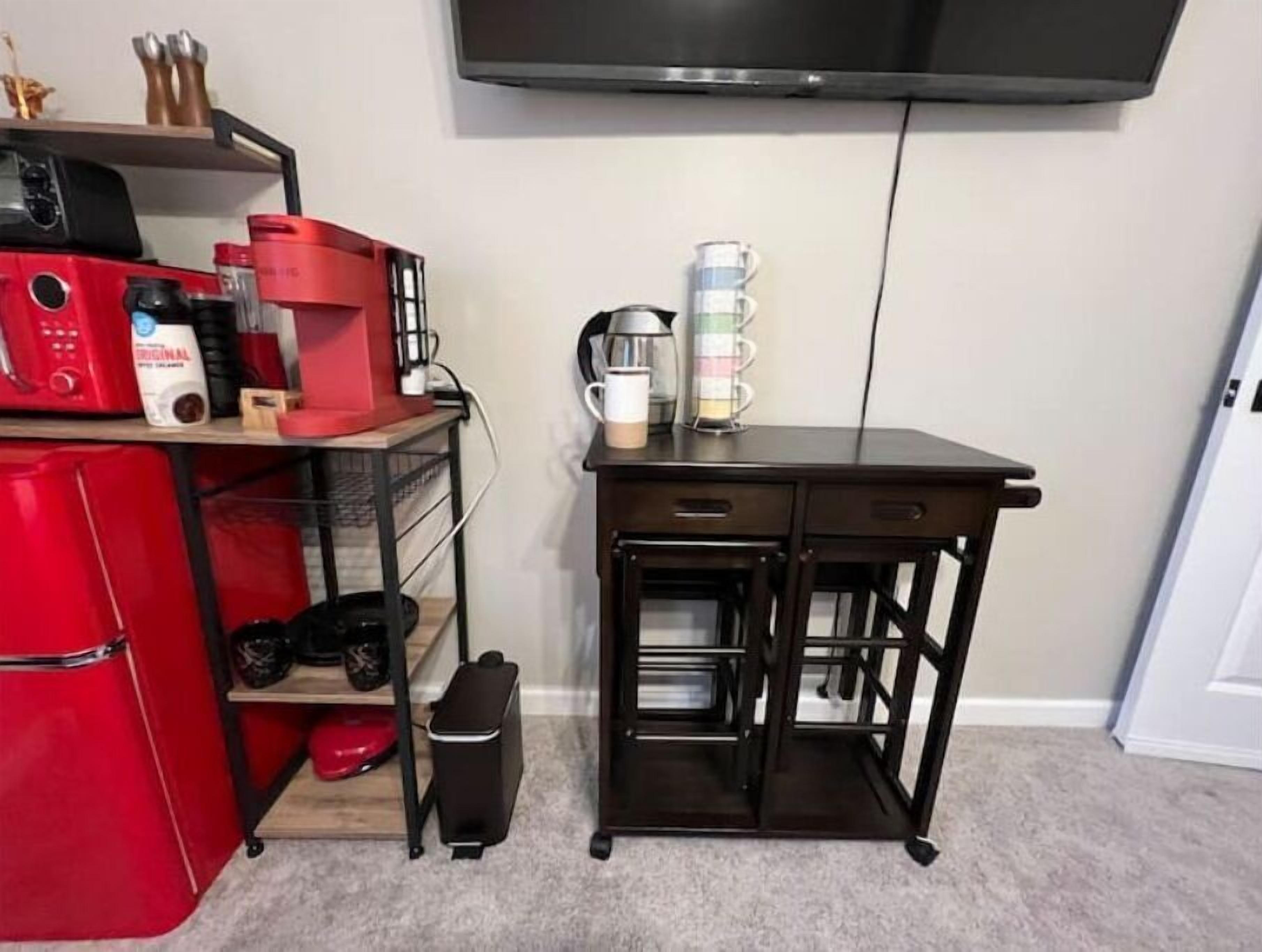 Private Entrance Guest Suite with Contactless Check-In Debuting a new, super clean, & comfortable private suite carved out of our newly built home in a safe, serene subdivision & premium amenities.Private Entrance & Contactless Check-In.Pet 🐶 & smoke free.Features:-Leather recliner-Snack/laptop table-100 Mbps WiFi-55” 4K Smart 📺 -Massage gun-Air purifier-☁️ fall humidifier & diffuser-reversible 🔥🧊 ceiling fan-Complimentary 🧼 🧴-Kitchenette & ☕️/🫖 bar -Expandable mobile dining table/workstation-Full bath w/ bidet-🧺 service available And more…--------------------------------More about the space--------------------------------A private entrance on the left through the garage door will meet you with an entryway and a closet/storage area to your right, a shoe bench, a key holder, and bedroom straight ahead. [Closet/Storage Area]Contains:-overhead shelf-velvet hangers-steam iron -ironing board-key holder -luggage rack -fire extinguisher 🧯 -space heater -toaster oven-personal blender-essential oil diffuser and humidifier-hair dryer [Bedroom]The farmhouse-themed bedroom features a queen bed with two nightstands/dimmable lamps, outlets, USB charging ports, a large window 🪟, blackout & privacy curtains, and a reversible 🔥 🧊 ceiling fan. The soundproofed bedroom walls and solid-core door add additional privacy and comfort.Dimmable vintage lighting with ♥️-shaped amber bedside bulbs create a warm, relaxing, and romantic nighttime ambience.The room also includes:-leather recliner-adjustable snack/laptop table-55” LG 4K Smart TV-Full length touch LED mirror [Bed 🛏️]The metal/wood bed features a storage shelf, two under-bed drawers, USB ports, clean pillows, high thread count sateen cotton sheets, all-season duvet, and a medium-firm queen hybrid pillow-top mattress. Mattress & pillow protectors are used keep things clean and sanitary for every guest.In the suite, you will find the following items for your comfort: -massage gun-portable personal fan -HEPA filter air purifier-digital alarm clock w/ wireless charger-essential oil diffuser and humidifier w/ relaxing cloud-fall effect-dehumidifier [Dinette/Workstation]There is a mobile, expandable dining/work table with two stowaway stools that can be used to work and eat. The velvet-lined drawers contain dinner/silverware. [Kitchenette🍴 & ☕️ / 🫖 Bar]Contains:-microwave -mini fridge/freezer -personal blender (closet) -toaster oven (closet)-griddle-Keurig coffee maker w/ complimentary K-cups -hot water kettle 🫖 -tea infuser cup w/ complimentary tea bags -coffee mugs ☕️ -dinner/silverware 🍴 -salt & pepper grinder-sugar & sweeteners -napkins-ice bucket 🪣 & 🧊 tray (in fridge)-Brita filtered 💧 jug (in fridge)Opening the other bedroom door will take you to a small foyer with the bathroom entrance. [Full Private Bathroom]Features:-beautiful glass waterfall faucet (see pics)-Main toiletries: toilet paper 🧻 , shampoo🧴, conditioner, body wash, hand soap, lotion -high pressure 3-way handheld & rainfall shower 🚿 -bathtub 🛁 -handheld bidet w/ precision pressure control -fresh bath towels, hand towels, and wash cloths -hair dryer-magnifying cosmetic mirror🪞 -smart bathroom scale -squatty potty (cabinet)-contemporary art hanging hooks 🪝 (see pics)-dish soap 🧼 and sponge 🧽 (cabinet) [Temperature Control🌡️]You can manage temperature using the reversible ceiling fan and space heater, or ask us to adjust the central HVAC temperature. If you are in need of anything else during your stay, please ask and we will do our best to accommodate.-----------------------------Other things to note-----------------------------The following may be available or offered for a nominal fee:-Mid-stay cleaning-Laundry service-Additional toiletries-Food/drinks....