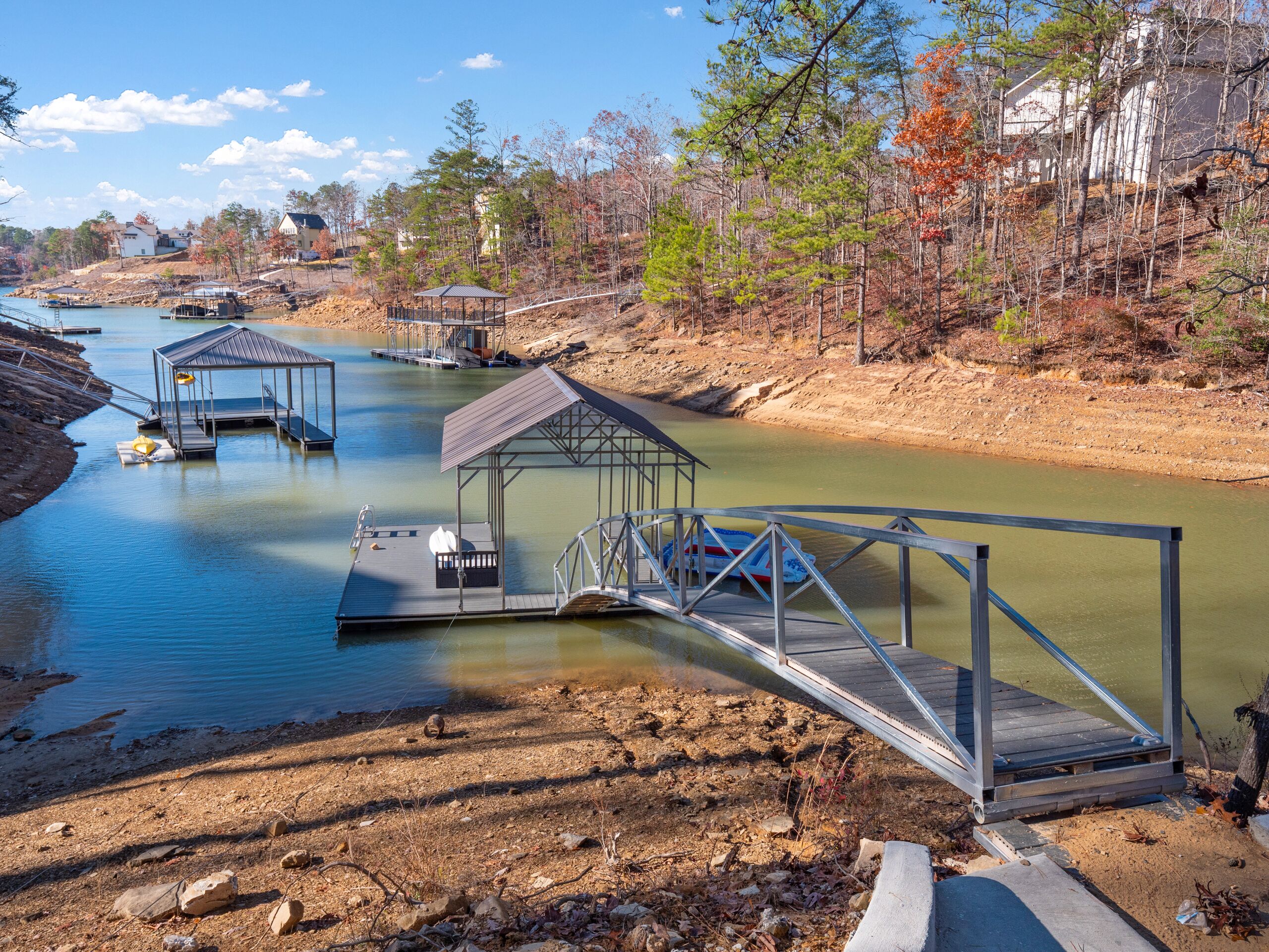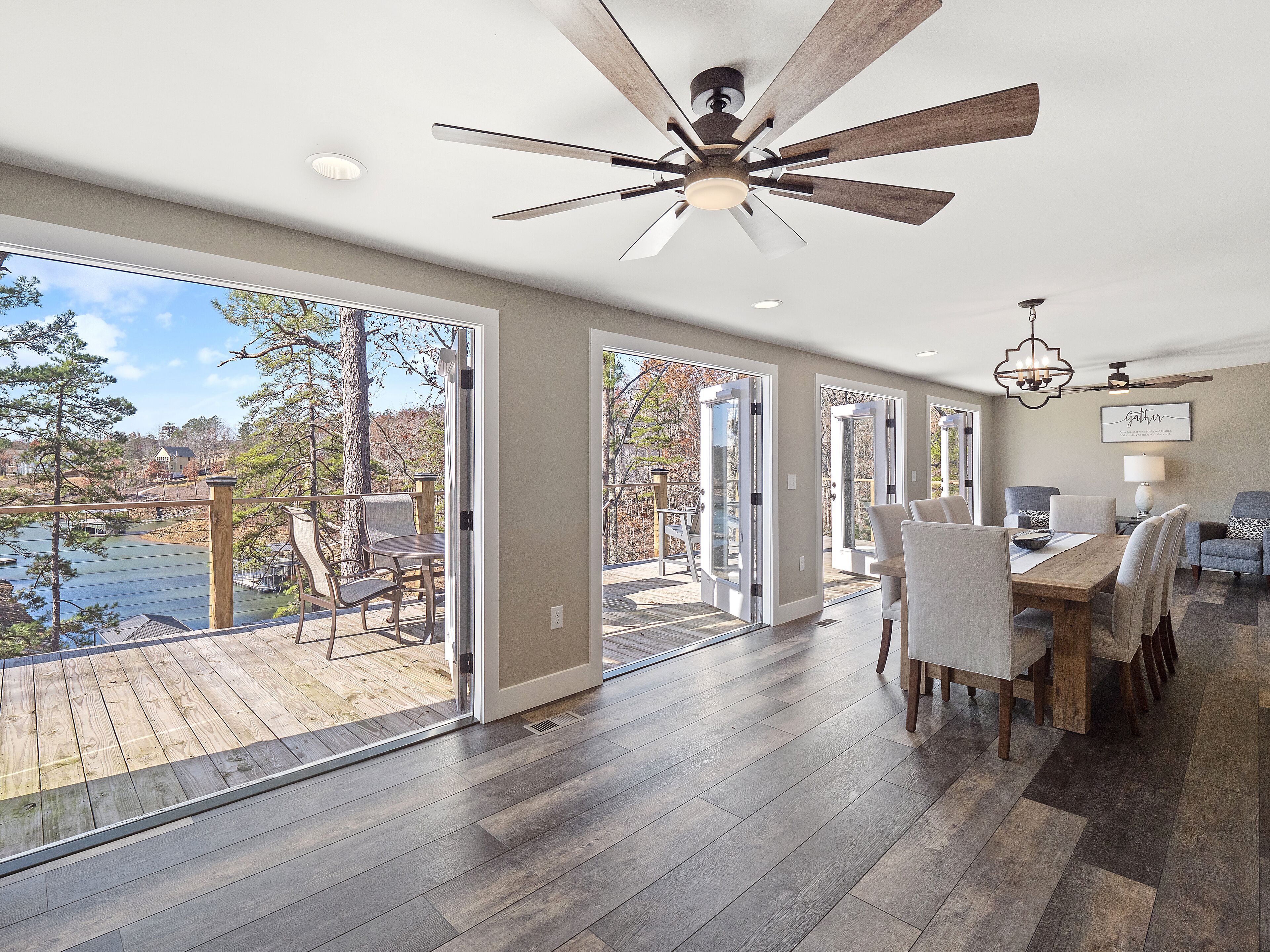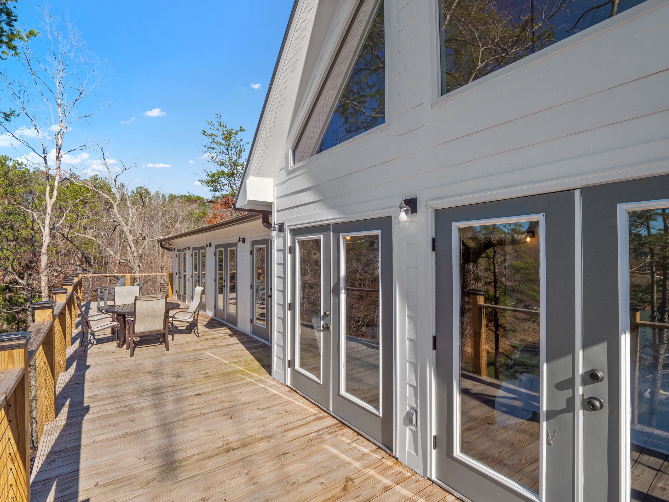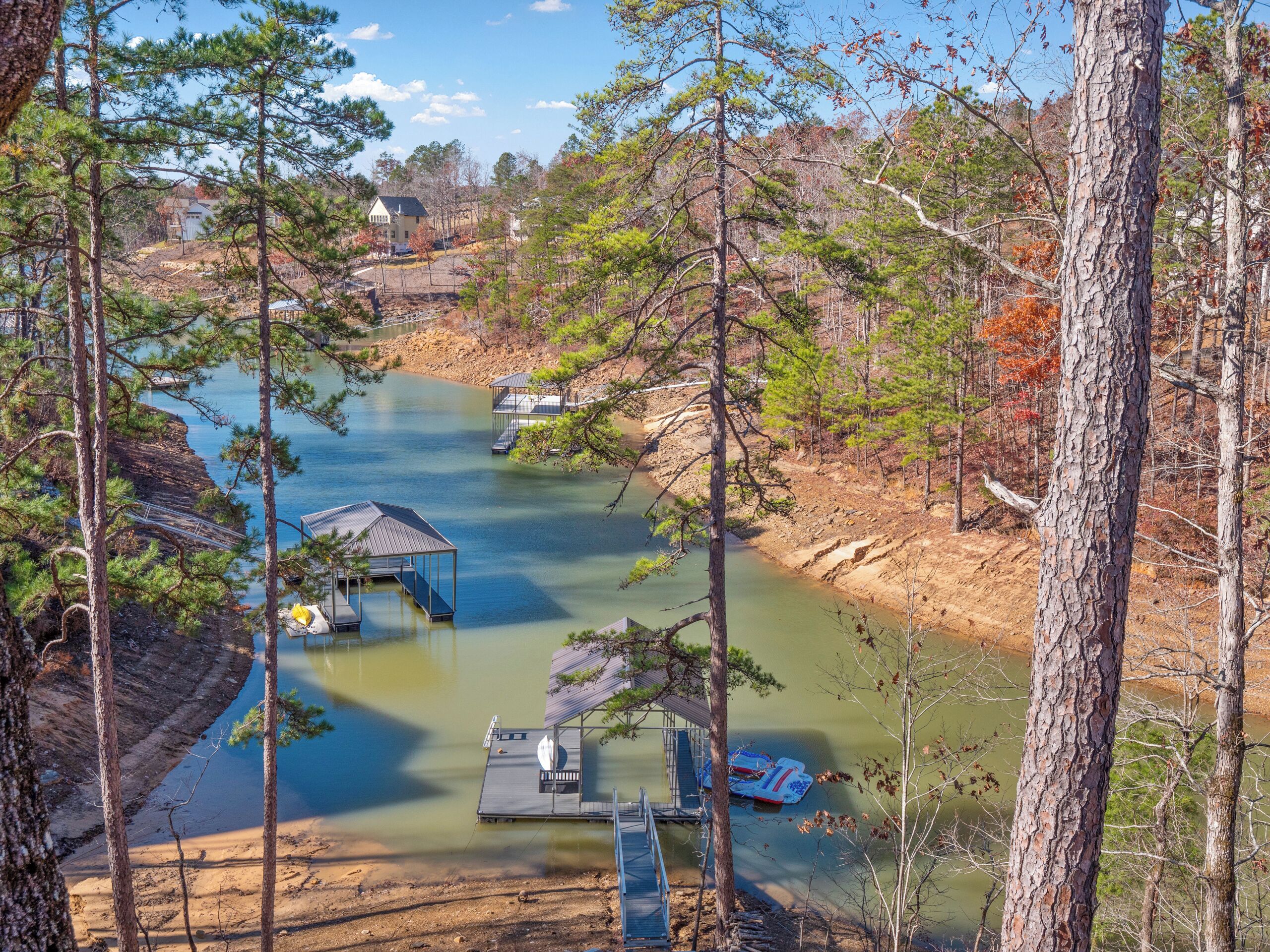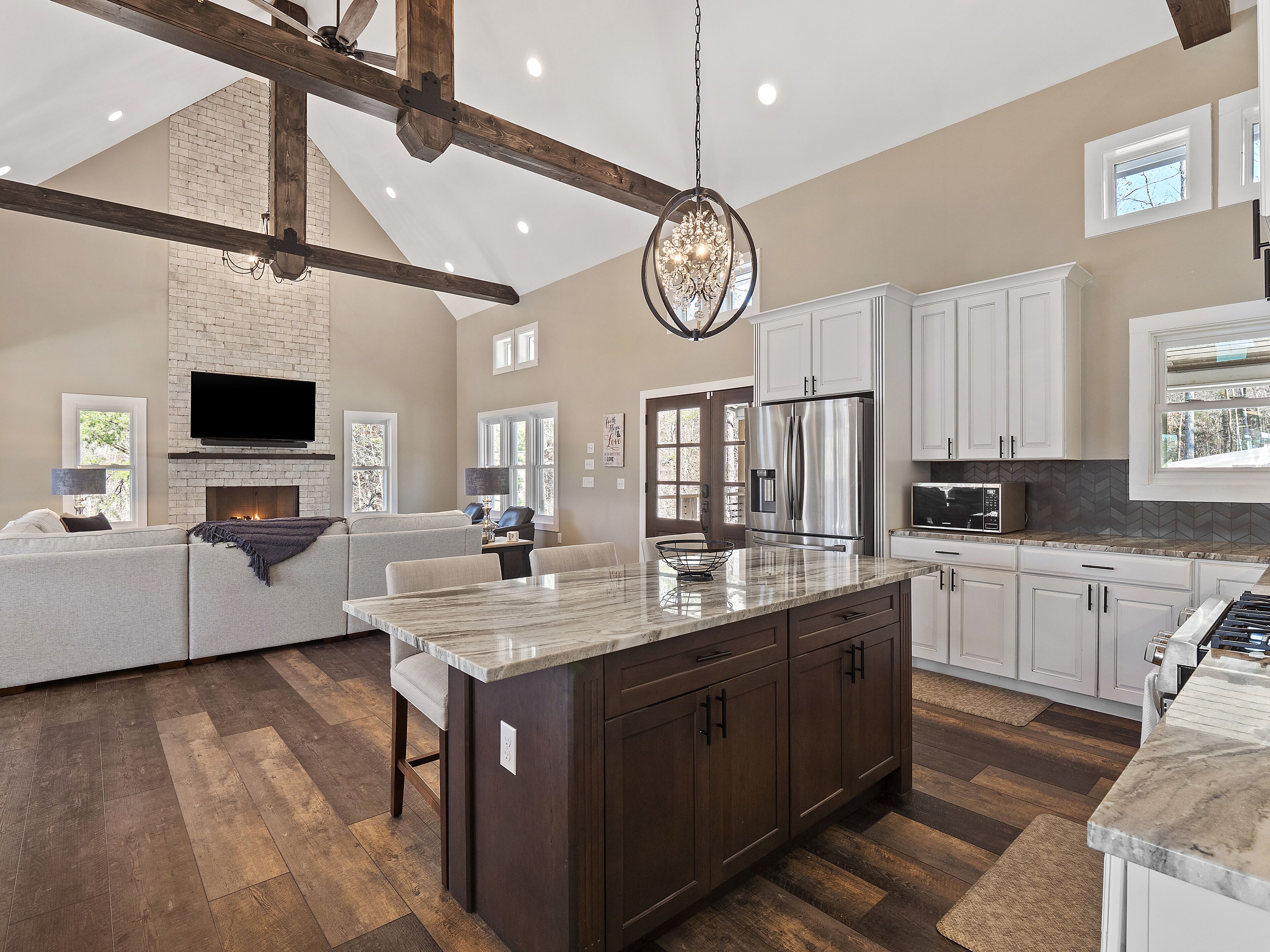 "Happy House"-Luxury, large firepit, 2 living areas "Happy House" - Luxury Home Built in 2022. No cost was spared in this custom built home which is setup for multiple families. House has 4 bedrooms / 4 bathrooms. Master BR on each floor, bunkroom in the basement, all bedrooms have Televisions. Two separate living areas, on main floor and downstairs, as well a Loft area for more relaxing and spending time with each other.Chef's Kitchen! Fully stocked with all of the EXTRAS! Hot air Popcorn maker, plenty of glassware, dishes (even children's unbreakable plate set), silverware, serving pieces - and anything you need for cooking and entertaining your friends and family. Dining area seats 8, with an additional 3 at the bar, and 3 at the island. There is a second smaller kitchen located downstairs, with a clear icemaker and a condensed size dishwasher in the lower level on the back bar.This home is powered by a Generac generator which powers the entire house in the event the electricity goes out. No danger of being without power!Peaceful, awesome views from multiple outdoor decks. Lower deck has lots of seating with a large gas firepit for those chilly evenings. Cornhole game. Upper deck has a brand new table and chairs as well as comfortable adirondack style seating for viewing the beauty of the lake. See pictures.You have an EASY WALK to the water down the concrete golf cart path.Nice private cove with Double Decker boat dock. Boat Slip available for guests' use. Great area for kayaking on the 2 kayaks. Also has a lilypad floatation mat for kids to enjoy!Convenient to Cullman or Jasper for restaurants and shopping. This property is great overflow from "The Barn" wedding venue which is 14 minutes away.Large Gas grill. Extra refrigerator located on lower patio, outside next to grill.Bedroom 1: Queen size bed with bath outside BR door - main levelBedroom 2: King size bed with private bath - main levelBedroom 3: King size bed with private bath - daylight basementBedroom 4: Two sets of bunk beds (sleeps 4) - daylight basementAdditional sleeping on the second floor loft: Pull-out couchWIFI Sprout Internet with streaming available on tv's, Hulu TV, Netflix and Amazon Prime.Security camera installed at the front door.PEAK SEASON: no Sat to Sat rentals. OFF-SEASON: 3 Night Minimum.Thanksgiving and Christmas - (3 nights required and Peak Season rates) Week of 4th of July is a 5 night minimum.PLEASE BE AWARE THAT THE PRIMARY RENTER MUST MEET THE AGE REQUIREMENT OF 25 YEARS OF AGE.NO after-prom, graduation, frat, wedding, etc parties. Any gathering larger than the Max occupancy has to be preapproved. Violation will result in eviction.