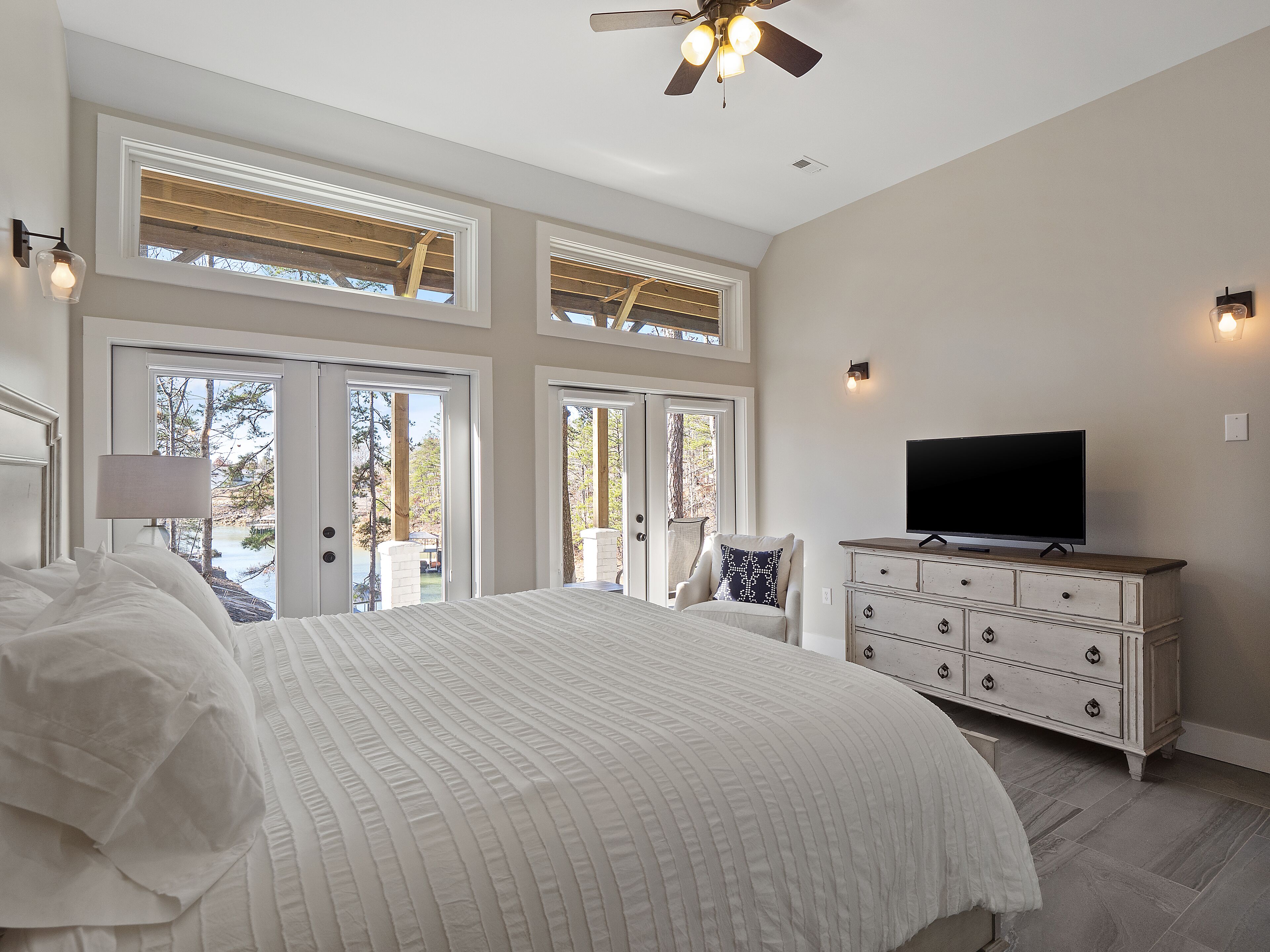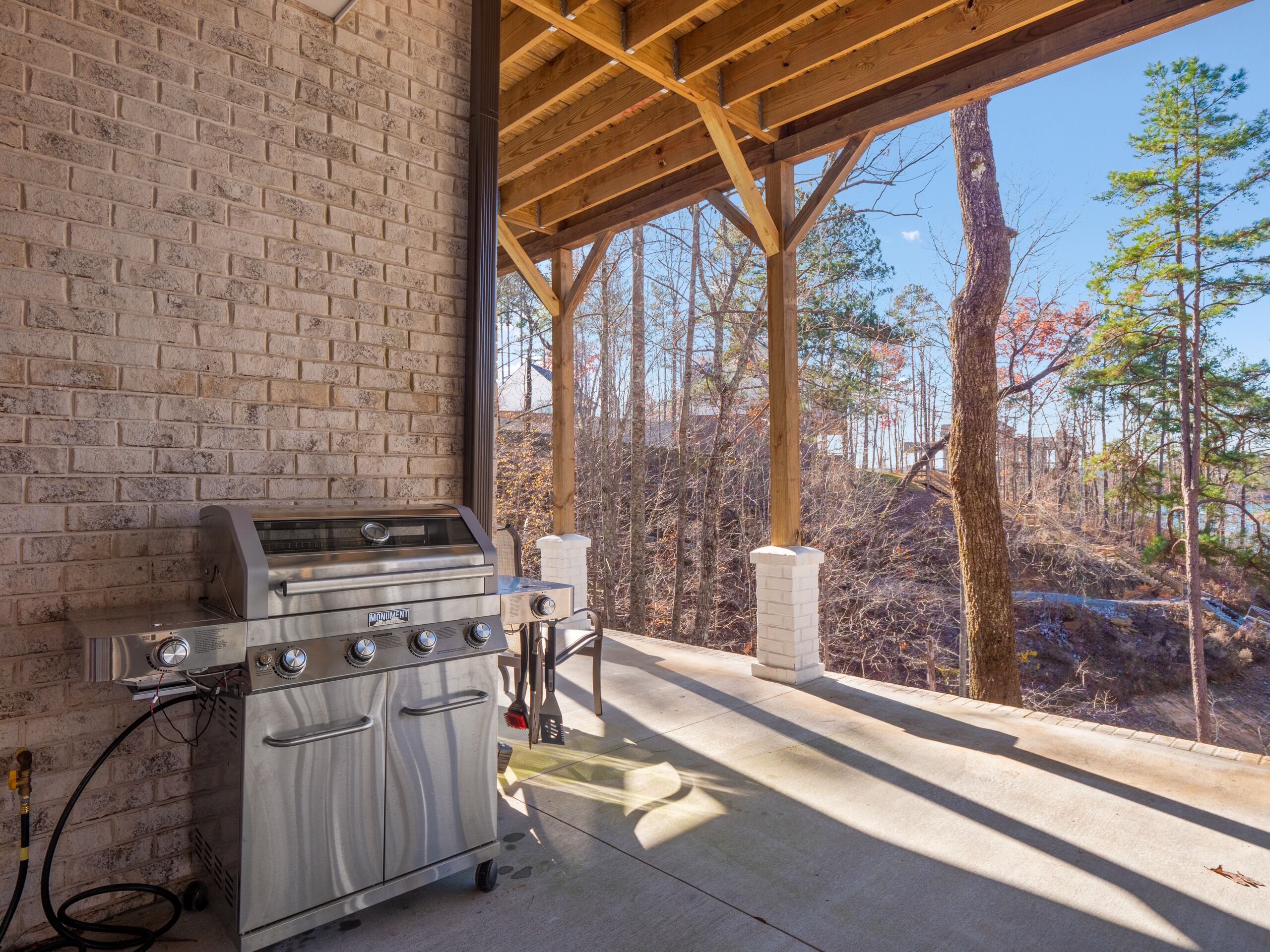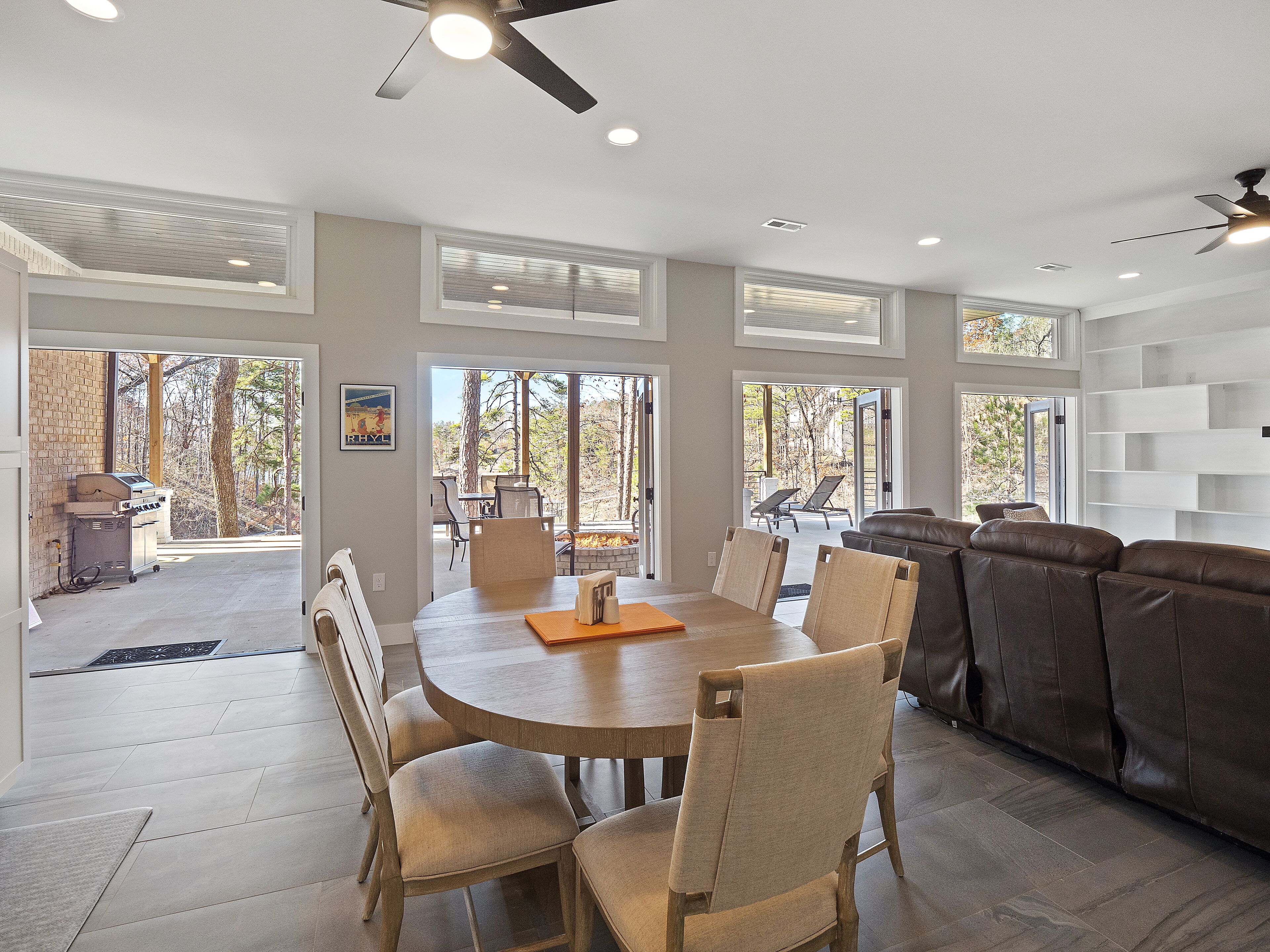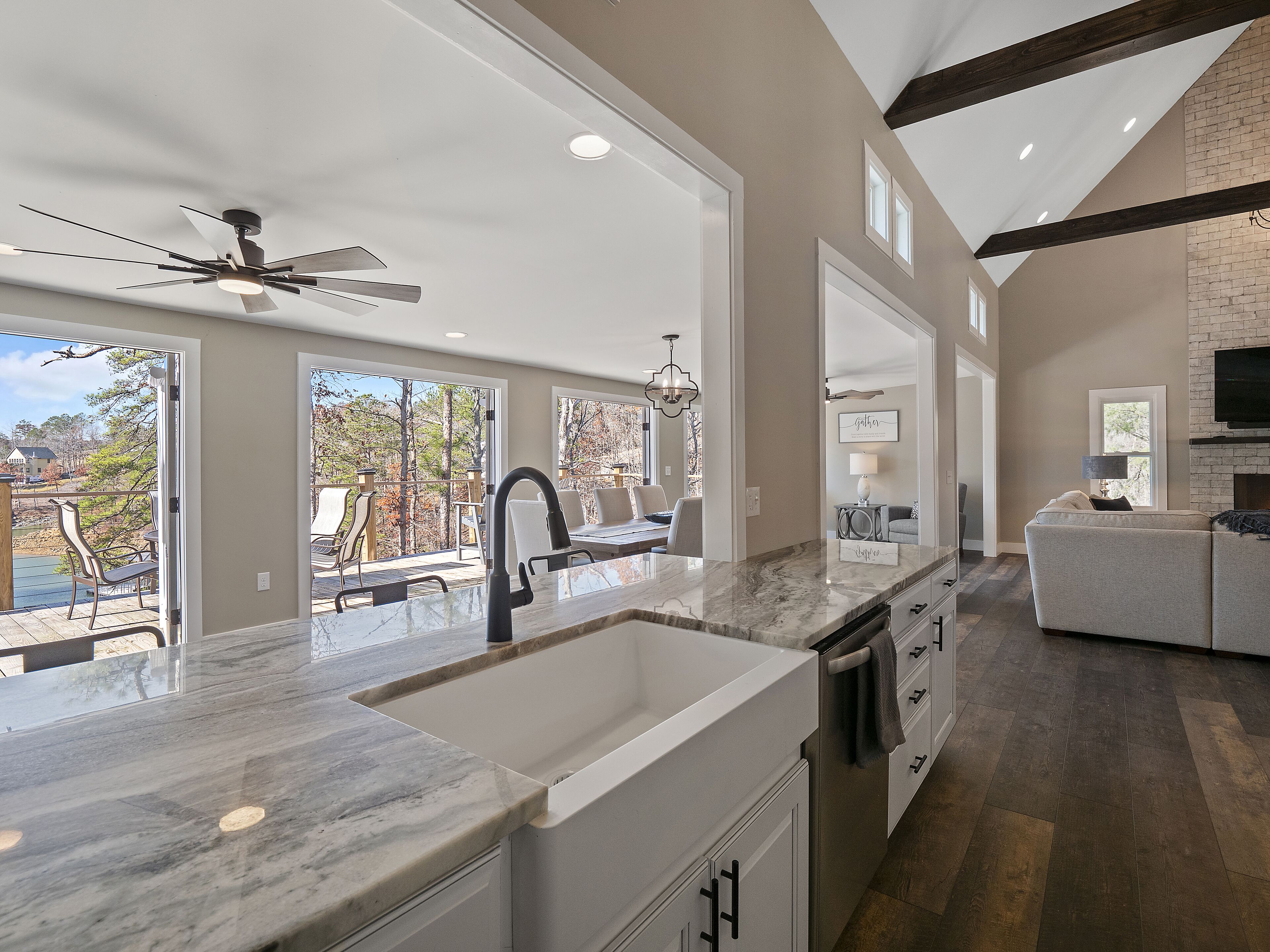 "Happy House"-Luxury, large firepit, 2 living areas "Happy House" - Luxury Home Built in 2022. No cost was spared in this custom built home which is setup for multiple families. House has 4 bedrooms / 4 bathrooms. Master BR on each floor, bunkroom in the basement, all bedrooms have Televisions. Two separate living areas, on main floor and downstairs, as well a Loft area for more relaxing and spending time with each other.Chef's Kitchen! Fully stocked with all of the EXTRAS! Hot air Popcorn maker, plenty of glassware, dishes (even children's unbreakable plate set), silverware, serving pieces - and anything you need for cooking and entertaining your friends and family. Dining area seats 8, with an additional 3 at the bar, and 3 at the island. There is a second smaller kitchen located downstairs, with a clear icemaker and a condensed size dishwasher in the lower level on the back bar.This home is powered by a Generac generator which powers the entire house in the event the electricity goes out. No danger of being without power!Peaceful, awesome views from multiple outdoor decks. Lower deck has lots of seating with a large gas firepit for those chilly evenings. Cornhole game. Upper deck has a brand new table and chairs as well as comfortable adirondack style seating for viewing the beauty of the lake. See pictures.You have an EASY WALK to the water down the concrete golf cart path.Nice private cove with Double Decker boat dock. Boat Slip available for guests' use. Great area for kayaking on the 2 kayaks. Also has a lilypad floatation mat for kids to enjoy!Convenient to Cullman or Jasper for restaurants and shopping. This property is great overflow from "The Barn" wedding venue which is 14 minutes away.Large Gas grill. Extra refrigerator located on lower patio, outside next to grill.Bedroom 1: Queen size bed with bath outside BR door - main levelBedroom 2: King size bed with private bath - main levelBedroom 3: King size bed with private bath - daylight basementBedroom 4: Two sets of bunk beds (sleeps 4) - daylight basementAdditional sleeping on the second floor loft: Pull-out couchWIFI Sprout Internet with streaming available on tv's, Hulu TV, Netflix and Amazon Prime.Security camera installed at the front door.PEAK SEASON: no Sat to Sat rentals. OFF-SEASON: 3 Night Minimum.Thanksgiving and Christmas - (3 nights required and Peak Season rates) Week of 4th of July is a 5 night minimum.PLEASE BE AWARE THAT THE PRIMARY RENTER MUST MEET THE AGE REQUIREMENT OF 25 YEARS OF AGE.NO after-prom, graduation, frat, wedding, etc parties. Any gathering larger than the Max occupancy has to be preapproved. Violation will result in eviction.