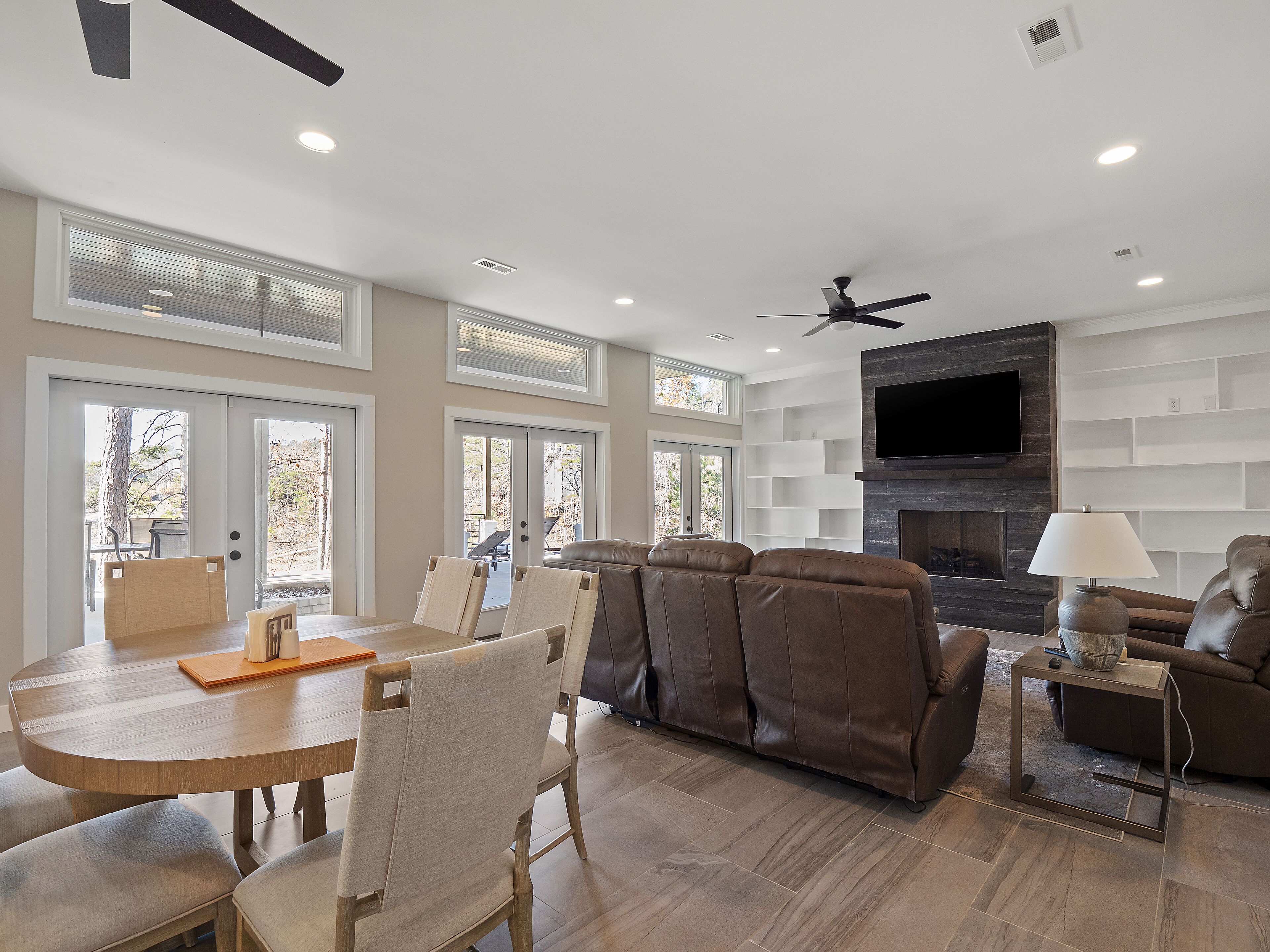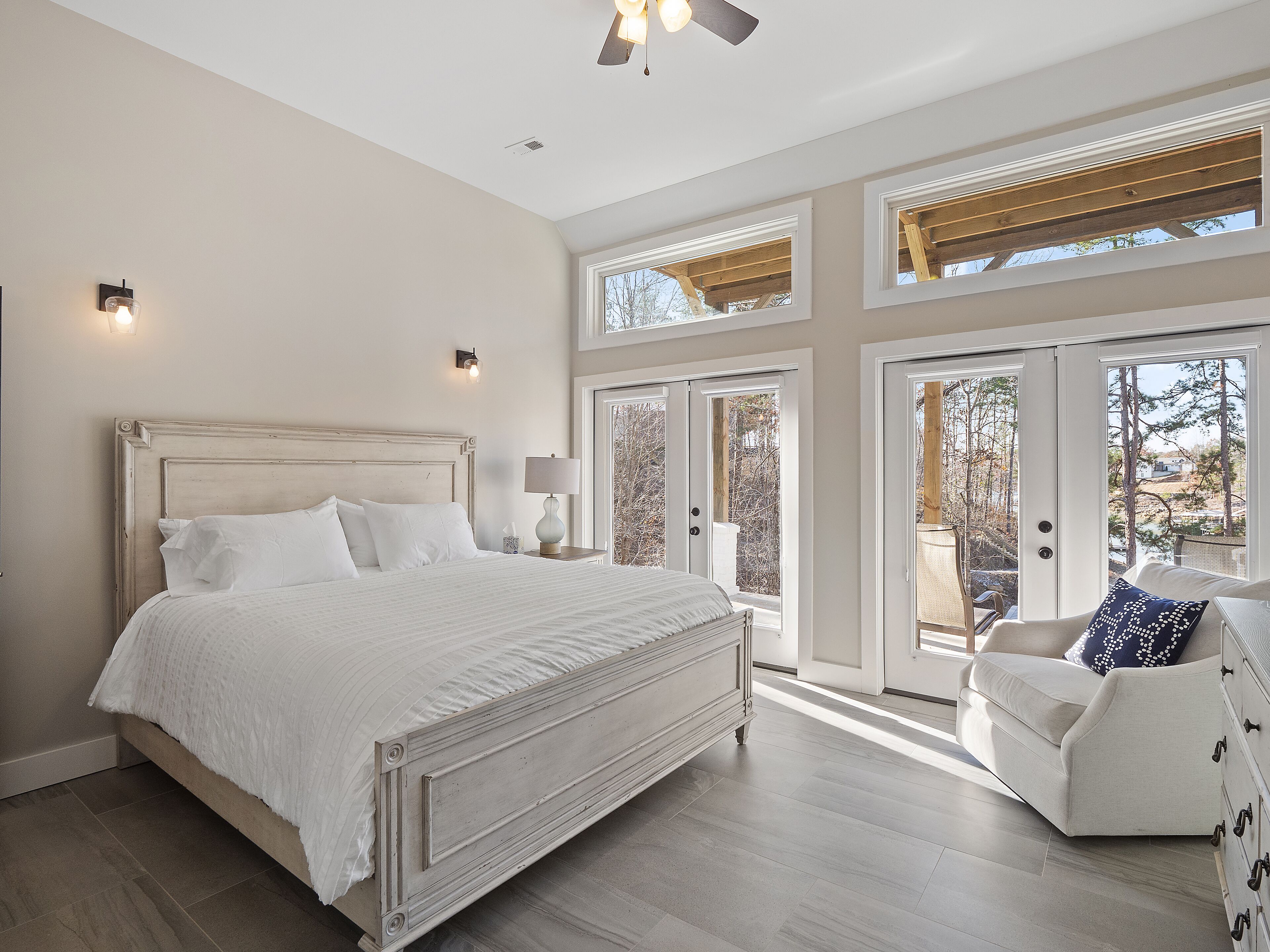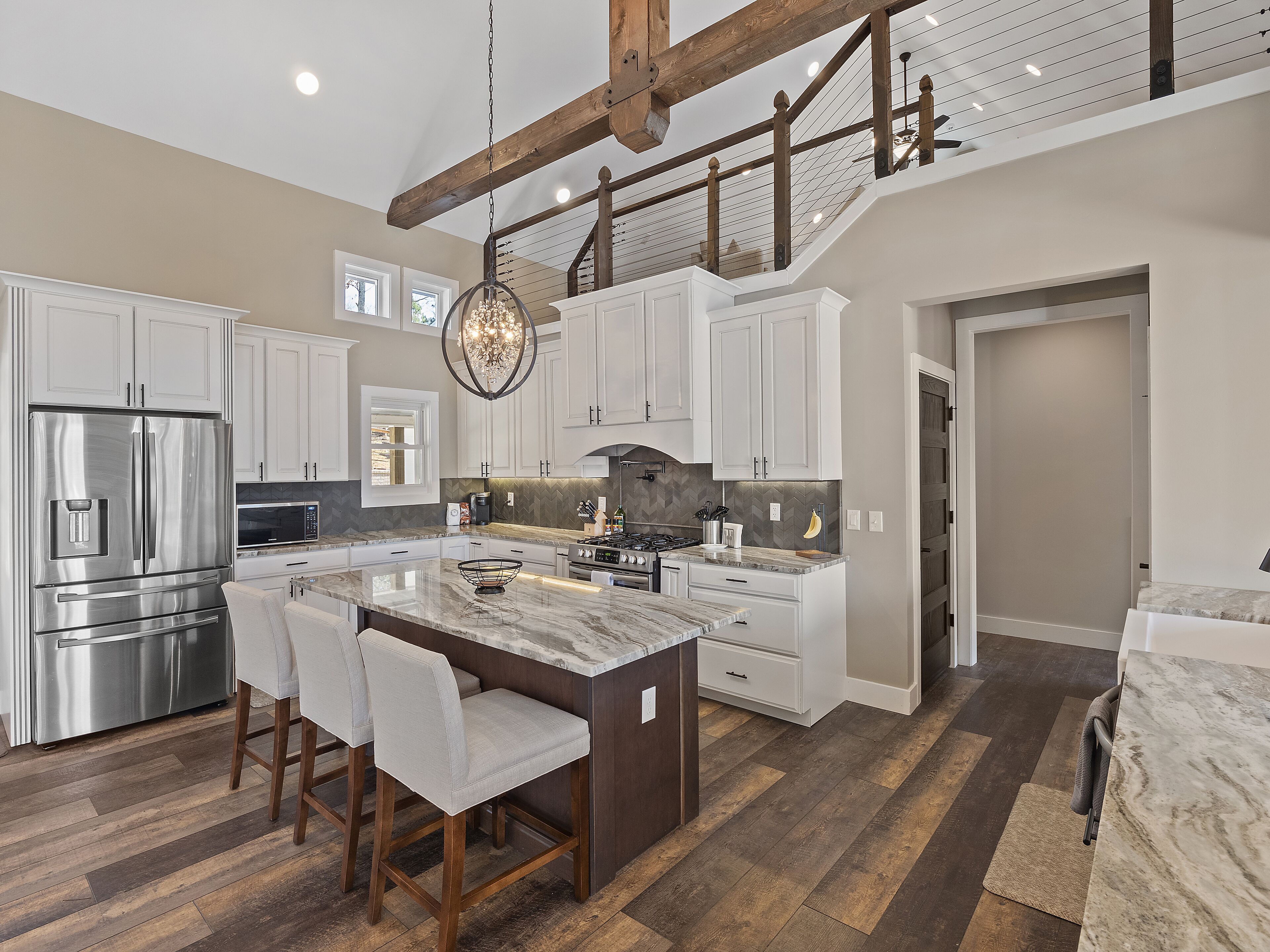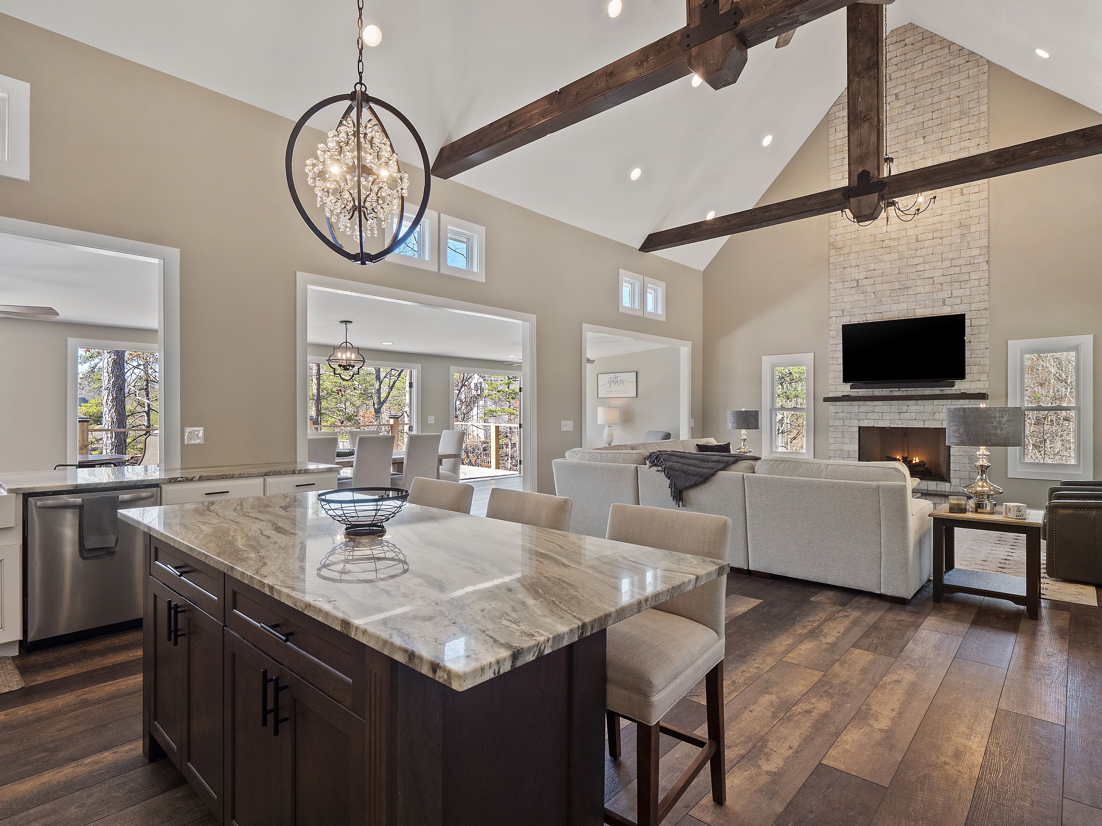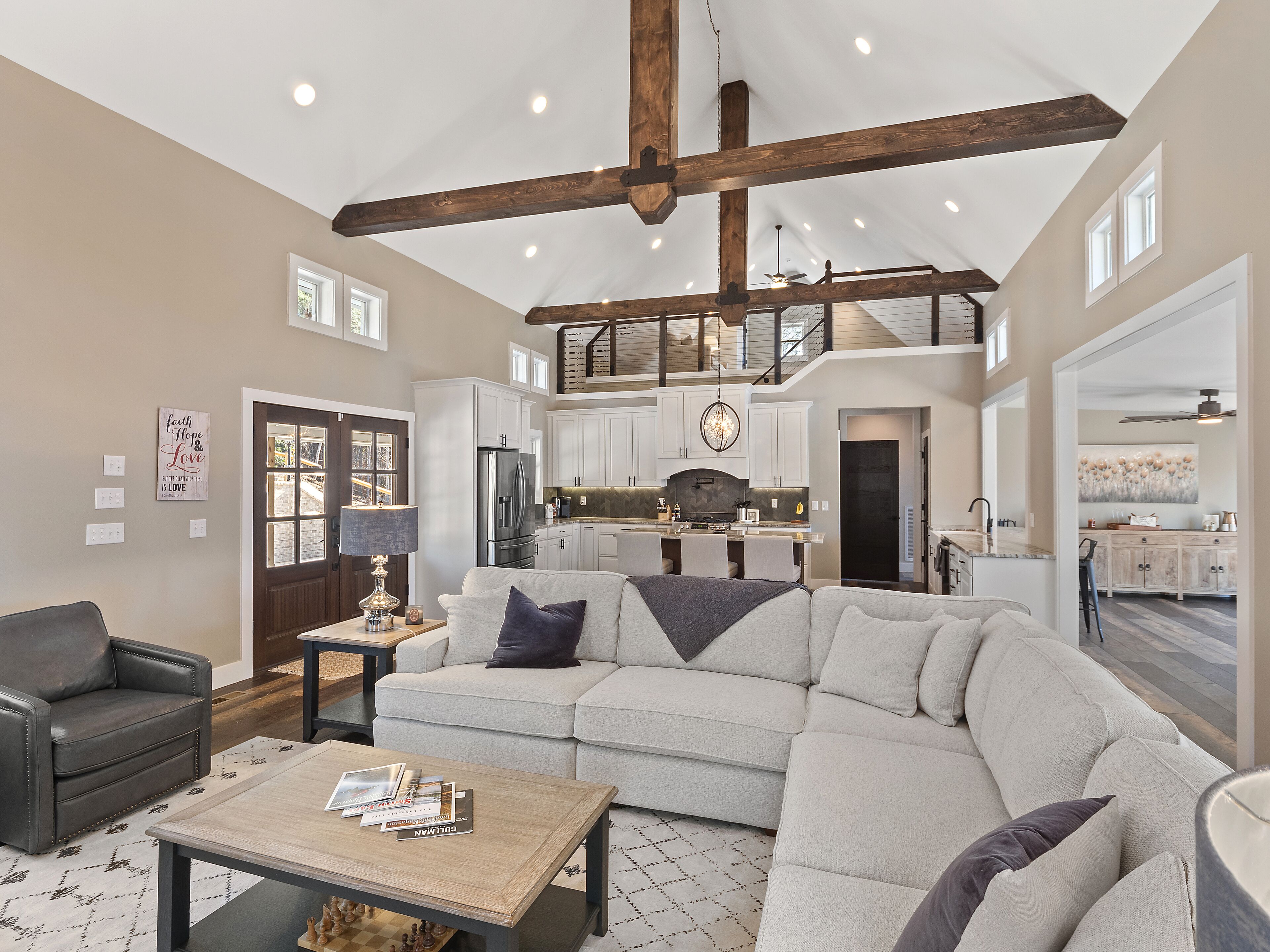 "Happy House"-Luxury, large firepit, 2 living areas "Happy House" - Luxury Home Built in 2022. No cost was spared in this custom built home which is setup for multiple families. House has 4 bedrooms / 4 bathrooms. Master BR on each floor, bunkroom in the basement, all bedrooms have Televisions. Two separate living areas, on main floor and downstairs, as well a Loft area for more relaxing and spending time with each other.Chef's Kitchen! Fully stocked with all of the EXTRAS! Hot air Popcorn maker, plenty of glassware, dishes (even children's unbreakable plate set), silverware, serving pieces - and anything you need for cooking and entertaining your friends and family. Dining area seats 8, with an additional 3 at the bar, and 3 at the island. There is a second smaller kitchen located downstairs, with a clear icemaker and a condensed size dishwasher in the lower level on the back bar.This home is powered by a Generac generator which powers the entire house in the event the electricity goes out. No danger of being without power!Peaceful, awesome views from multiple outdoor decks. Lower deck has lots of seating with a large gas firepit for those chilly evenings. Cornhole game. Upper deck has a brand new table and chairs as well as comfortable adirondack style seating for viewing the beauty of the lake. See pictures.You have an EASY WALK to the water down the concrete golf cart path.Nice private cove with Double Decker boat dock. Boat Slip available for guests' use. Great area for kayaking on the 2 kayaks. Also has a lilypad floatation mat for kids to enjoy!Convenient to Cullman or Jasper for restaurants and shopping. This property is great overflow from "The Barn" wedding venue which is 14 minutes away.Large Gas grill. Extra refrigerator located on lower patio, outside next to grill.Bedroom 1: Queen size bed with bath outside BR door - main levelBedroom 2: King size bed with private bath - main levelBedroom 3: King size bed with private bath - daylight basementBedroom 4: Two sets of bunk beds (sleeps 4) - daylight basementAdditional sleeping on the second floor loft: Pull-out couchWIFI Sprout Internet with streaming available on tv's, Hulu TV, Netflix and Amazon Prime.Security camera installed at the front door.PEAK SEASON: no Sat to Sat rentals. OFF-SEASON: 3 Night Minimum.Thanksgiving and Christmas - (3 nights required and Peak Season rates) Week of 4th of July is a 5 night minimum.PLEASE BE AWARE THAT THE PRIMARY RENTER MUST MEET THE AGE REQUIREMENT OF 25 YEARS OF AGE.NO after-prom, graduation, frat, wedding, etc parties. Any gathering larger than the Max occupancy has to be preapproved. Violation will result in eviction.