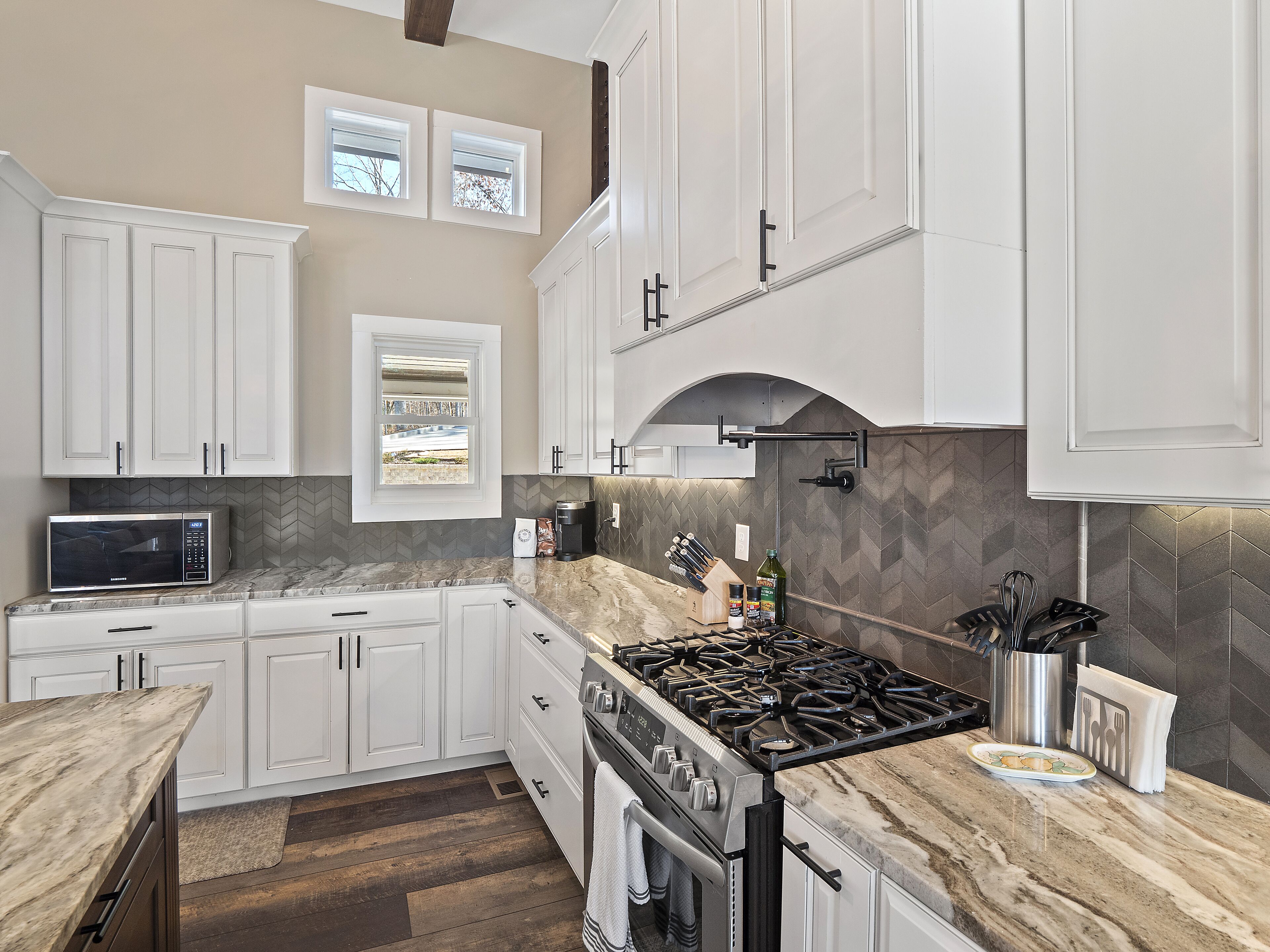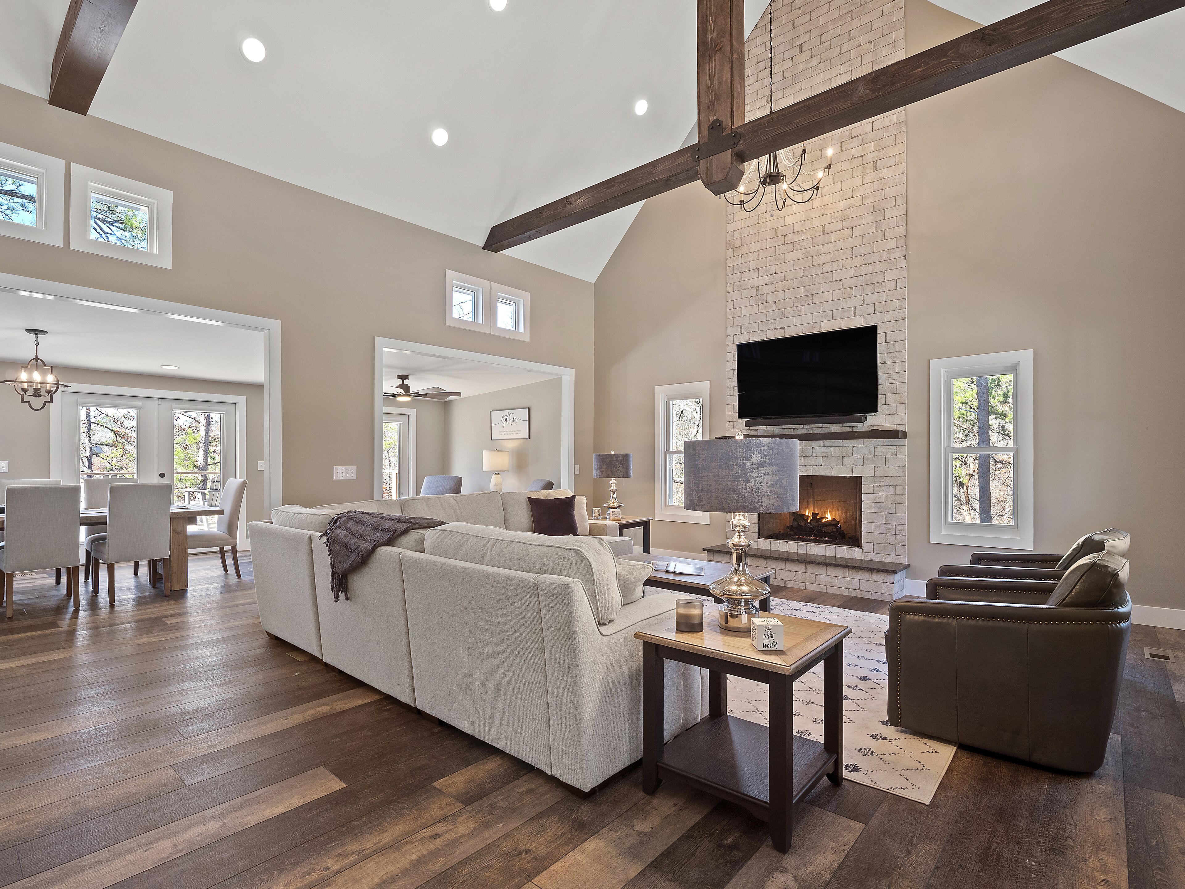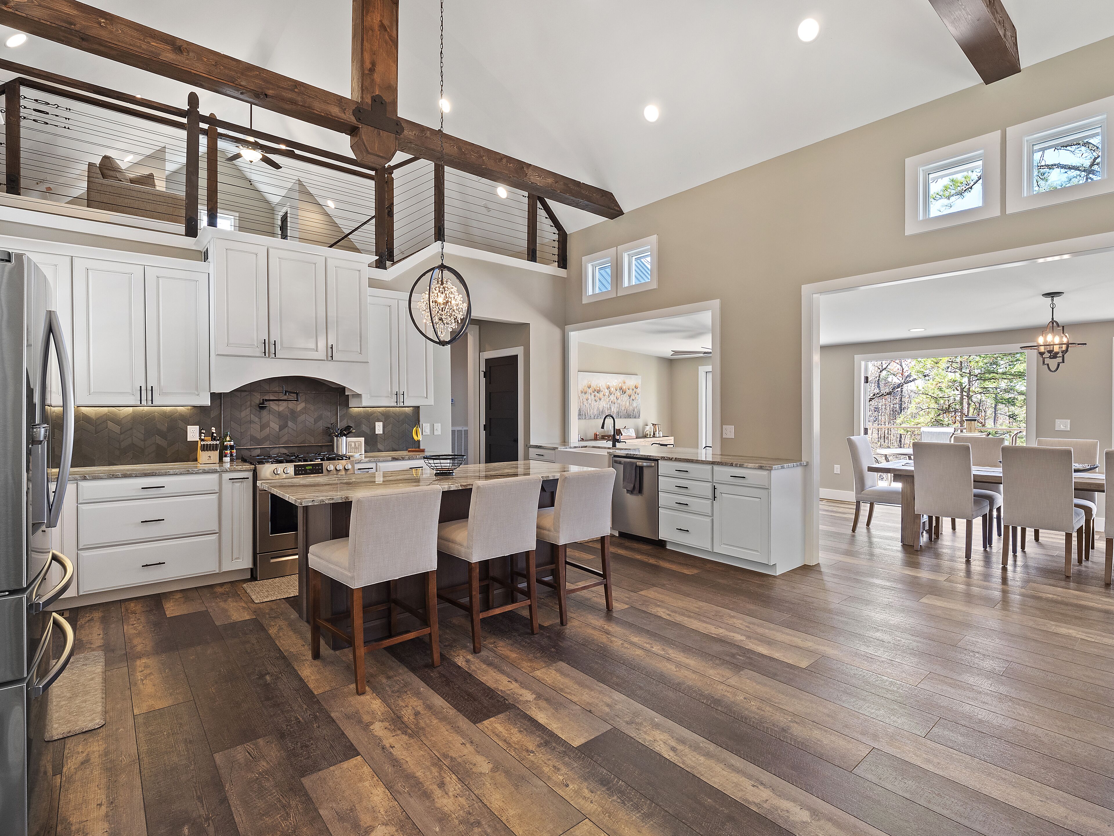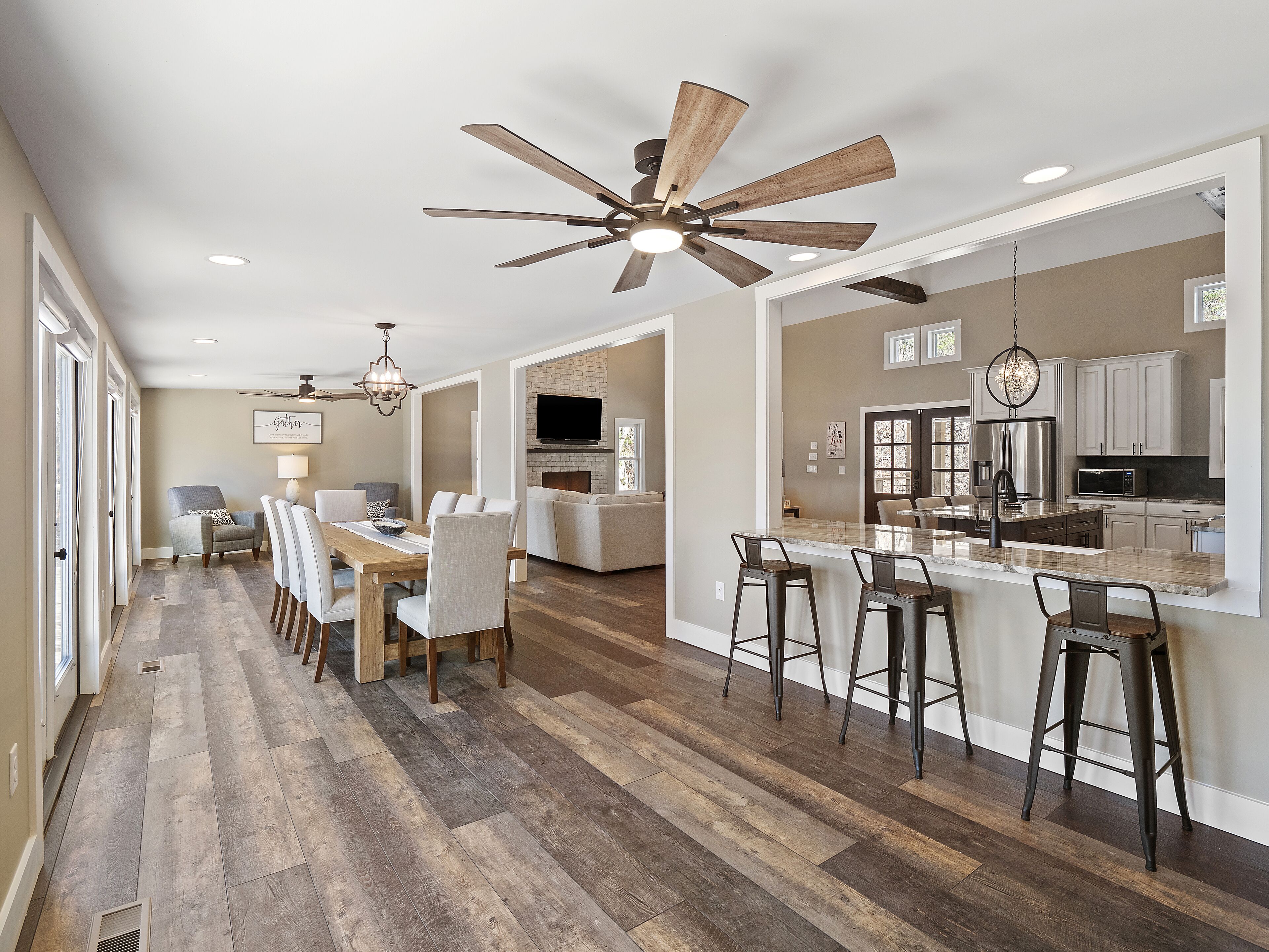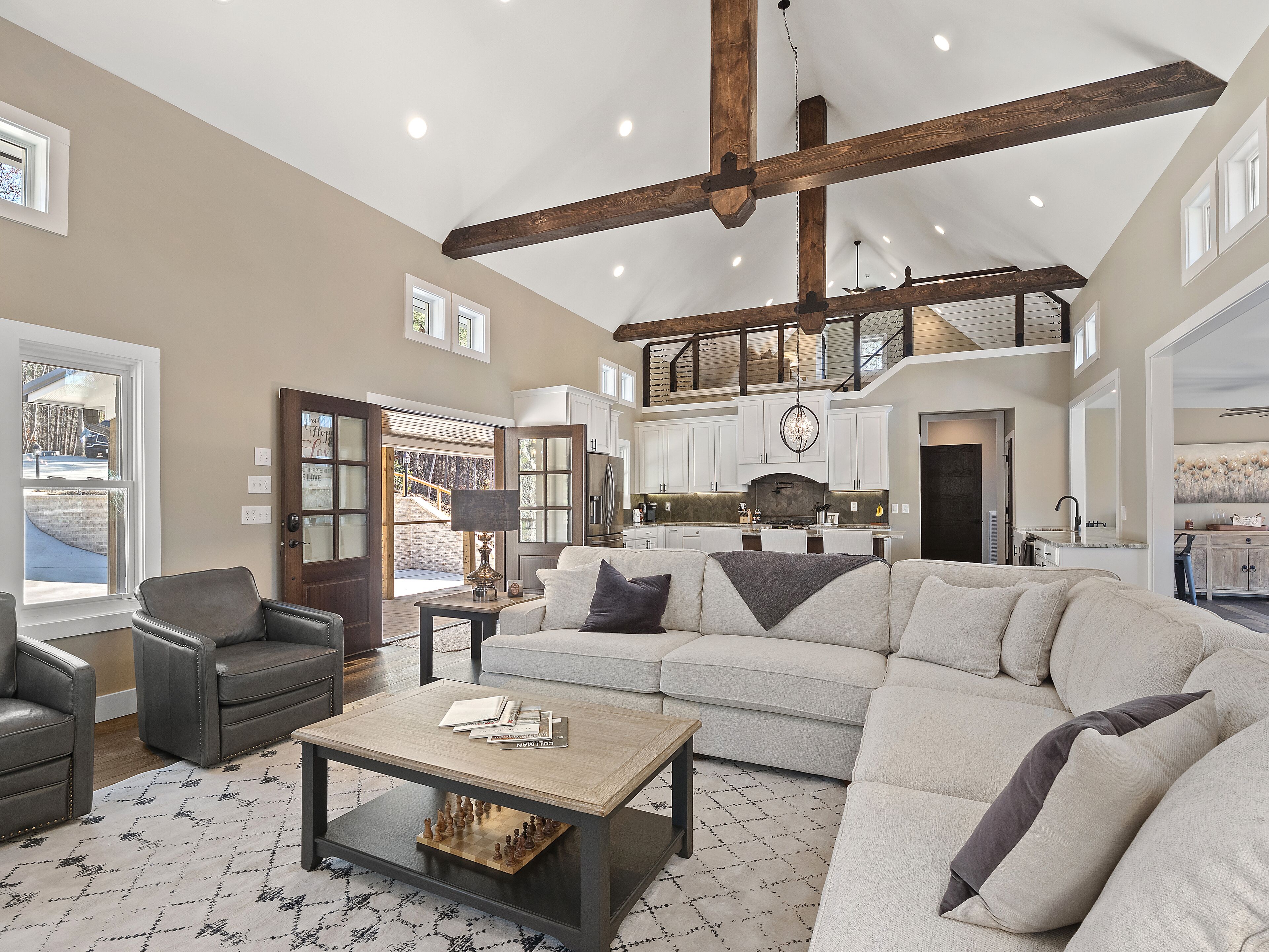 "Happy House"-Luxury, large firepit, 2 living areas "Happy House" - Luxury Home Built in 2022. No cost was spared in this custom built home which is setup for multiple families. House has 4 bedrooms / 4 bathrooms. Master BR on each floor, bunkroom in the basement, all bedrooms have Televisions. Two separate living areas, on main floor and downstairs, as well a Loft area for more relaxing and spending time with each other.Chef's Kitchen! Fully stocked with all of the EXTRAS! Hot air Popcorn maker, plenty of glassware, dishes (even children's unbreakable plate set), silverware, serving pieces - and anything you need for cooking and entertaining your friends and family. Dining area seats 8, with an additional 3 at the bar, and 3 at the island. There is a second smaller kitchen located downstairs, with a clear icemaker and a condensed size dishwasher in the lower level on the back bar.This home is powered by a Generac generator which powers the entire house in the event the electricity goes out. No danger of being without power!Peaceful, awesome views from multiple outdoor decks. Lower deck has lots of seating with a large gas firepit for those chilly evenings. Cornhole game. Upper deck has a brand new table and chairs as well as comfortable adirondack style seating for viewing the beauty of the lake. See pictures.You have an EASY WALK to the water down the concrete golf cart path.Nice private cove with Double Decker boat dock. Boat Slip available for guests' use. Great area for kayaking on the 2 kayaks. Also has a lilypad floatation mat for kids to enjoy!Convenient to Cullman or Jasper for restaurants and shopping. This property is great overflow from "The Barn" wedding venue which is 14 minutes away.Large Gas grill. Extra refrigerator located on lower patio, outside next to grill.Bedroom 1: Queen size bed with bath outside BR door - main levelBedroom 2: King size bed with private bath - main levelBedroom 3: King size bed with private bath - daylight basementBedroom 4: Two sets of bunk beds (sleeps 4) - daylight basementAdditional sleeping on the second floor loft: Pull-out couchWIFI Sprout Internet with streaming available on tv's, Hulu TV, Netflix and Amazon Prime.Security camera installed at the front door.PEAK SEASON: no Sat to Sat rentals. OFF-SEASON: 3 Night Minimum.Thanksgiving and Christmas - (3 nights required and Peak Season rates) Week of 4th of July is a 5 night minimum.PLEASE BE AWARE THAT THE PRIMARY RENTER MUST MEET THE AGE REQUIREMENT OF 25 YEARS OF AGE.NO after-prom, graduation, frat, wedding, etc parties. Any gathering larger than the Max occupancy has to be preapproved. Violation will result in eviction.